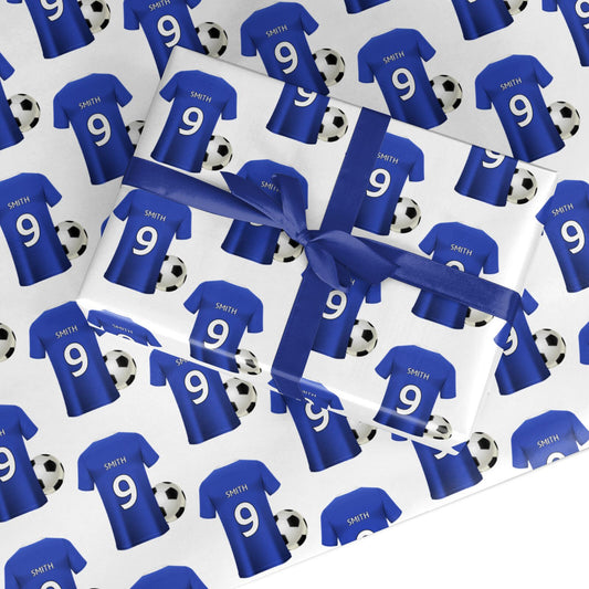Blue Personalised Name Number Football Shirt Wrapping Paper
