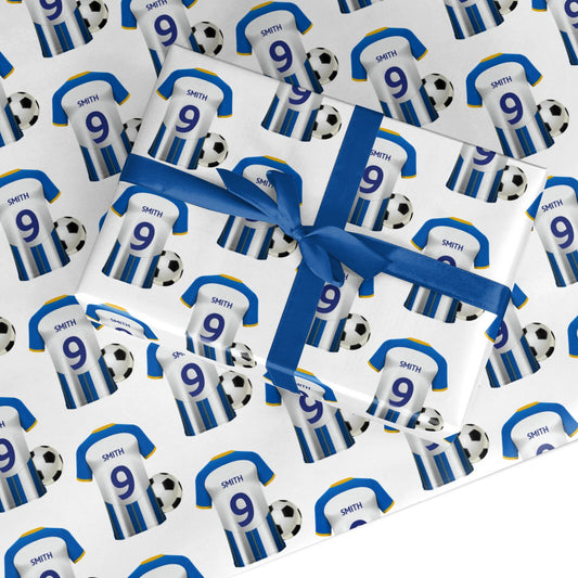 Blue White Yellow Personalised Football Shirt Wrapping Paper