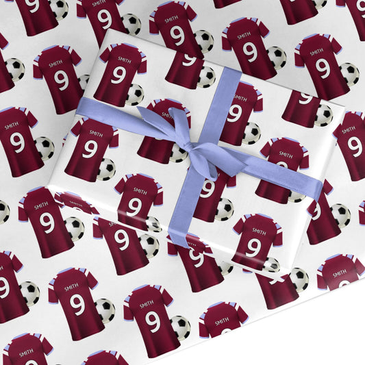 Claret and Blue Personalised Football Shirt Wrapping Paper