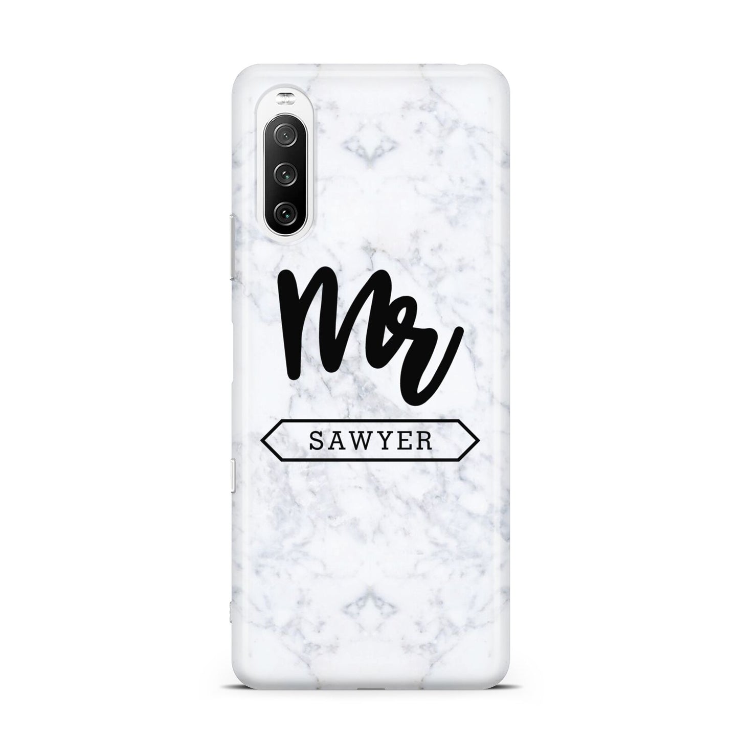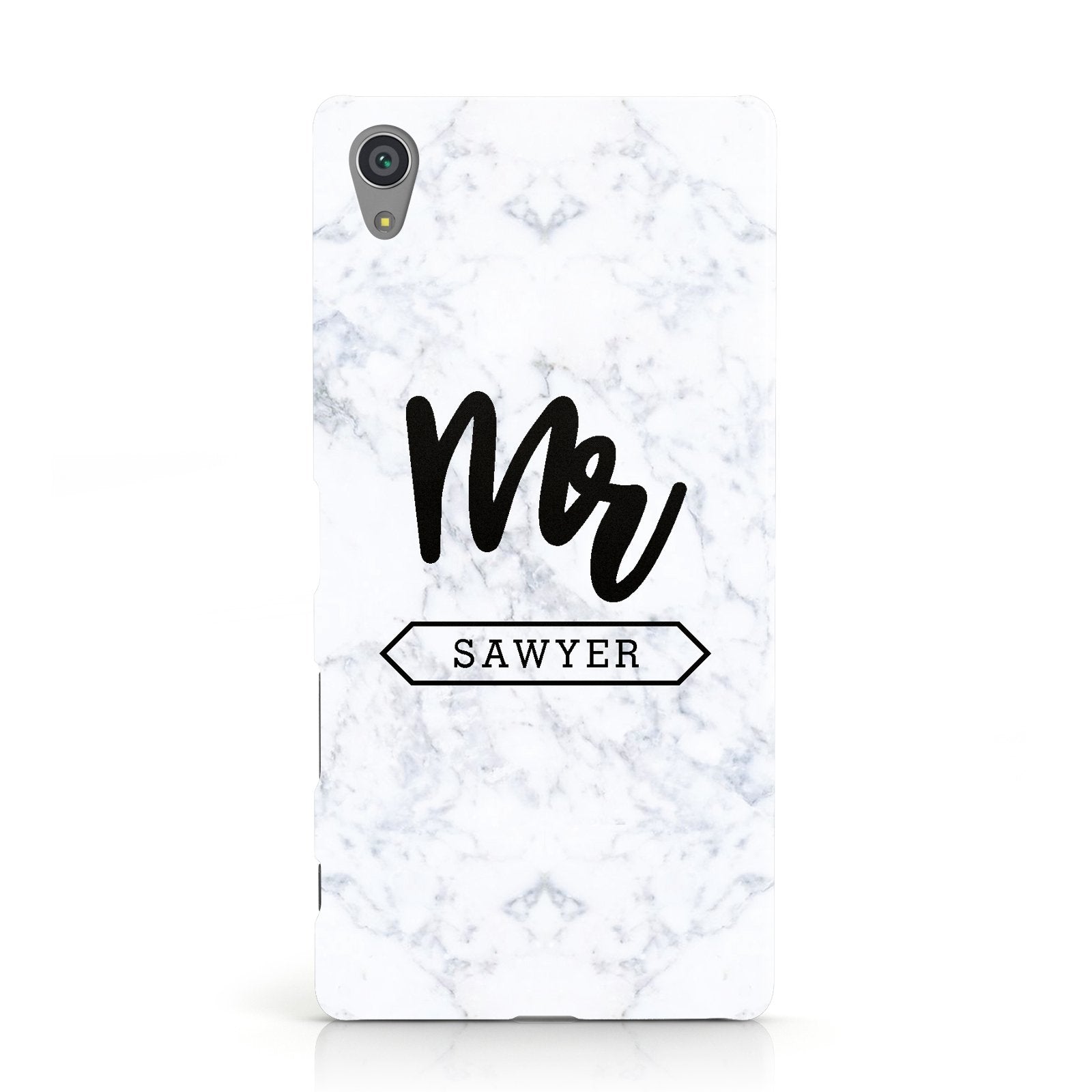 Personalised Black Mr Surname On Marble Sony Xperia Case