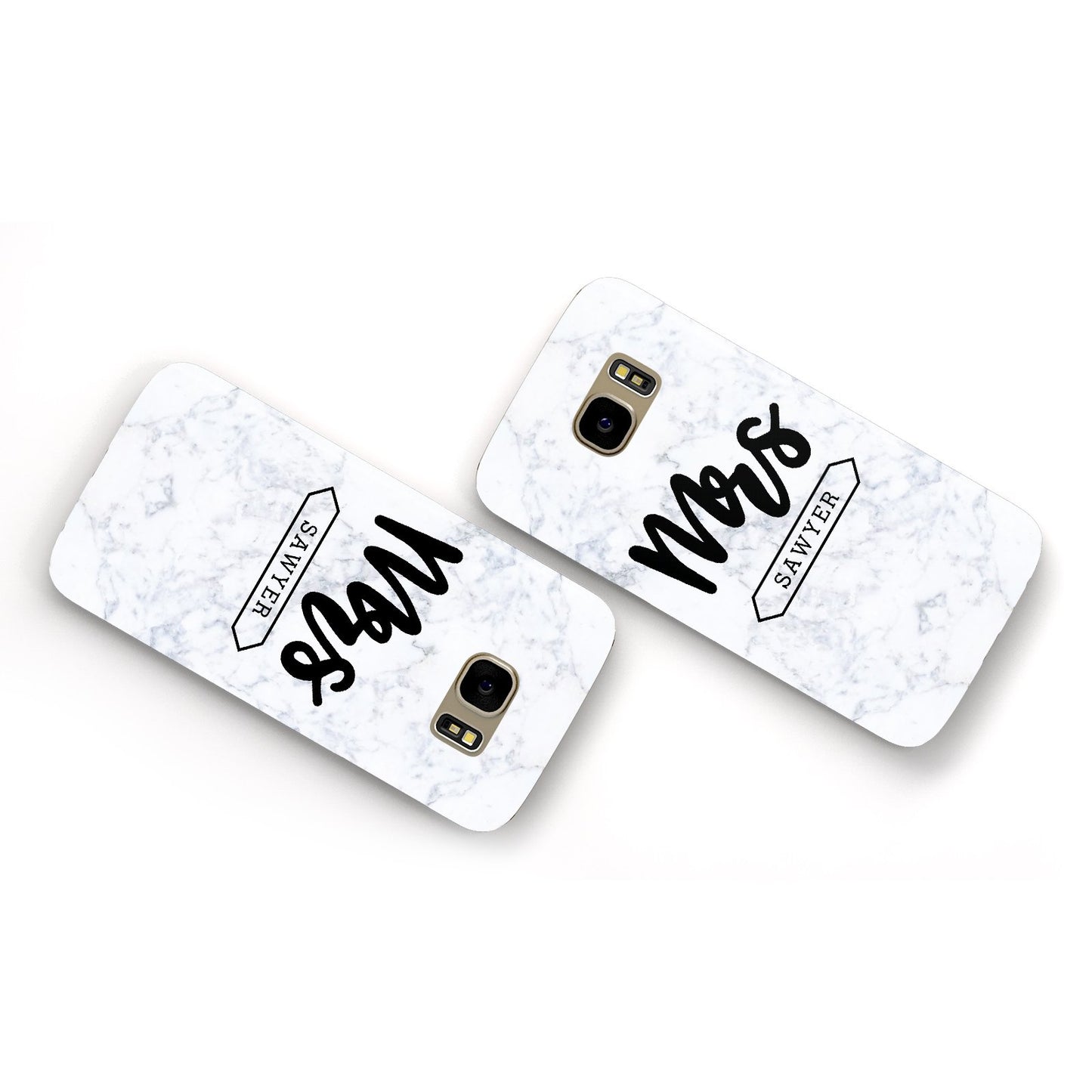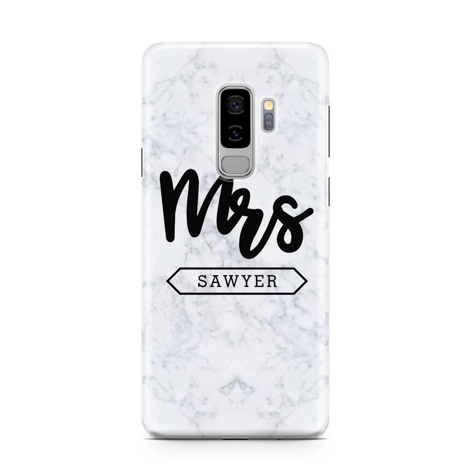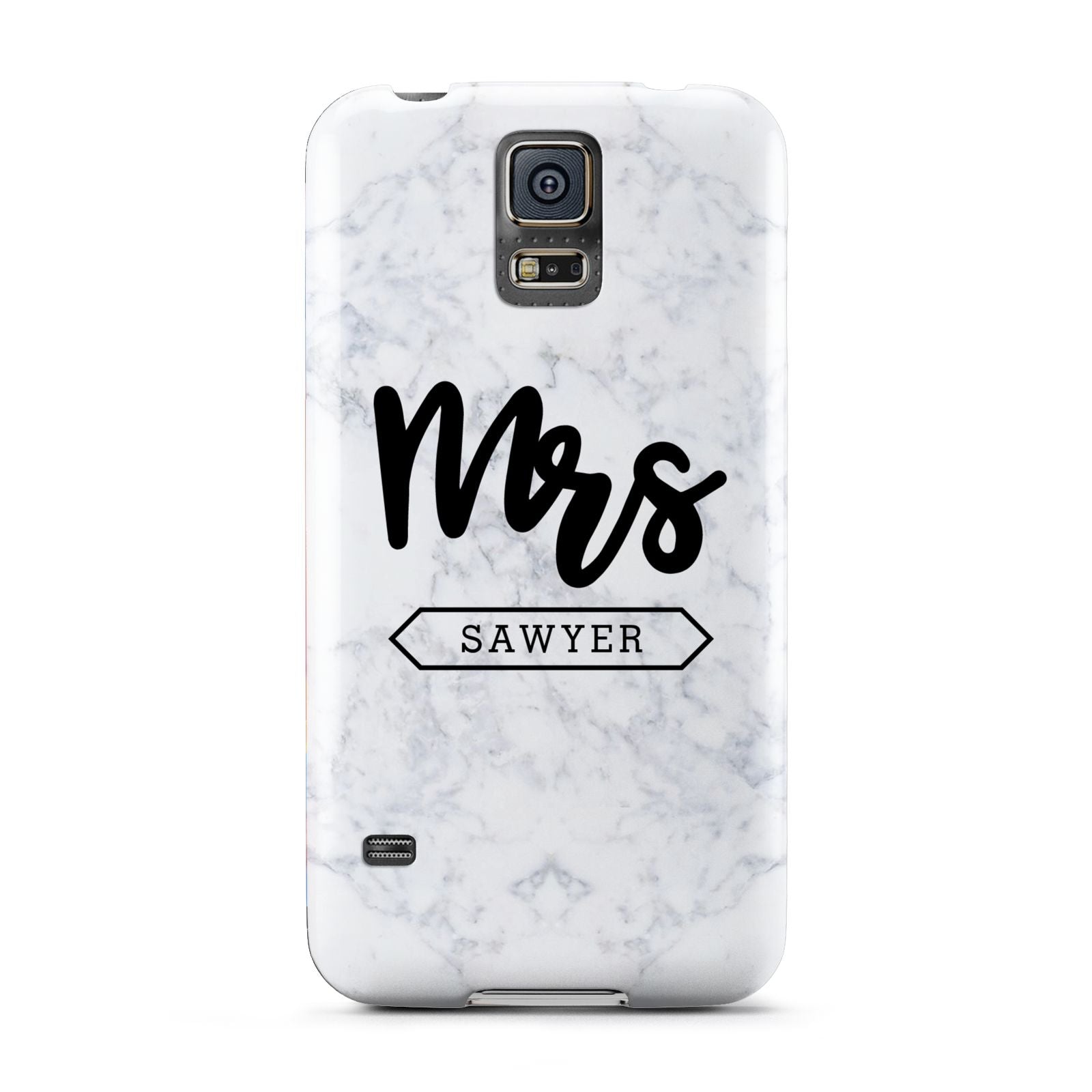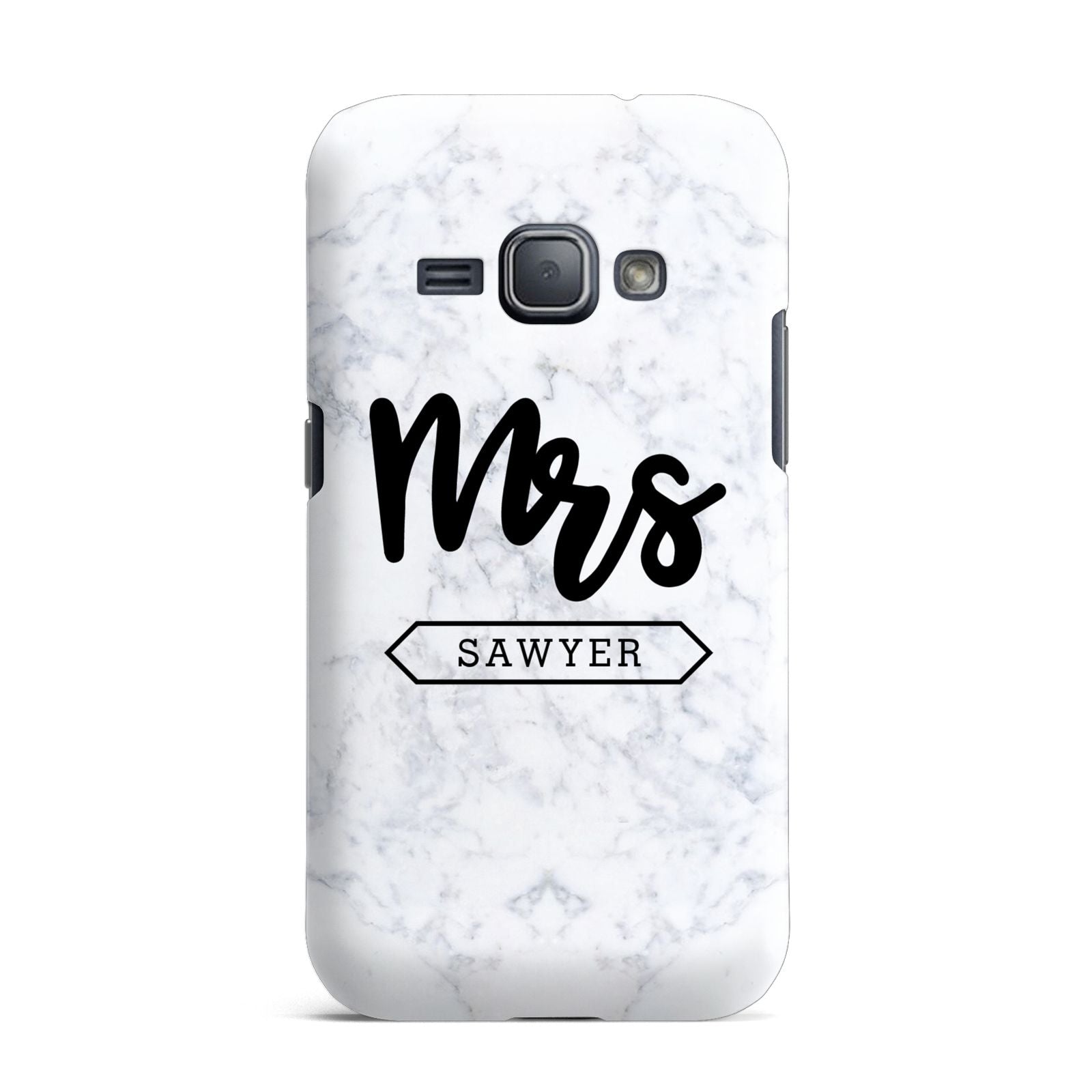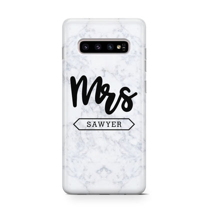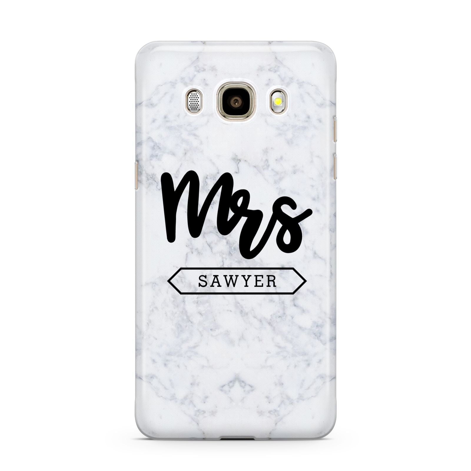 Personalised Black Mrs Surname On Marble Samsung Galaxy Case