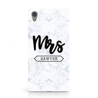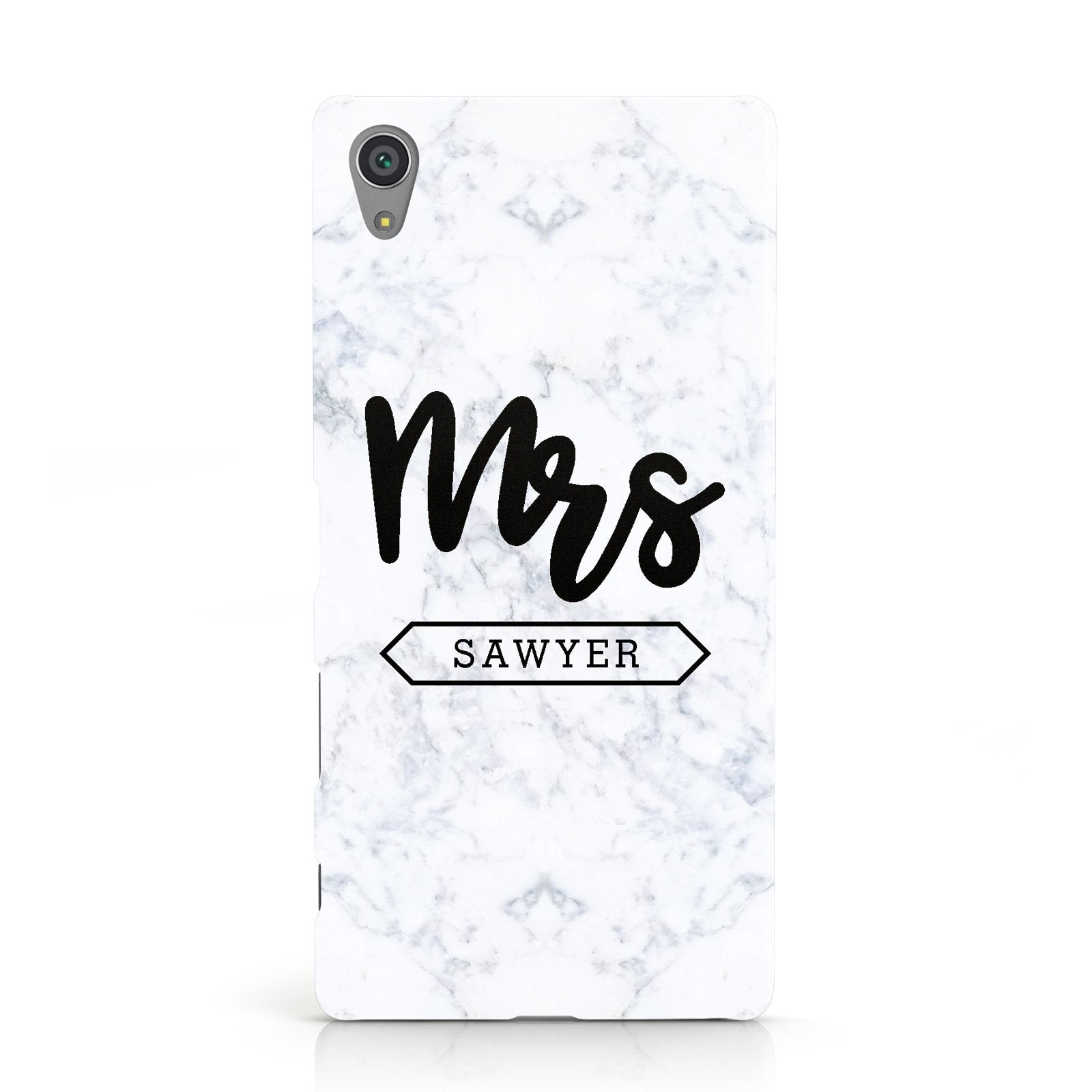 Personalised Black Mrs Surname On Marble Sony Xperia Case