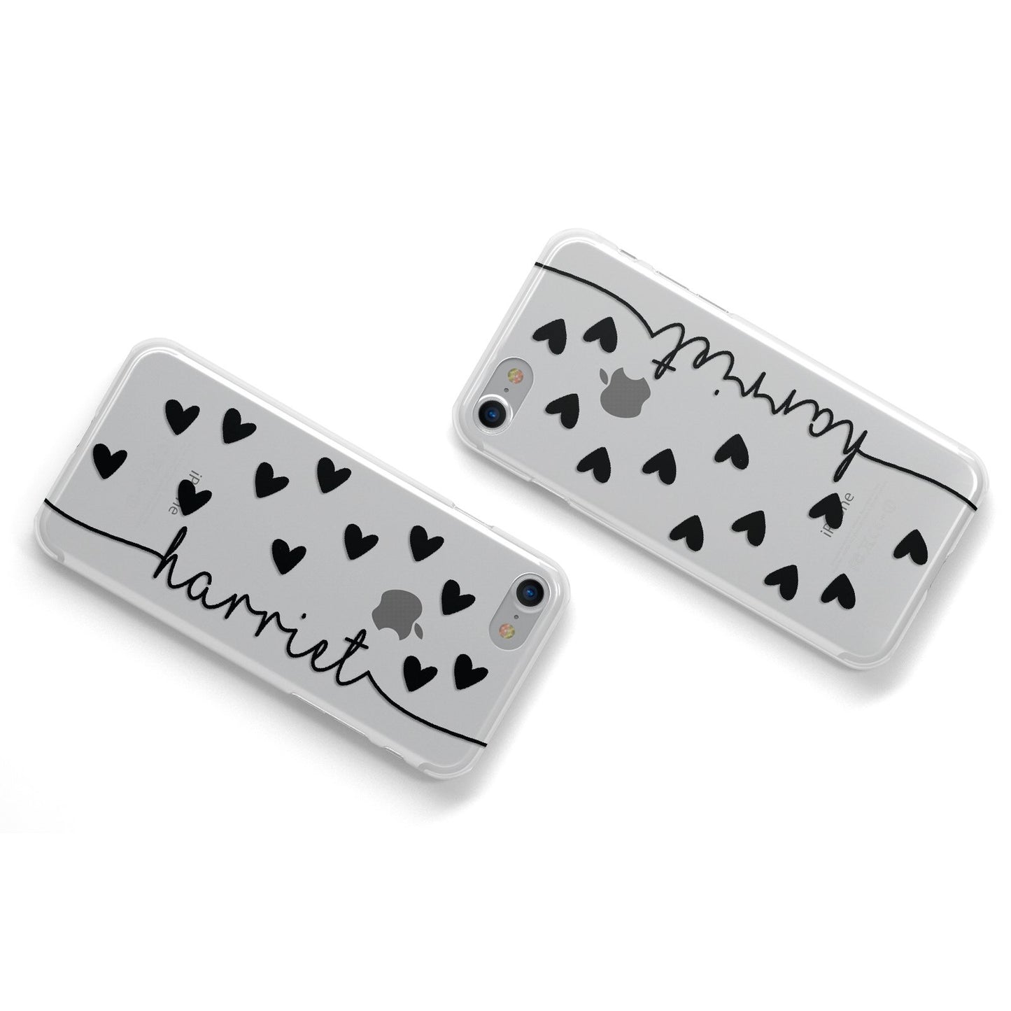 Personalised Black Name Love Hearts Clear Apple iPhone Case