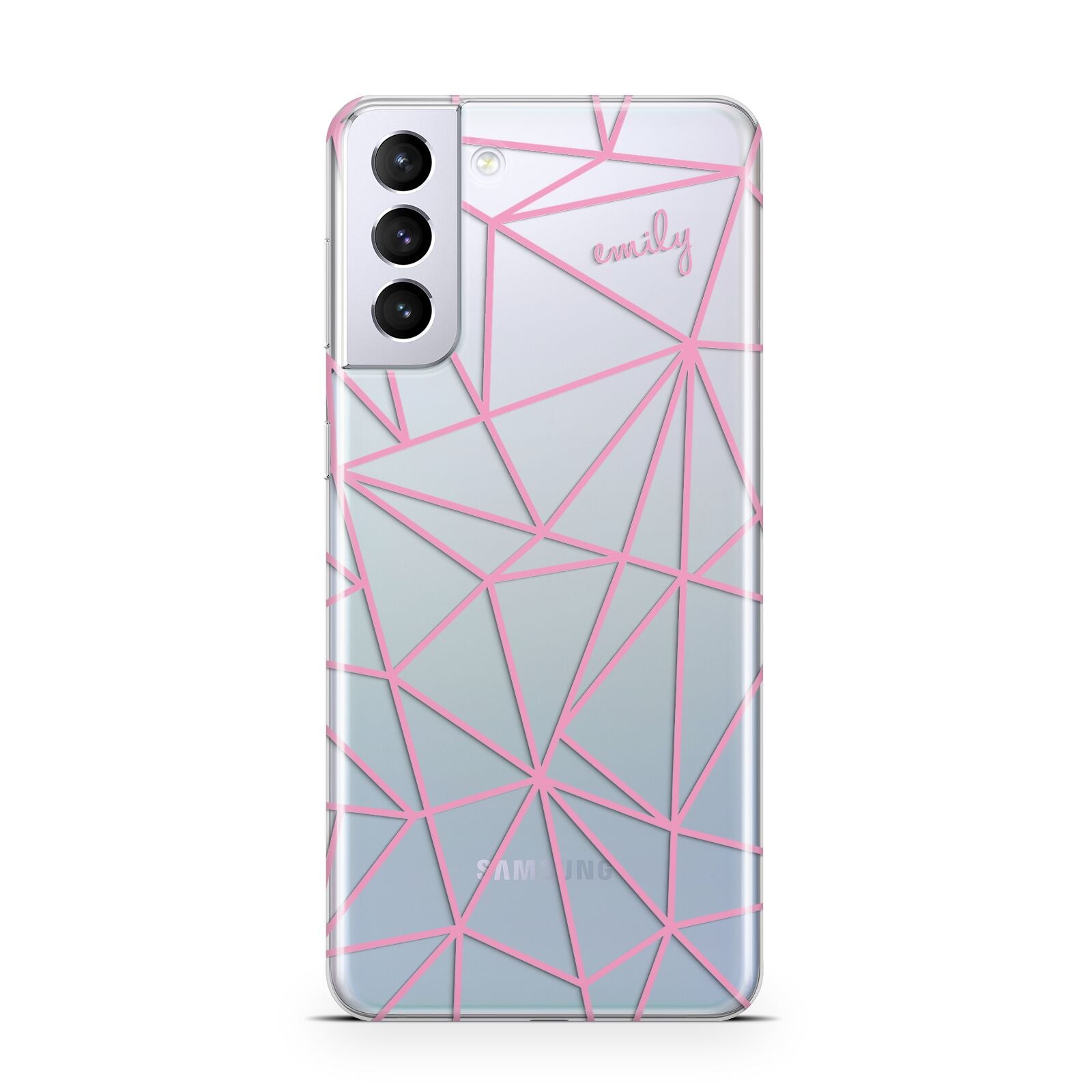 Personalised Clear Outlines & Name Pink Samsung Galaxy Case