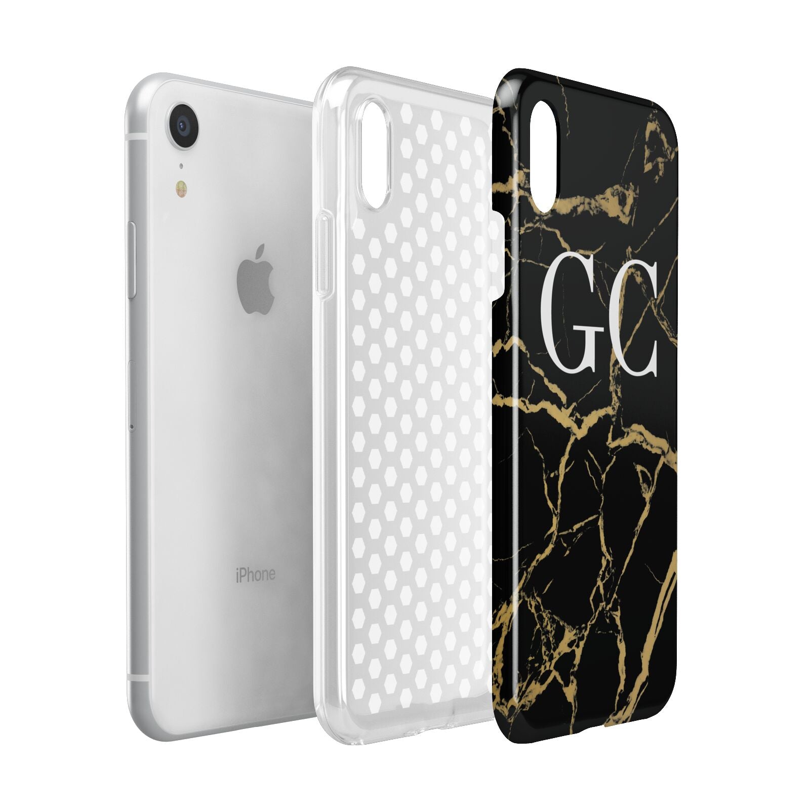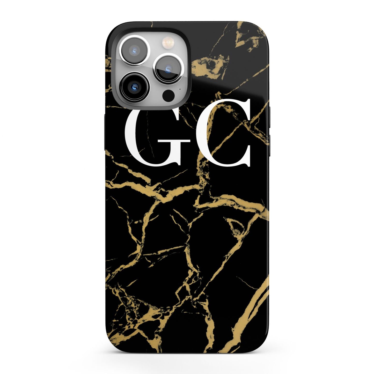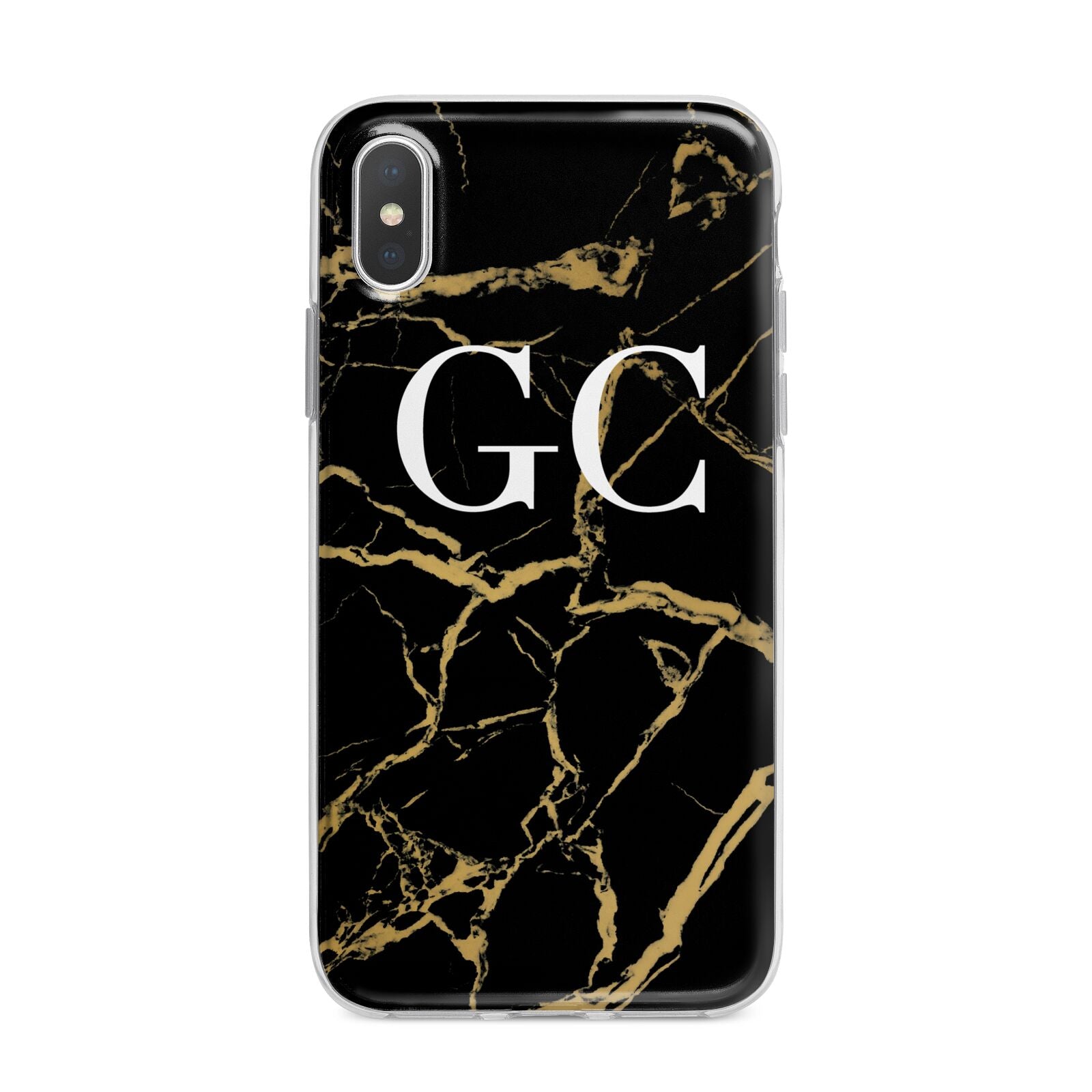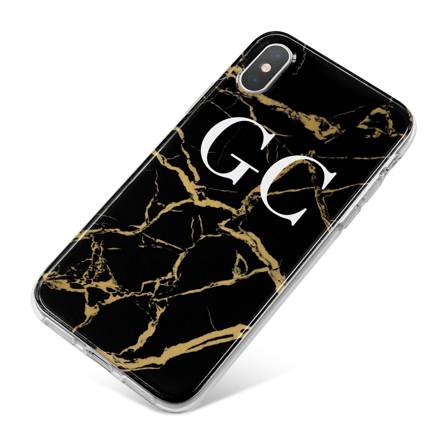 Personalised Gold Black Marble Monogram Apple iPhone Case