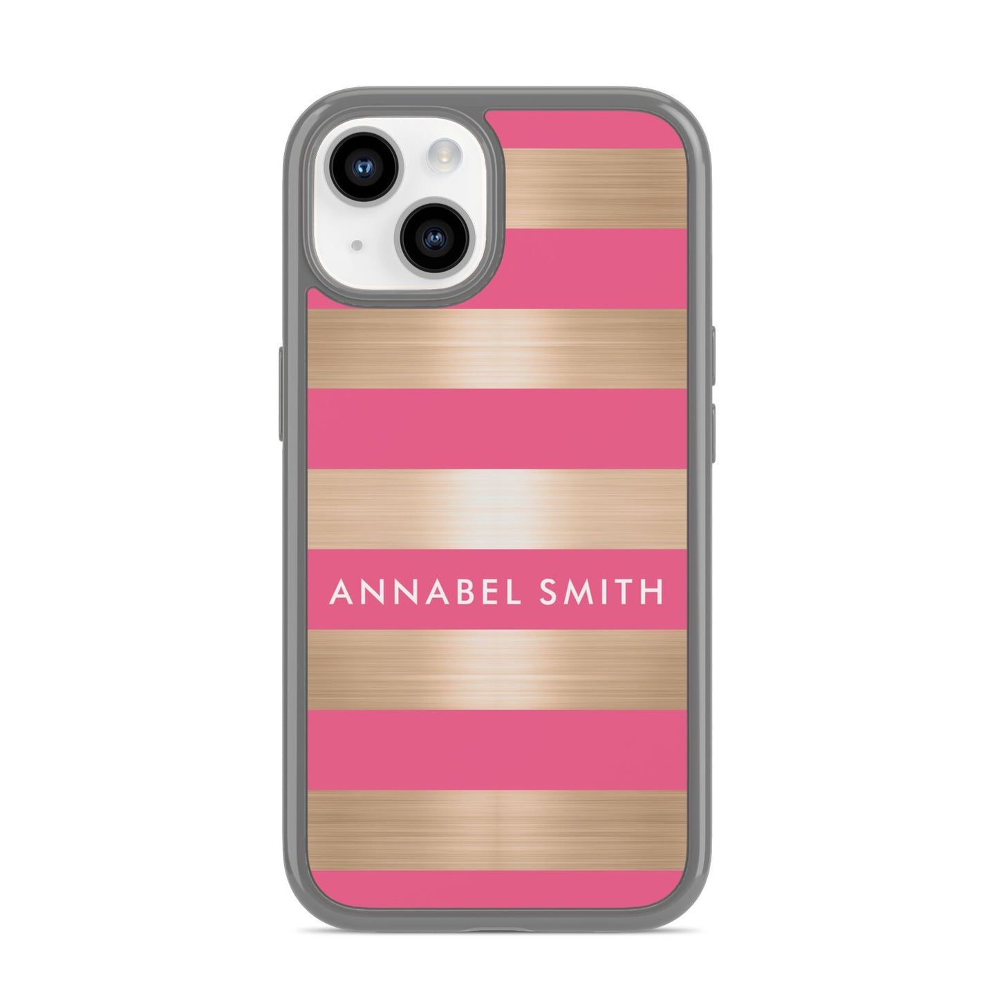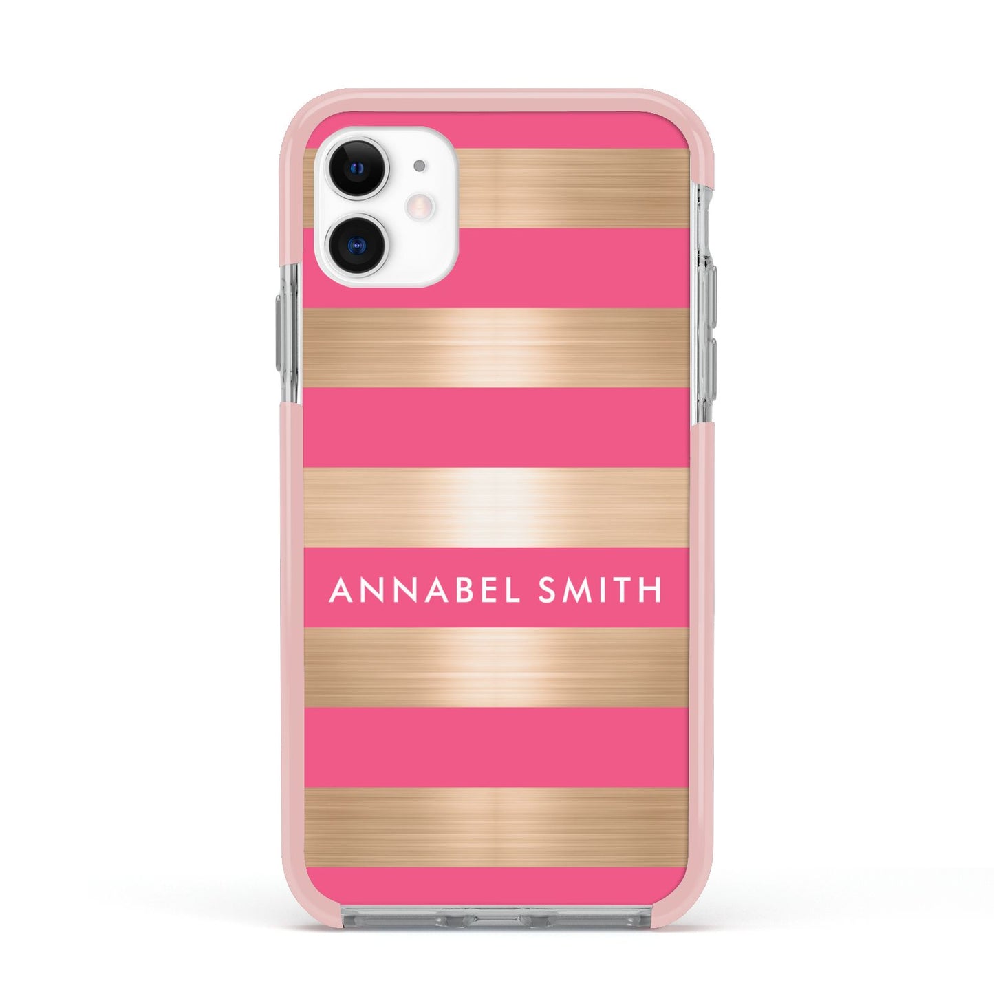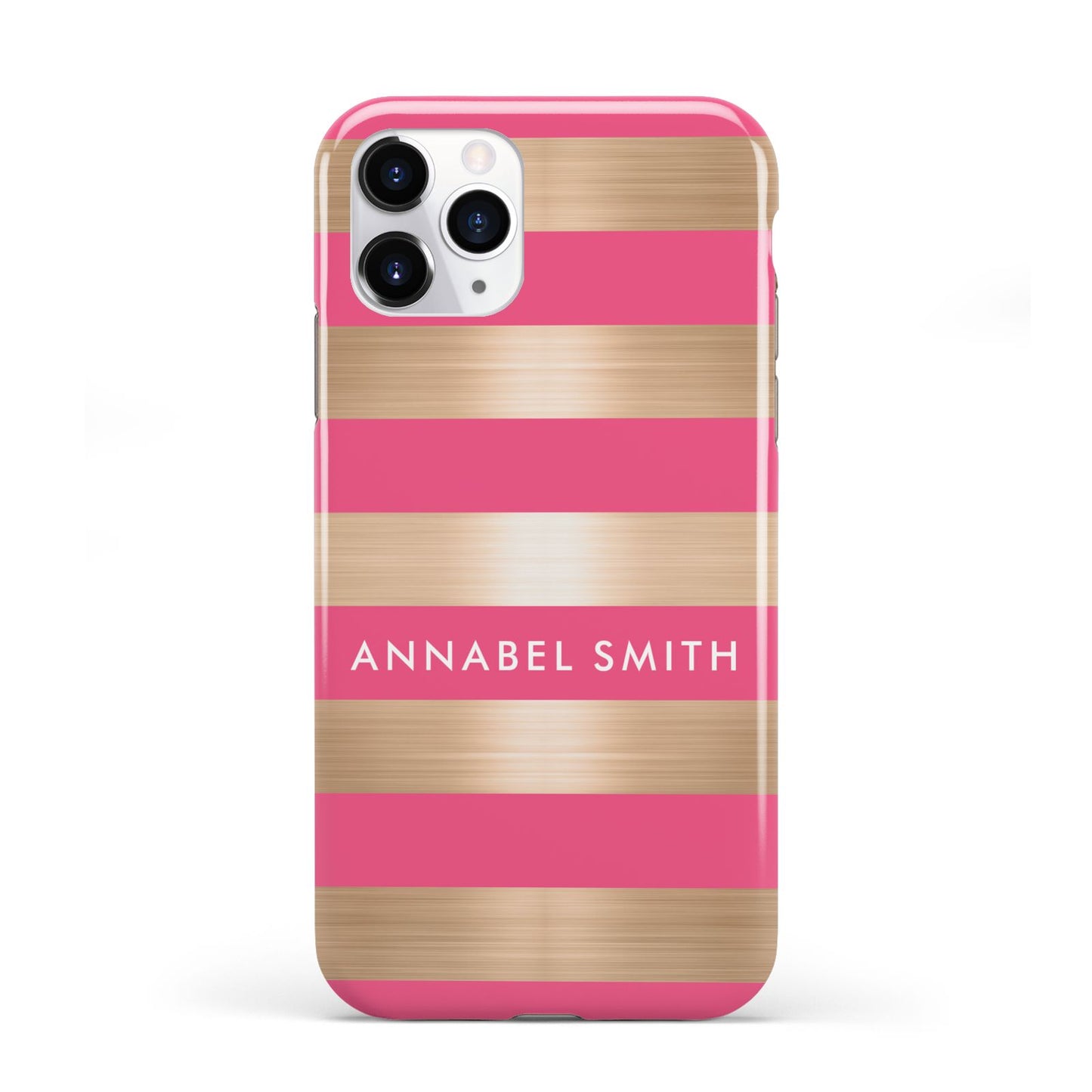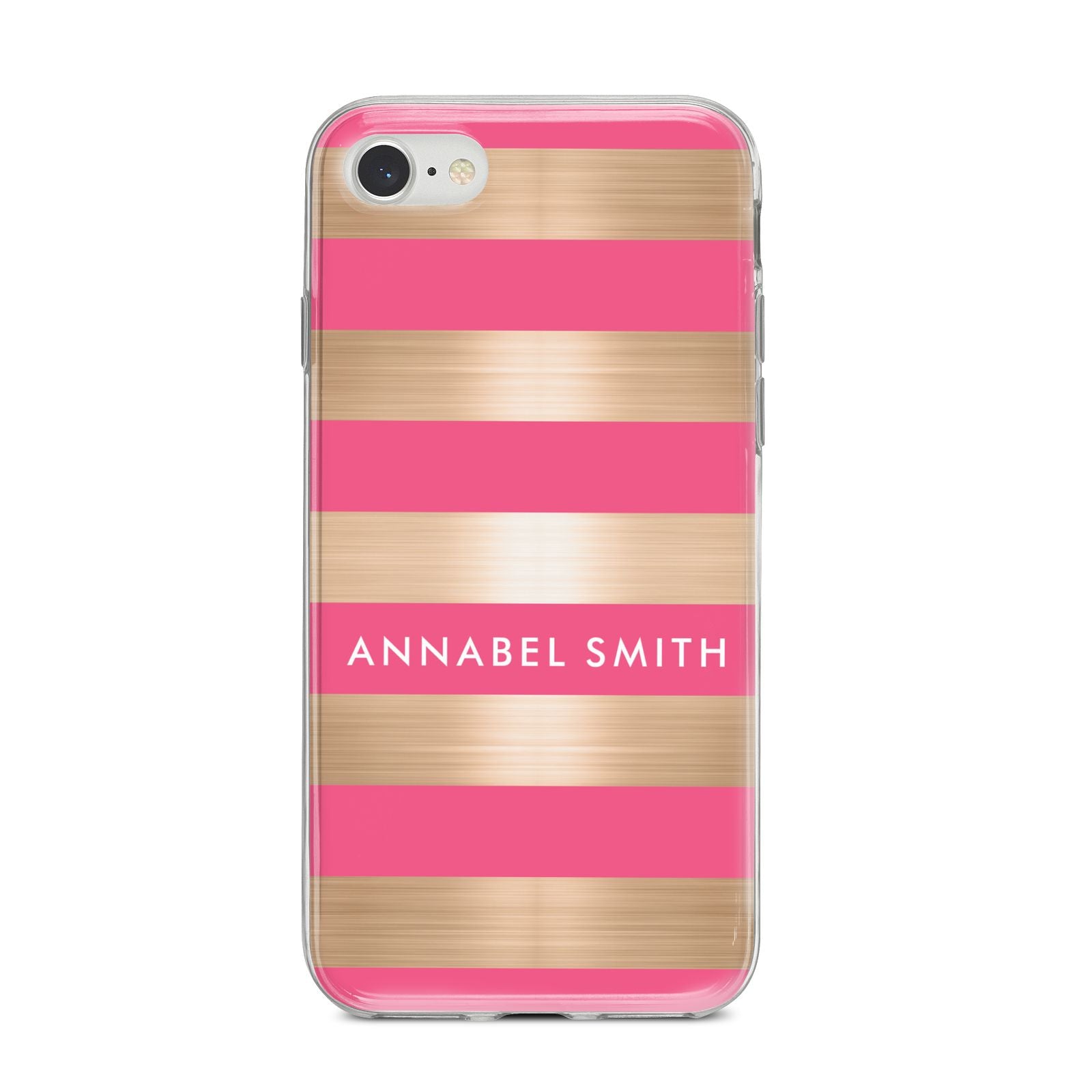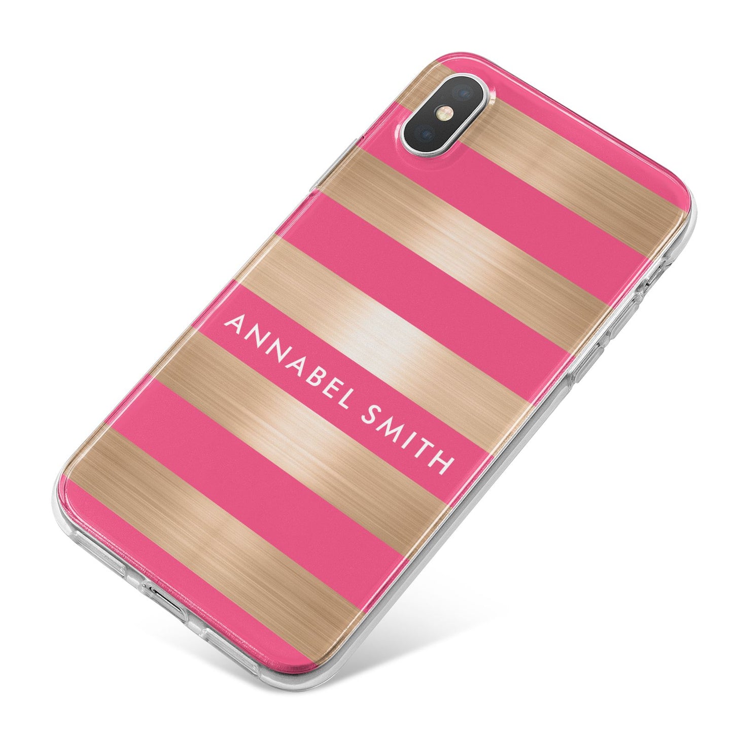 Personalised Gold Pink Stripes Name Initial Apple iPhone Case