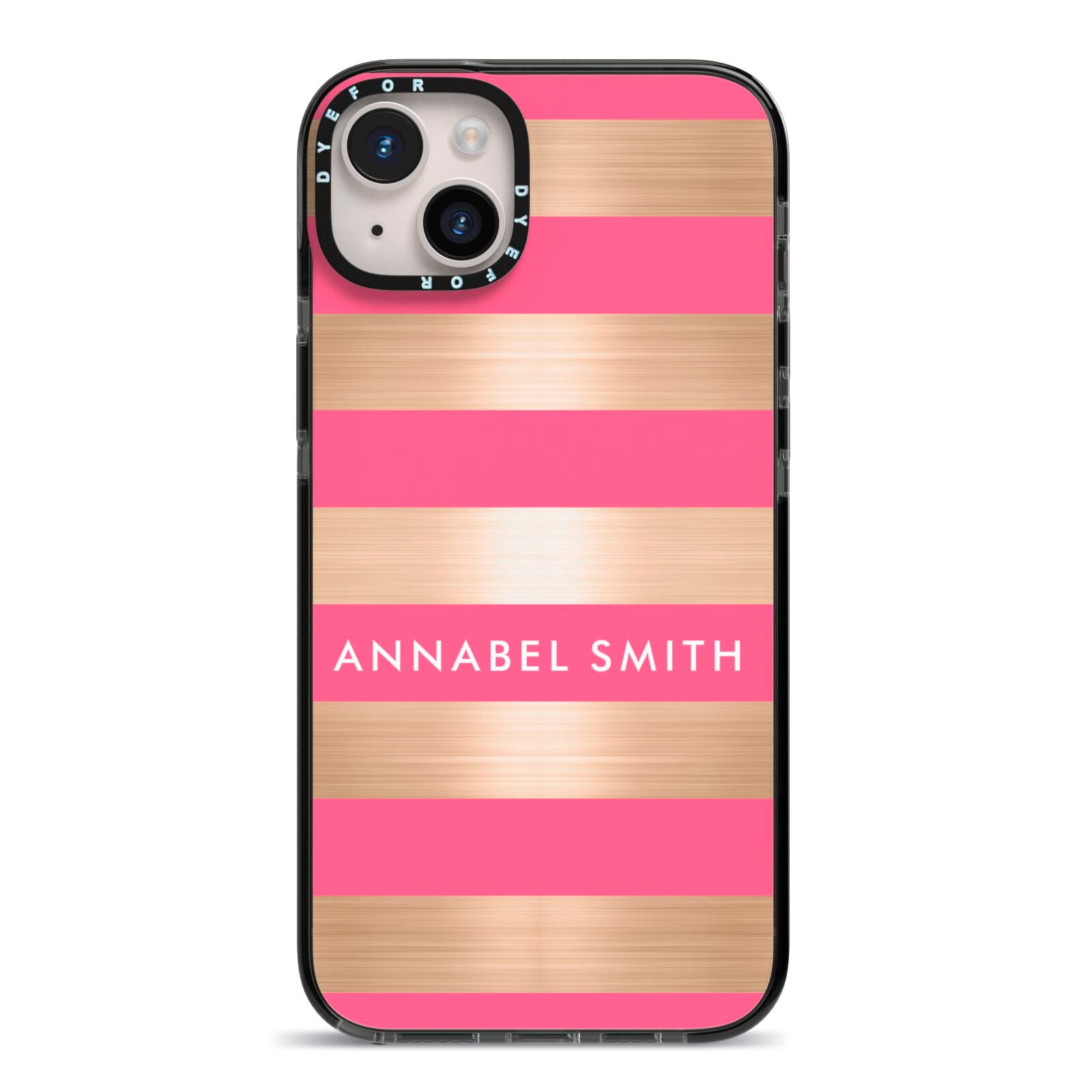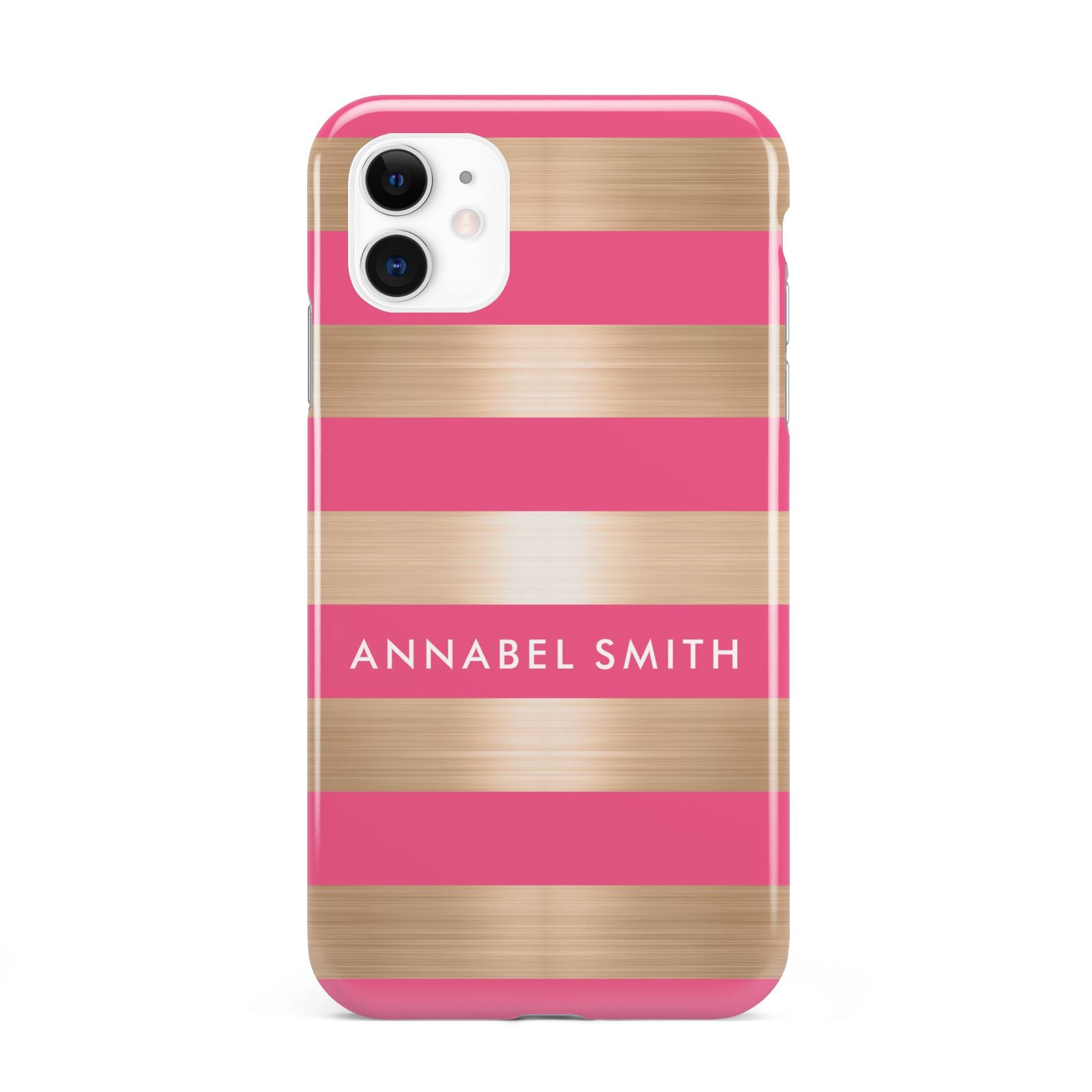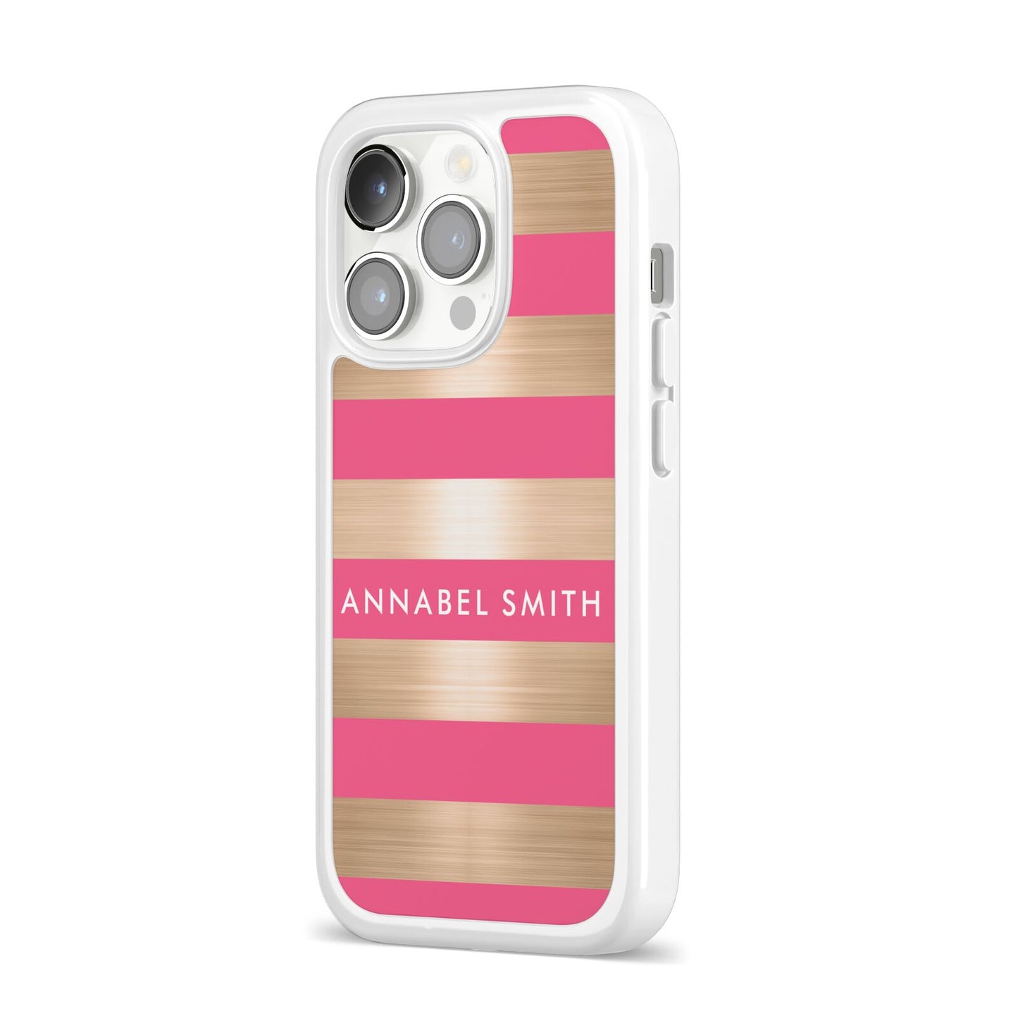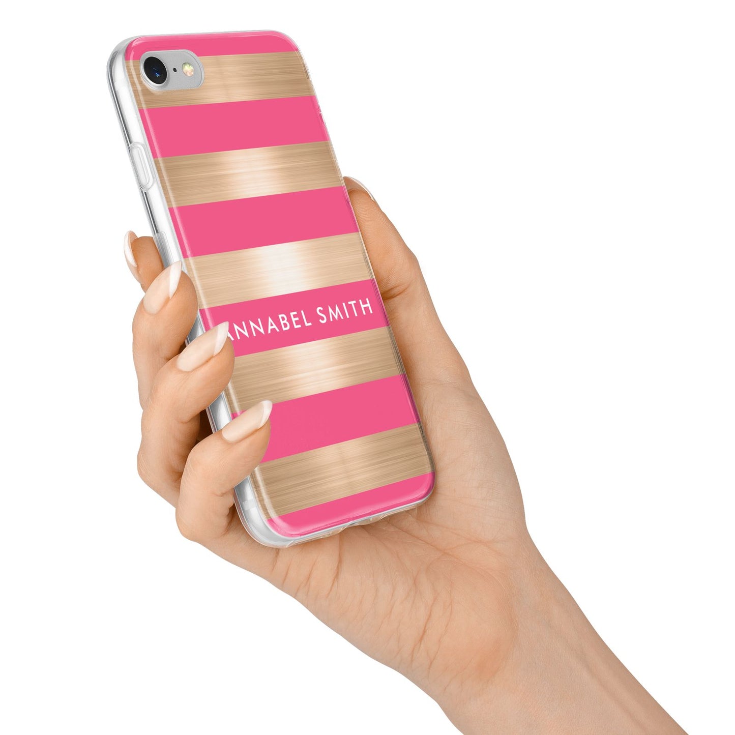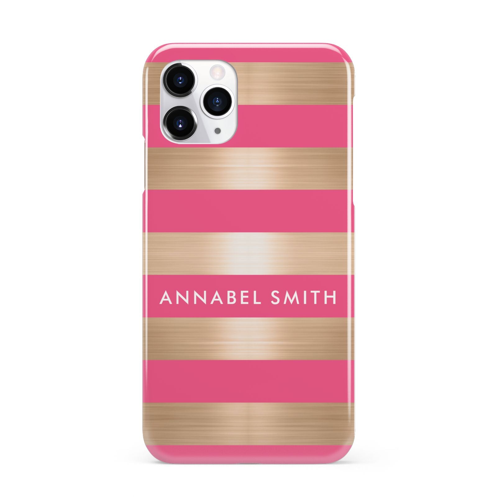 Personalised Gold Pink Stripes Name Initial Apple iPhone Case