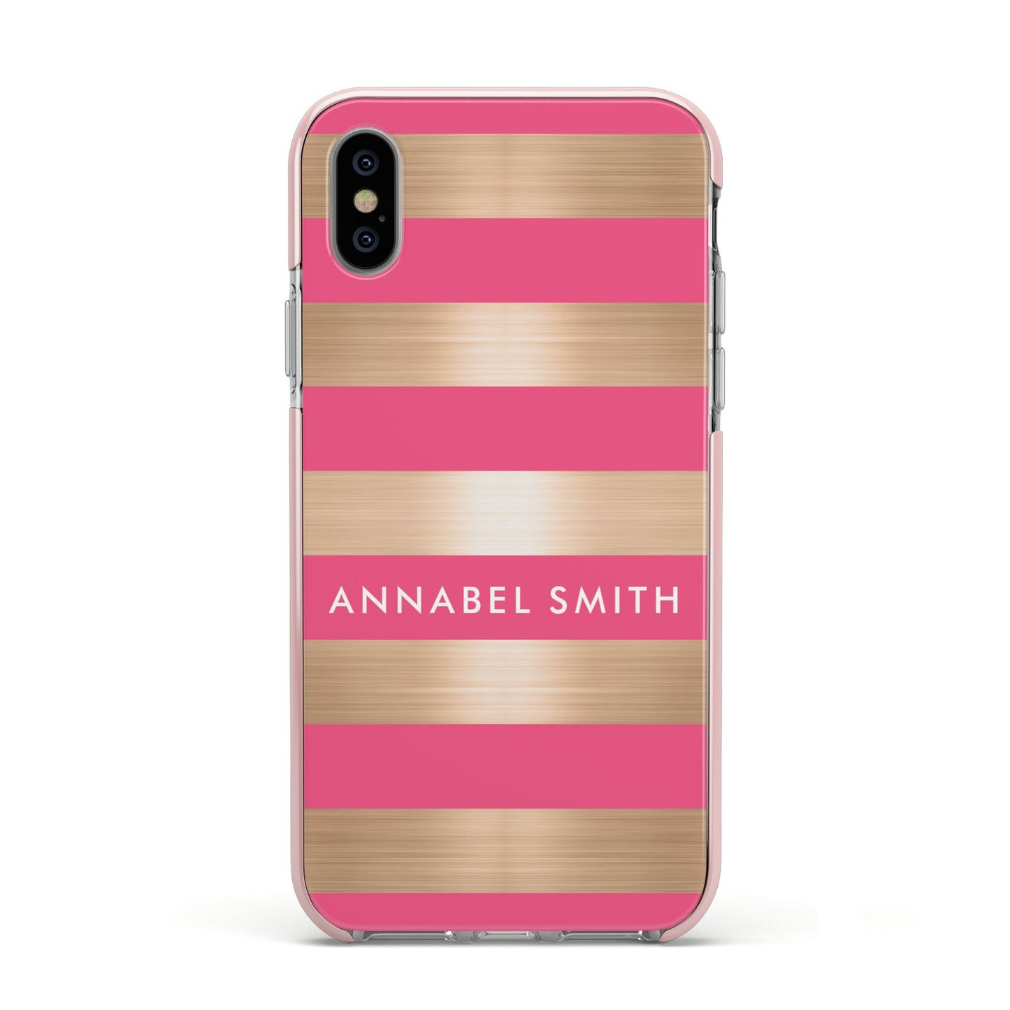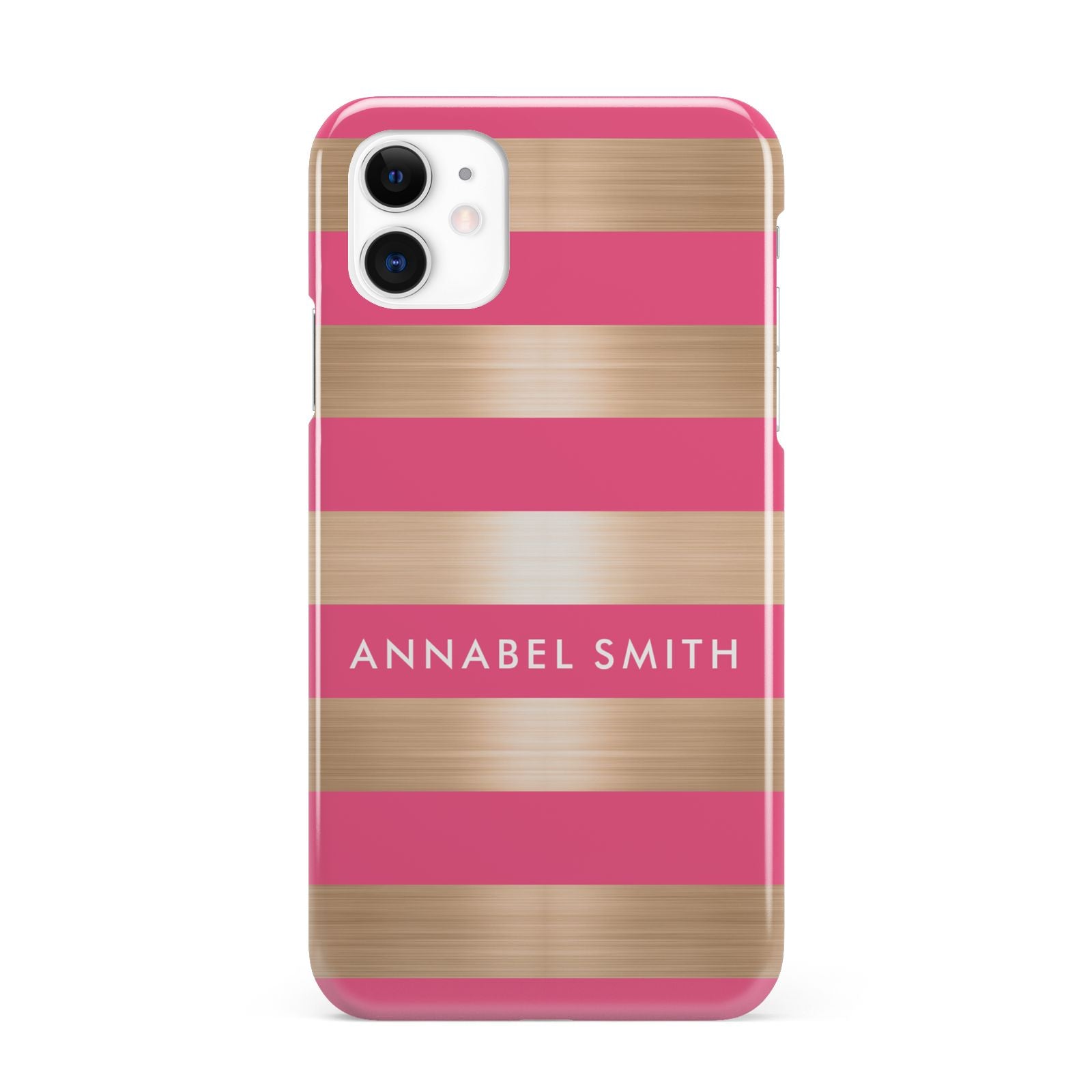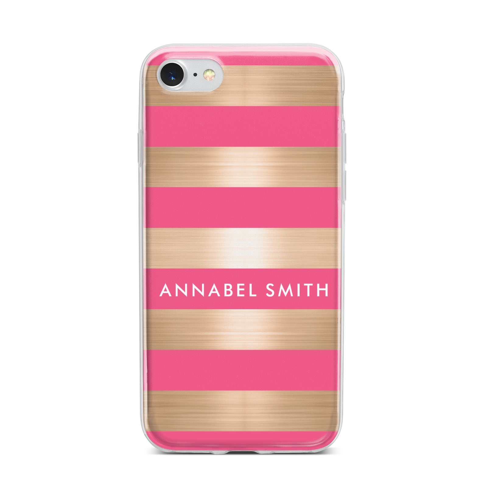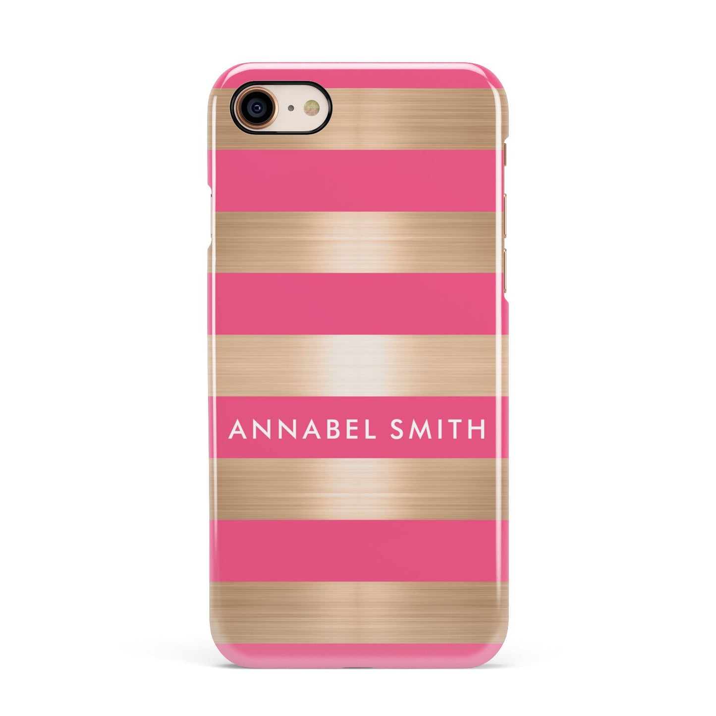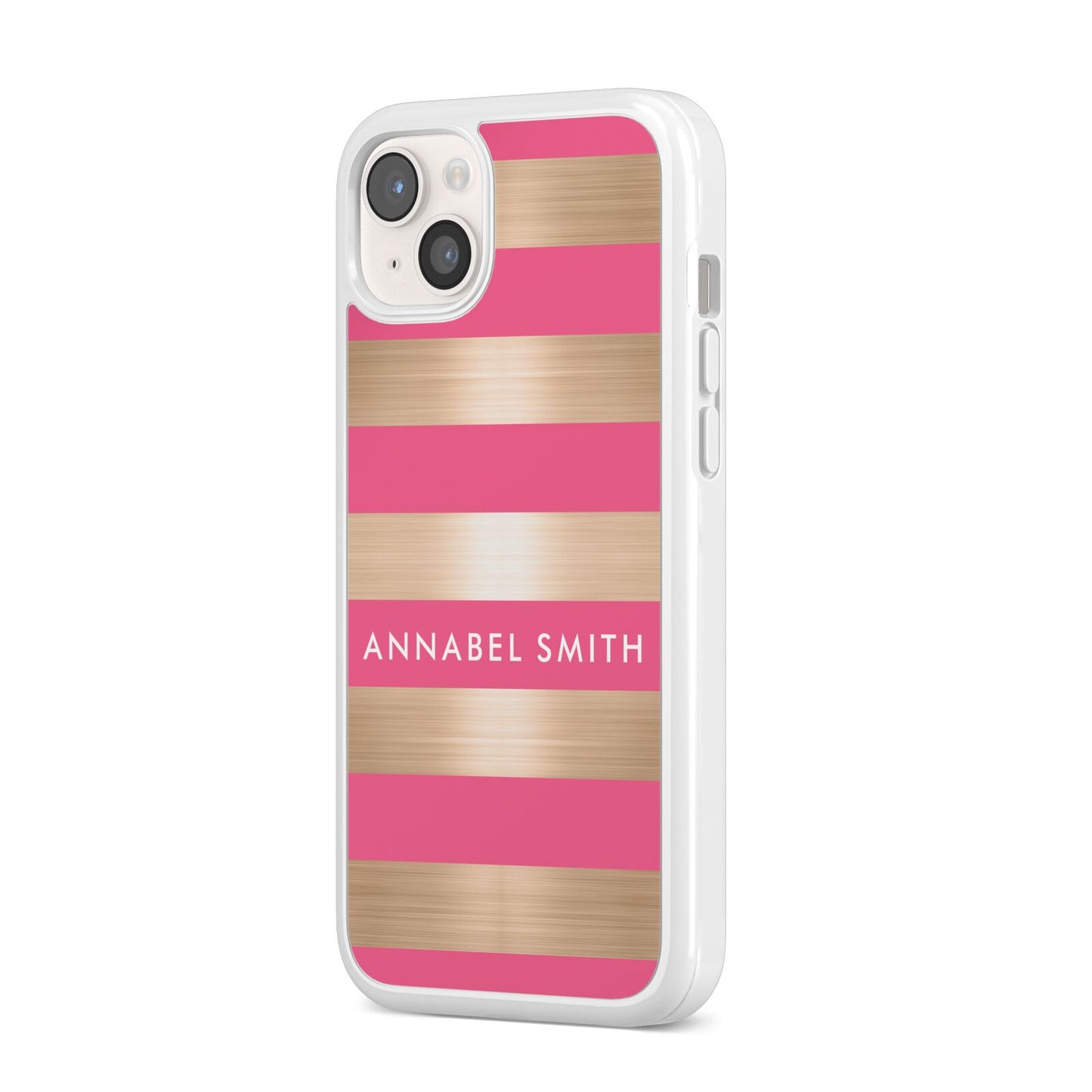 Personalised Gold Pink Stripes Name Initial Apple iPhone Case