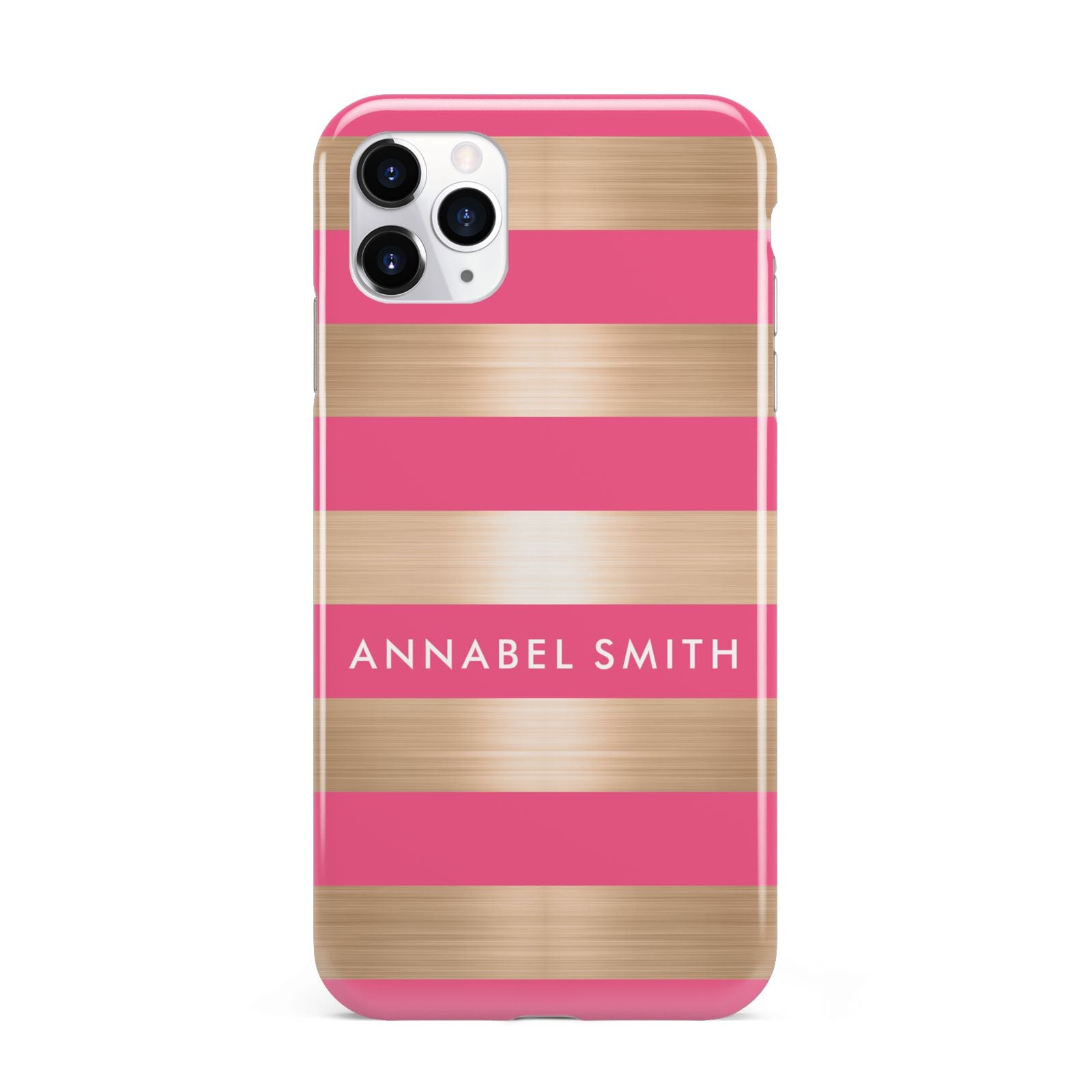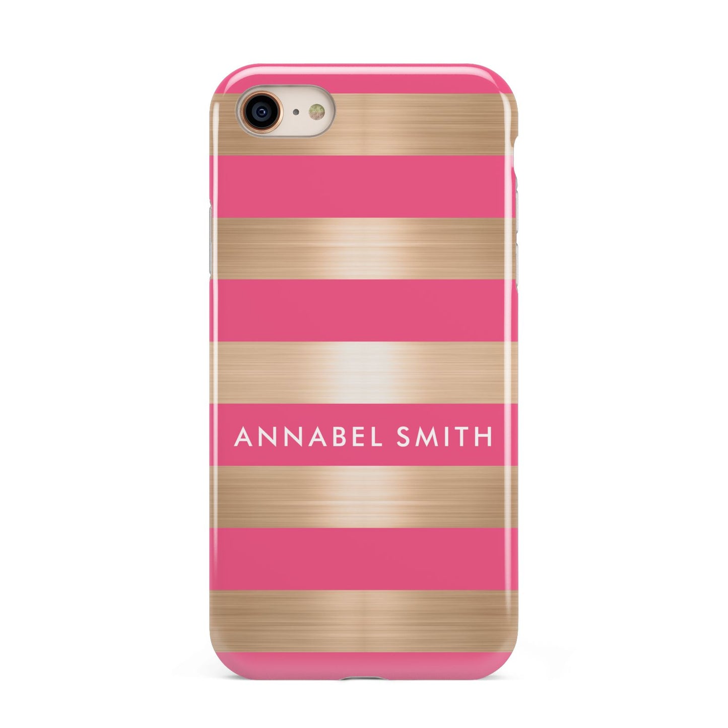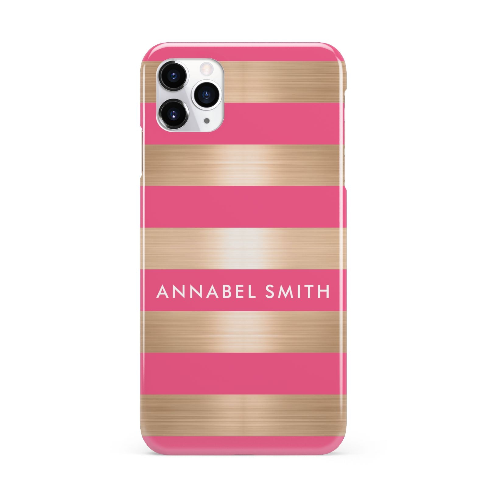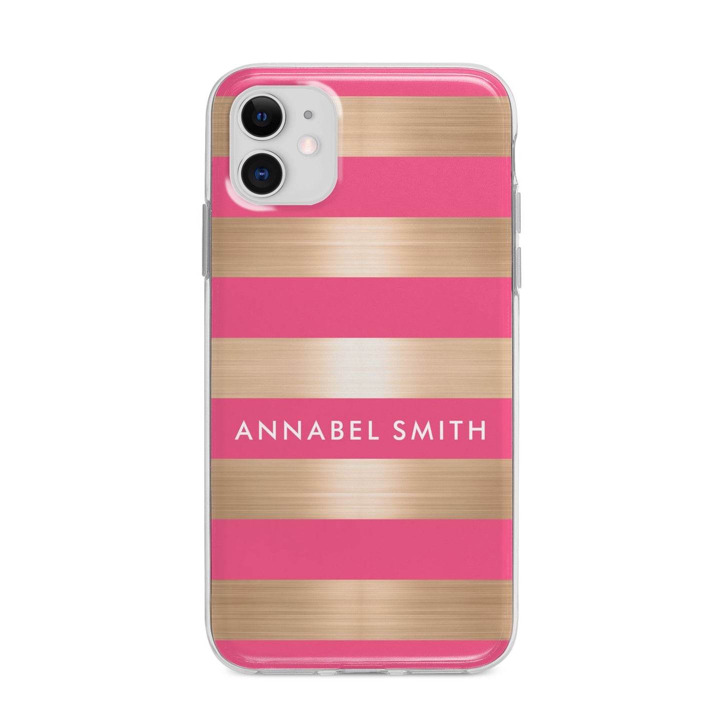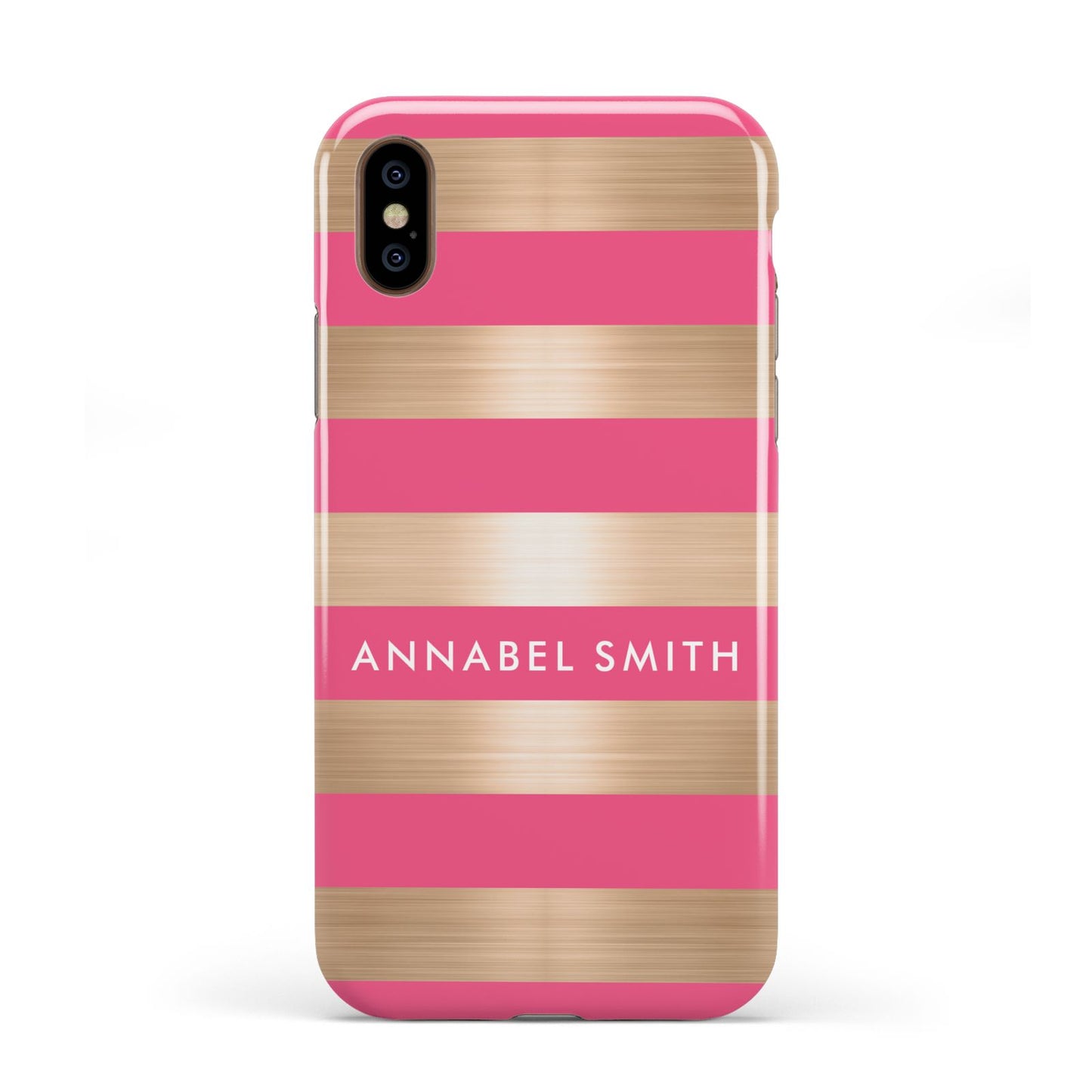 Personalised Gold Pink Stripes Name Initial Apple iPhone Case