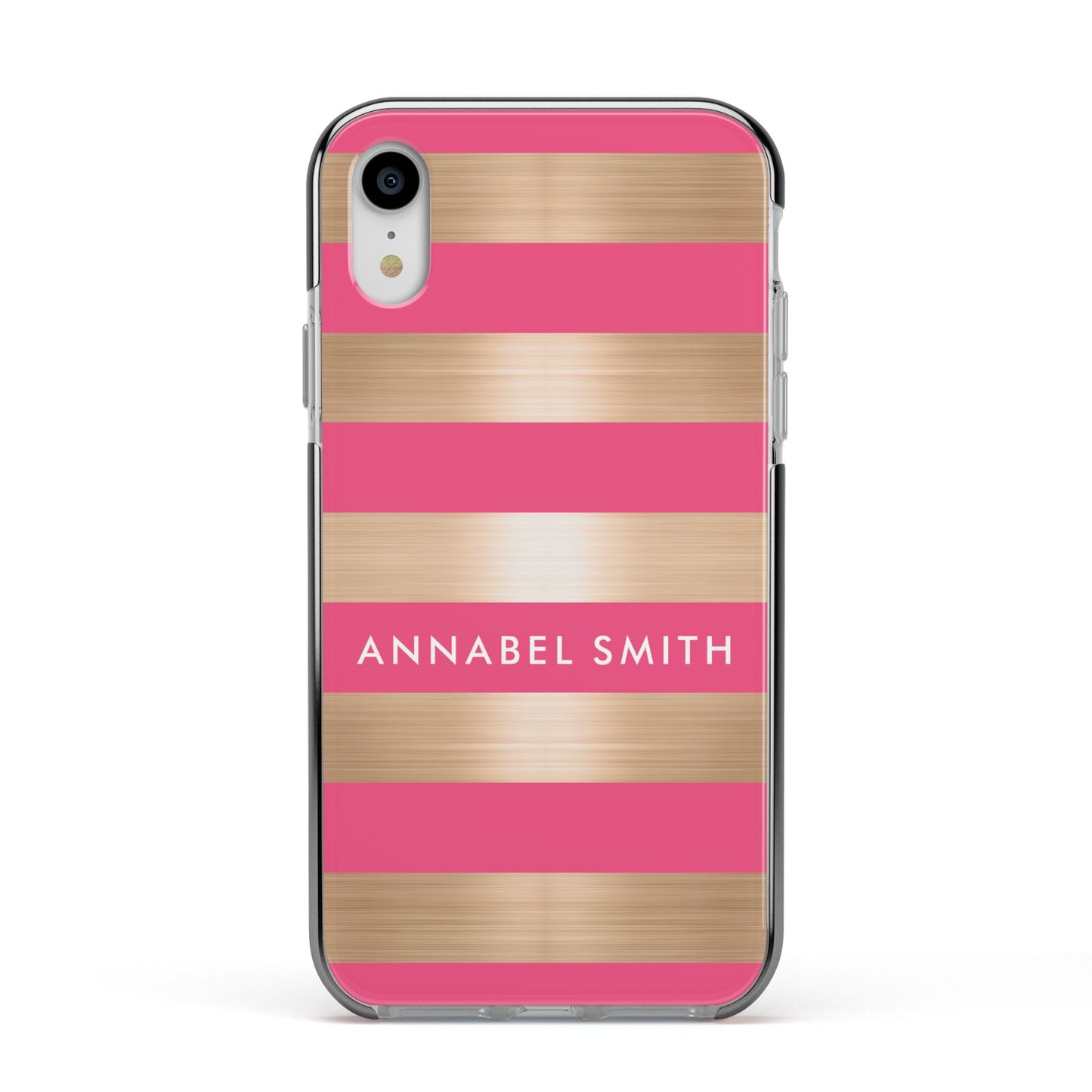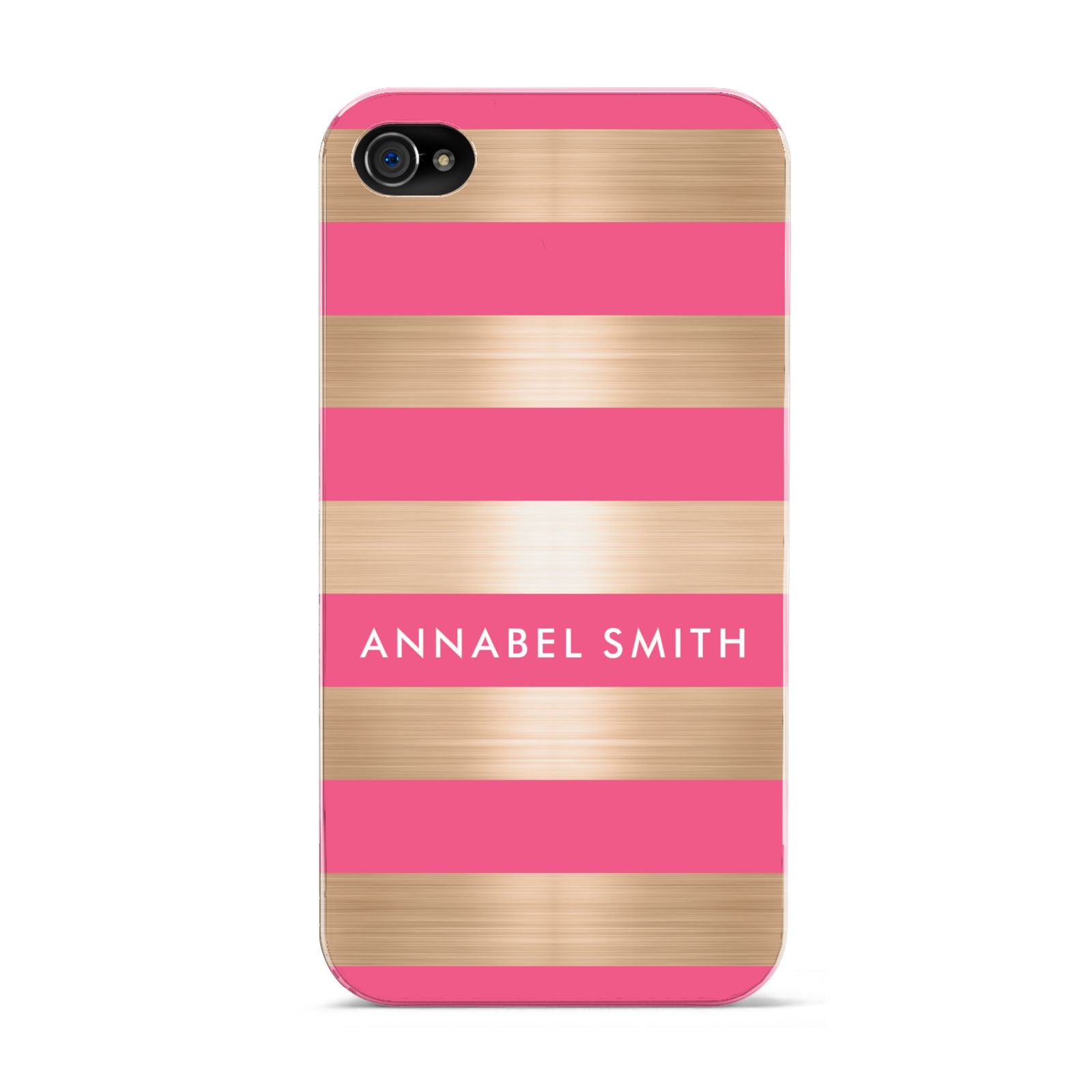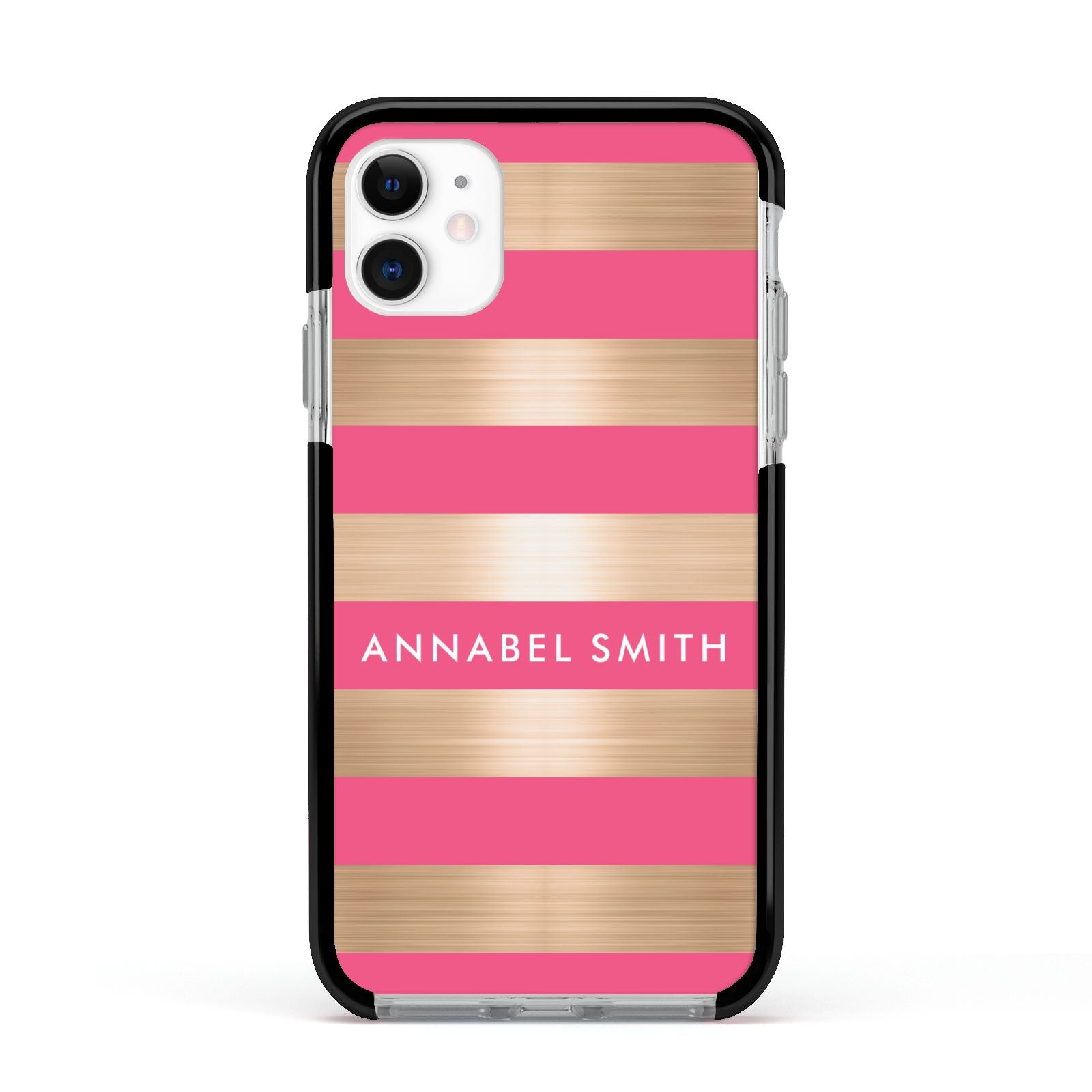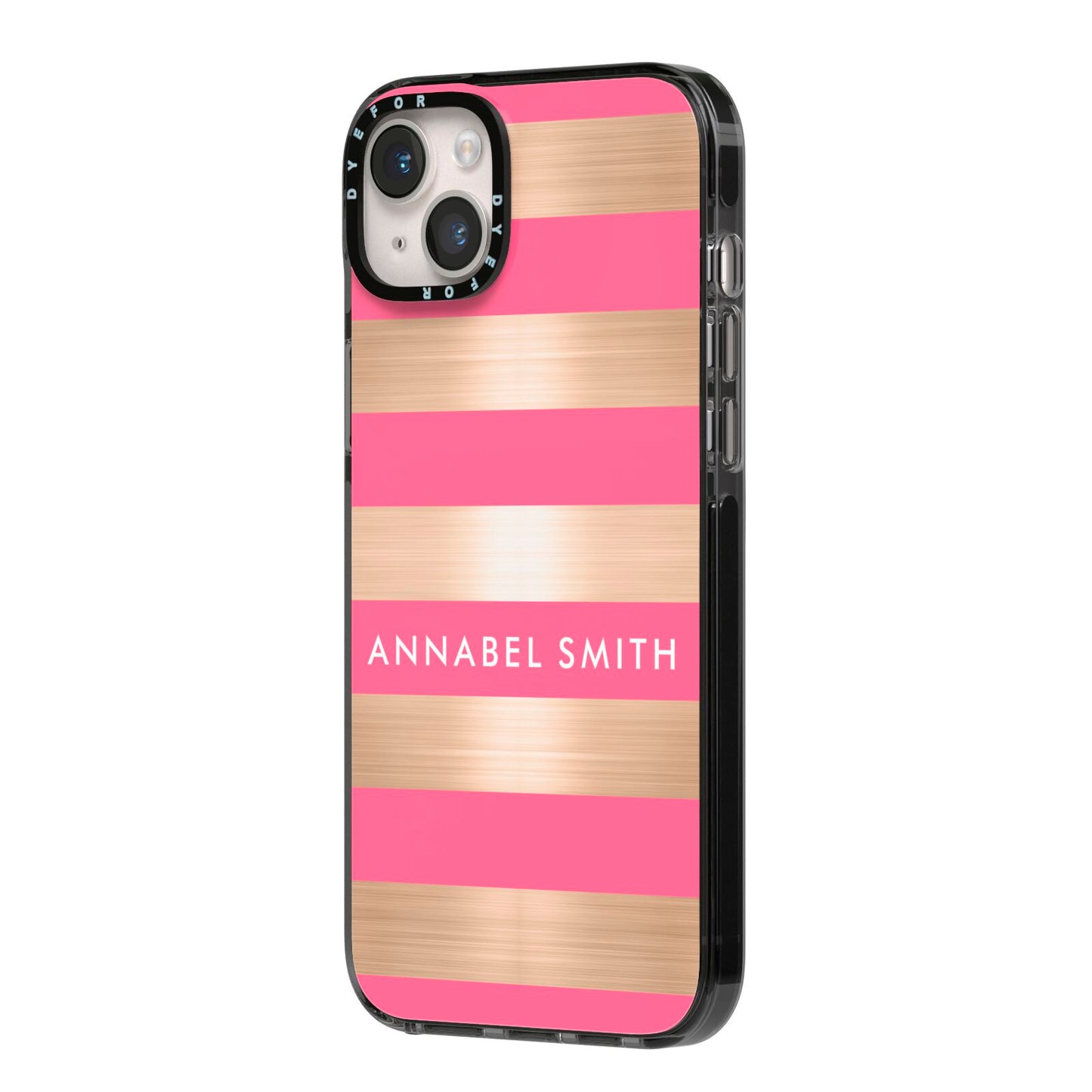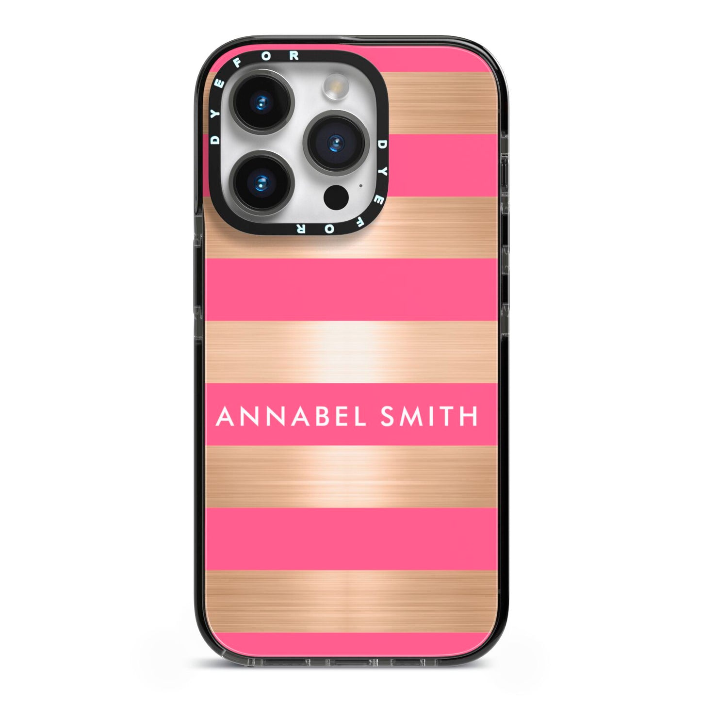 Personalised Gold Pink Stripes Name Initial Apple iPhone Case