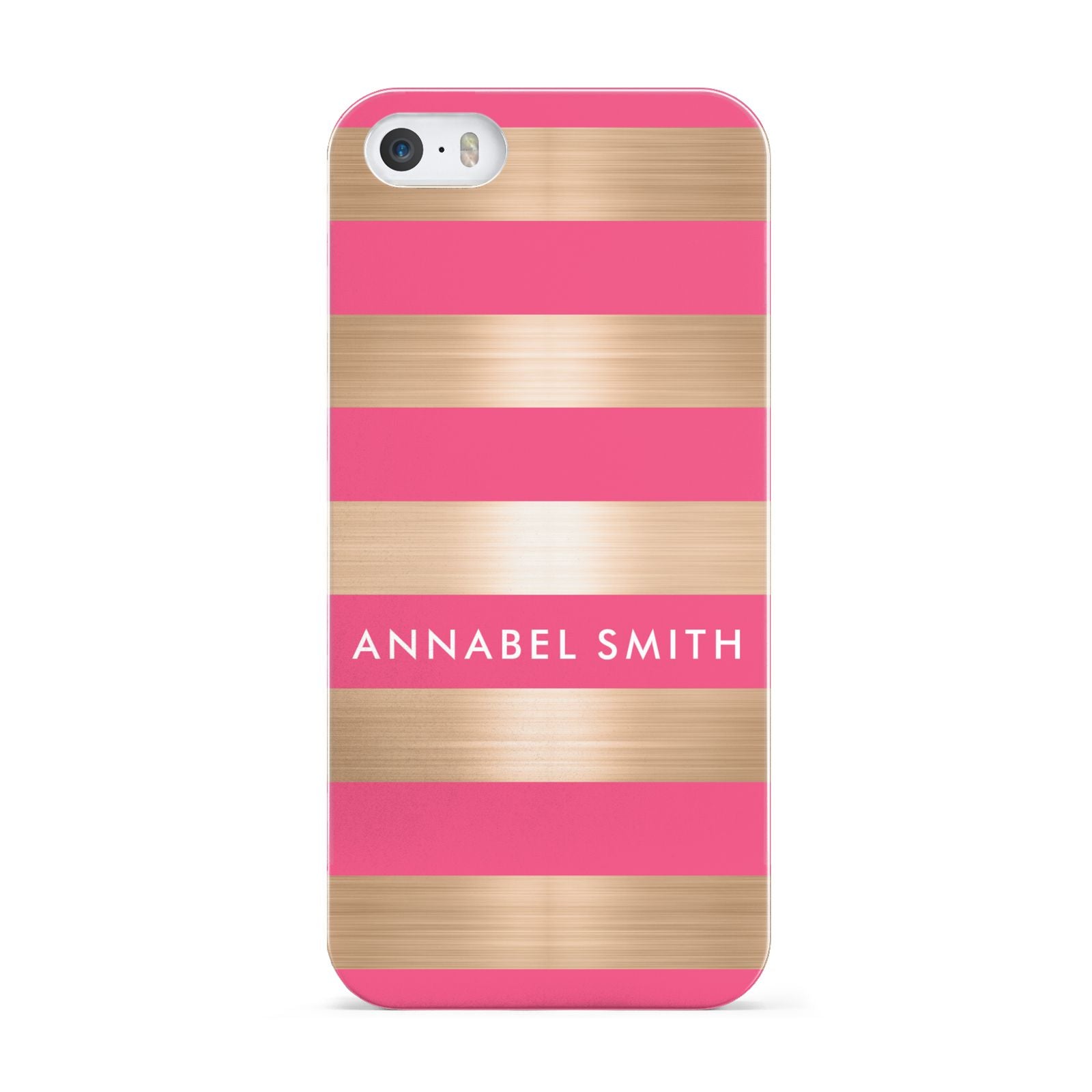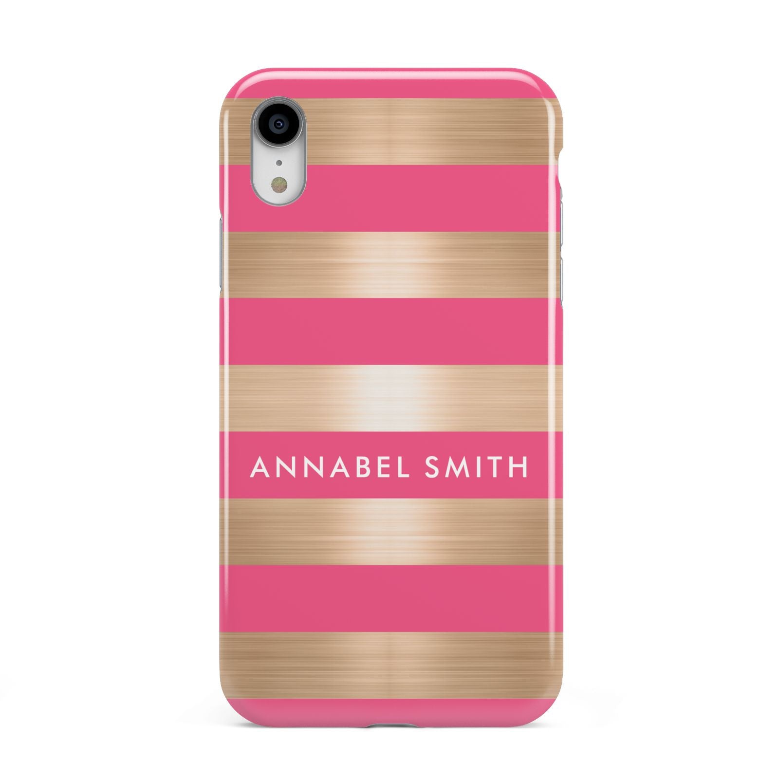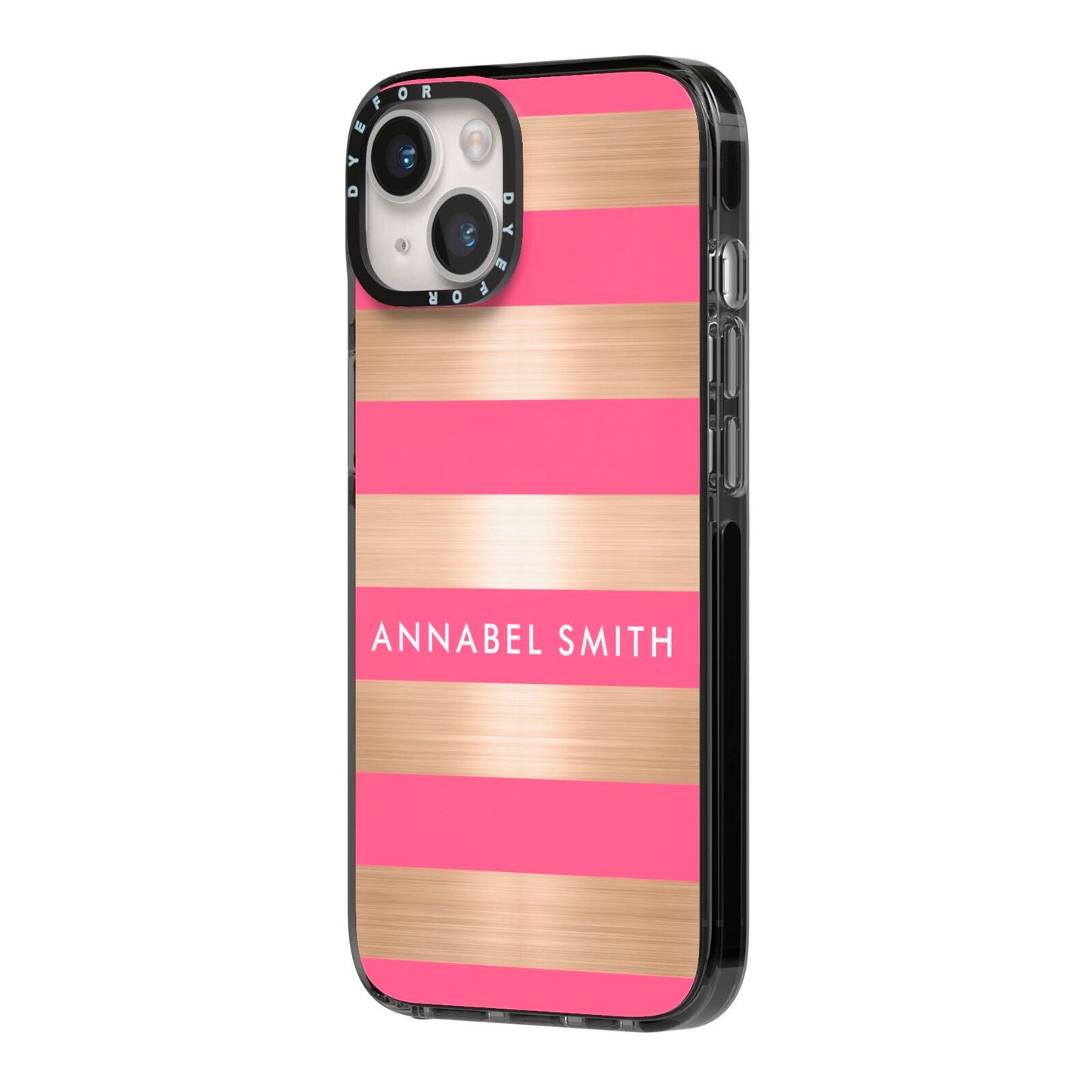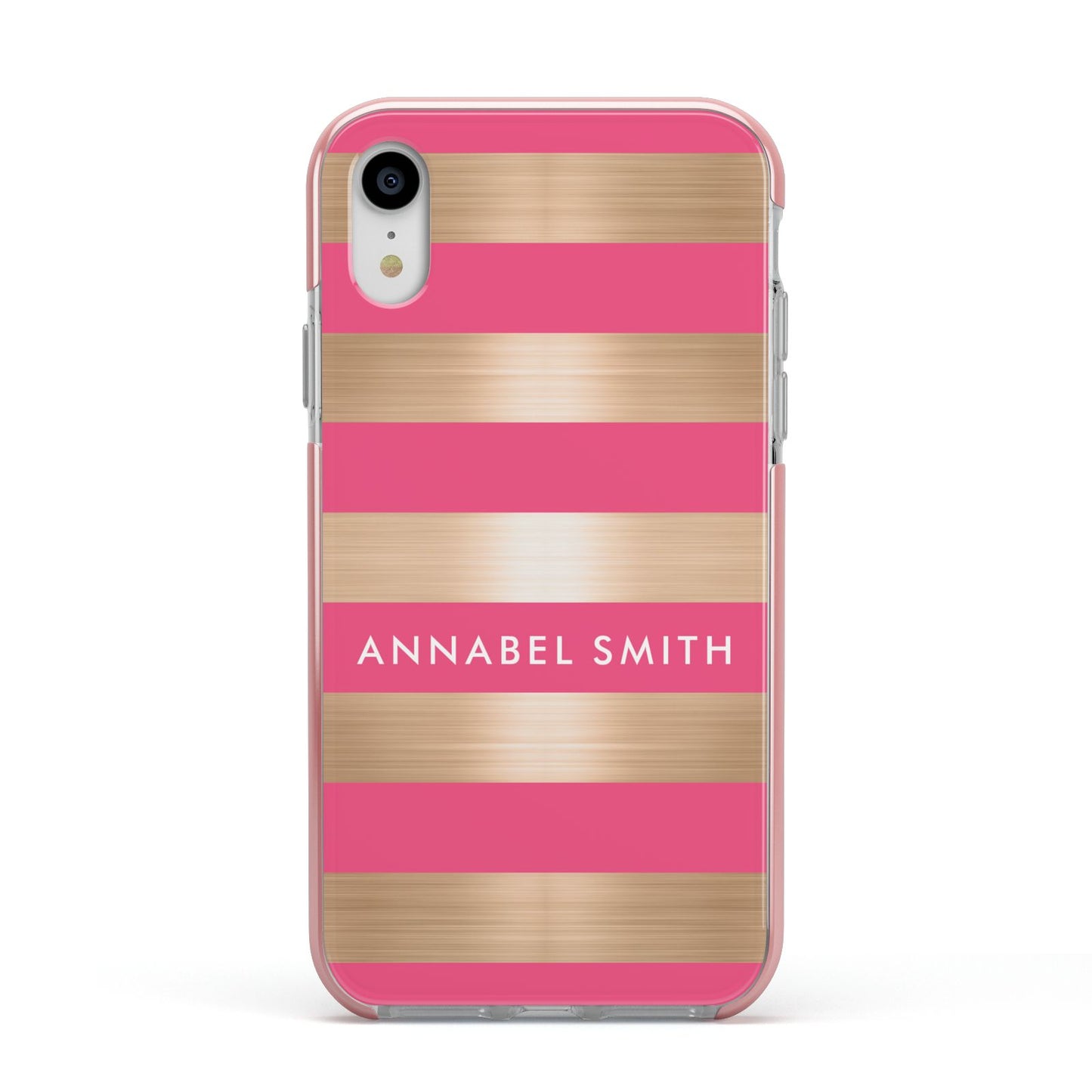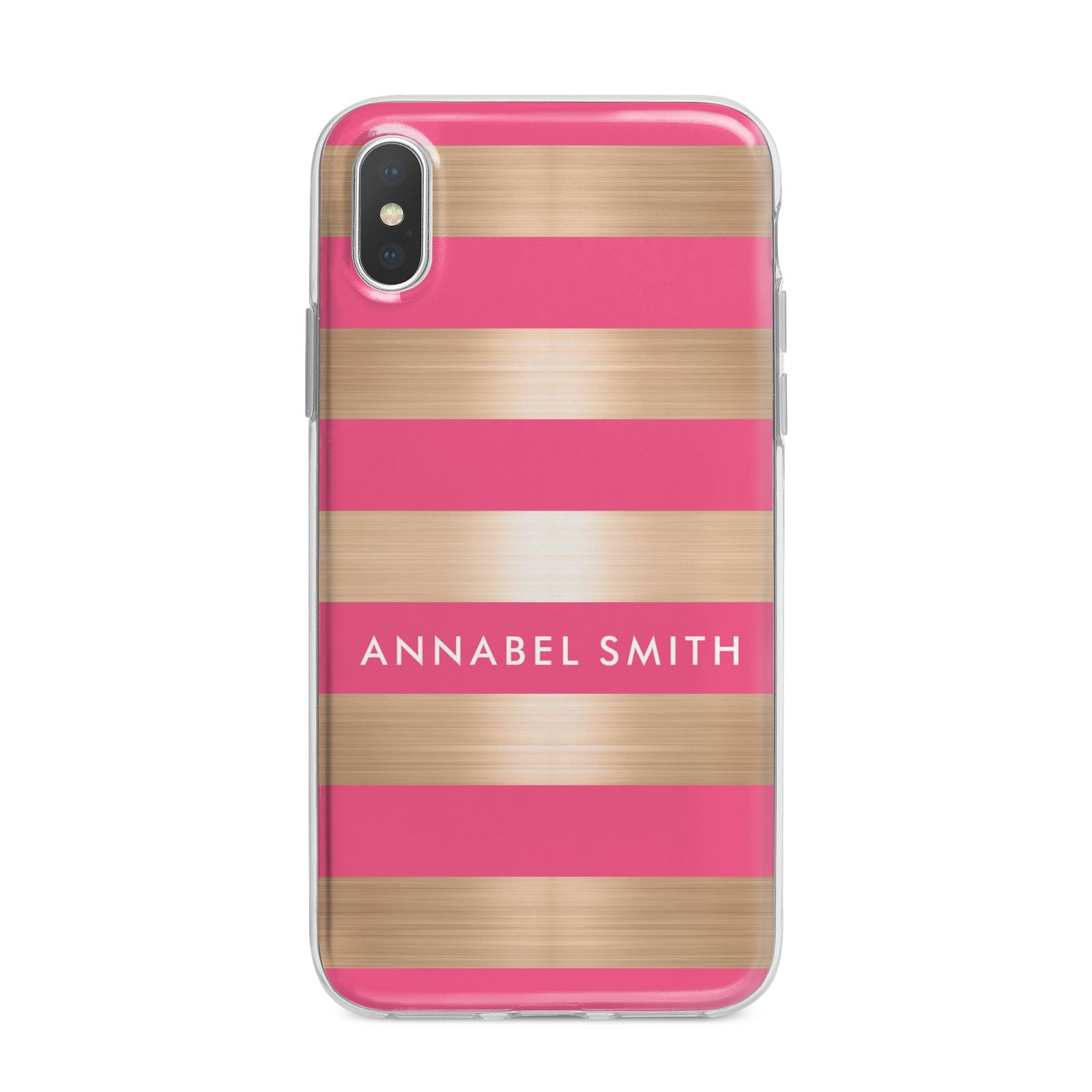 Personalised Gold Pink Stripes Name Initial Apple iPhone Case