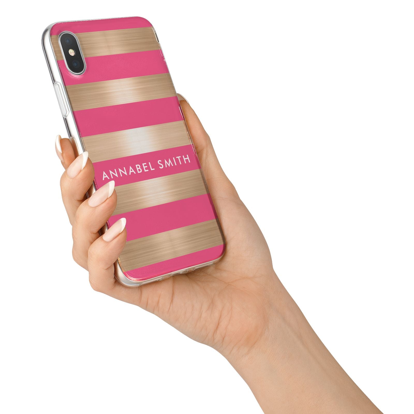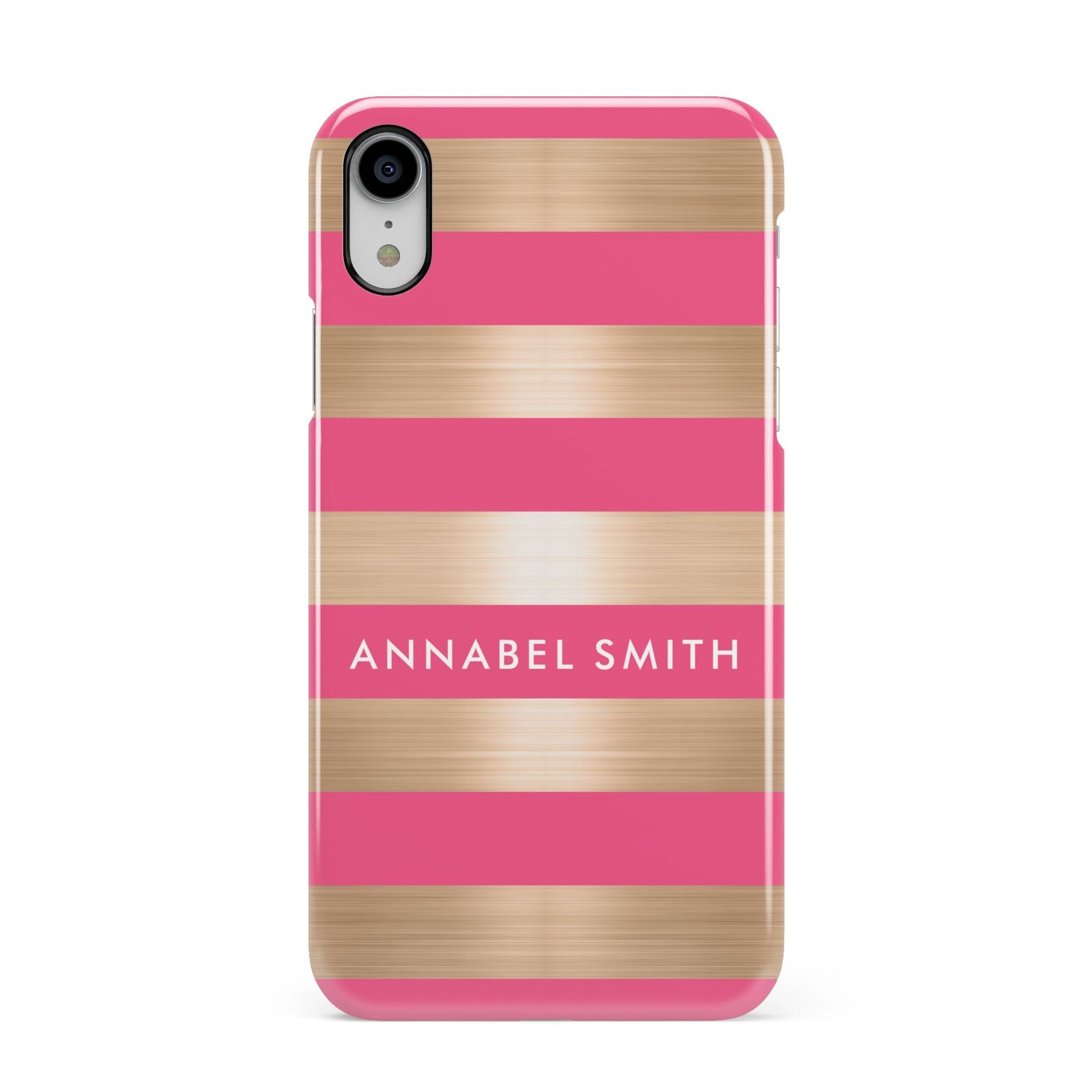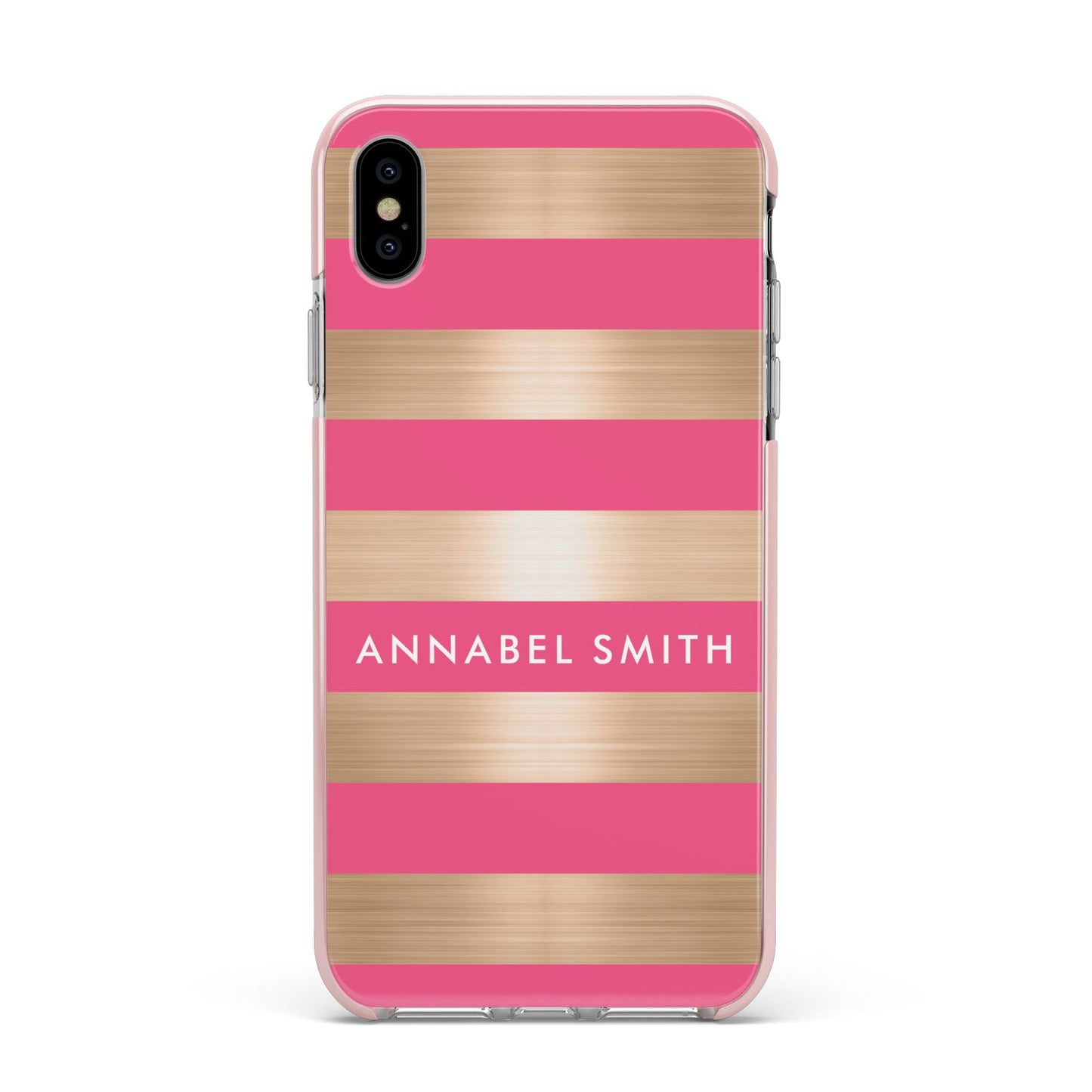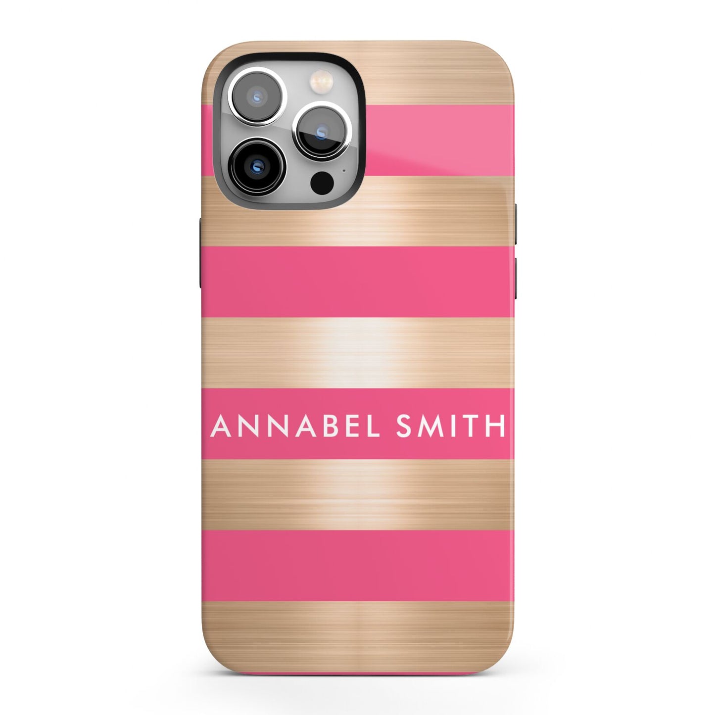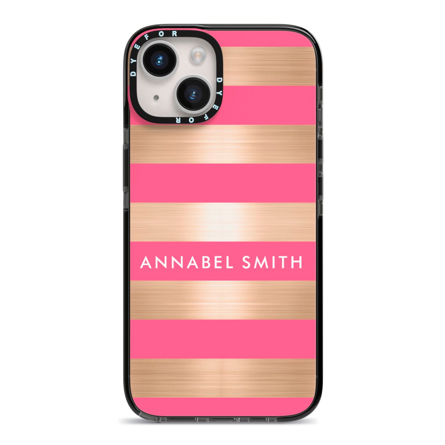 Personalised Gold Pink Stripes Name Initial Apple iPhone Case