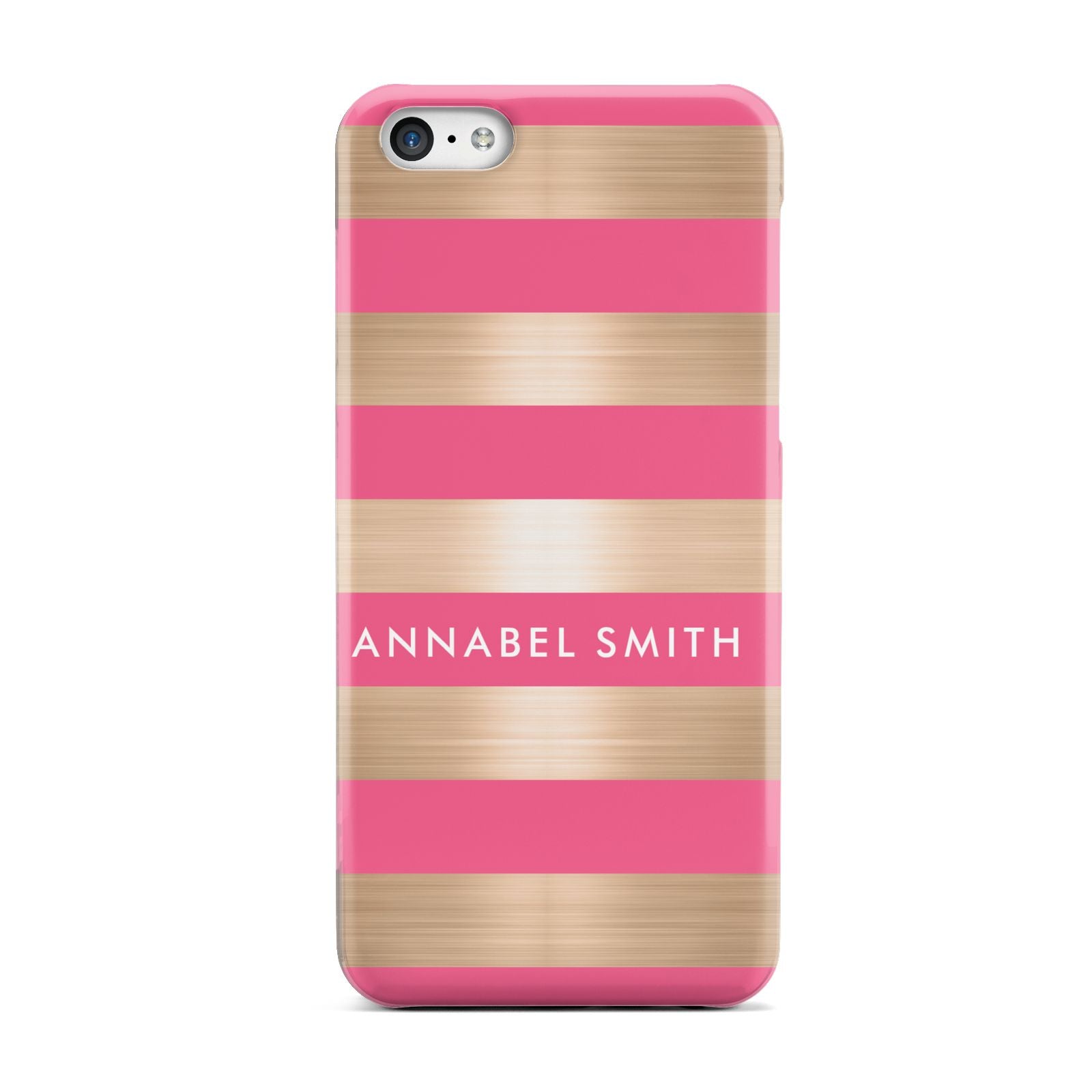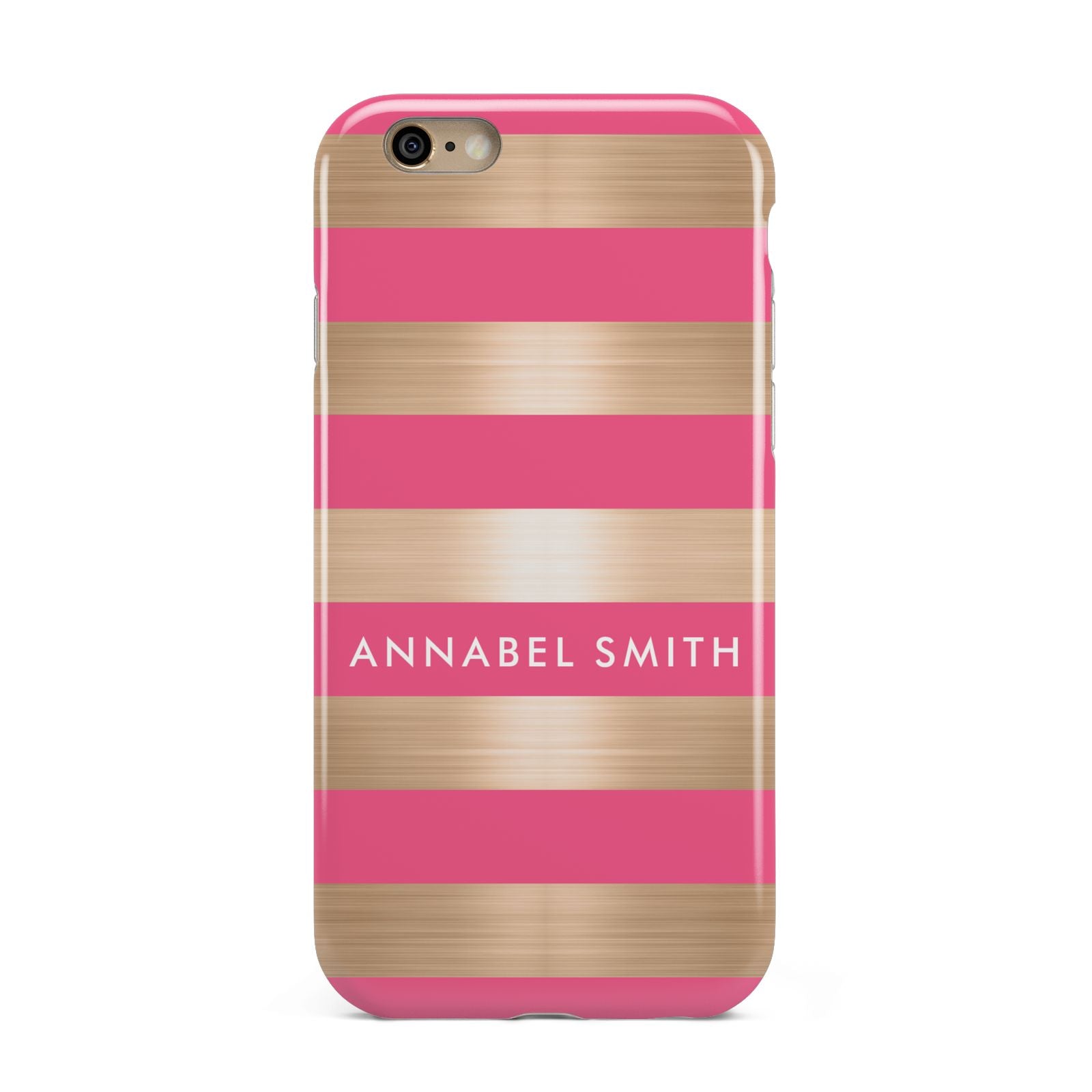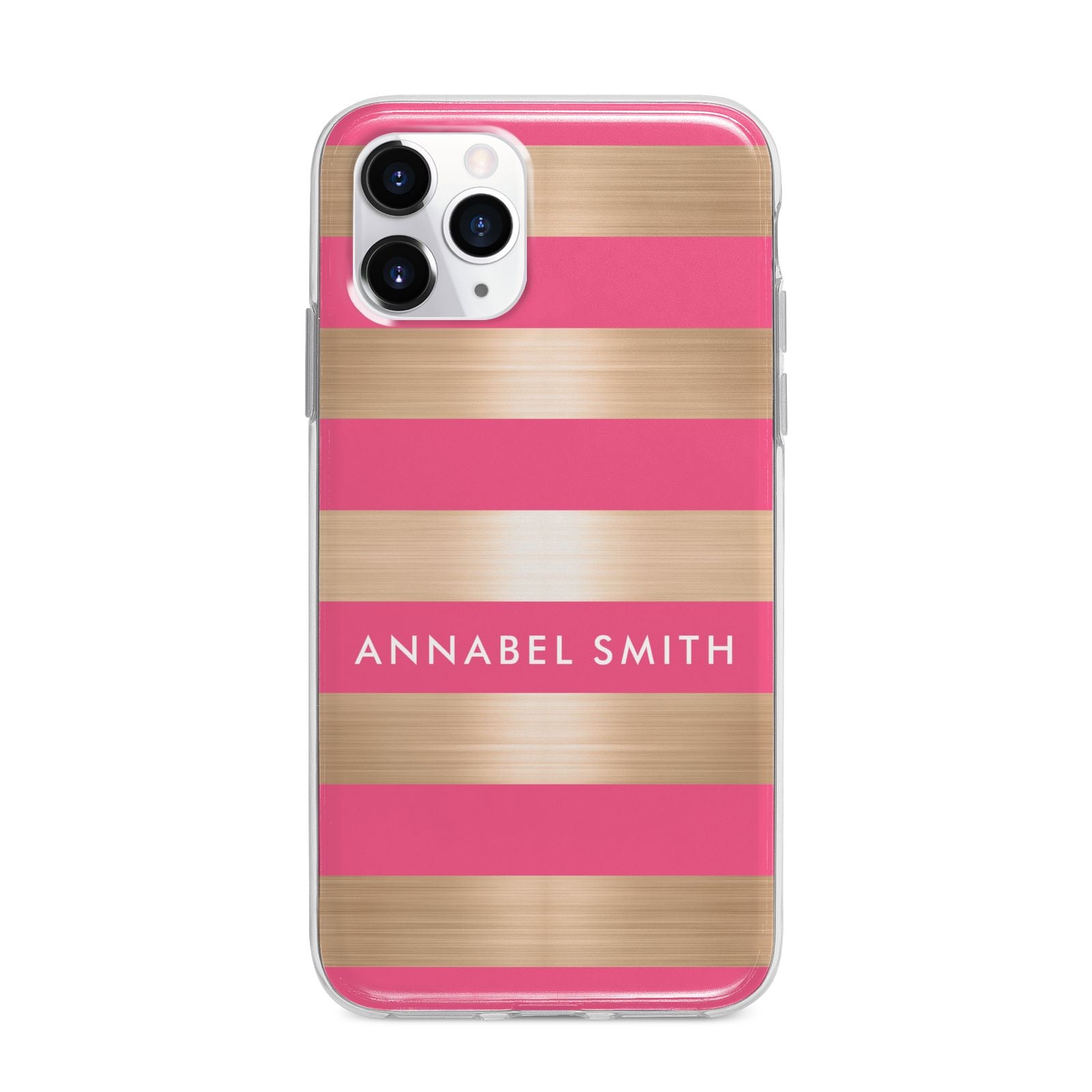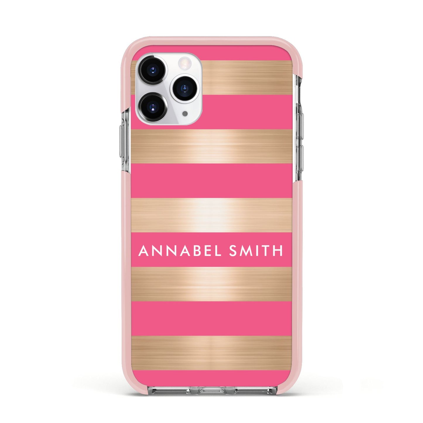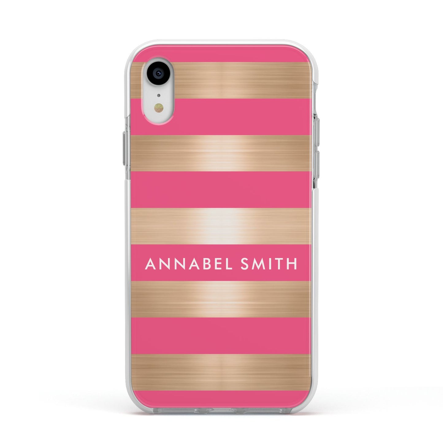 Personalised Gold Pink Stripes Name Initial Apple iPhone Case