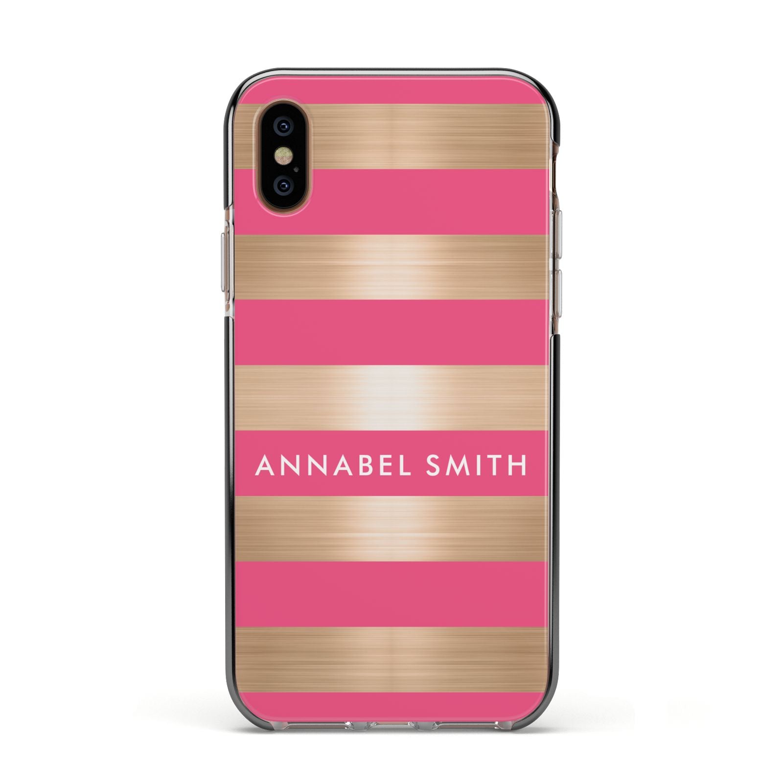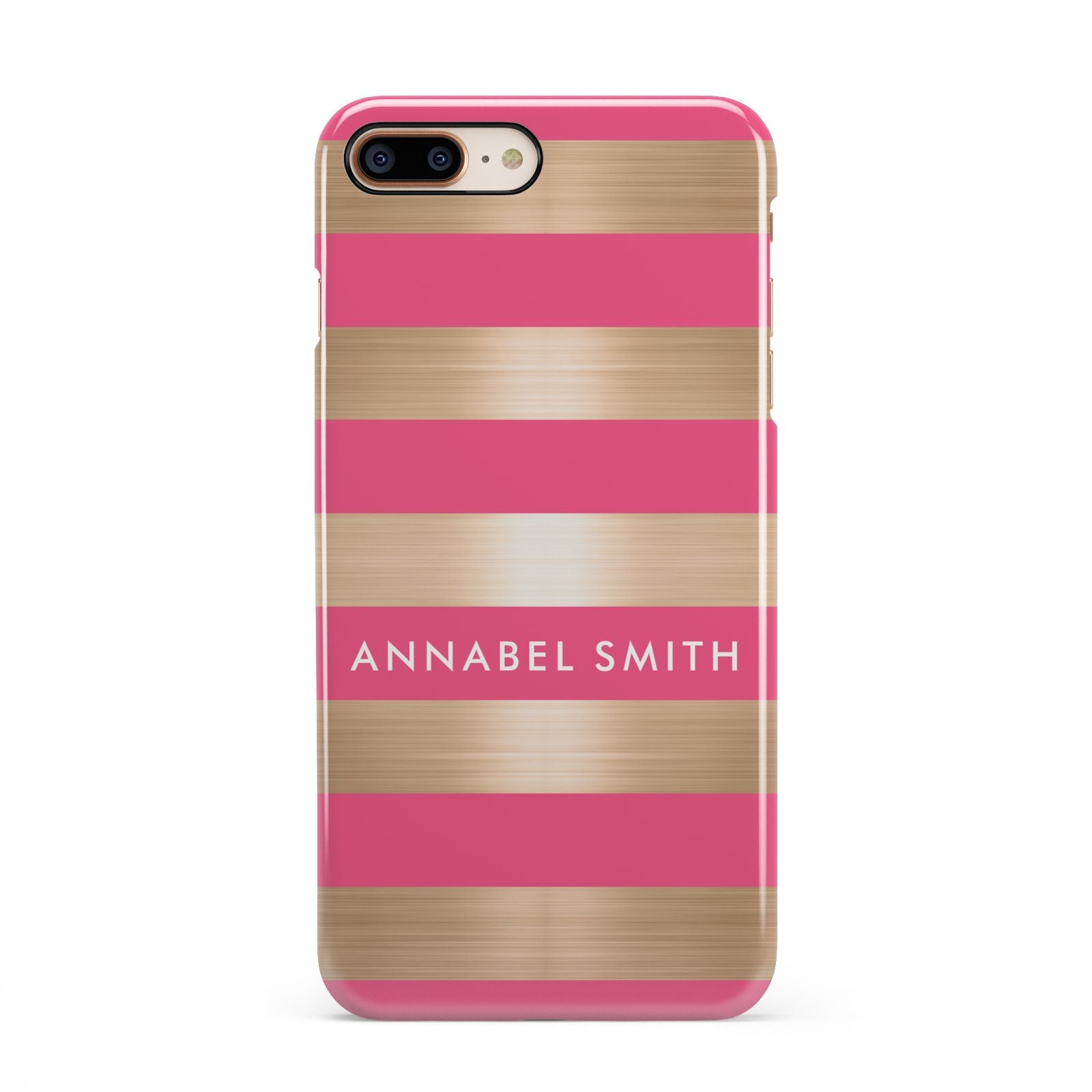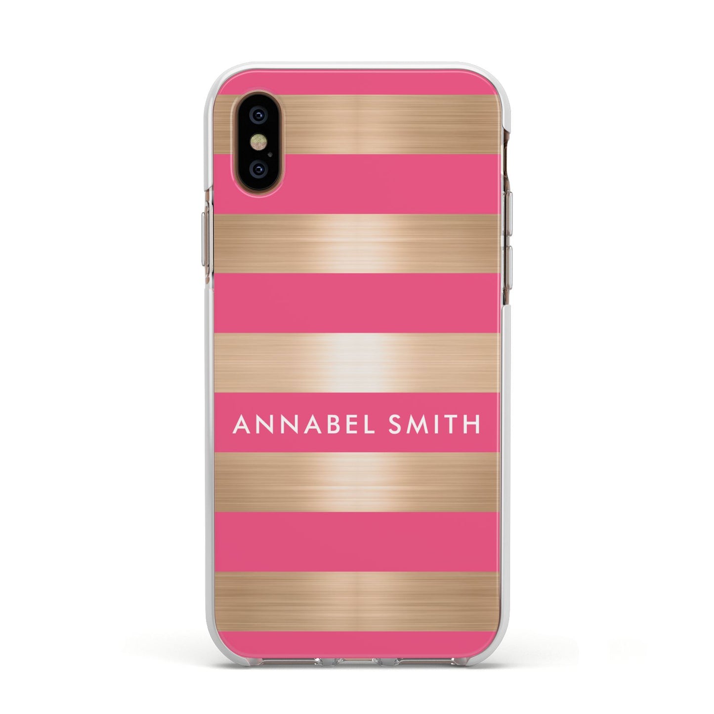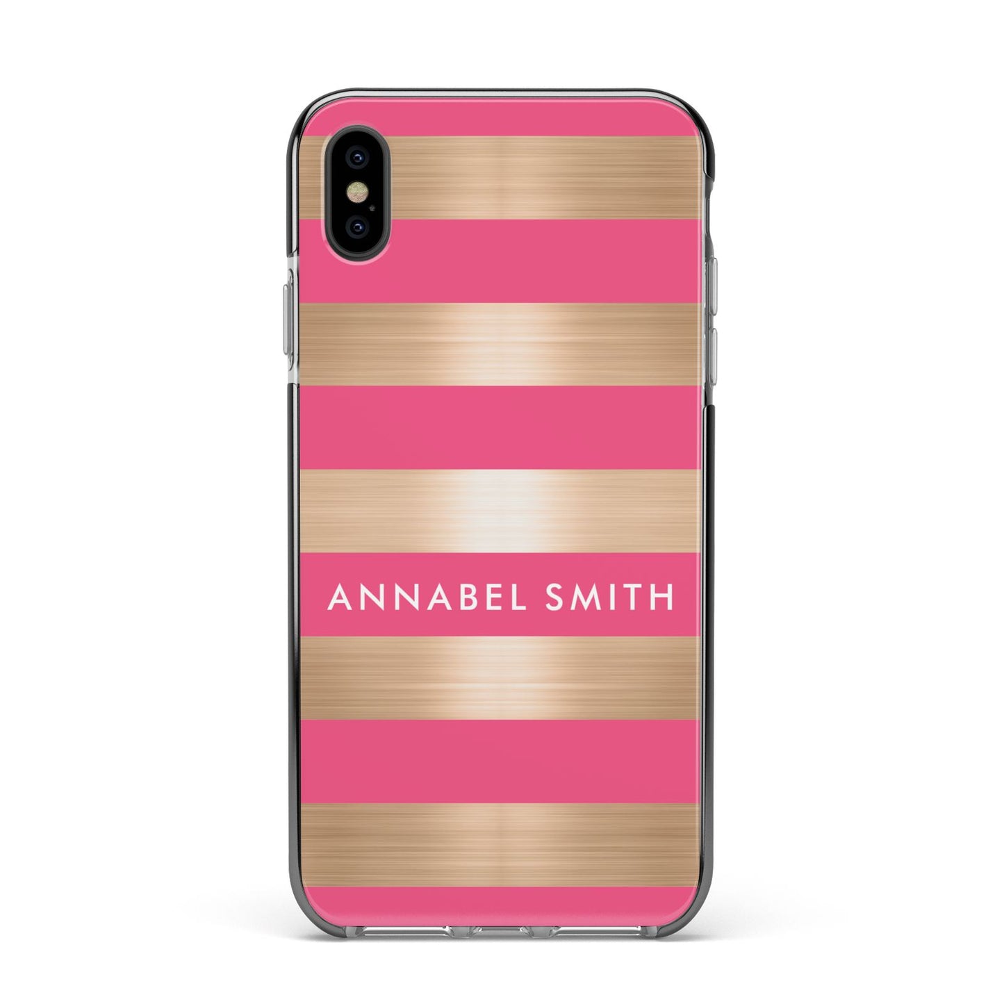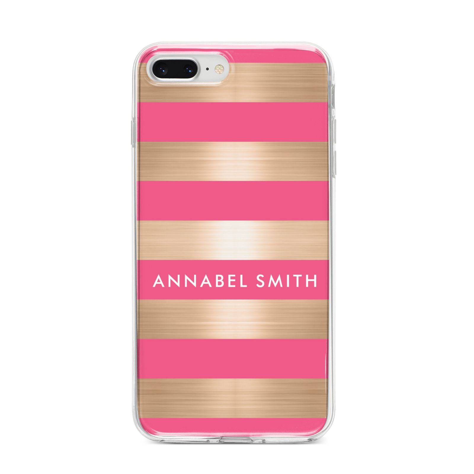 Personalised Gold Pink Stripes Name Initial Apple iPhone Case