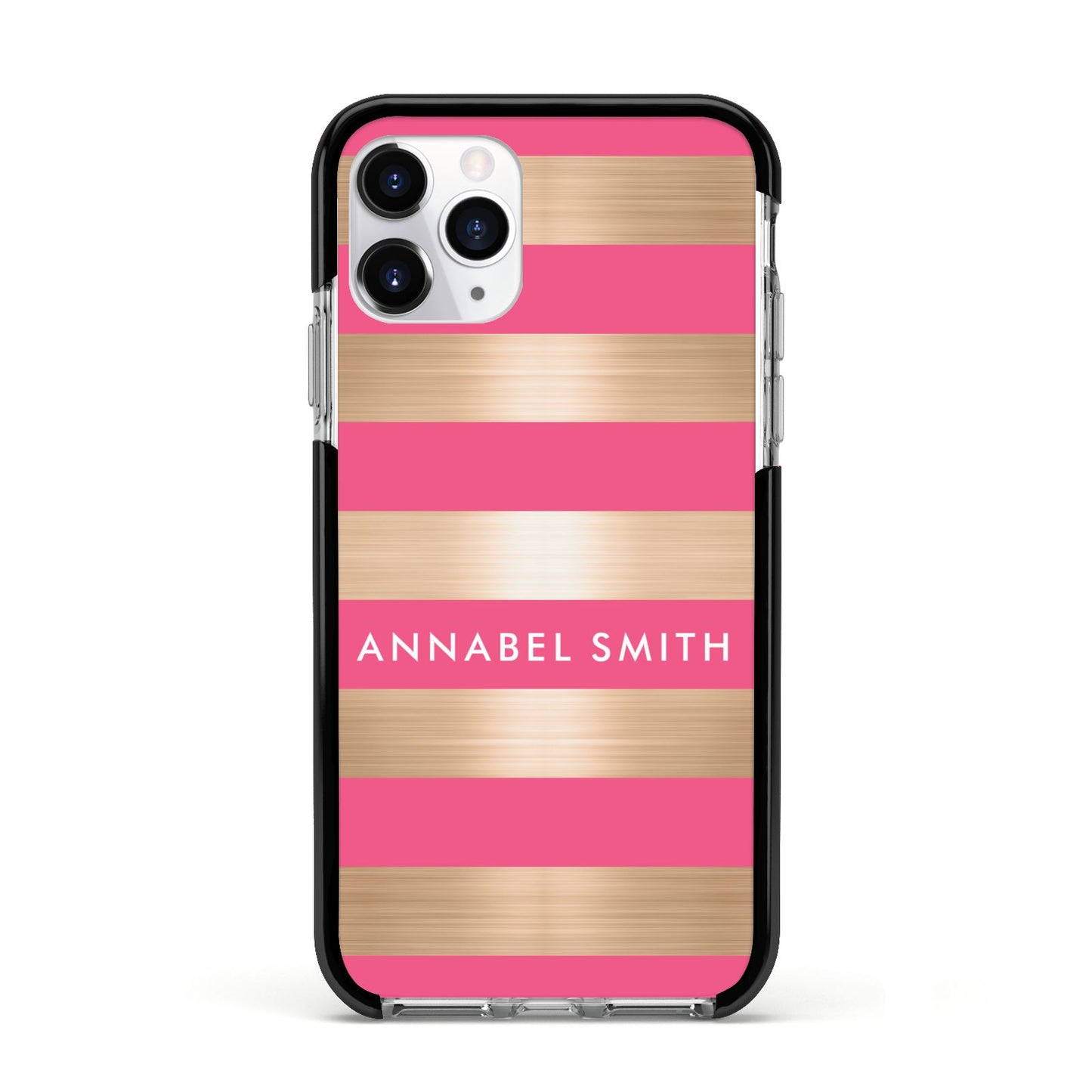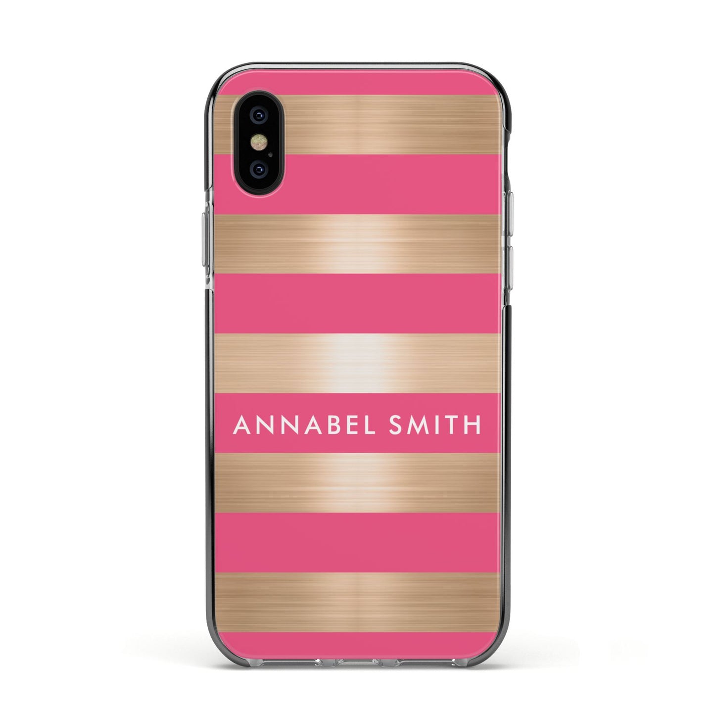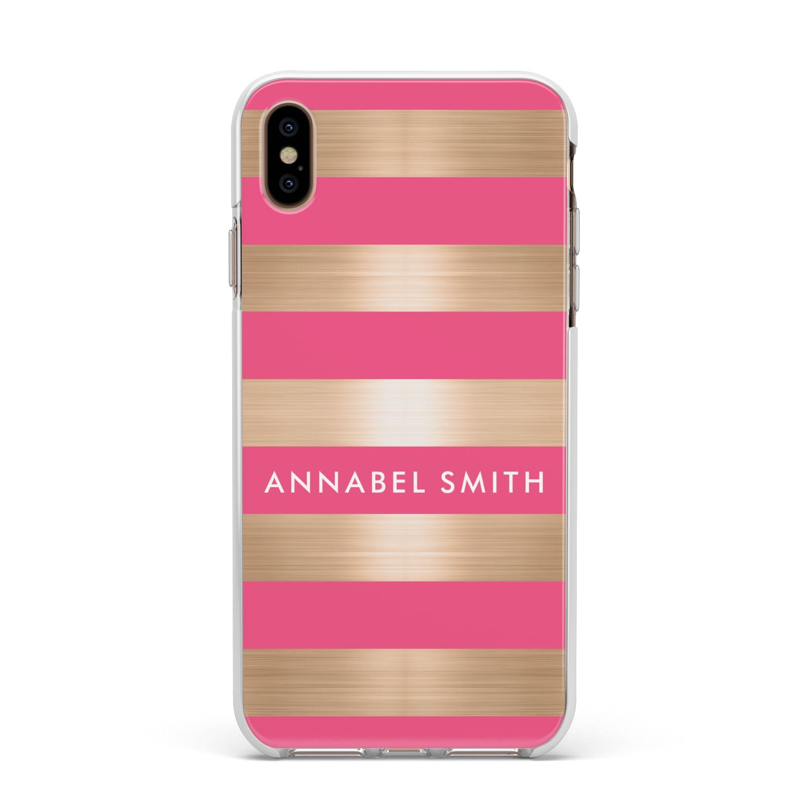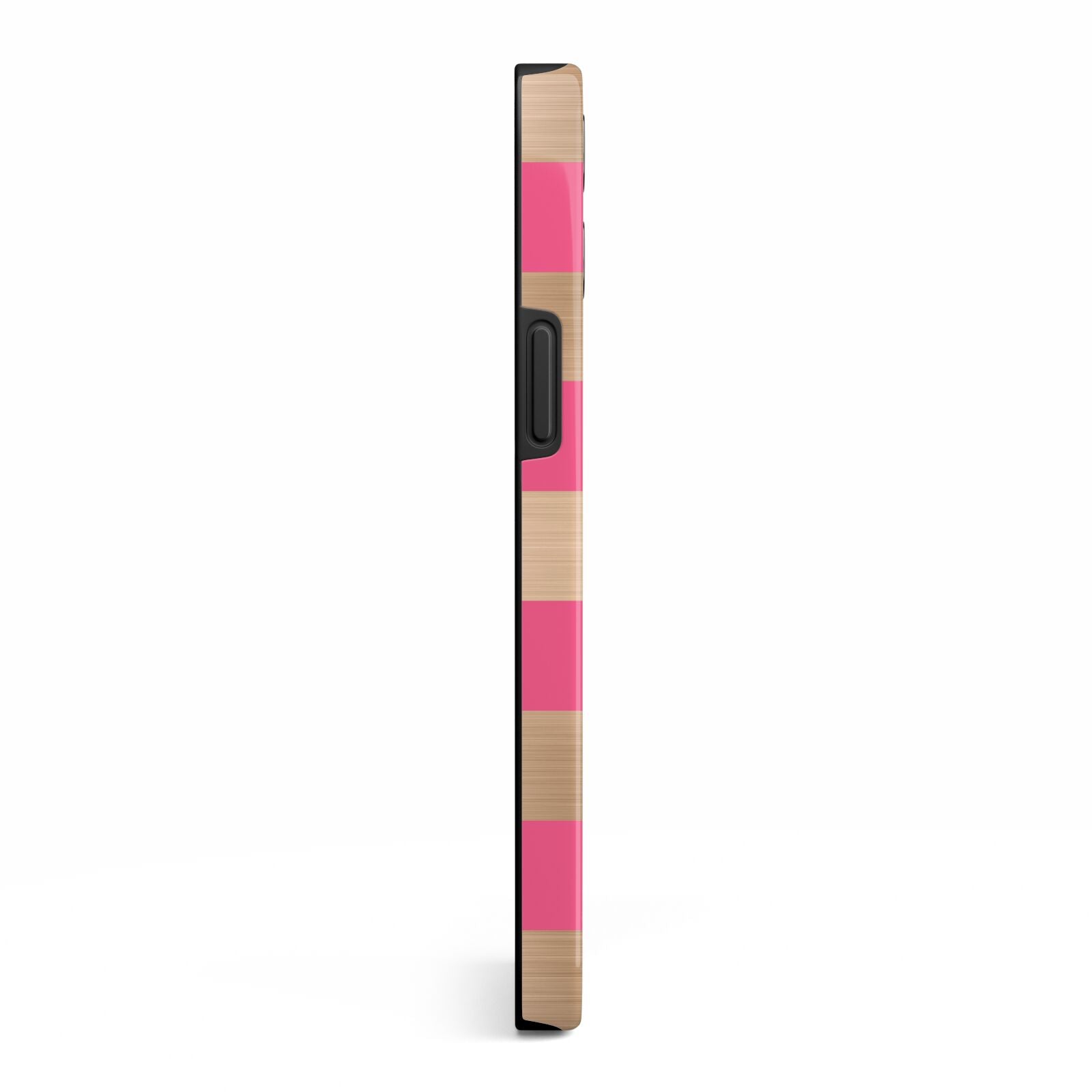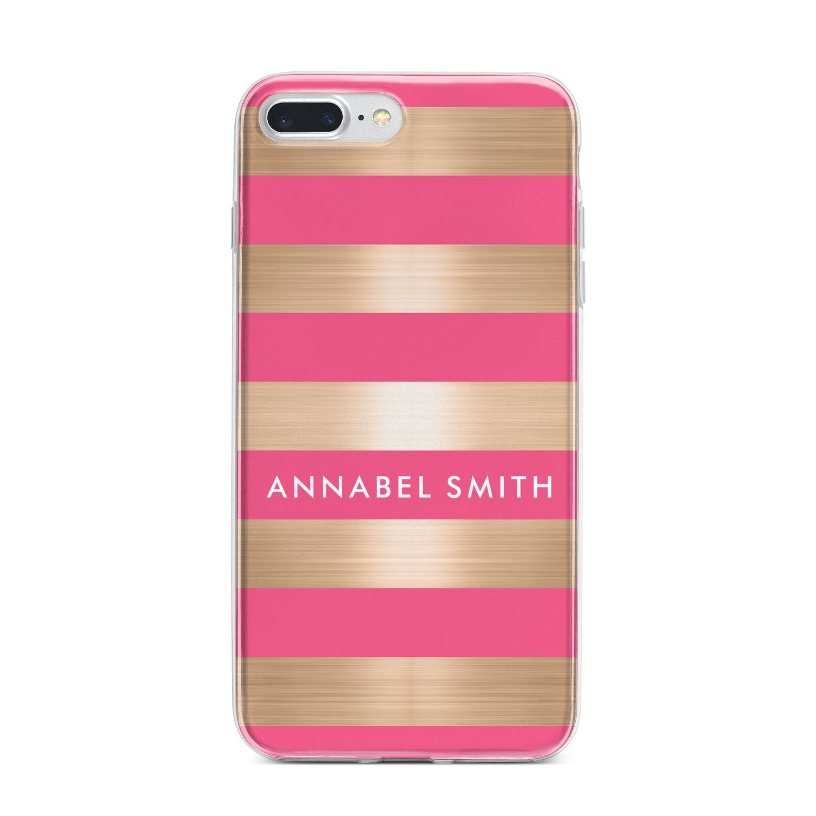 Personalised Gold Pink Stripes Name Initial Apple iPhone Case