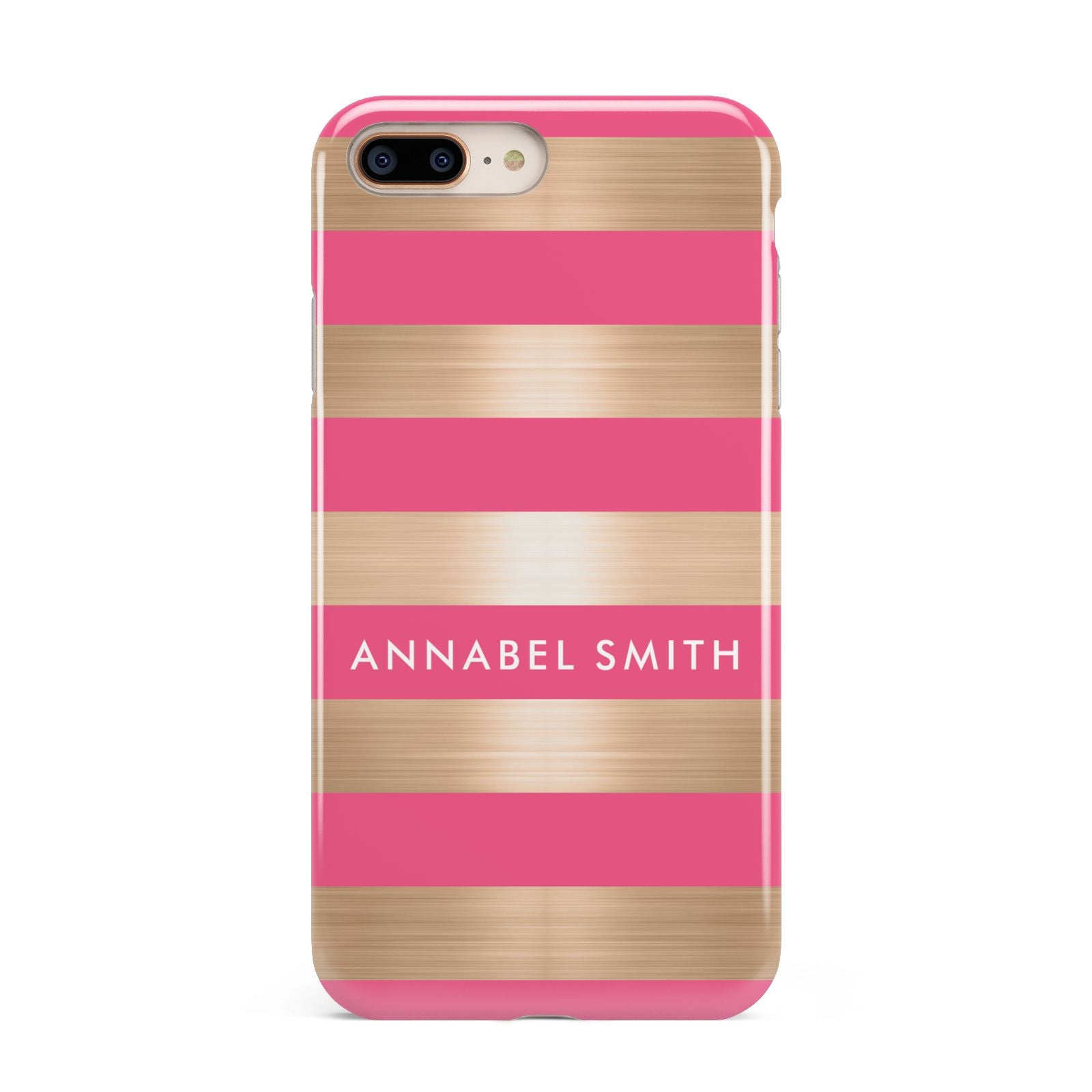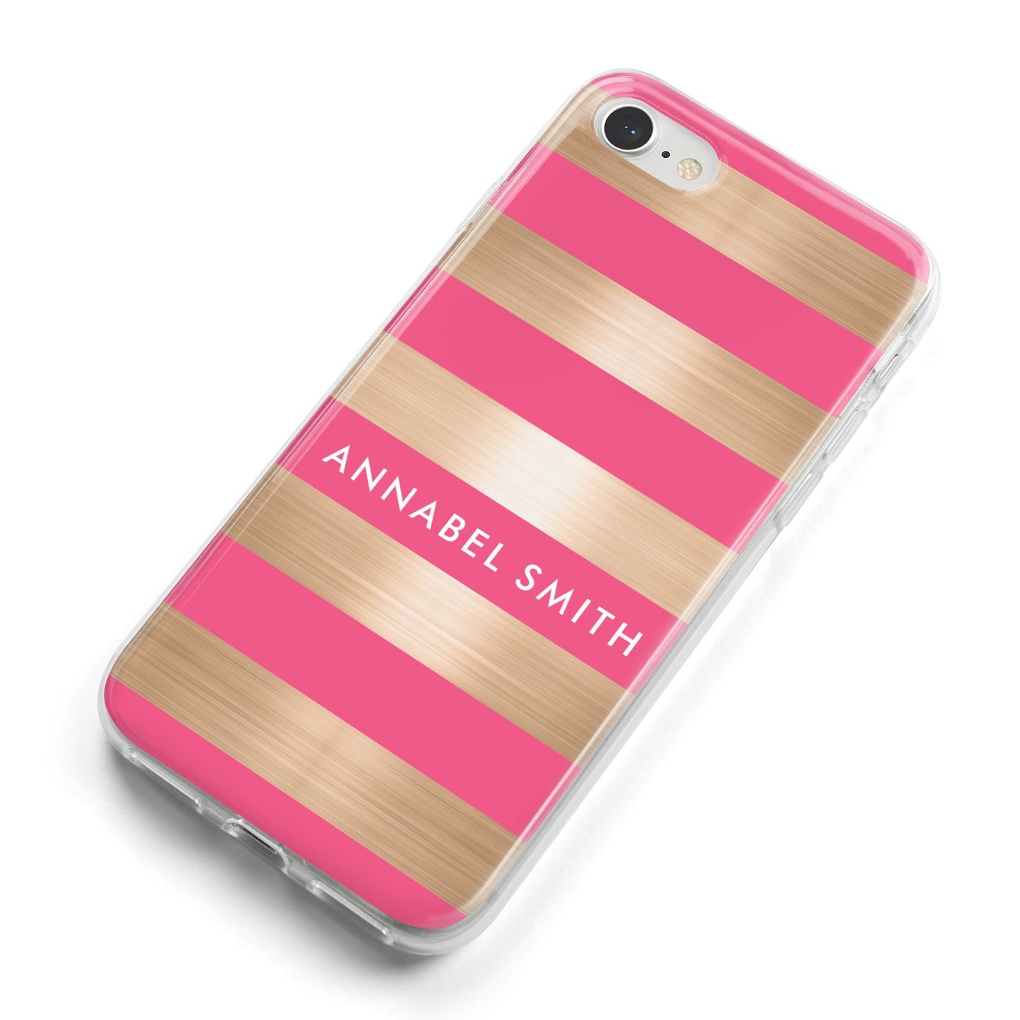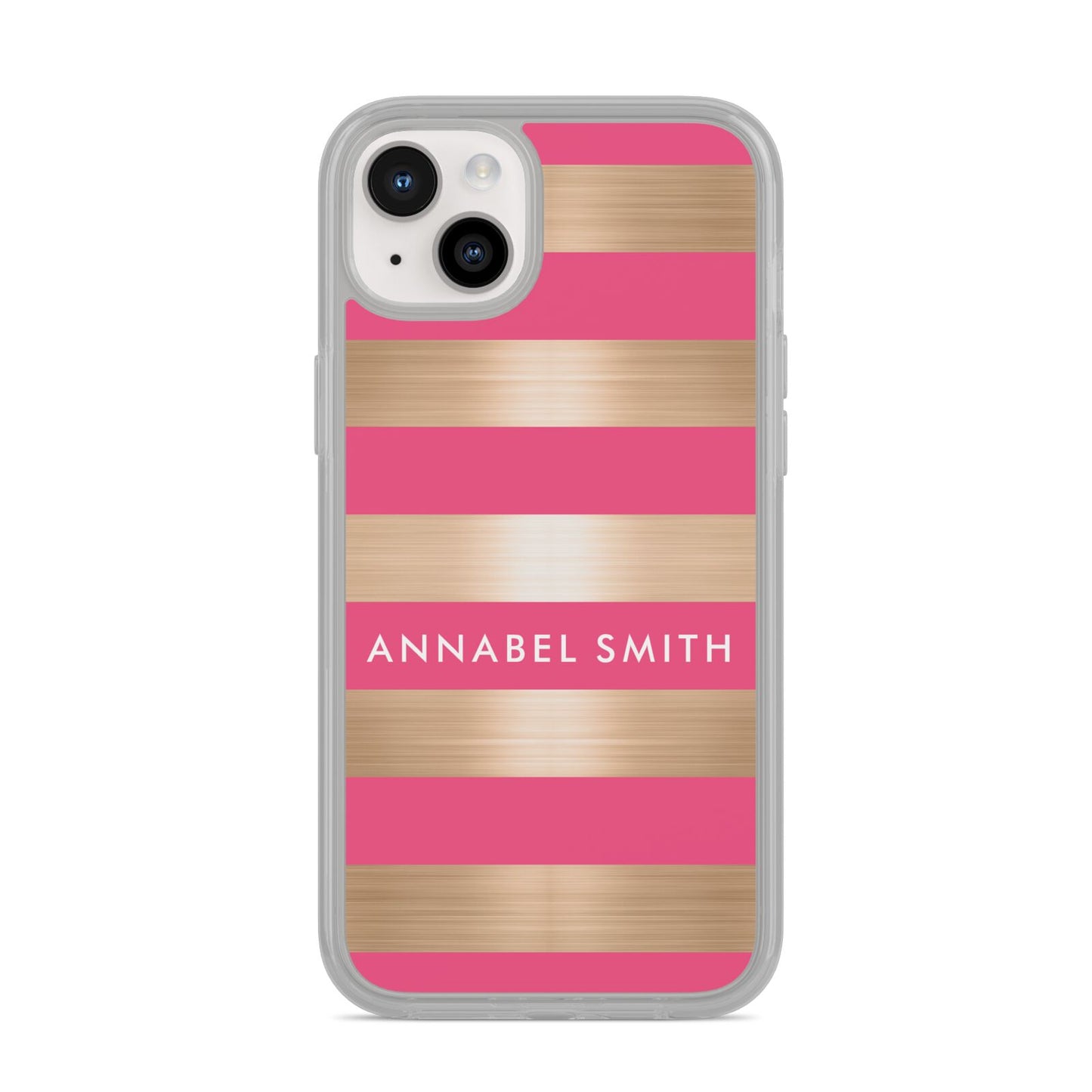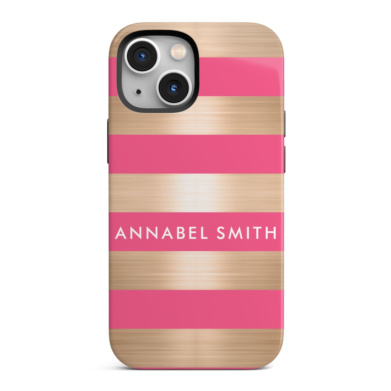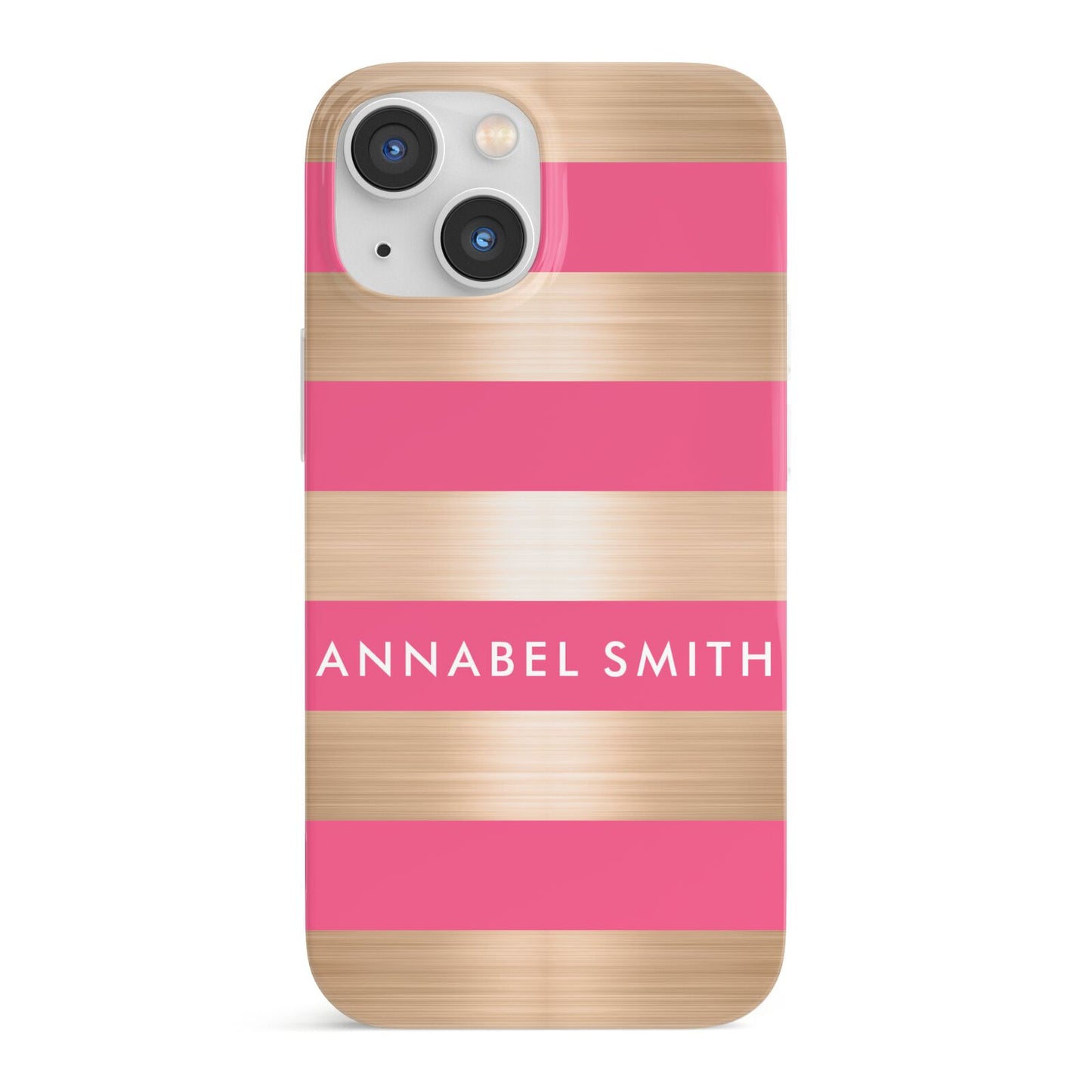 Personalised Gold Pink Stripes Name Initial Apple iPhone Case