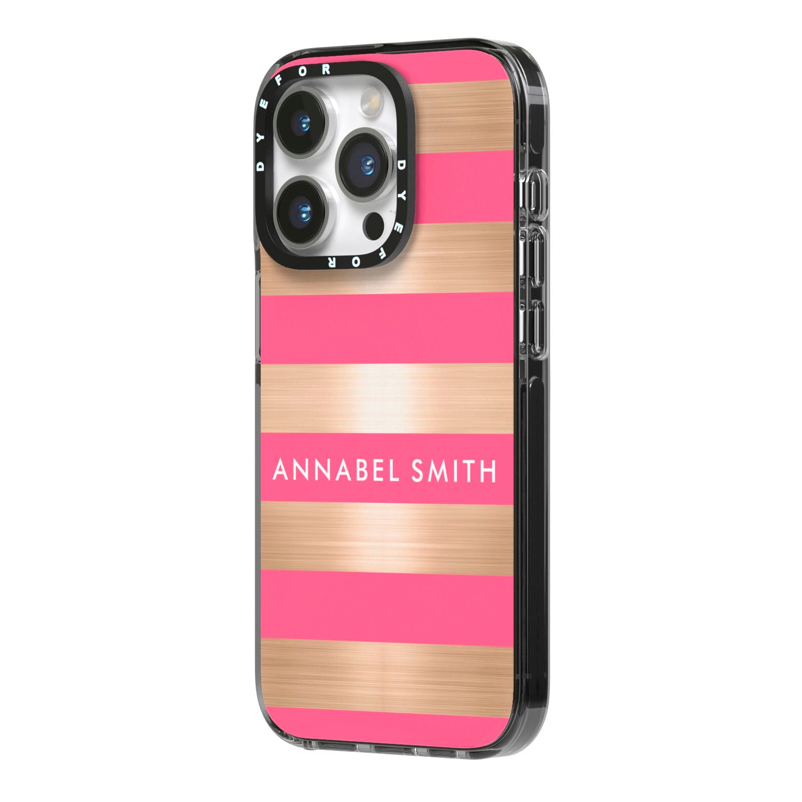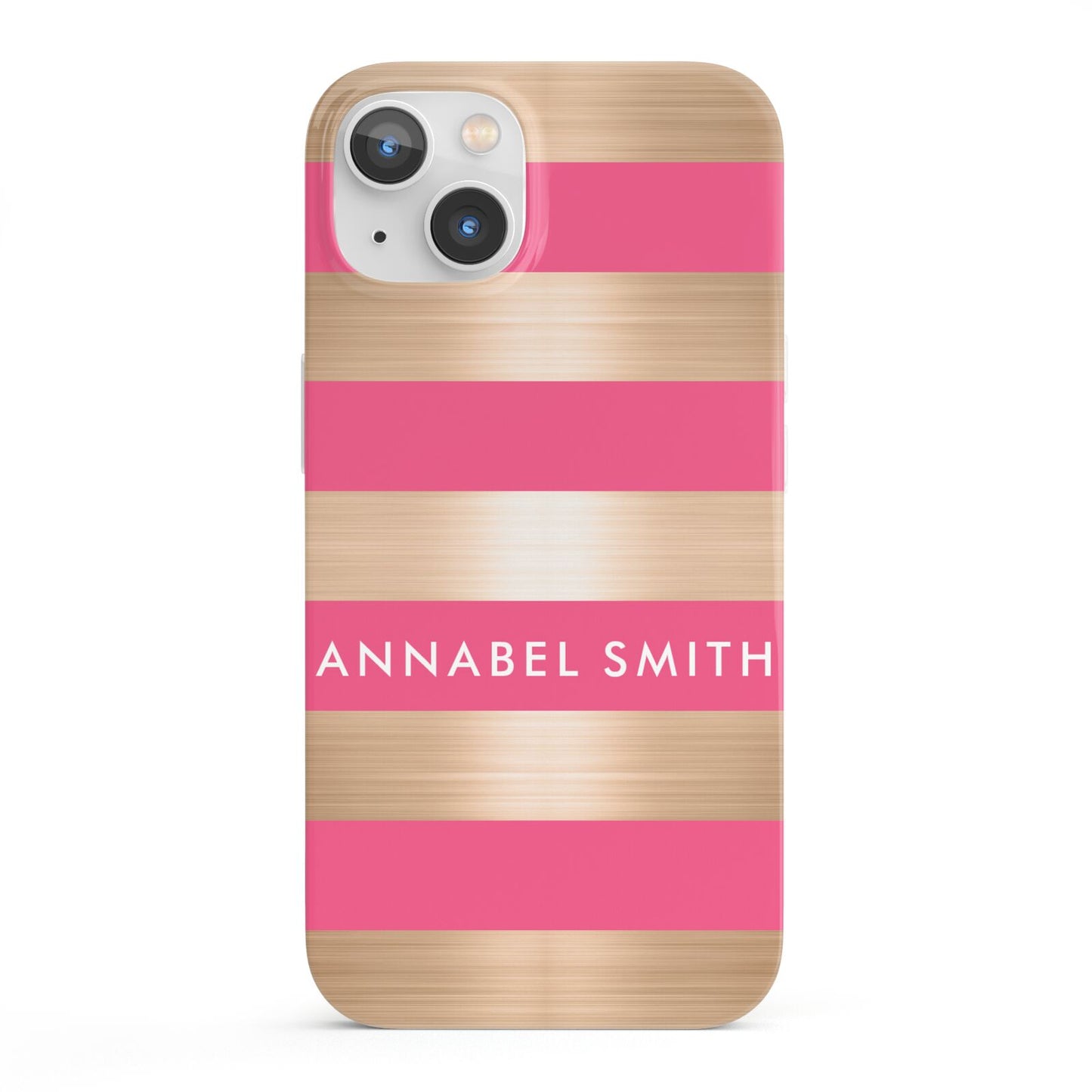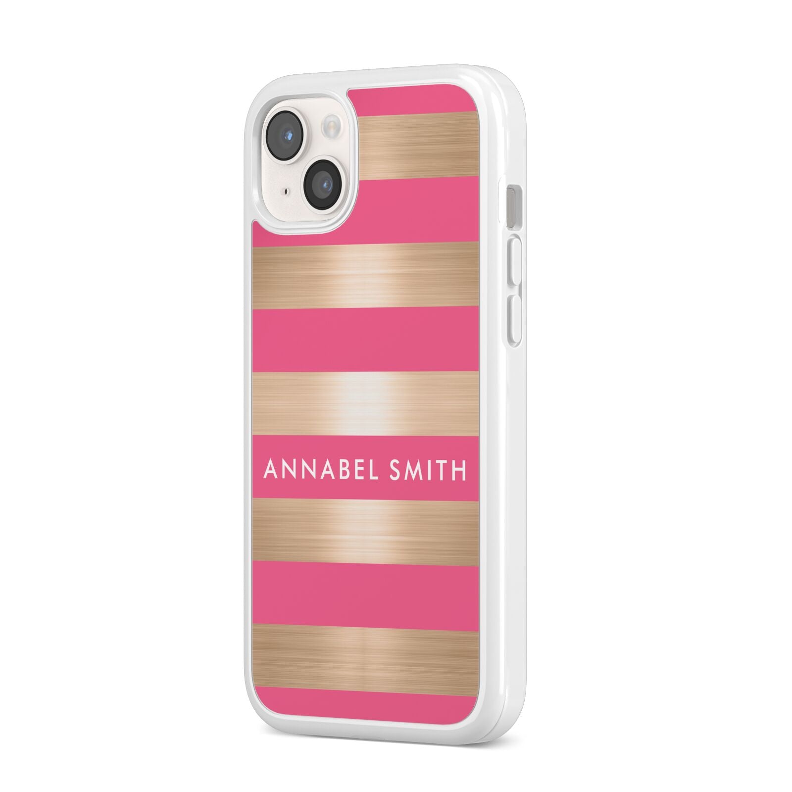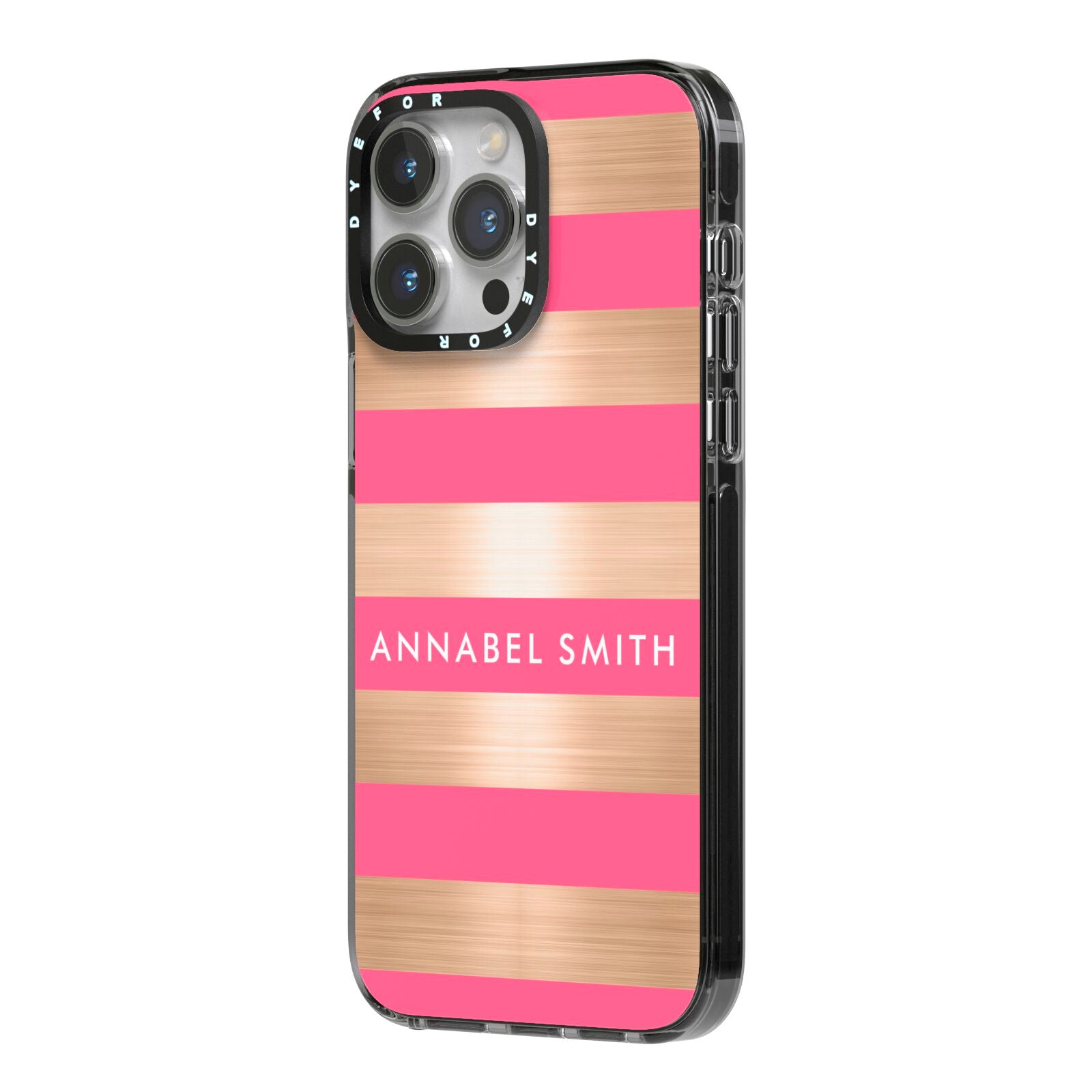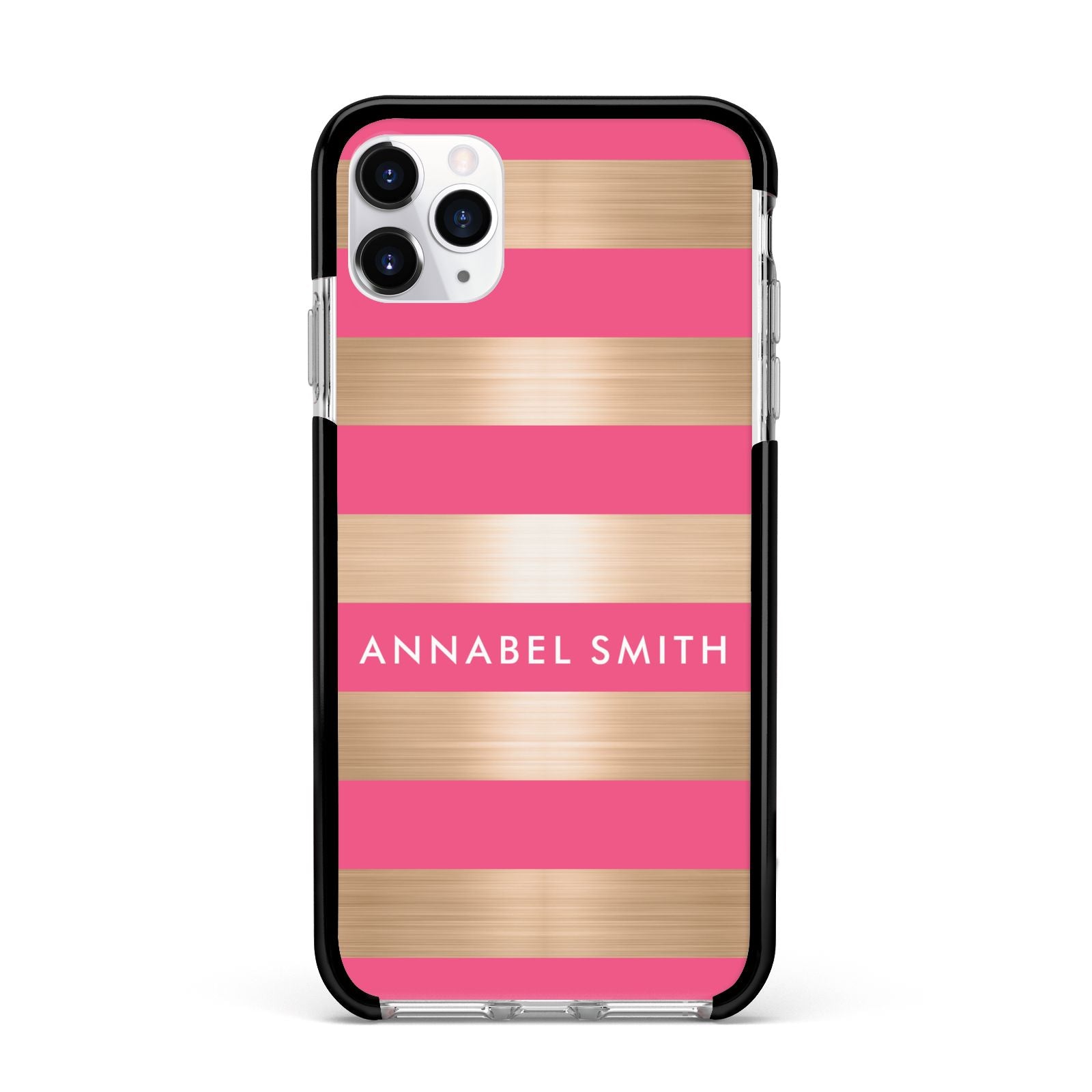 Personalised Gold Pink Stripes Name Initial Apple iPhone Case