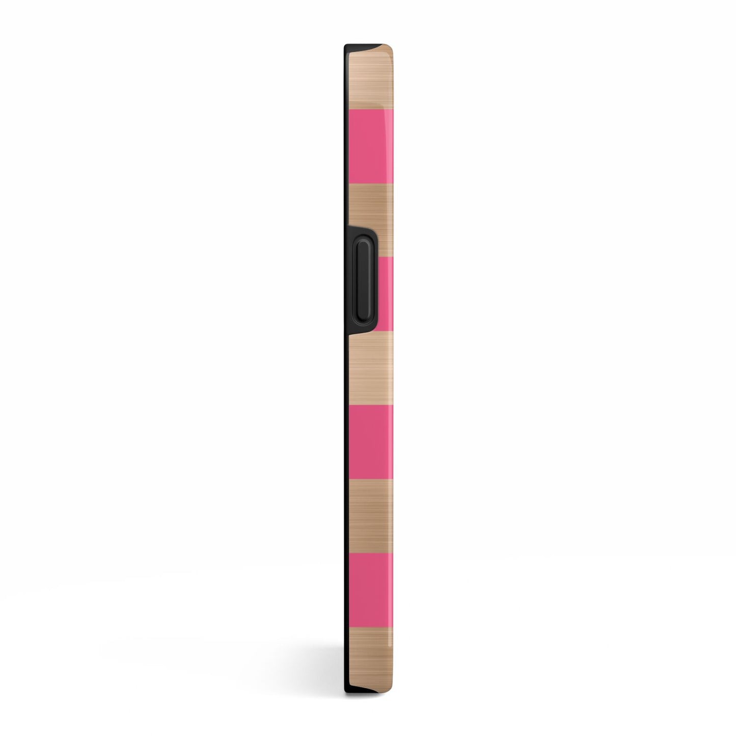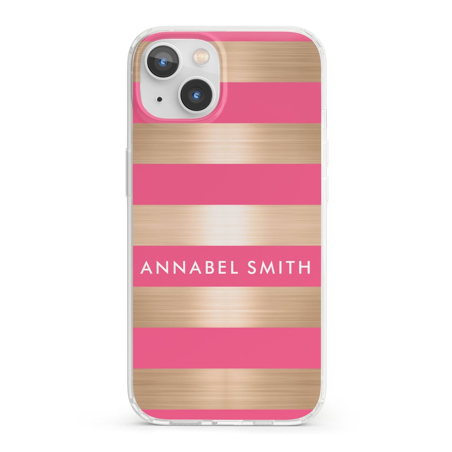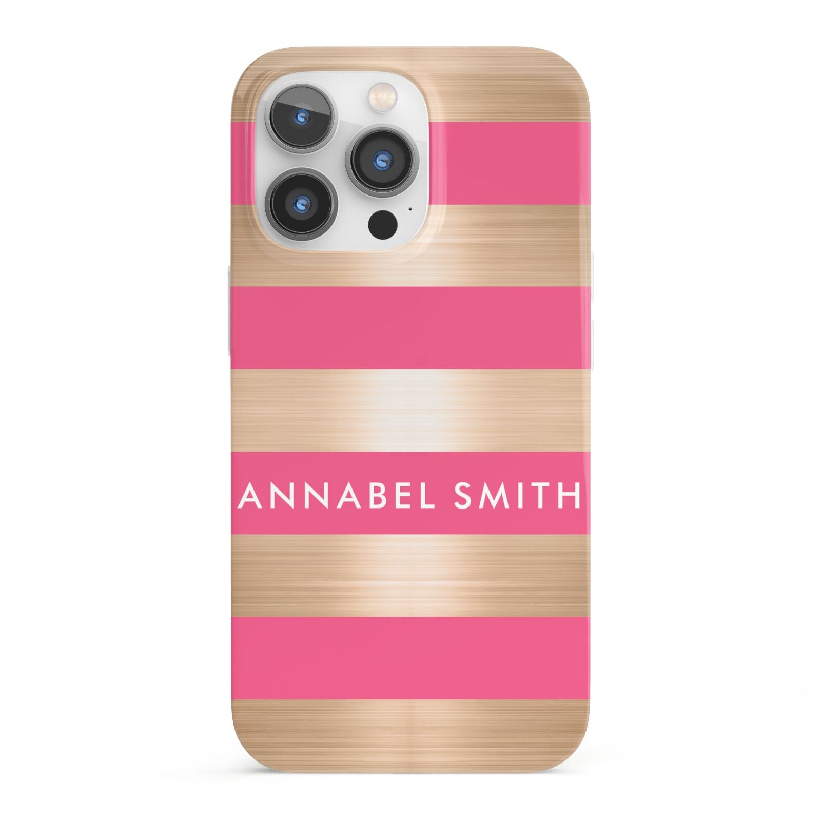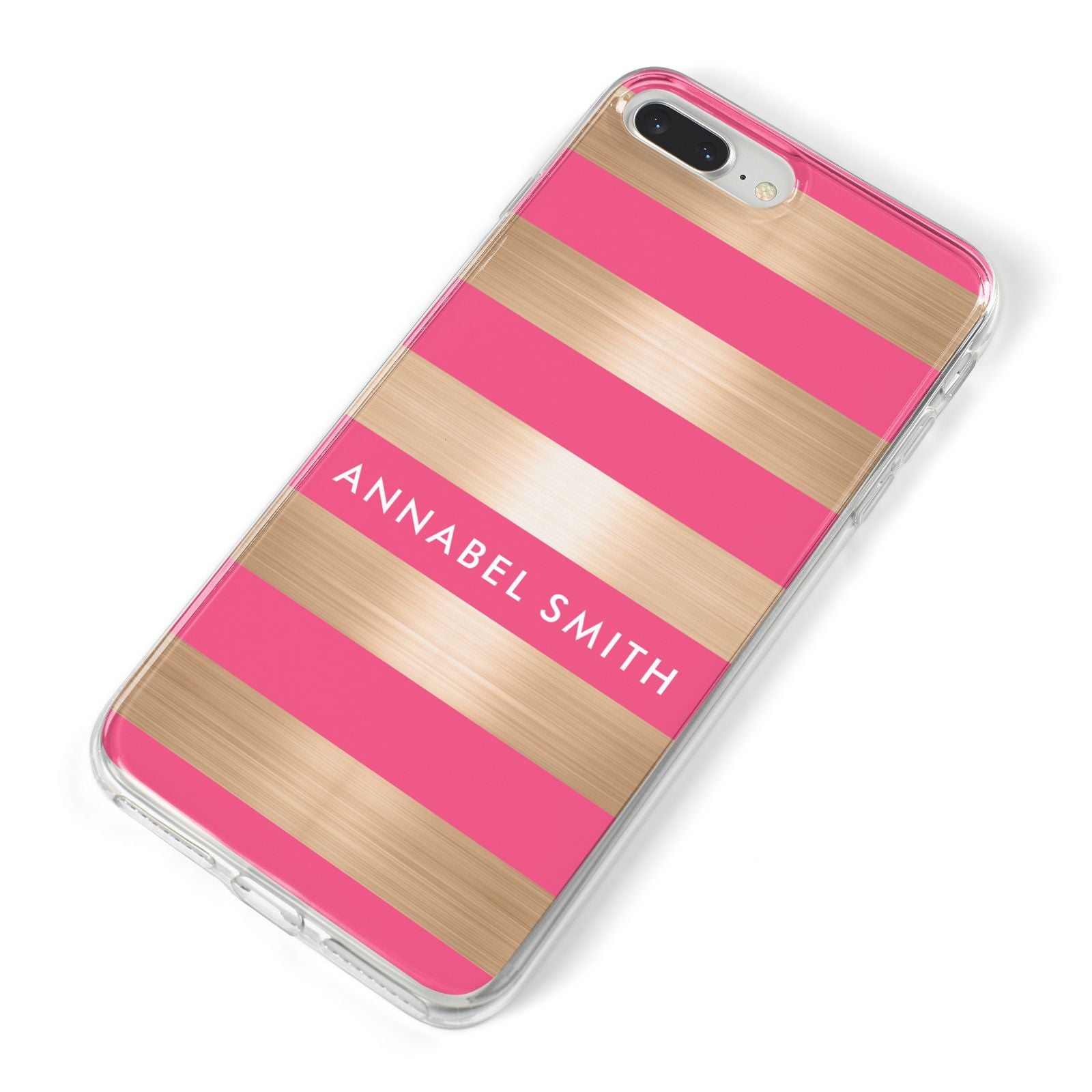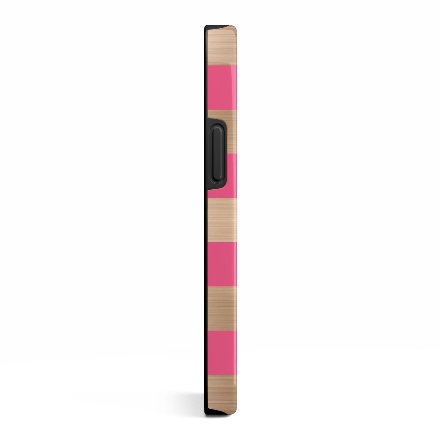 Personalised Gold Pink Stripes Name Initial Apple iPhone Case
