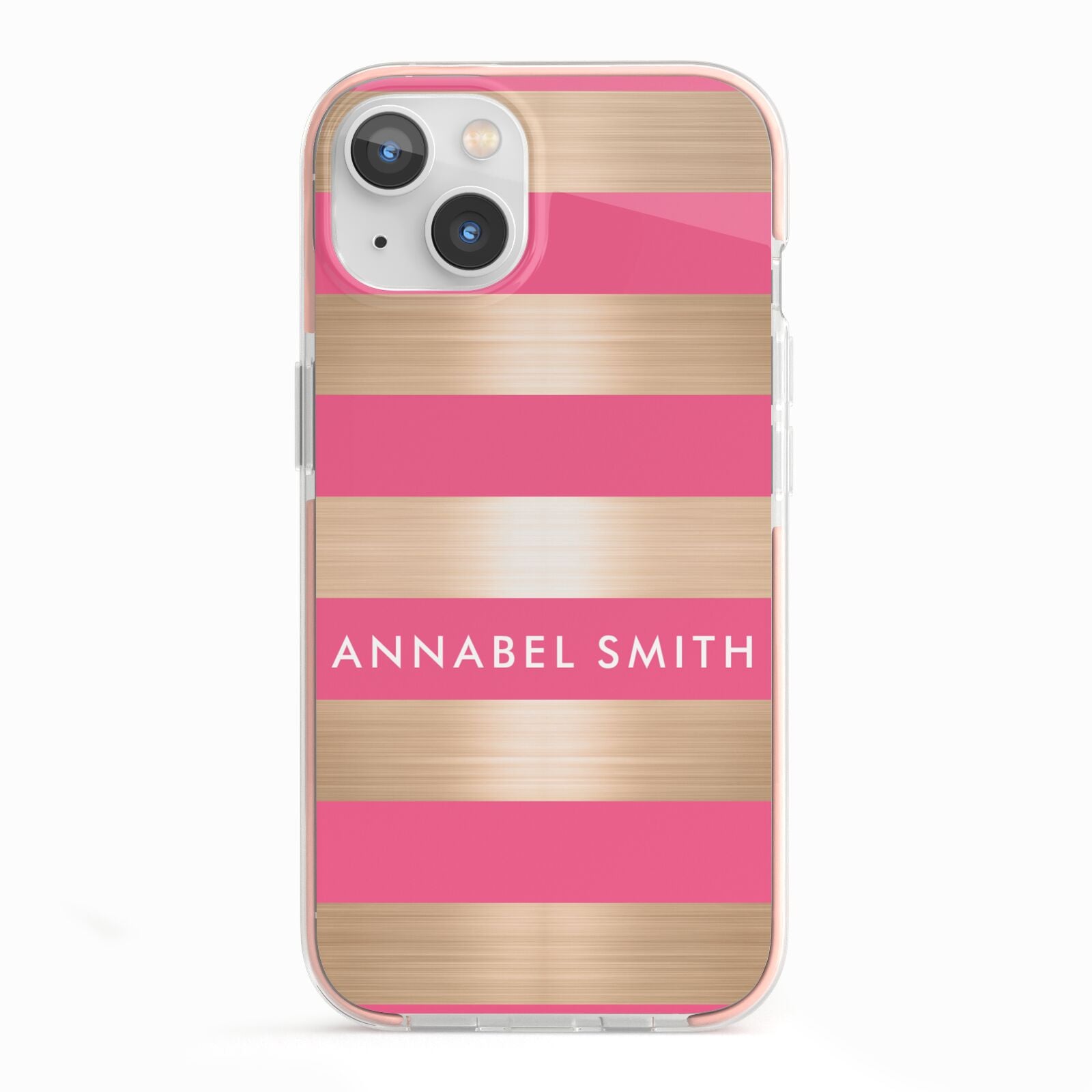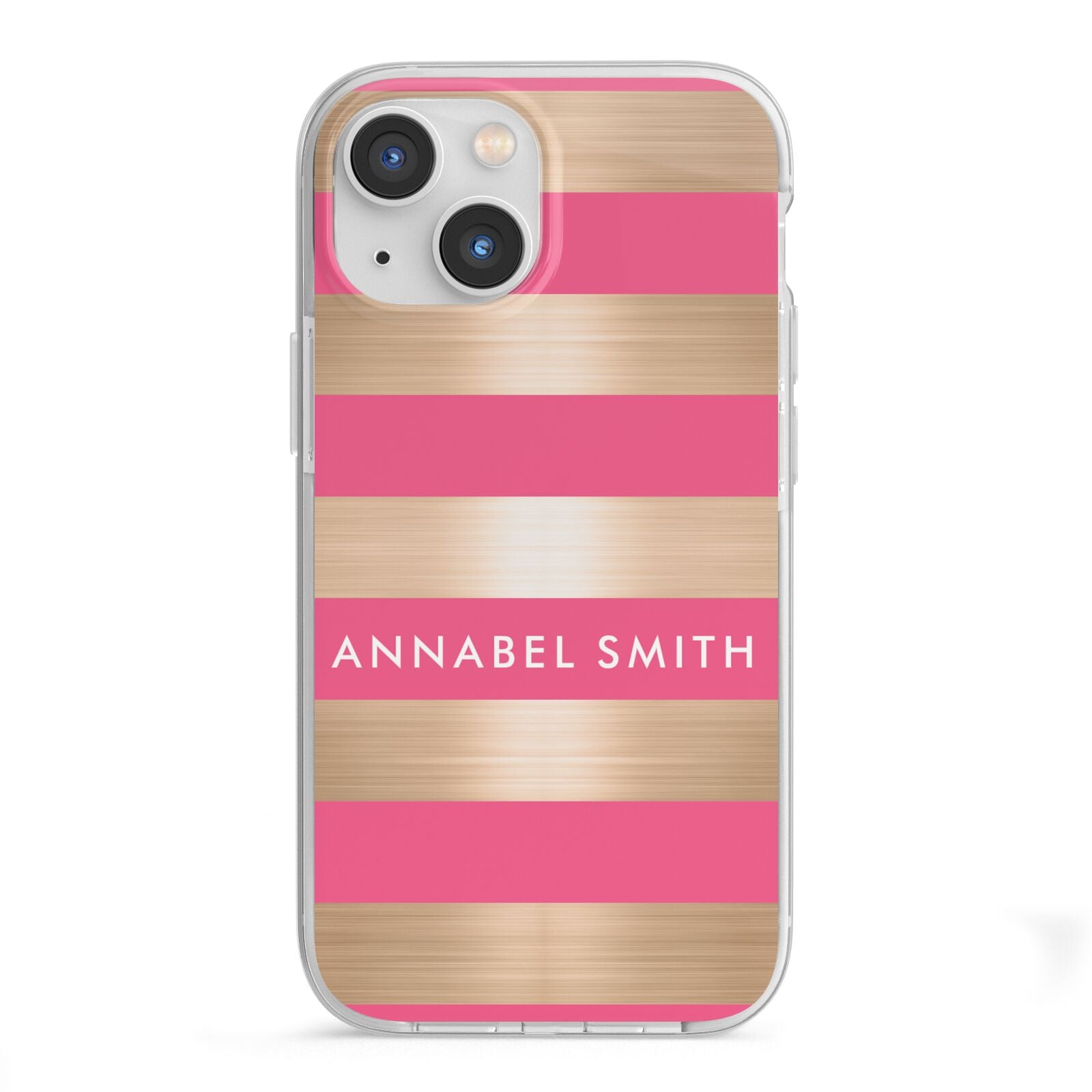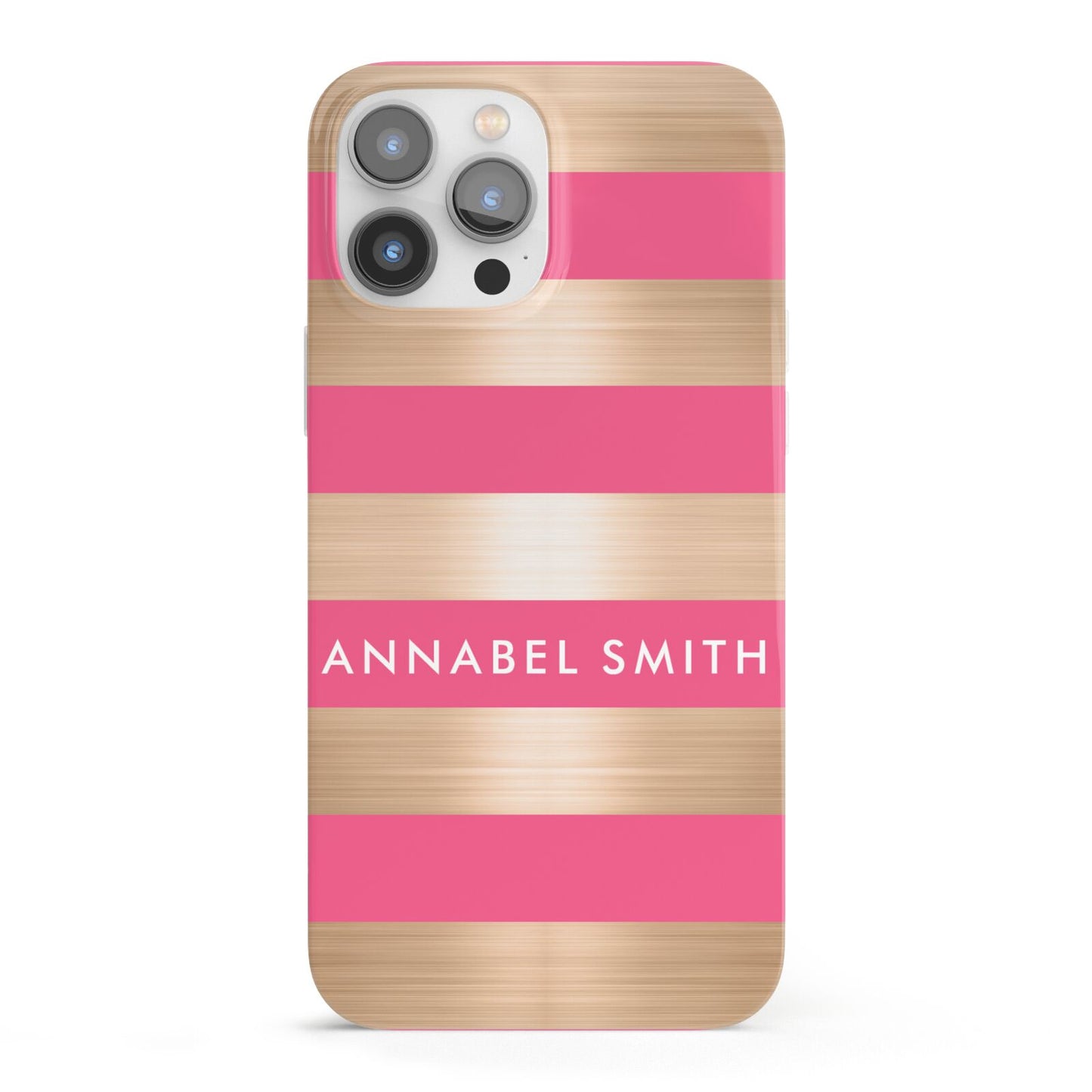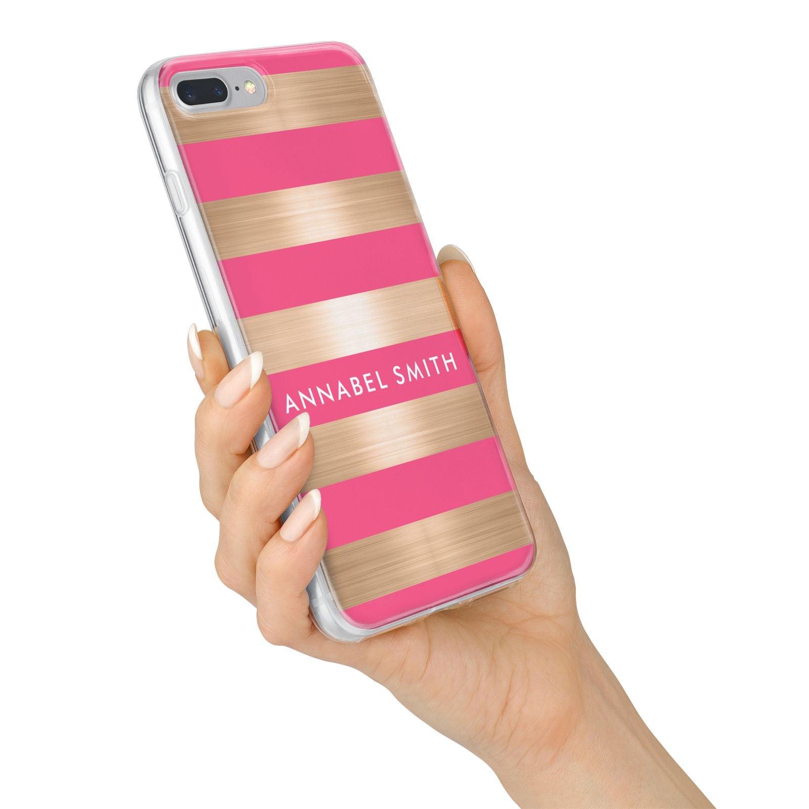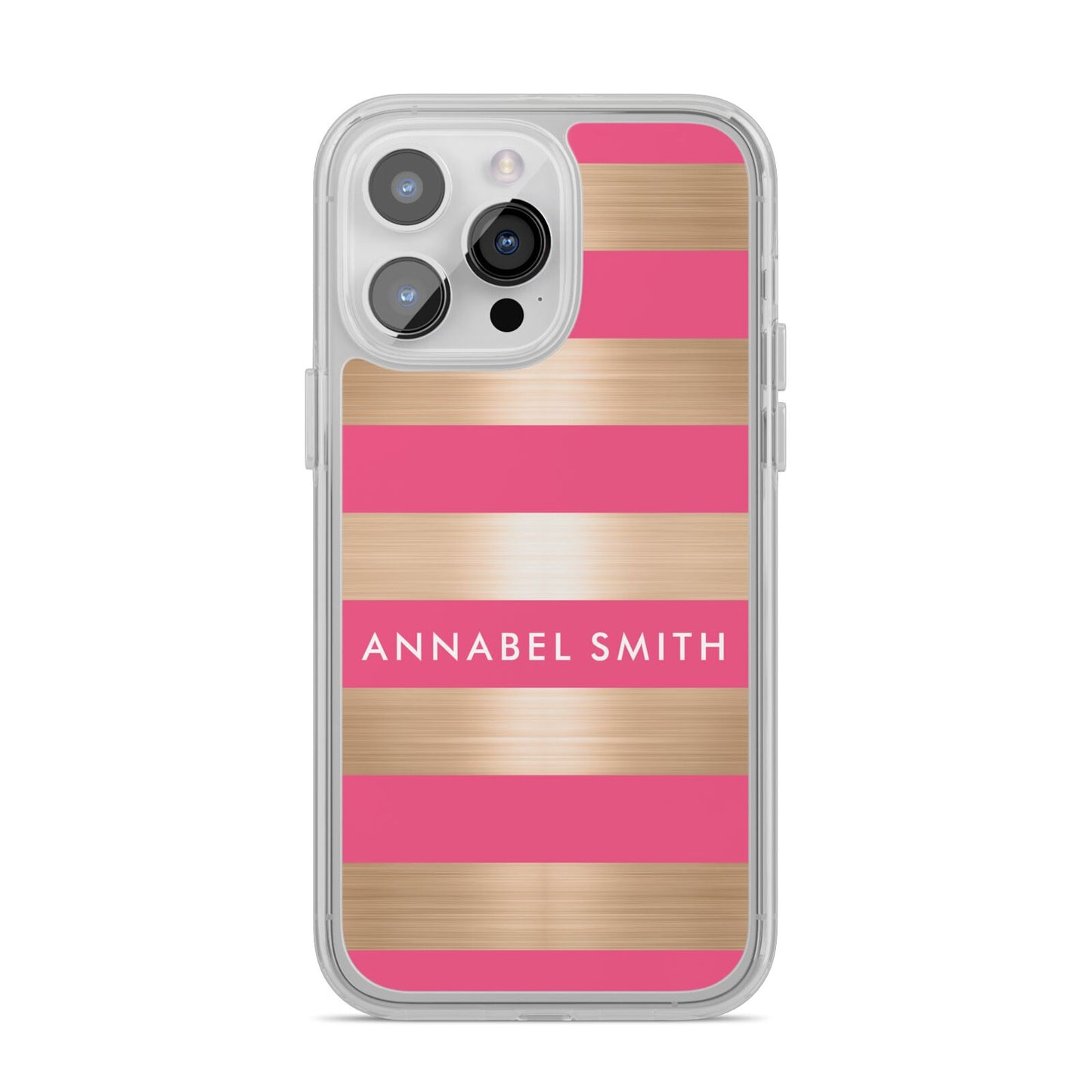 Personalised Gold Pink Stripes Name Initial Apple iPhone Case
