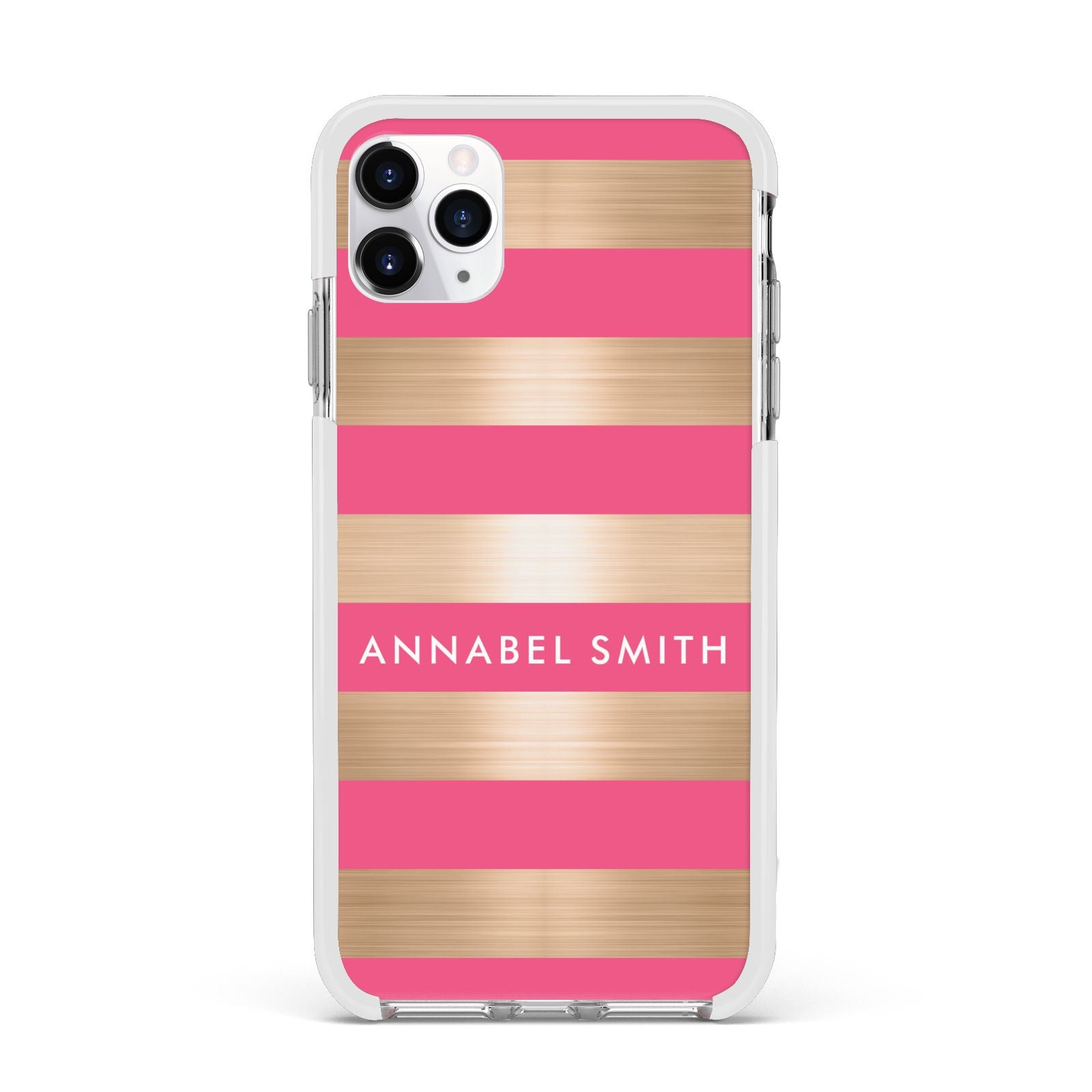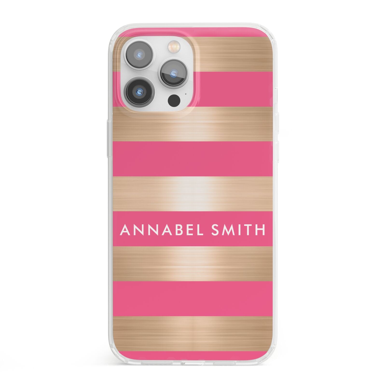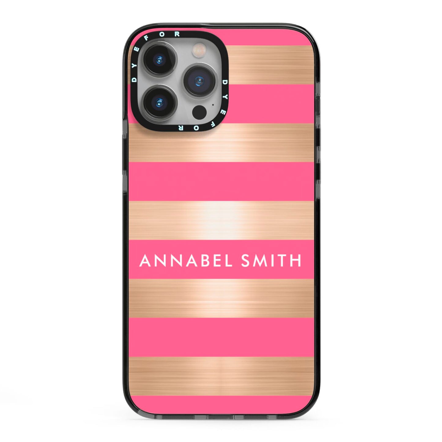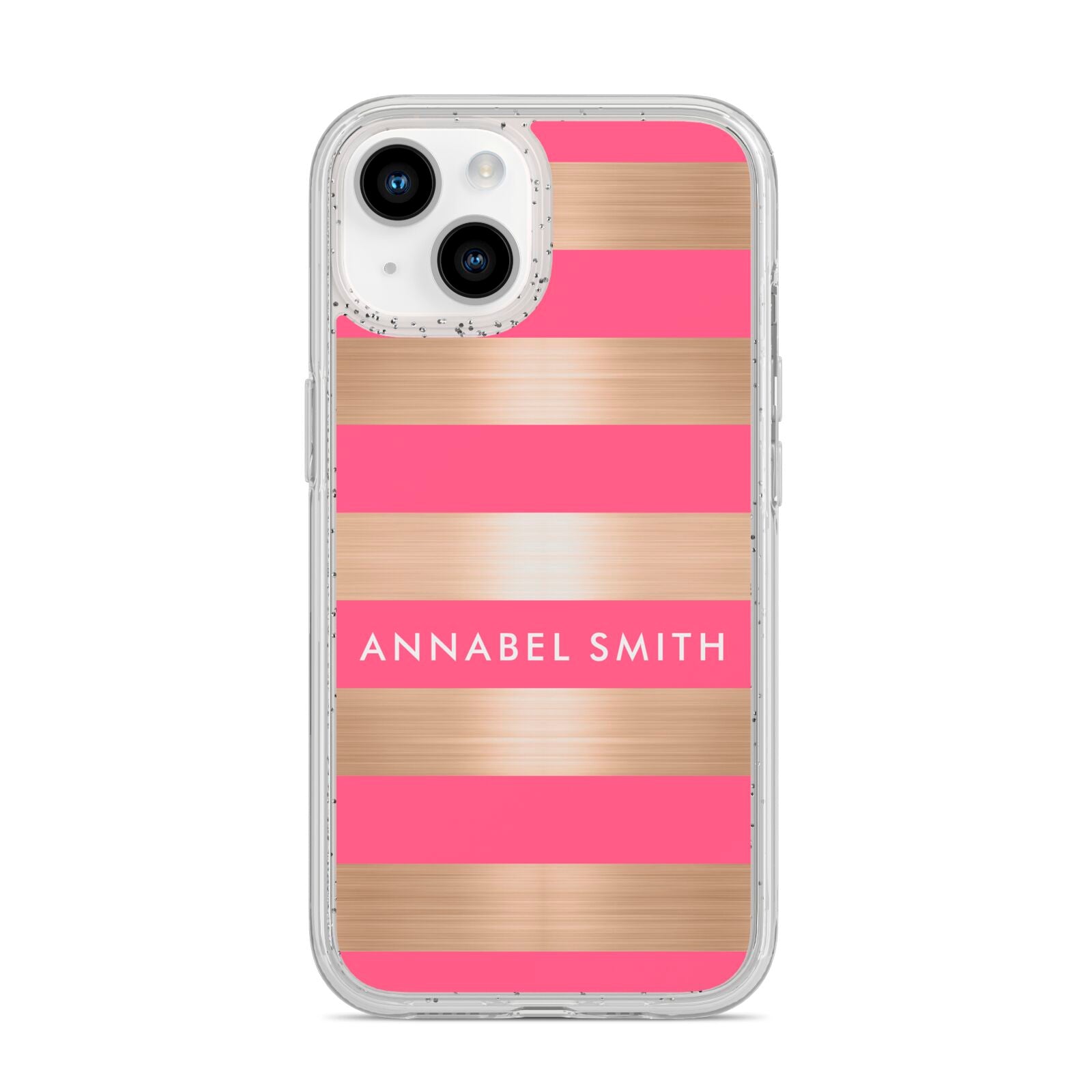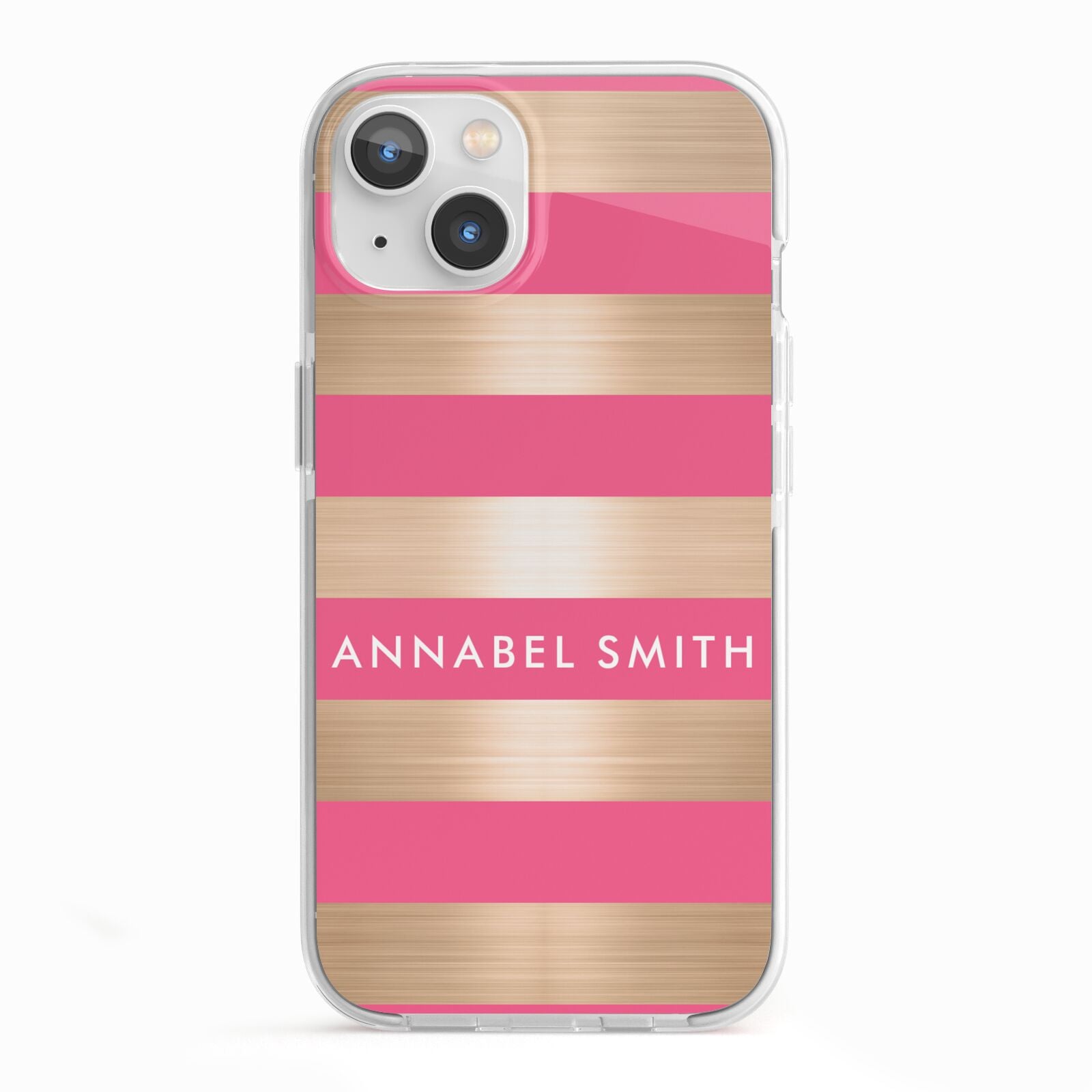 Personalised Gold Pink Stripes Name Initial Apple iPhone Case