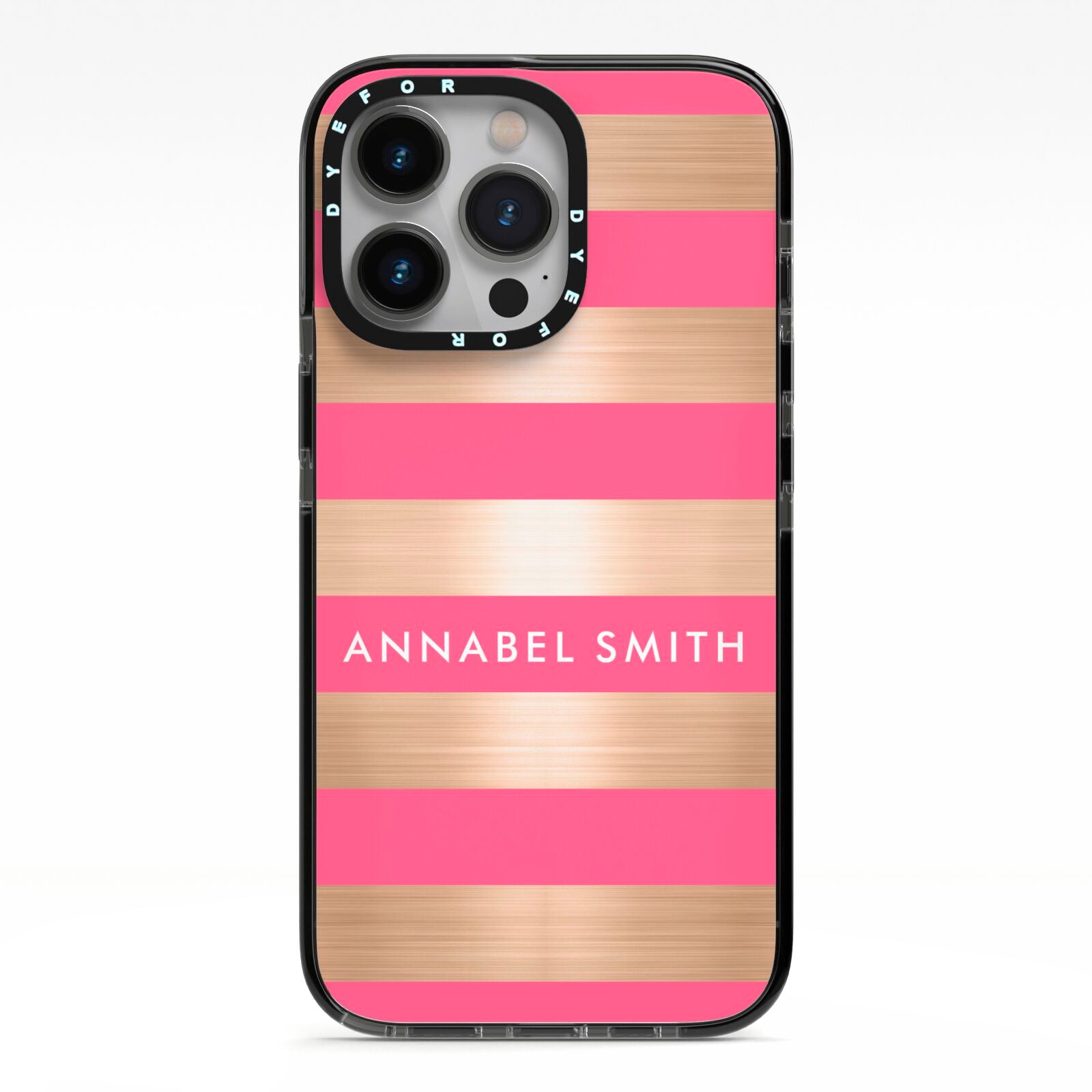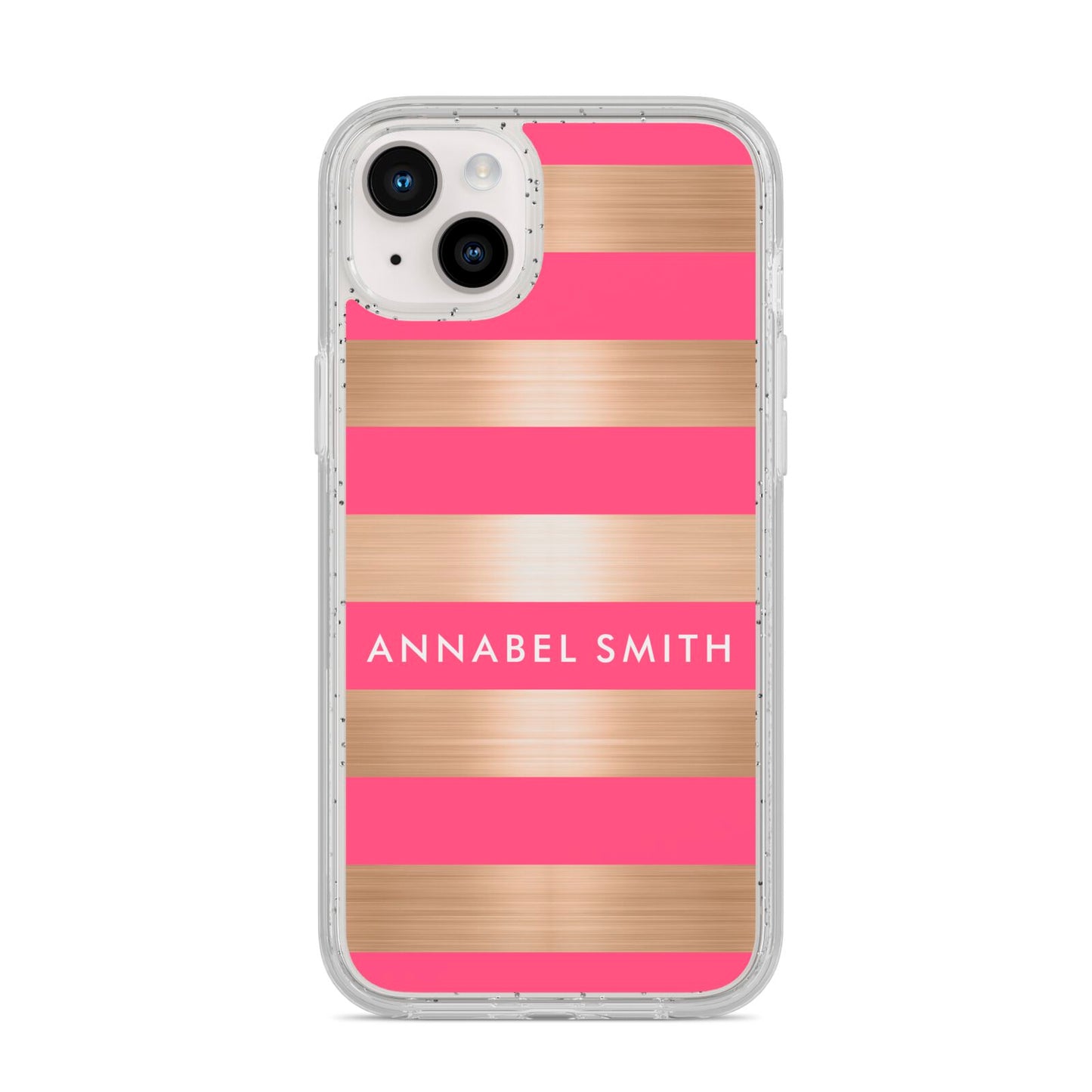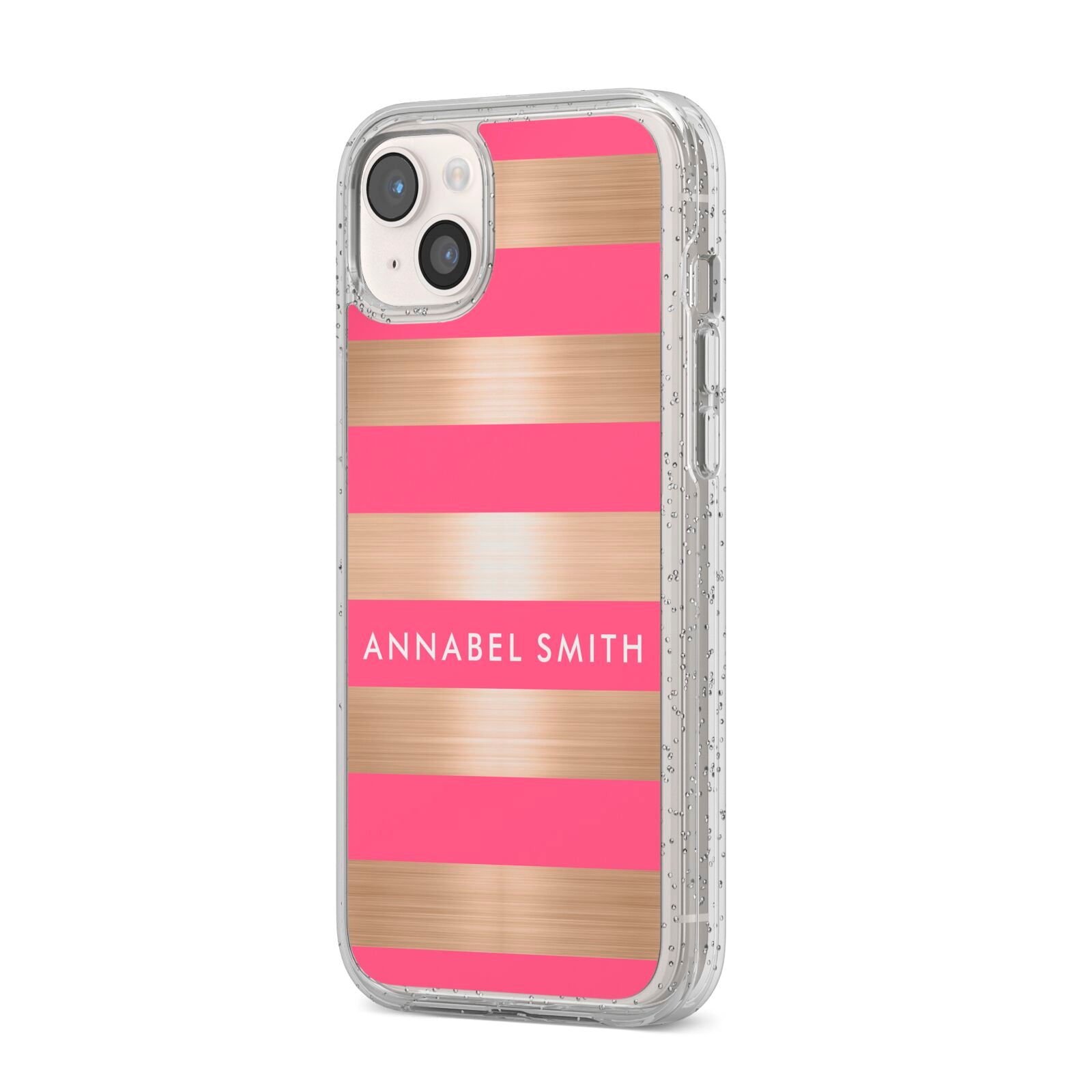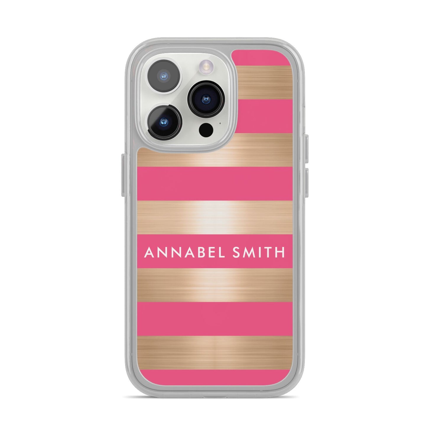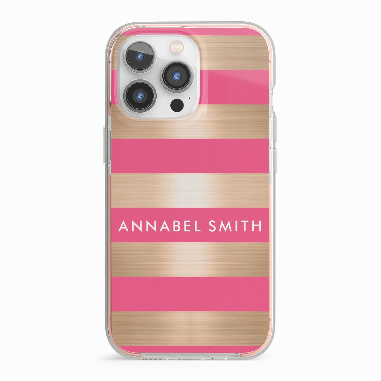 Personalised Gold Pink Stripes Name Initial Apple iPhone Case