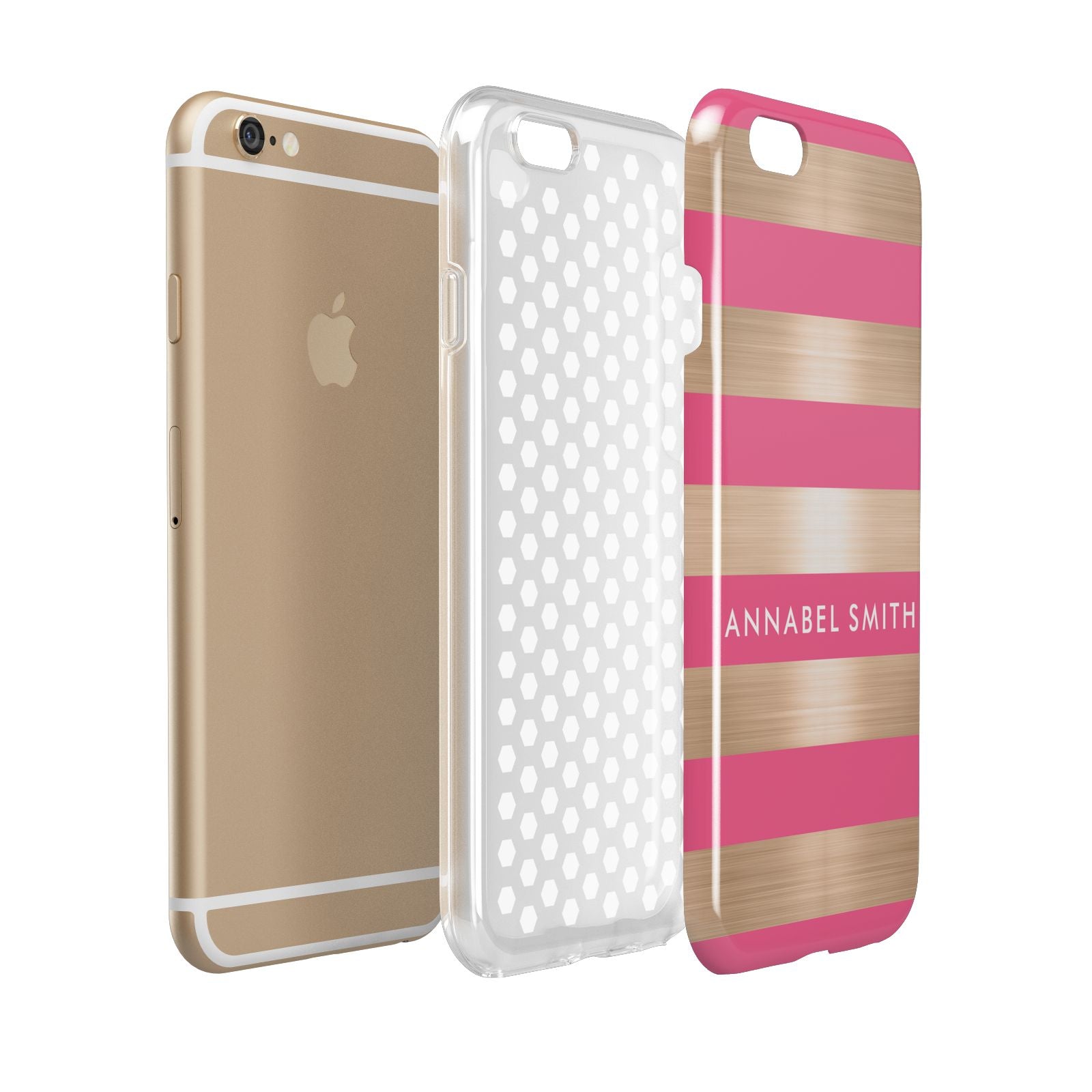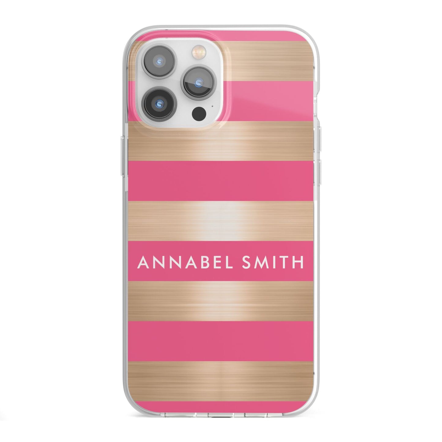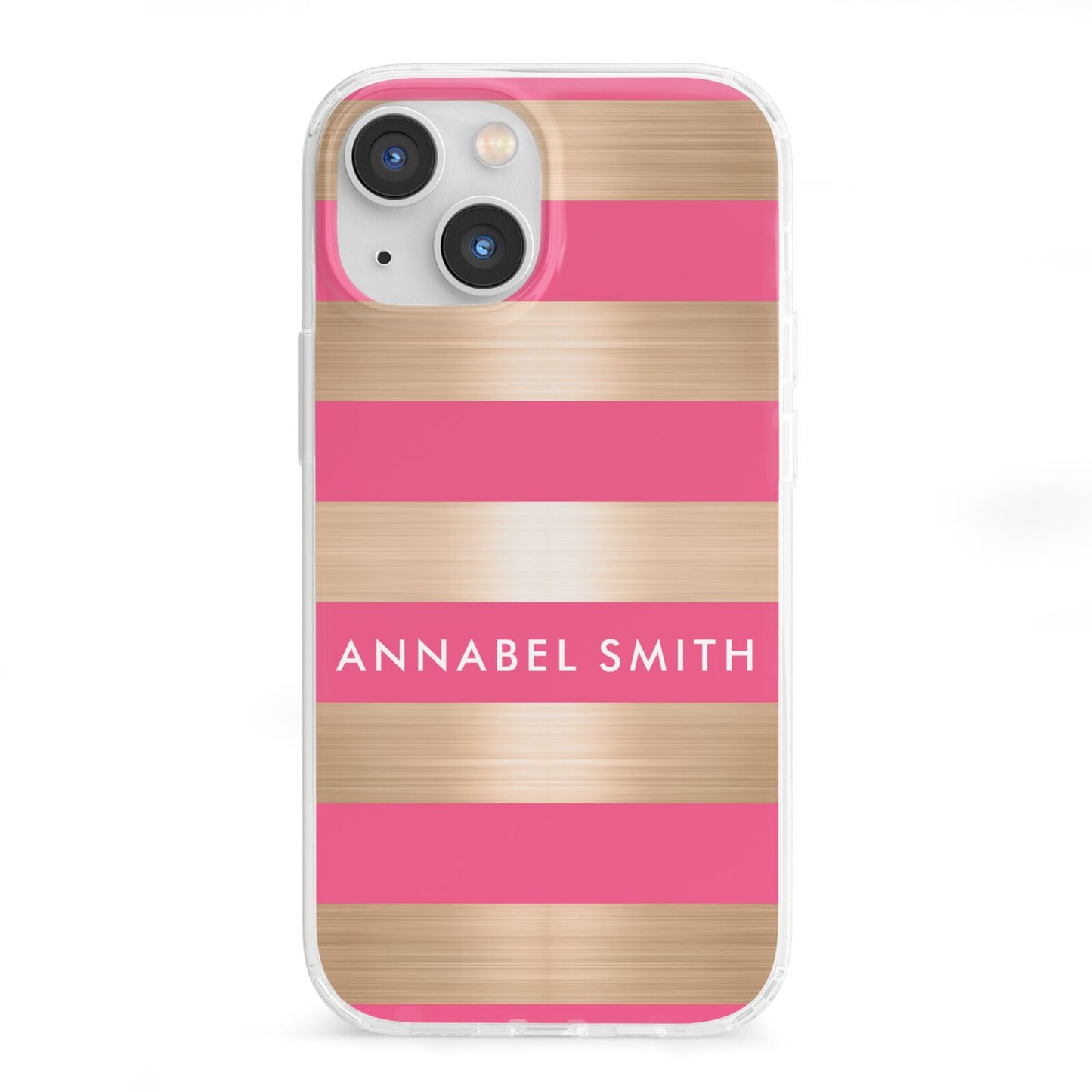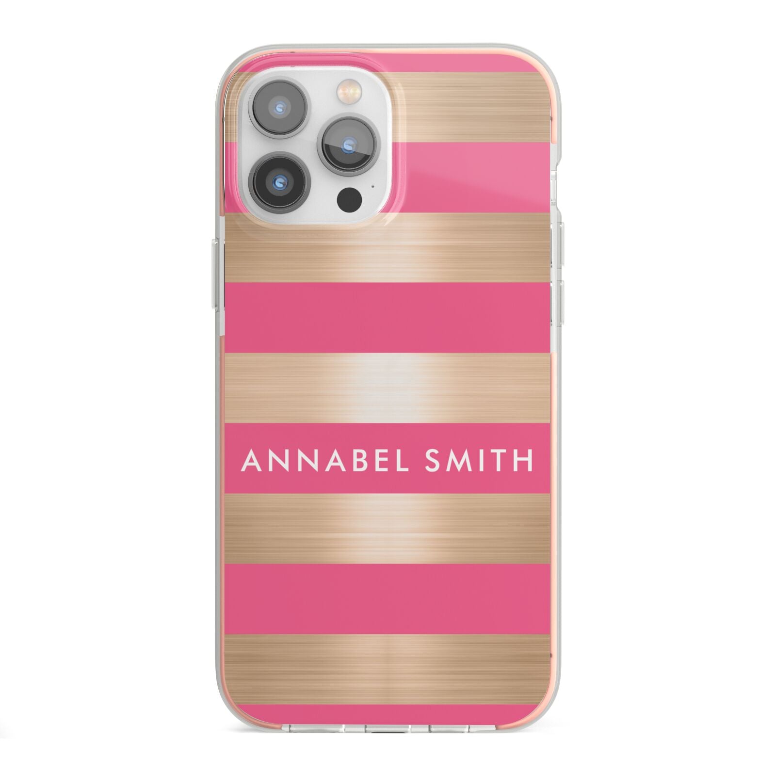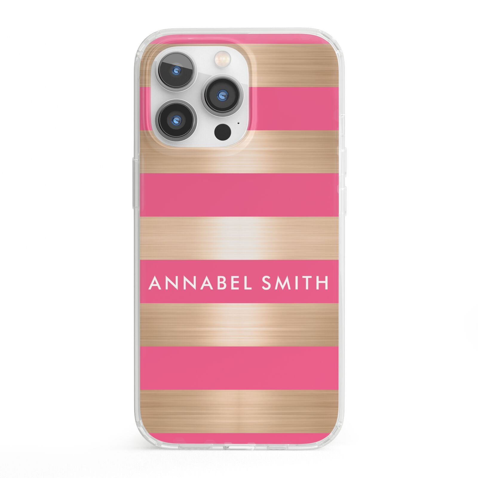 Personalised Gold Pink Stripes Name Initial Apple iPhone Case