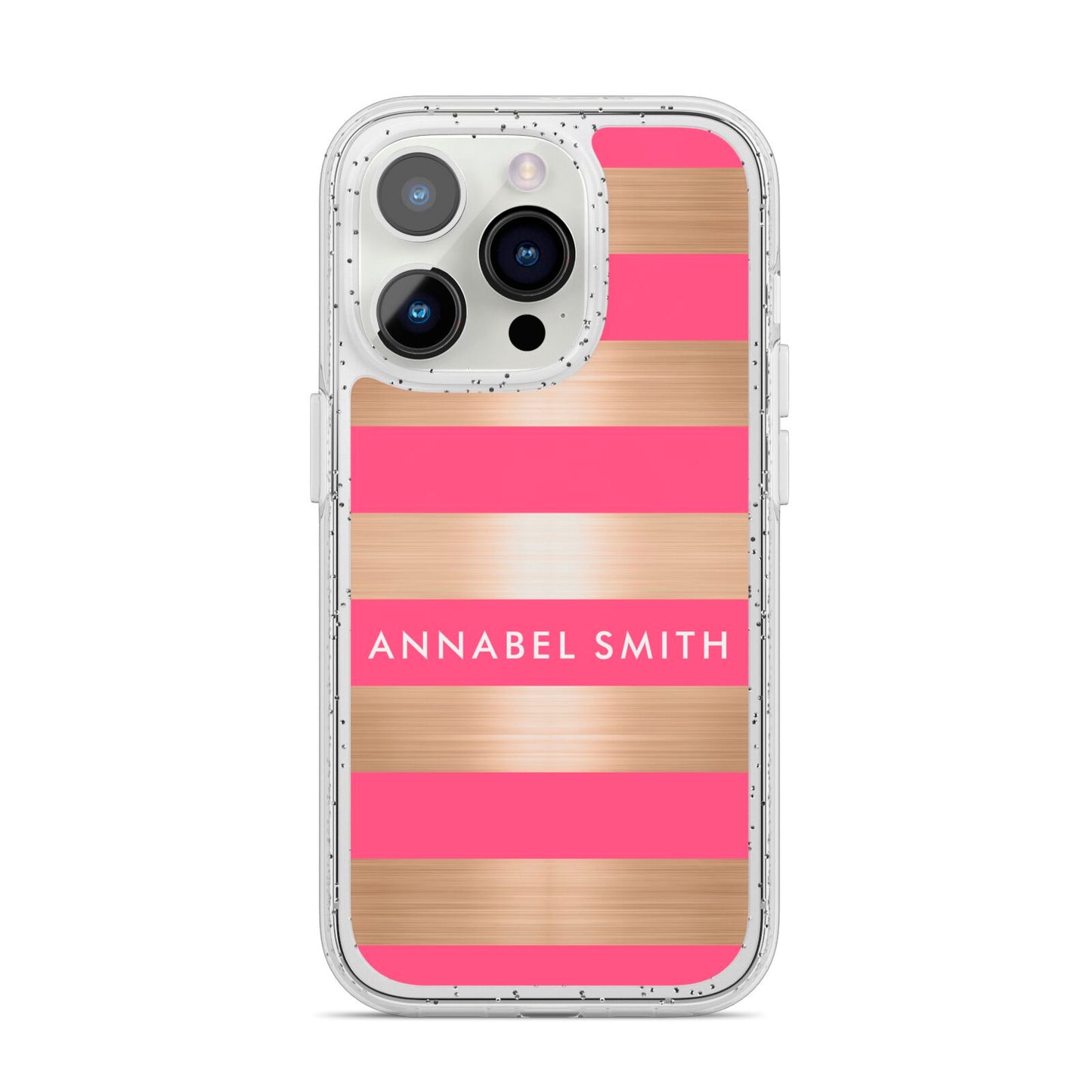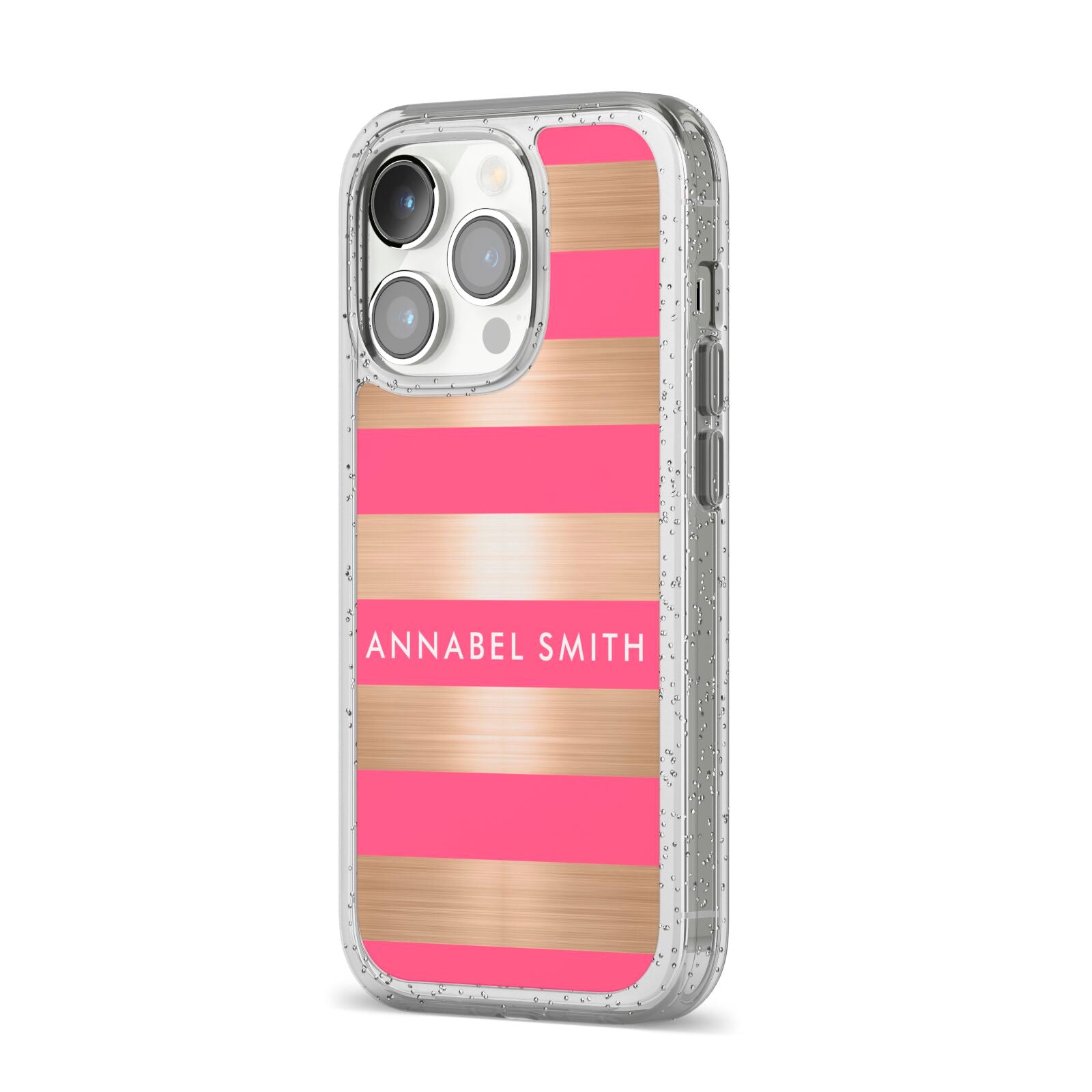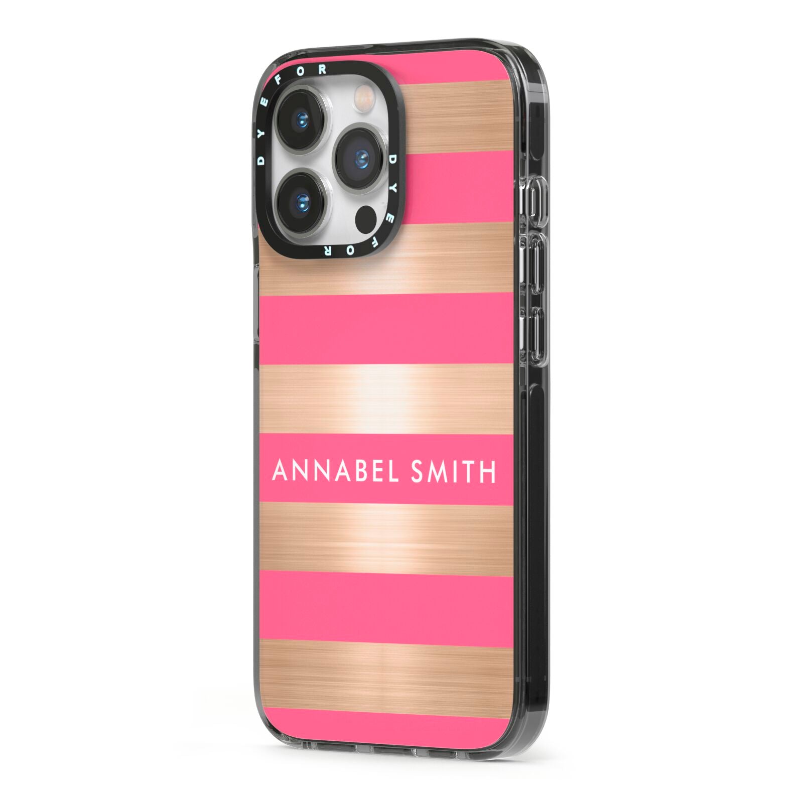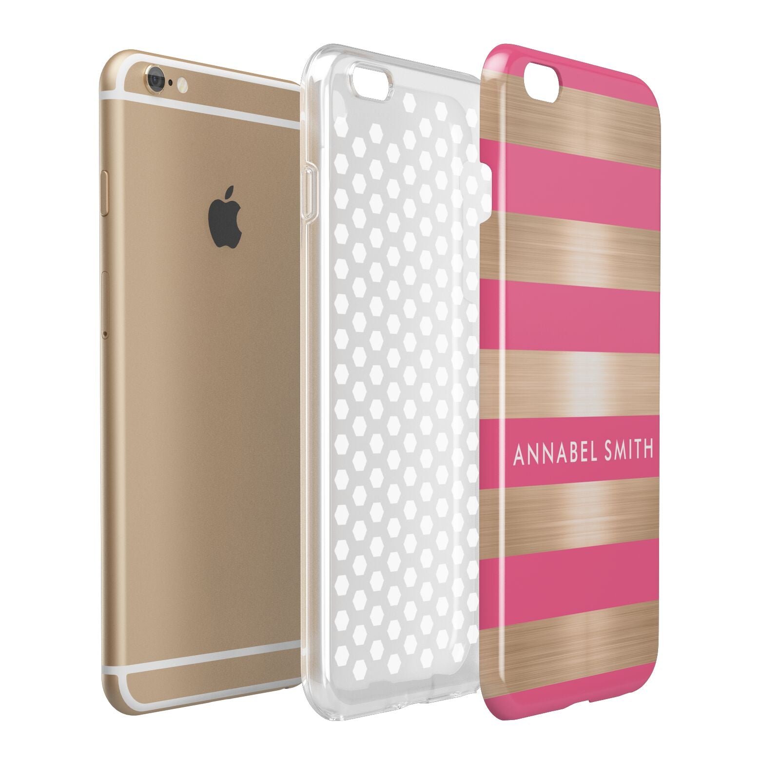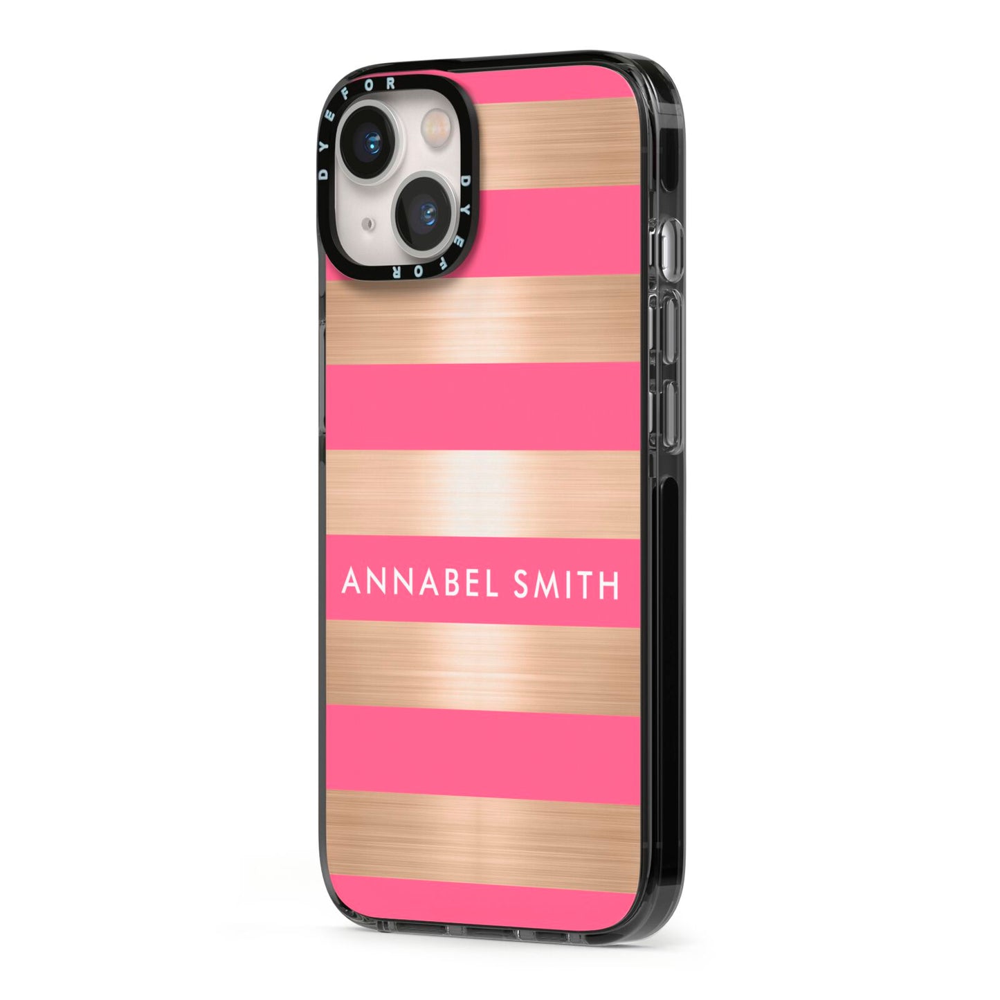 Personalised Gold Pink Stripes Name Initial Apple iPhone Case