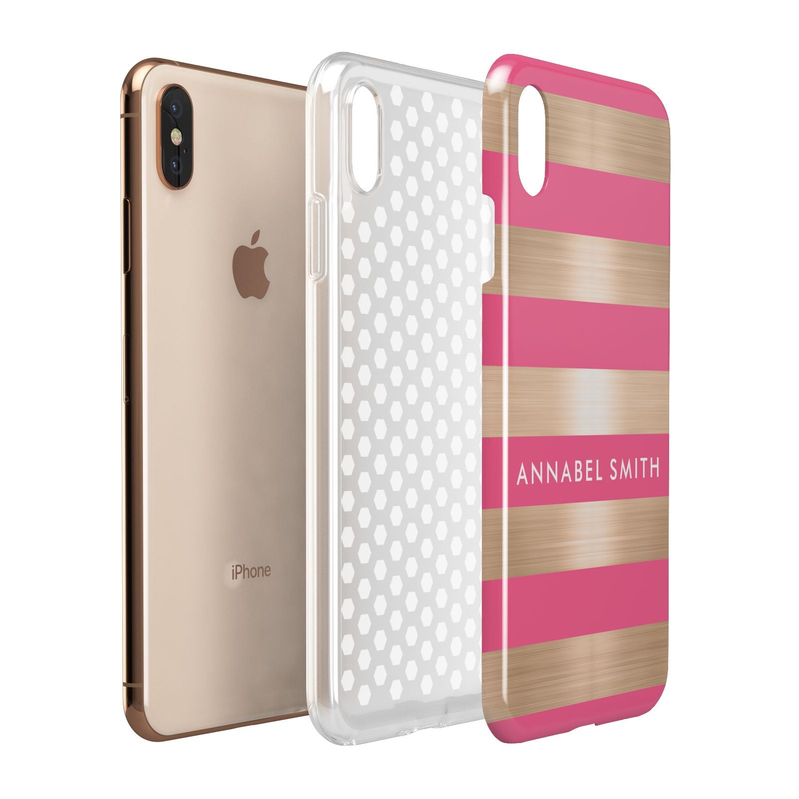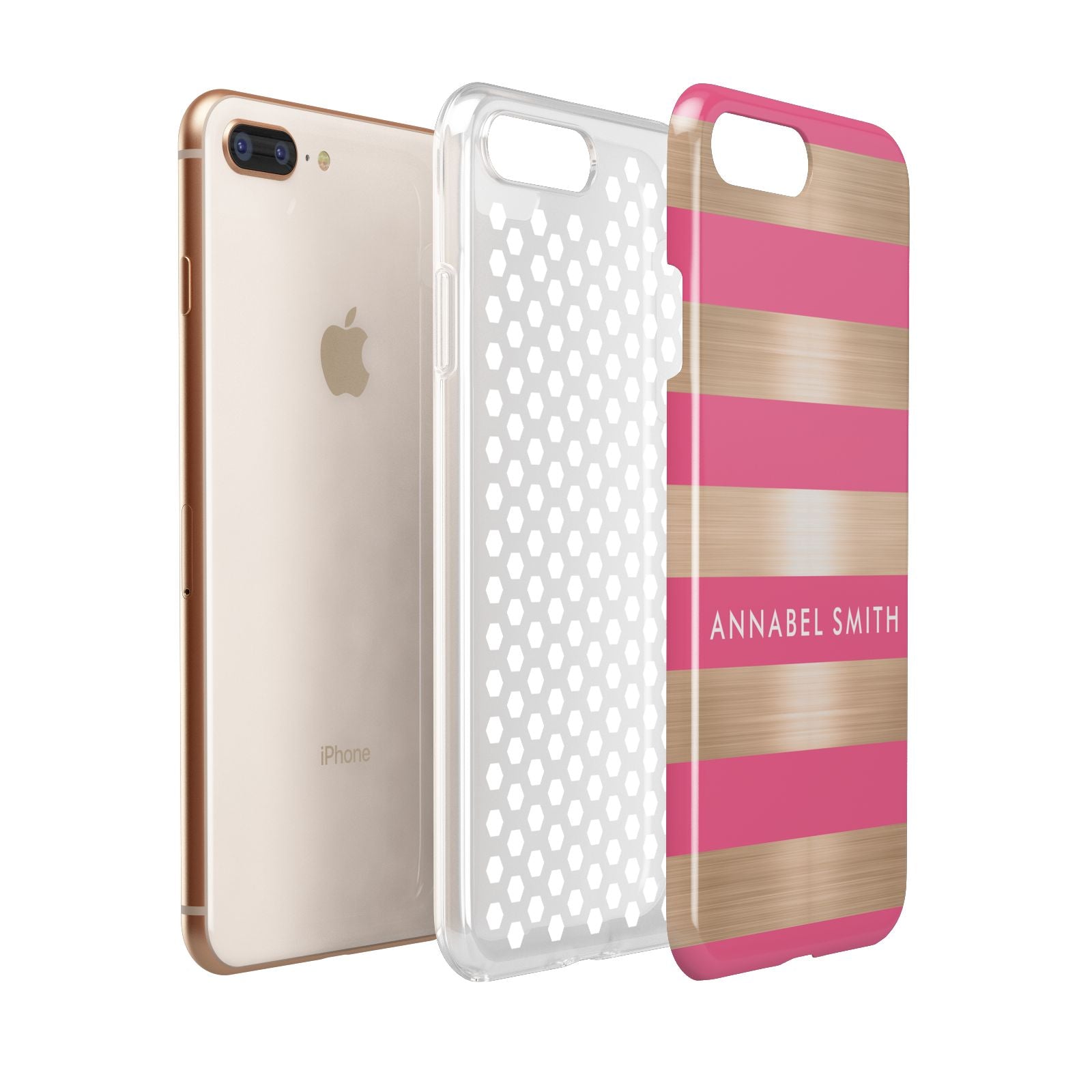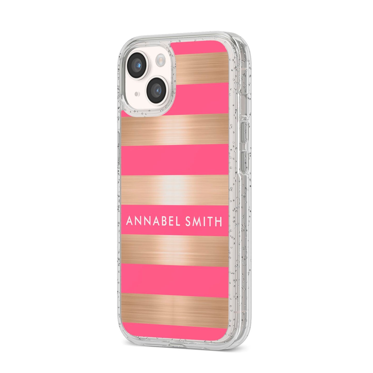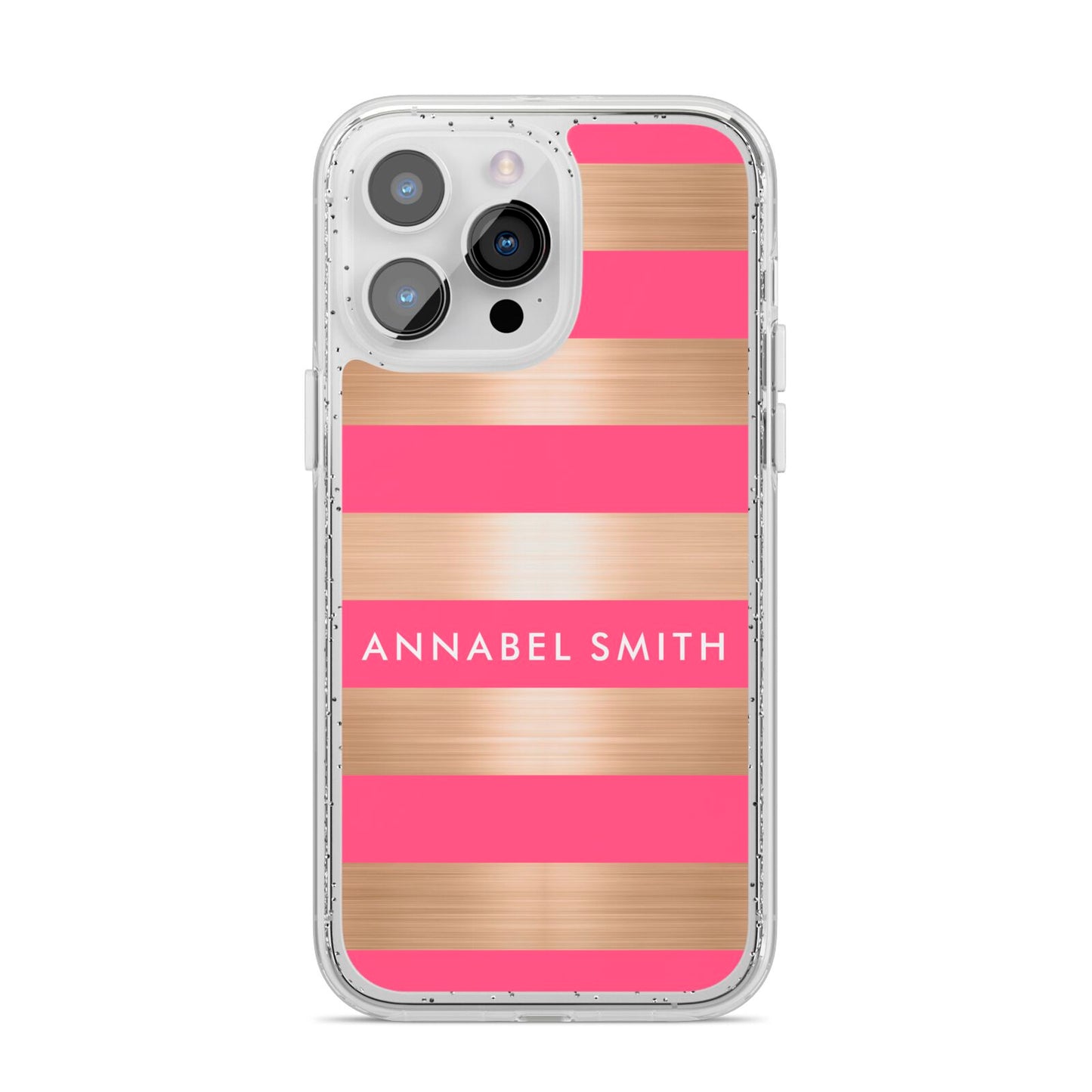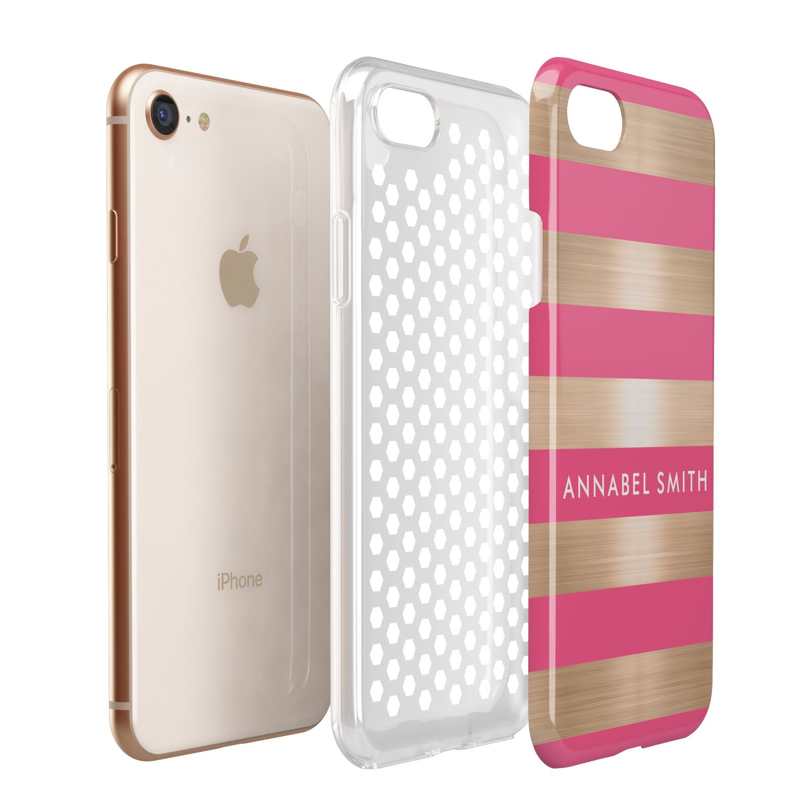 Personalised Gold Pink Stripes Name Initial Apple iPhone Case