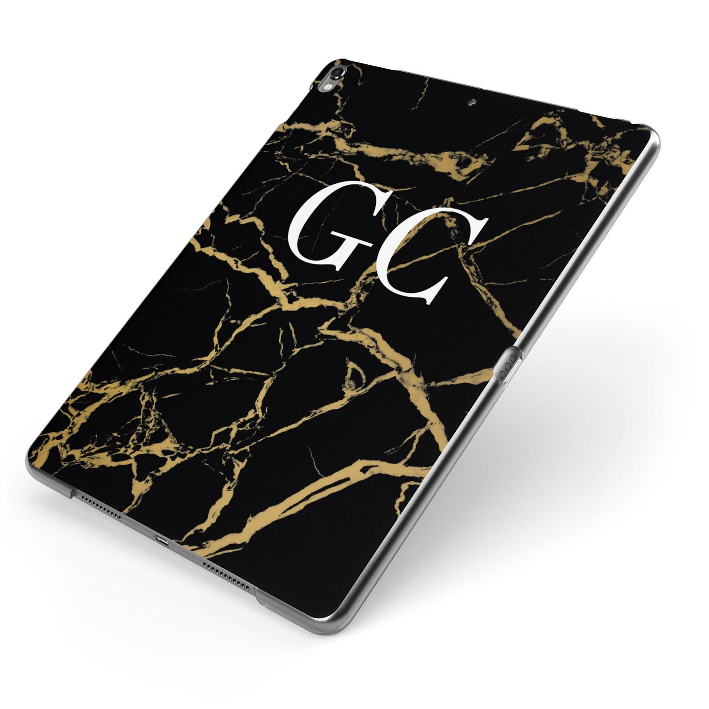 Personalised Gold Veins Black Marble Monogram Apple iPad Case