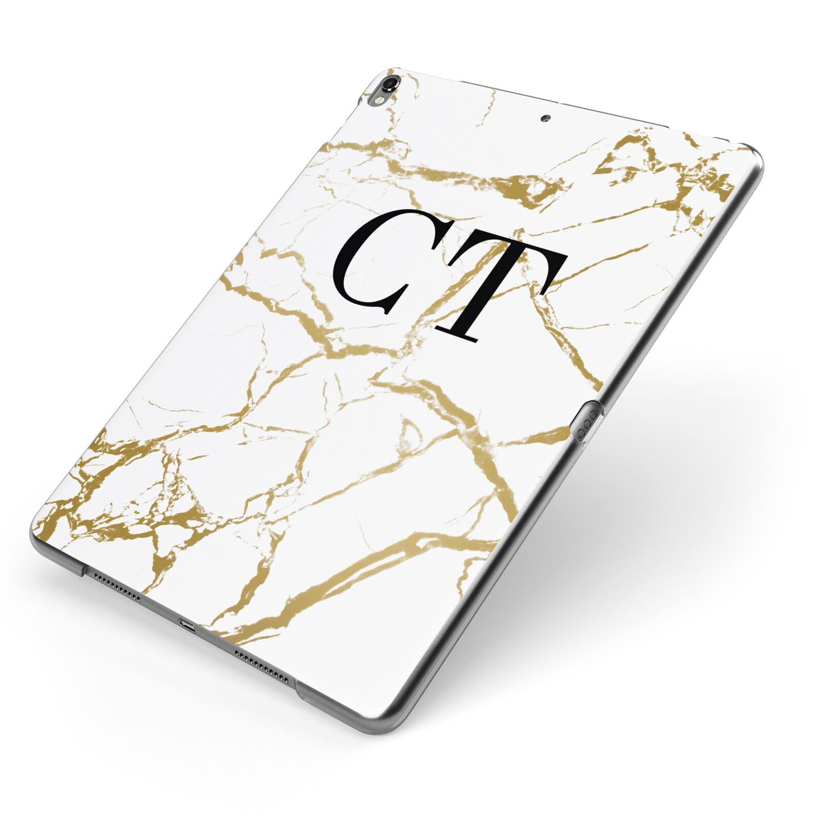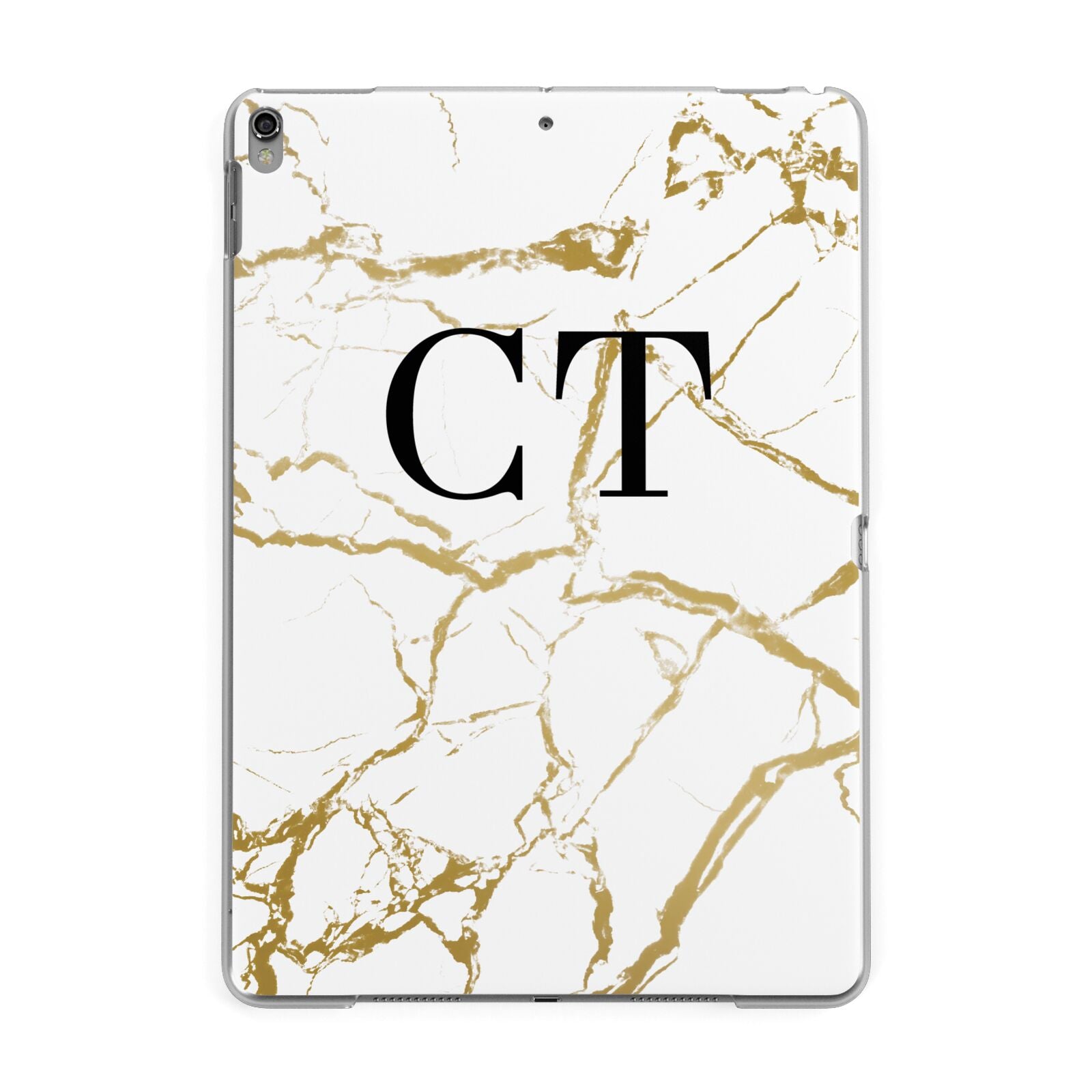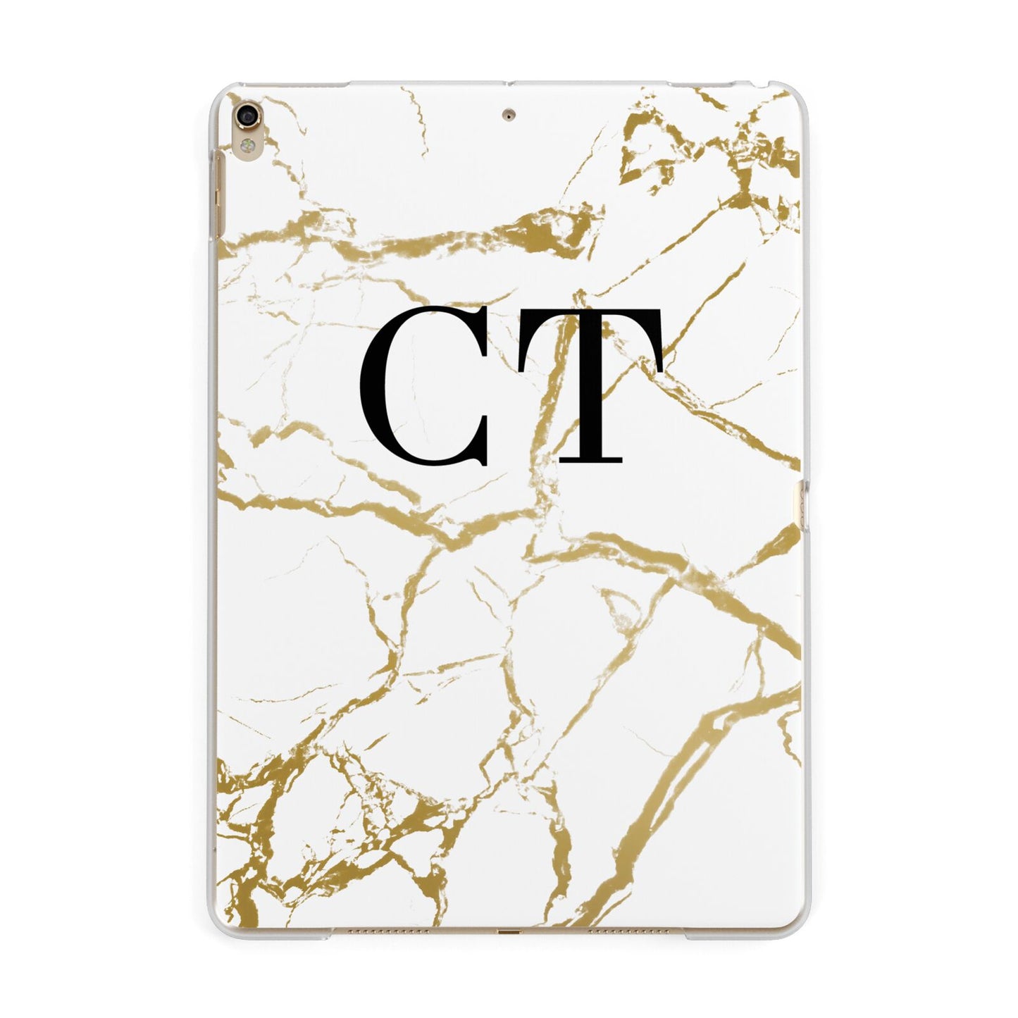 Personalised Gold Veins White Marble Monogram Apple iPad Case