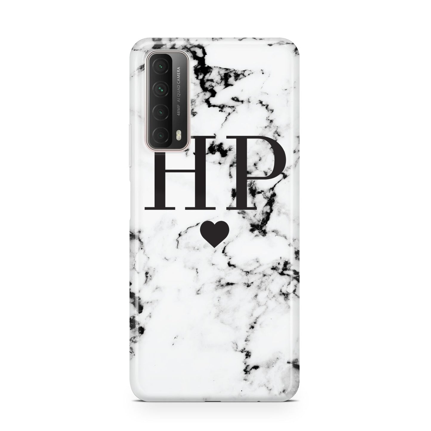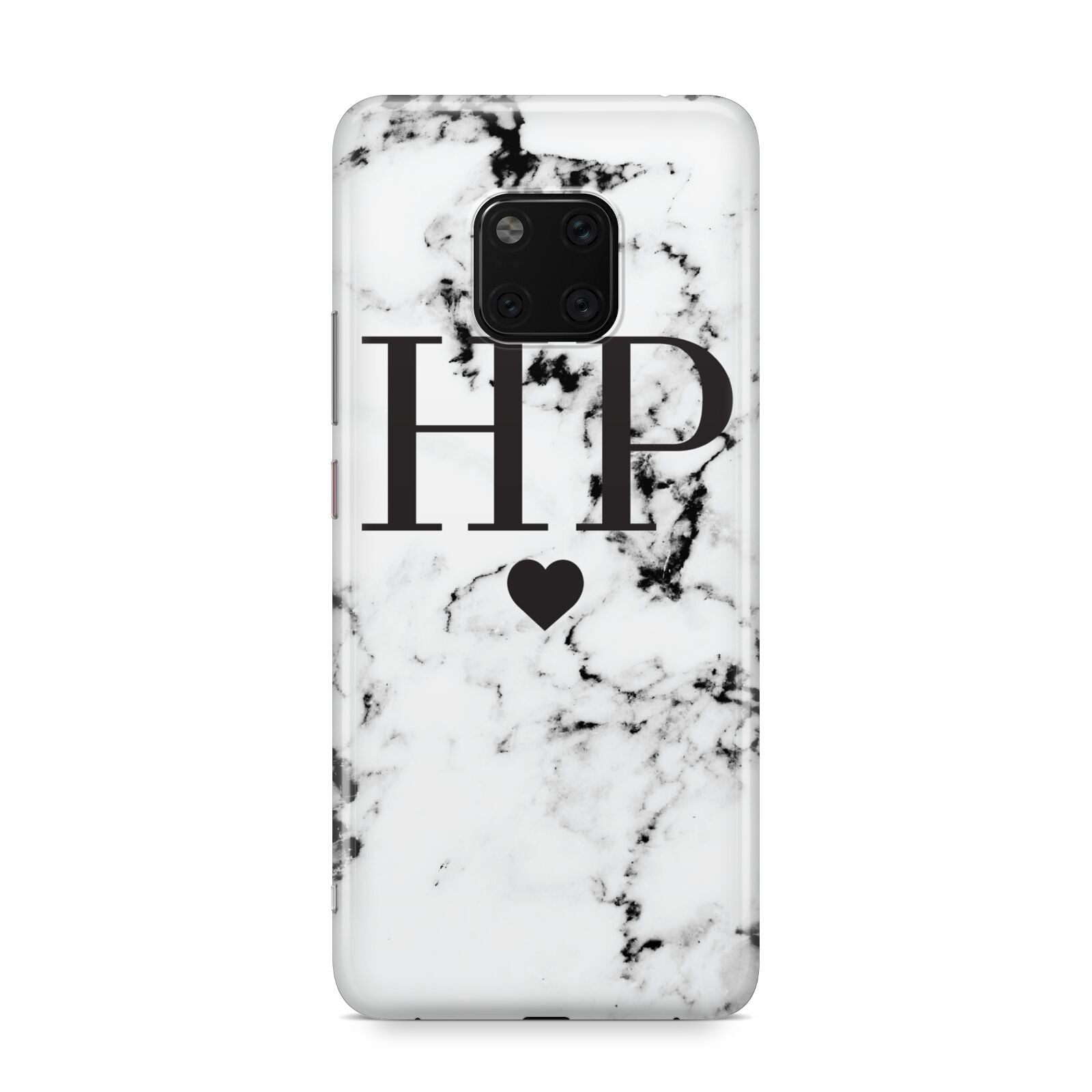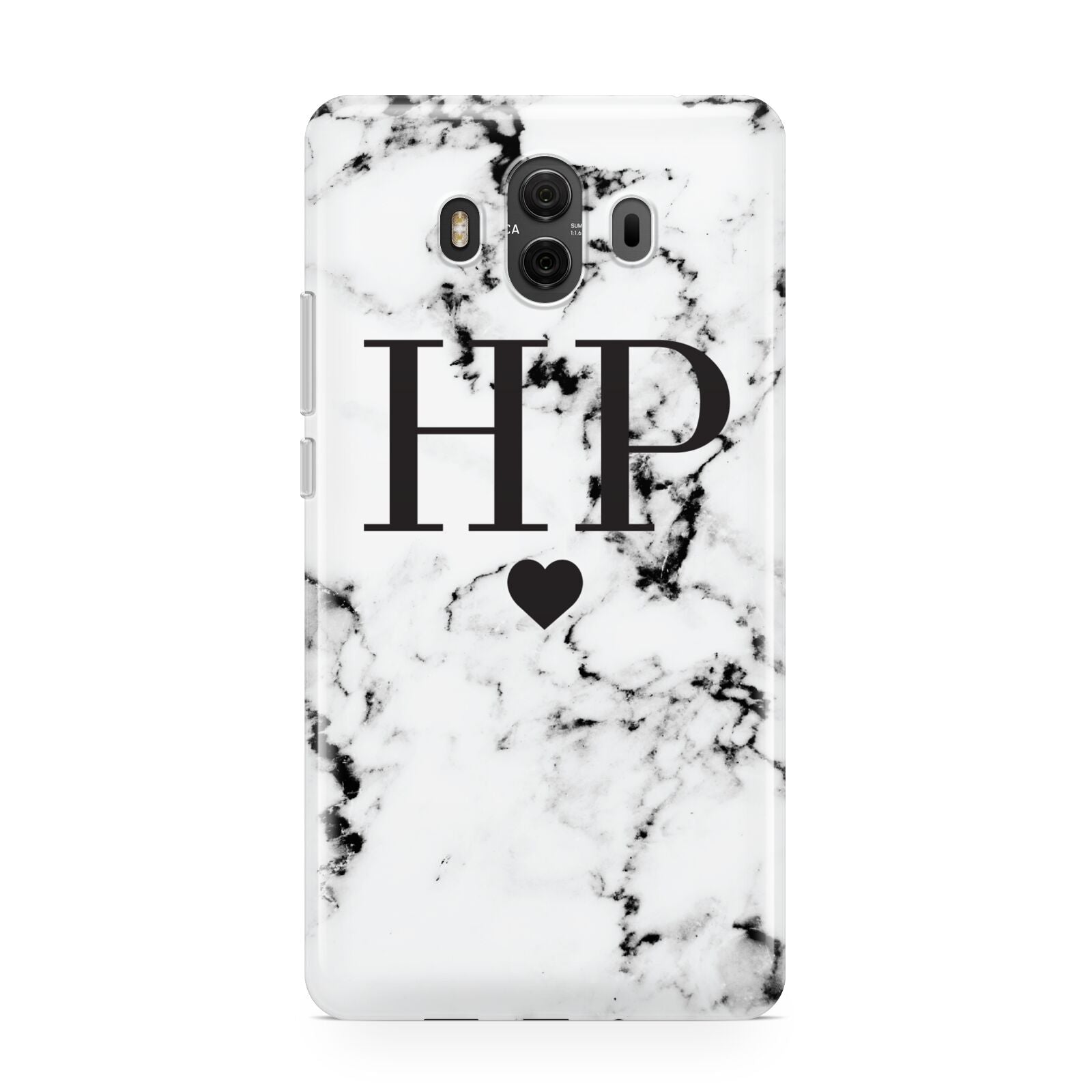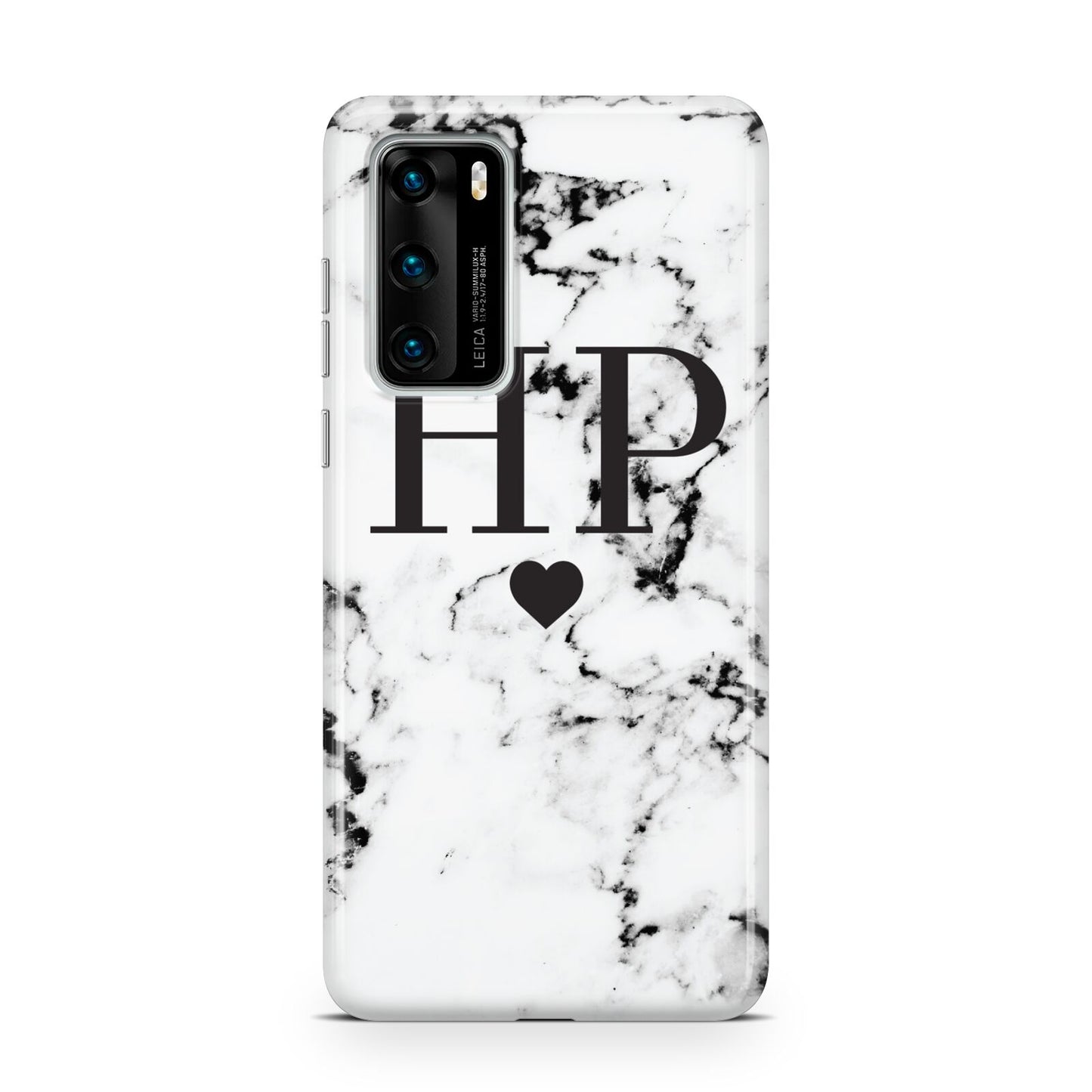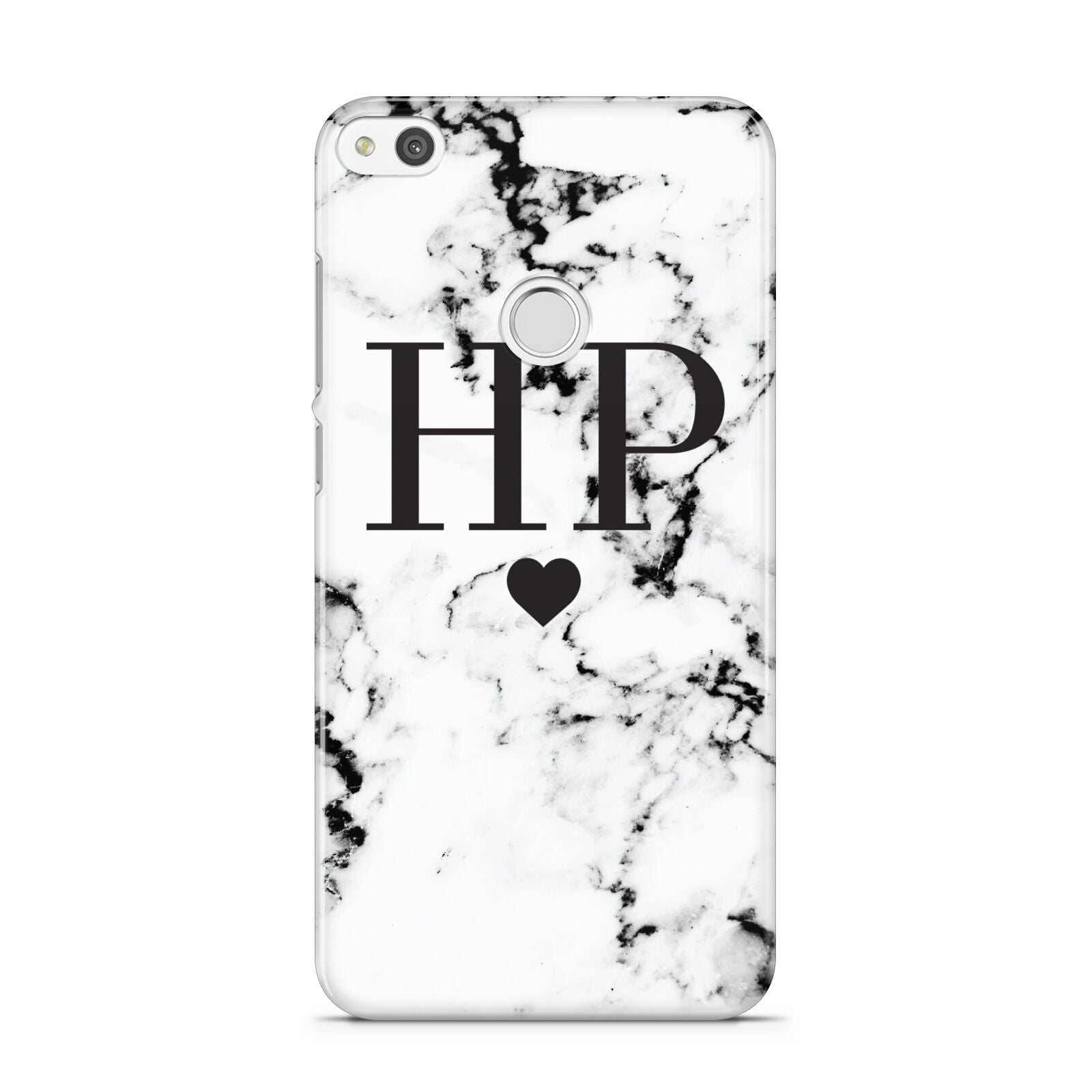 Our Heart Decal Marble Initials Personalised Huawei Case is a white and black veined marble design, with two large black initials and love heart. The large initials sit above the love heart, and are positioned above the middle of the design. Add your own initials to make a custom personalised phone case.