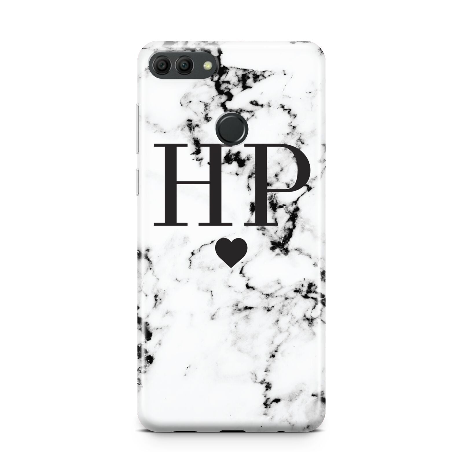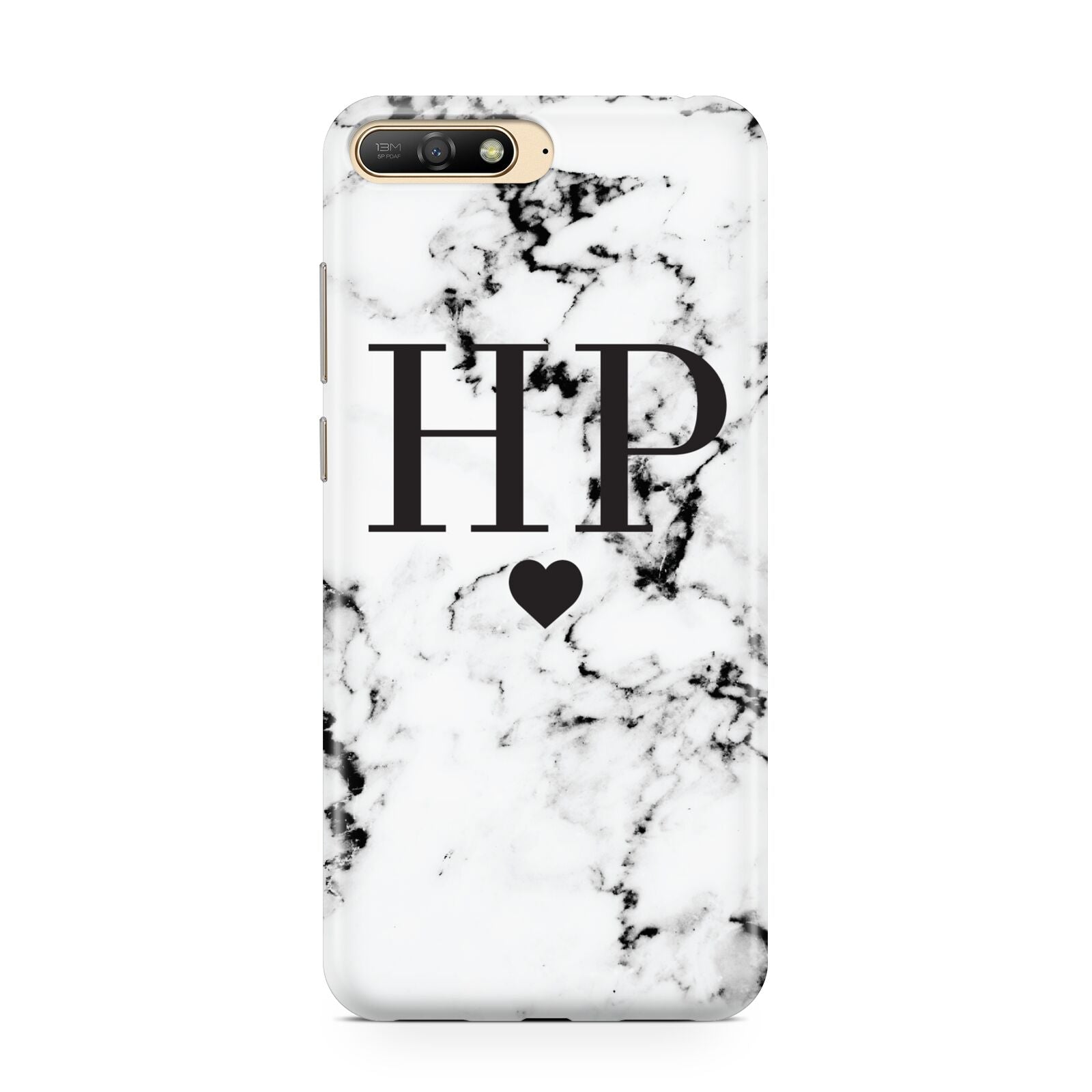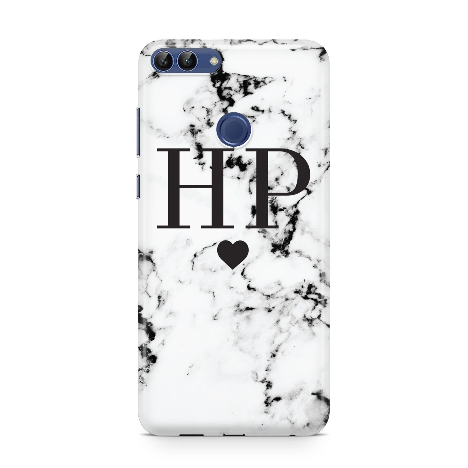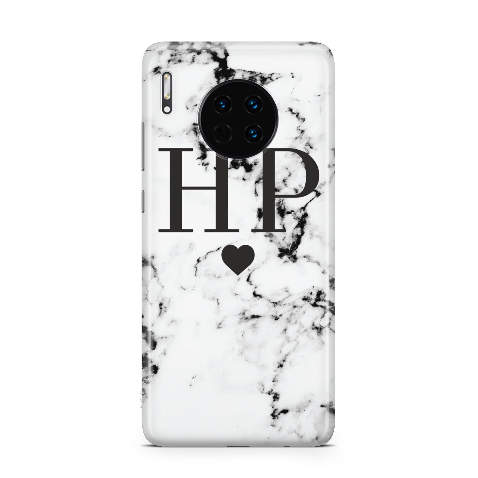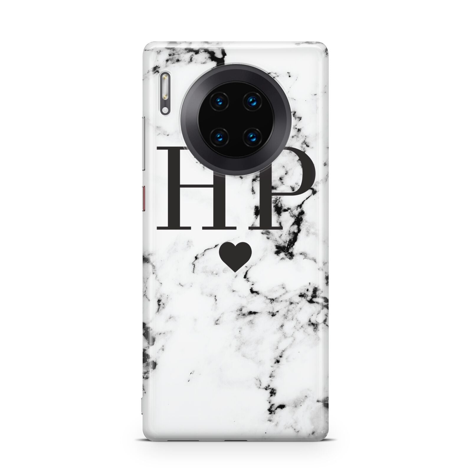 Our Heart Decal Marble Initials Personalised Huawei Case is a white and black veined marble design, with two large black initials and love heart. The large initials sit above the love heart, and are positioned above the middle of the design. Add your own initials to make a custom personalised phone case.
