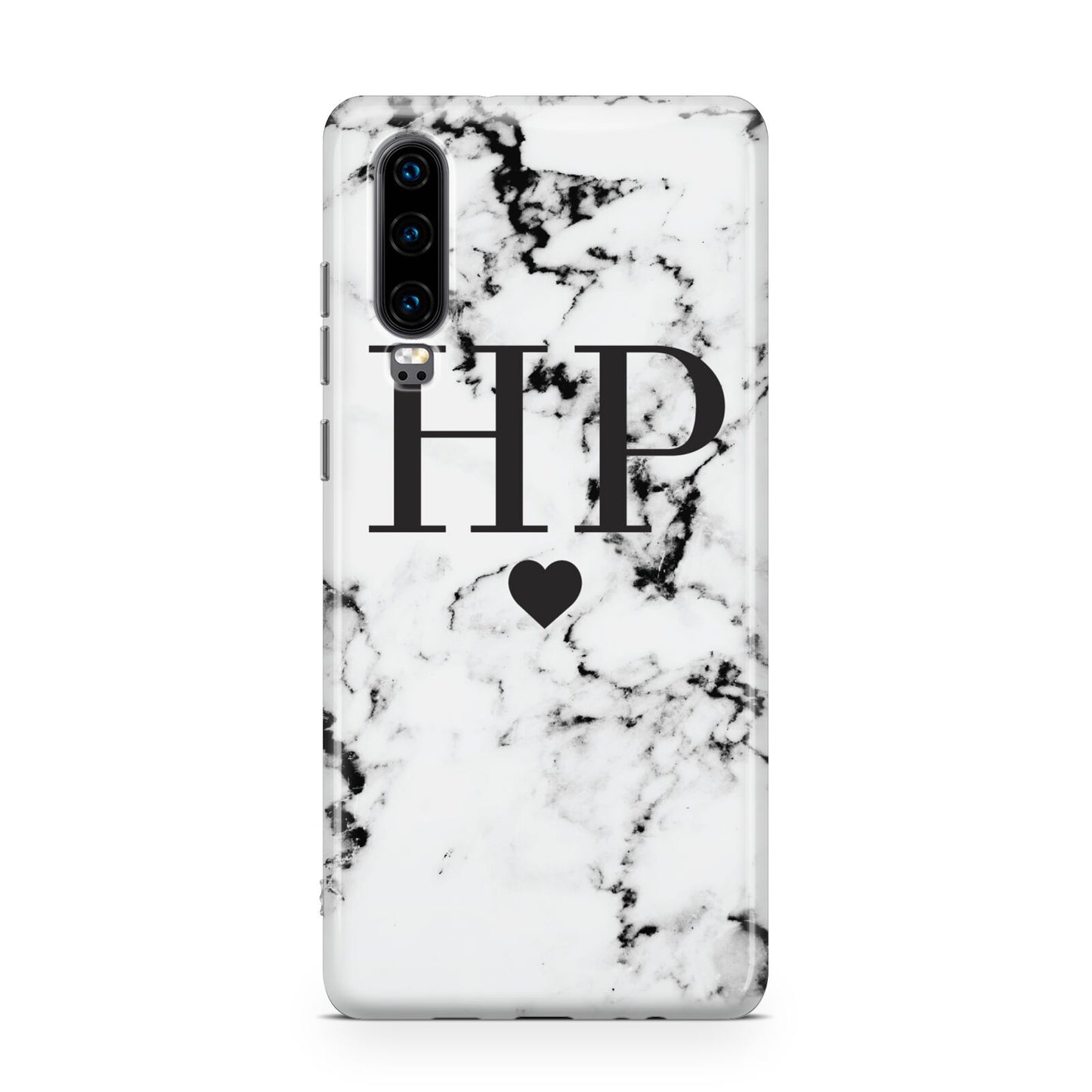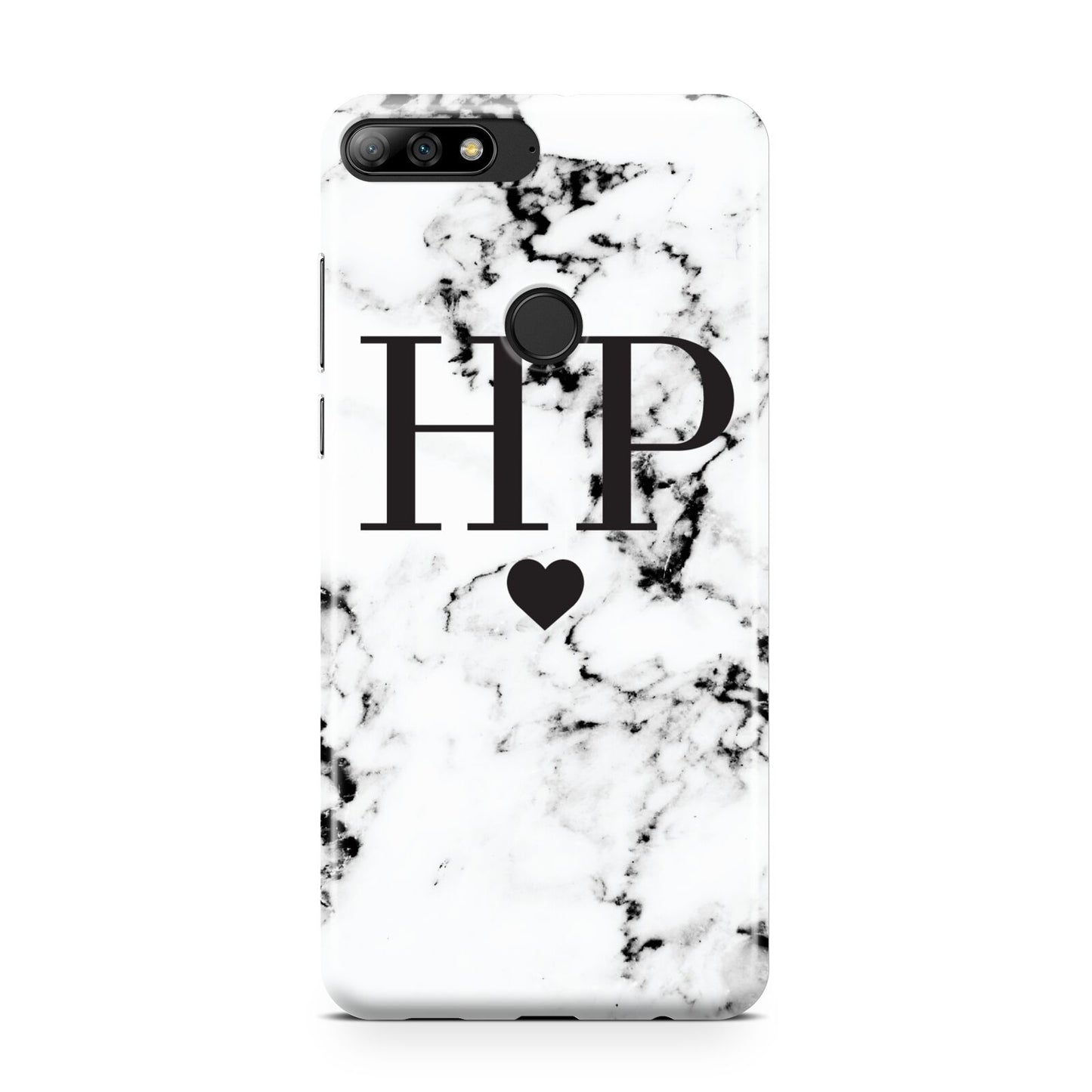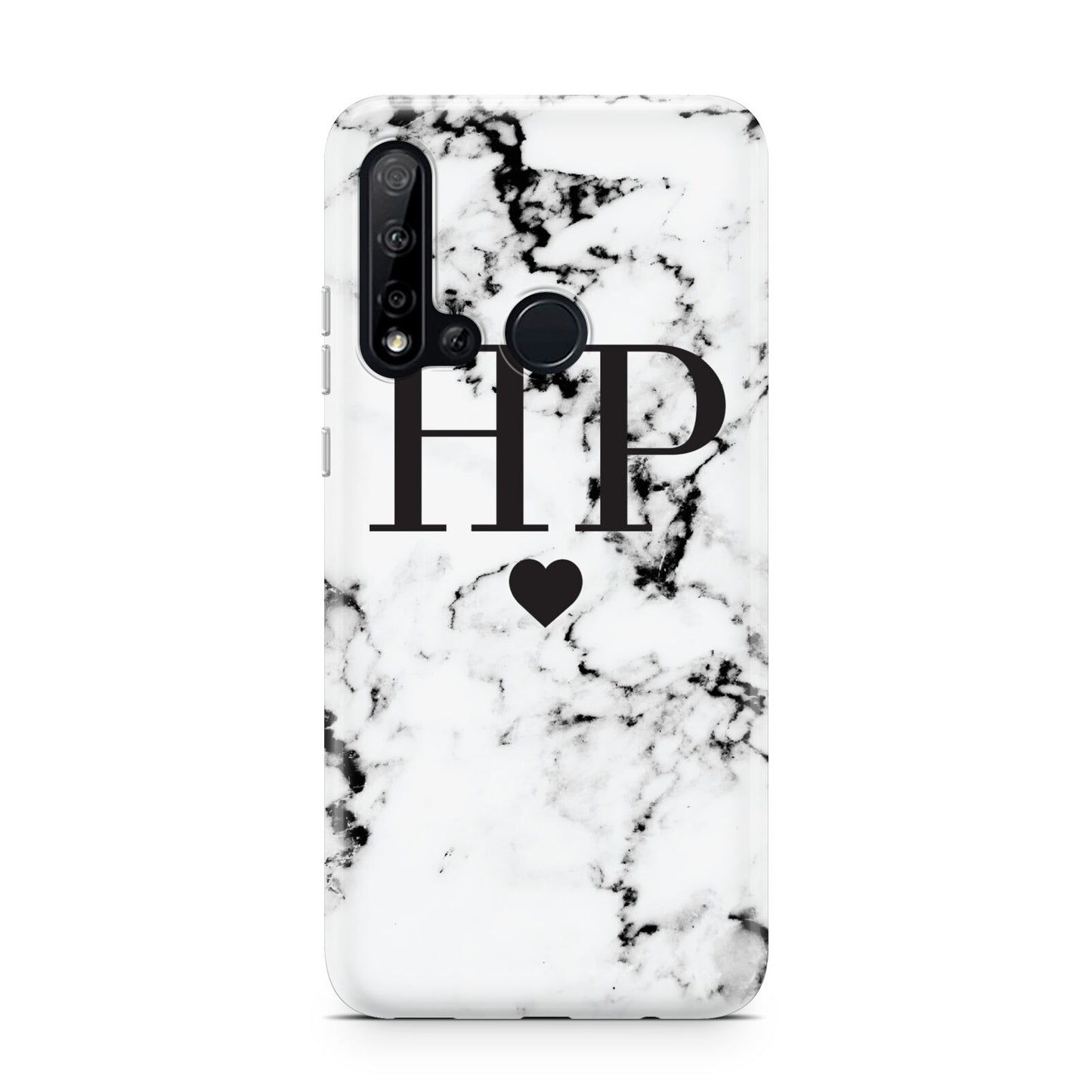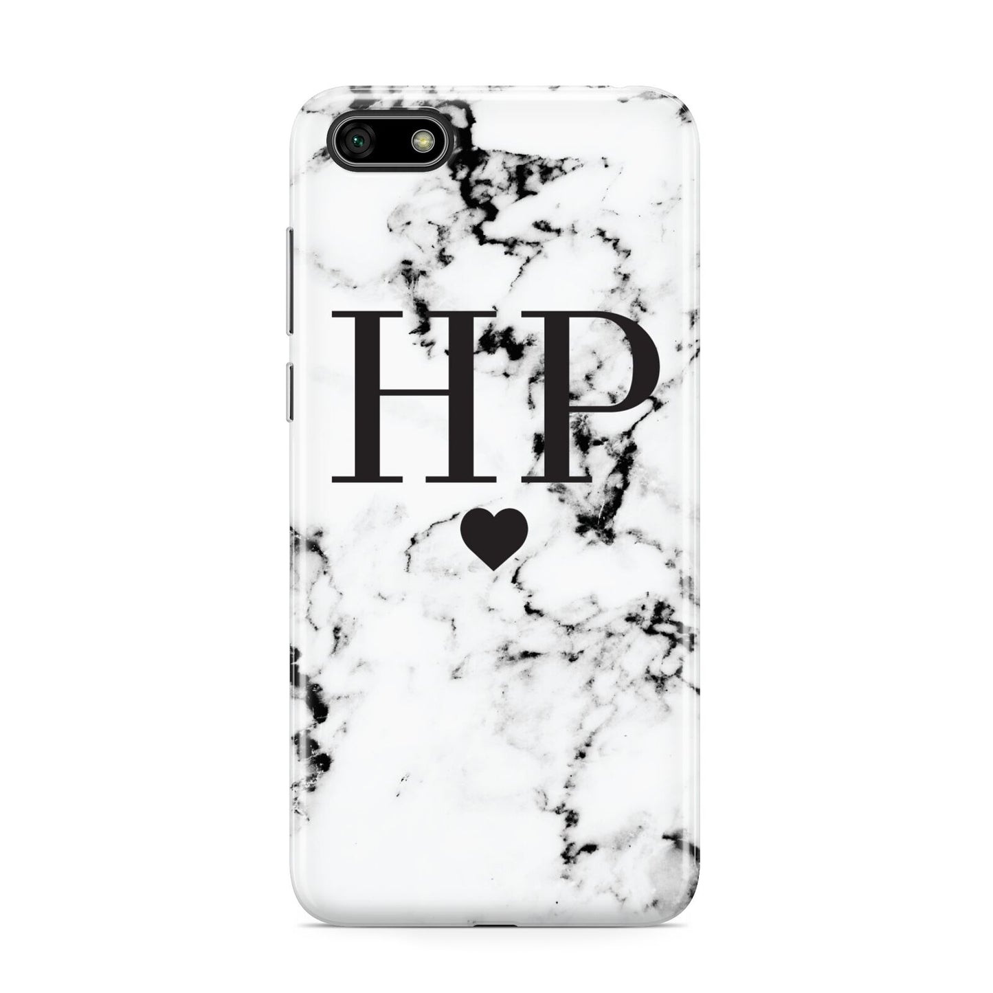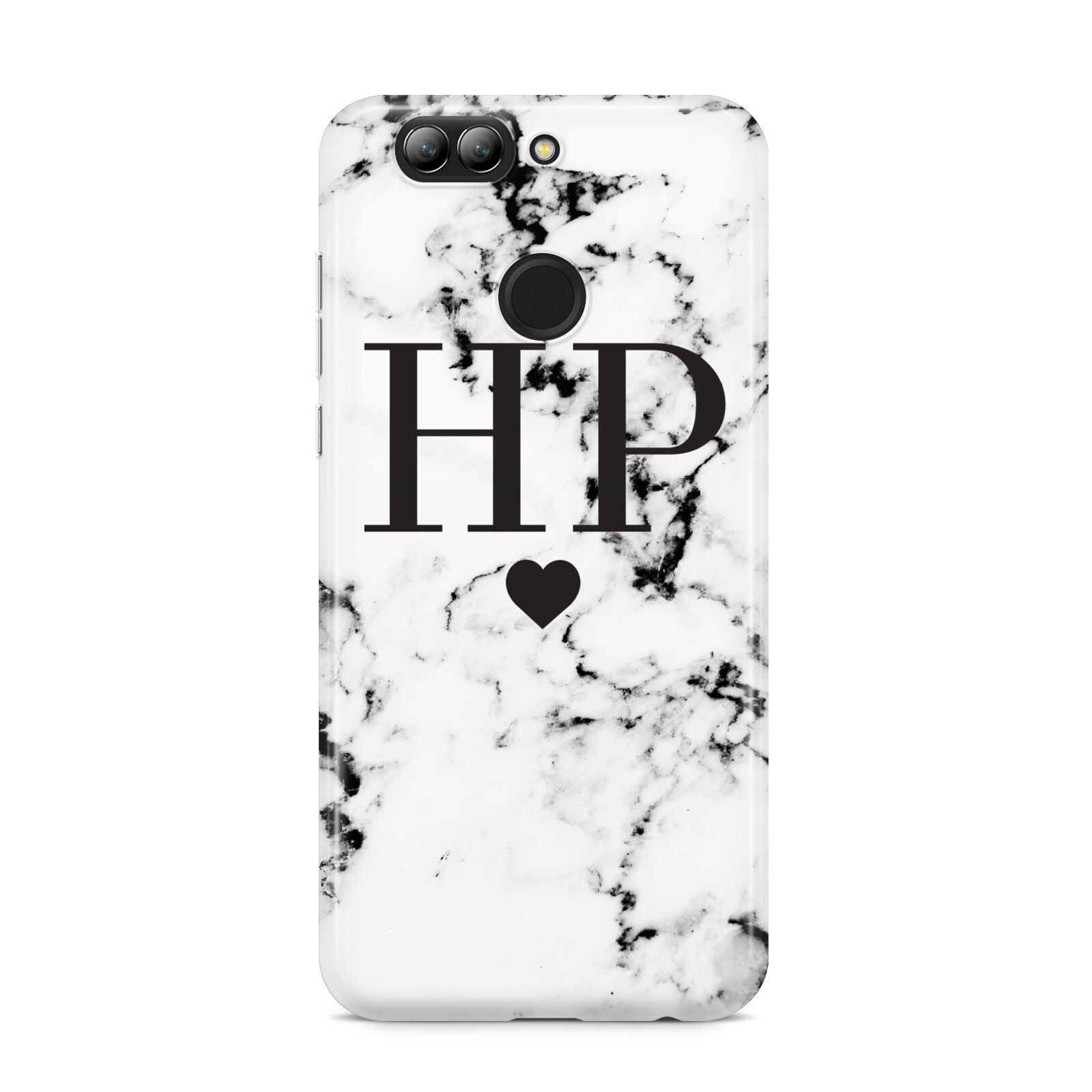 Our Heart Decal Marble Initials Personalised Huawei Case is a white and black veined marble design, with two large black initials and love heart. The large initials sit above the love heart, and are positioned above the middle of the design. Add your own initials to make a custom personalised phone case.