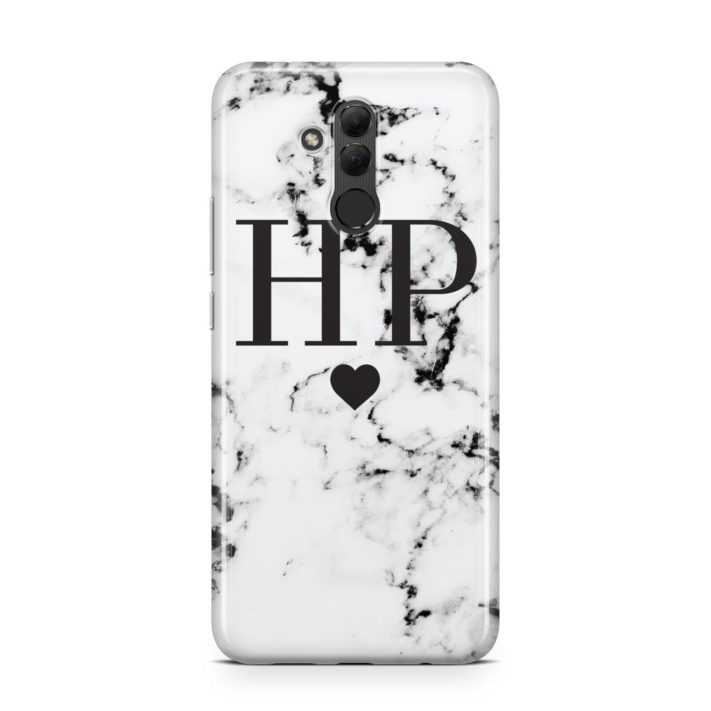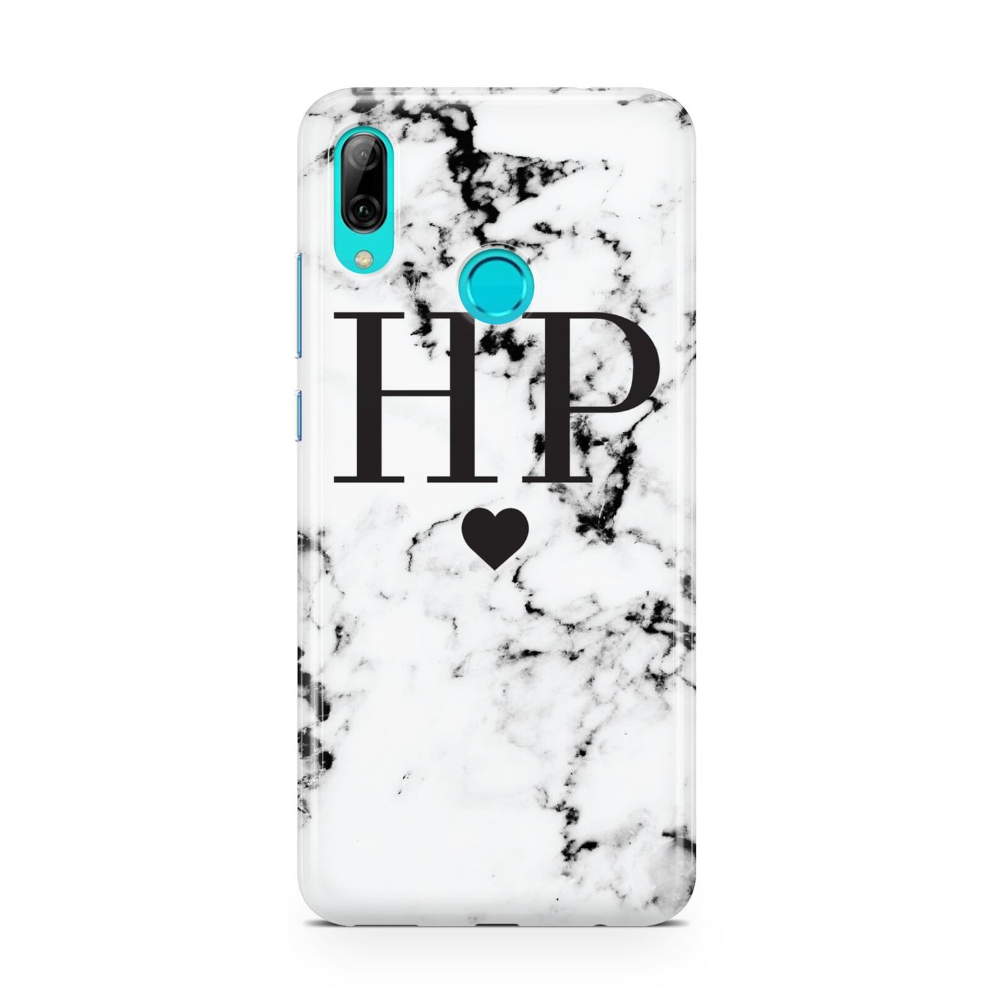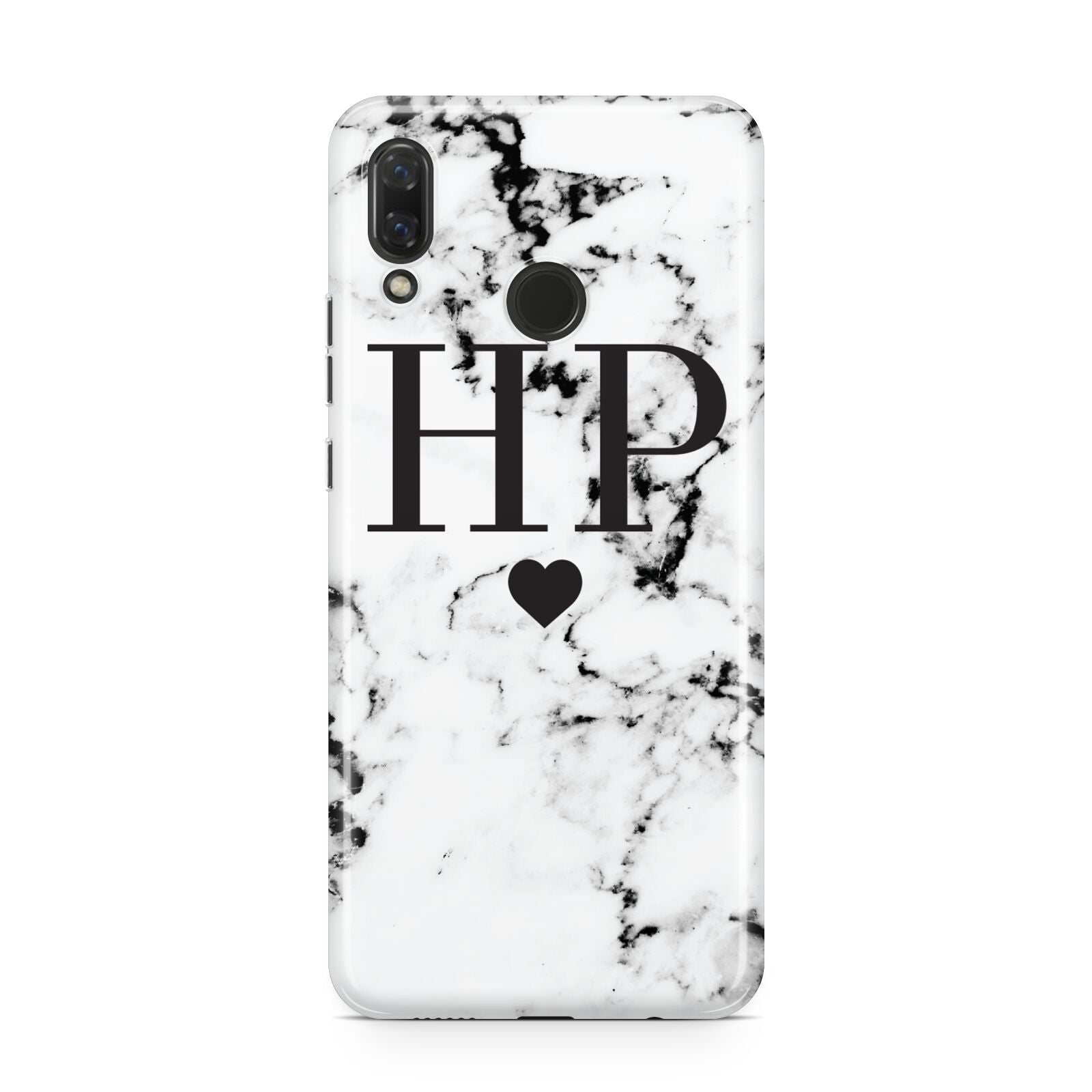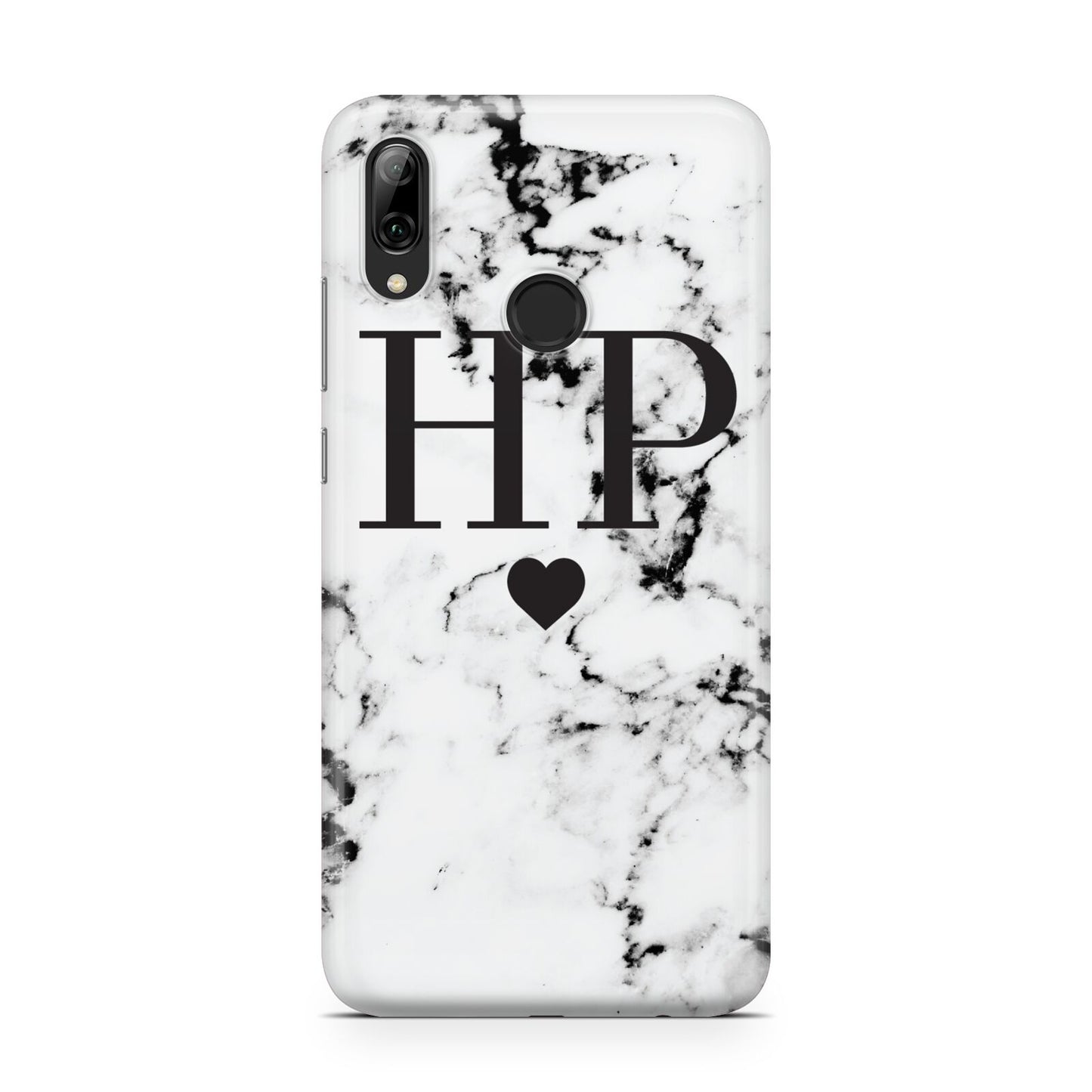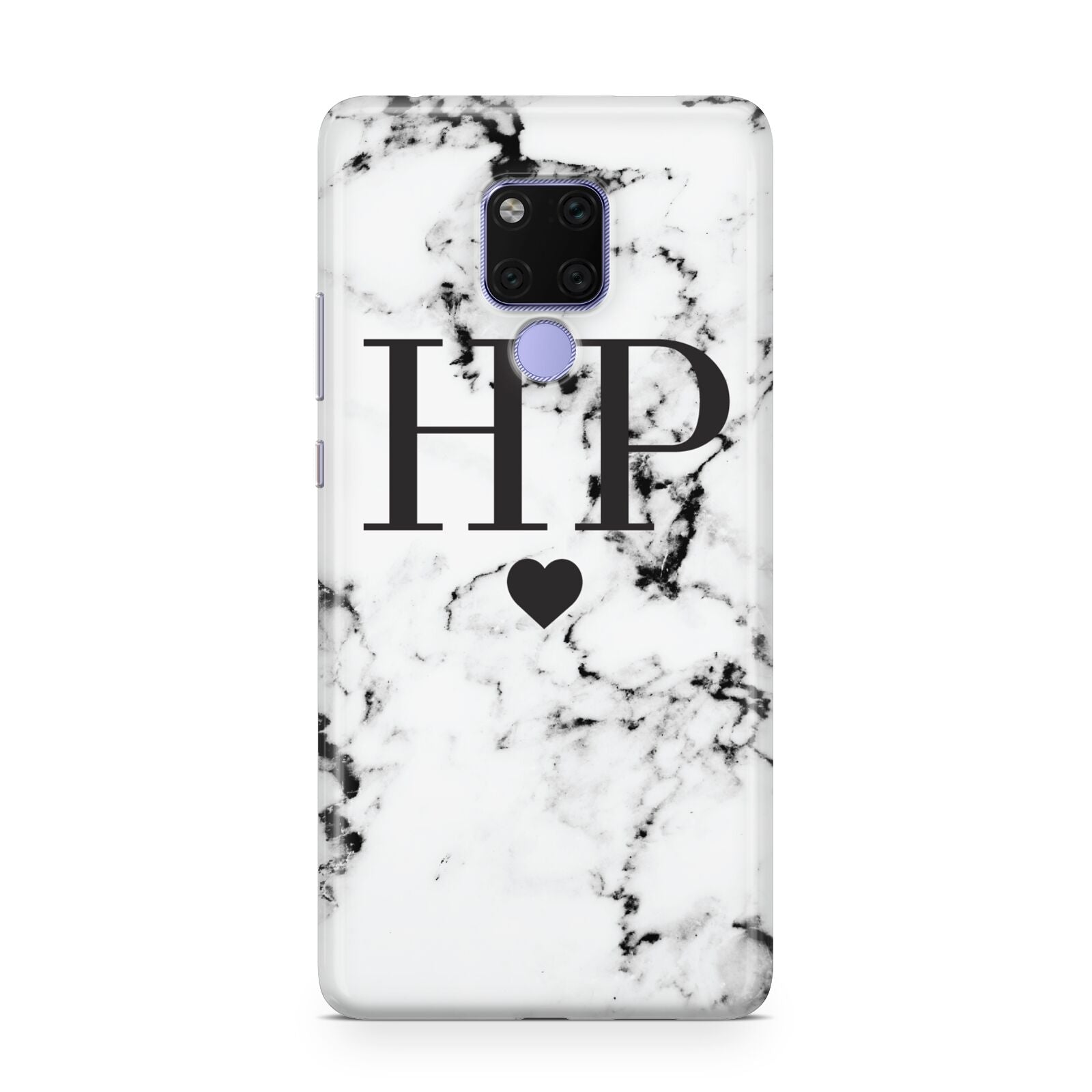 Our Heart Decal Marble Initials Personalised Huawei Case is a white and black veined marble design, with two large black initials and love heart. The large initials sit above the love heart, and are positioned above the middle of the design. Add your own initials to make a custom personalised phone case.