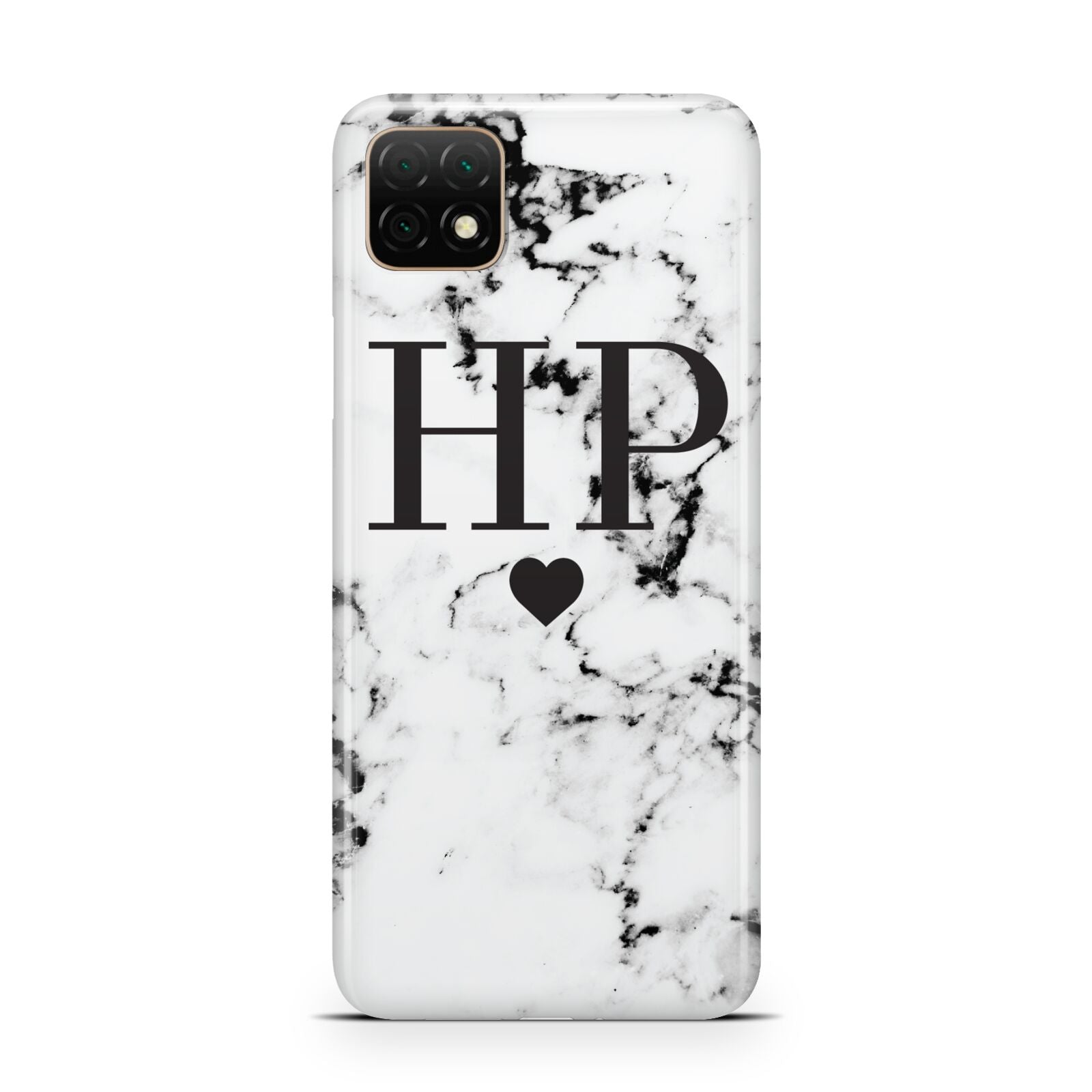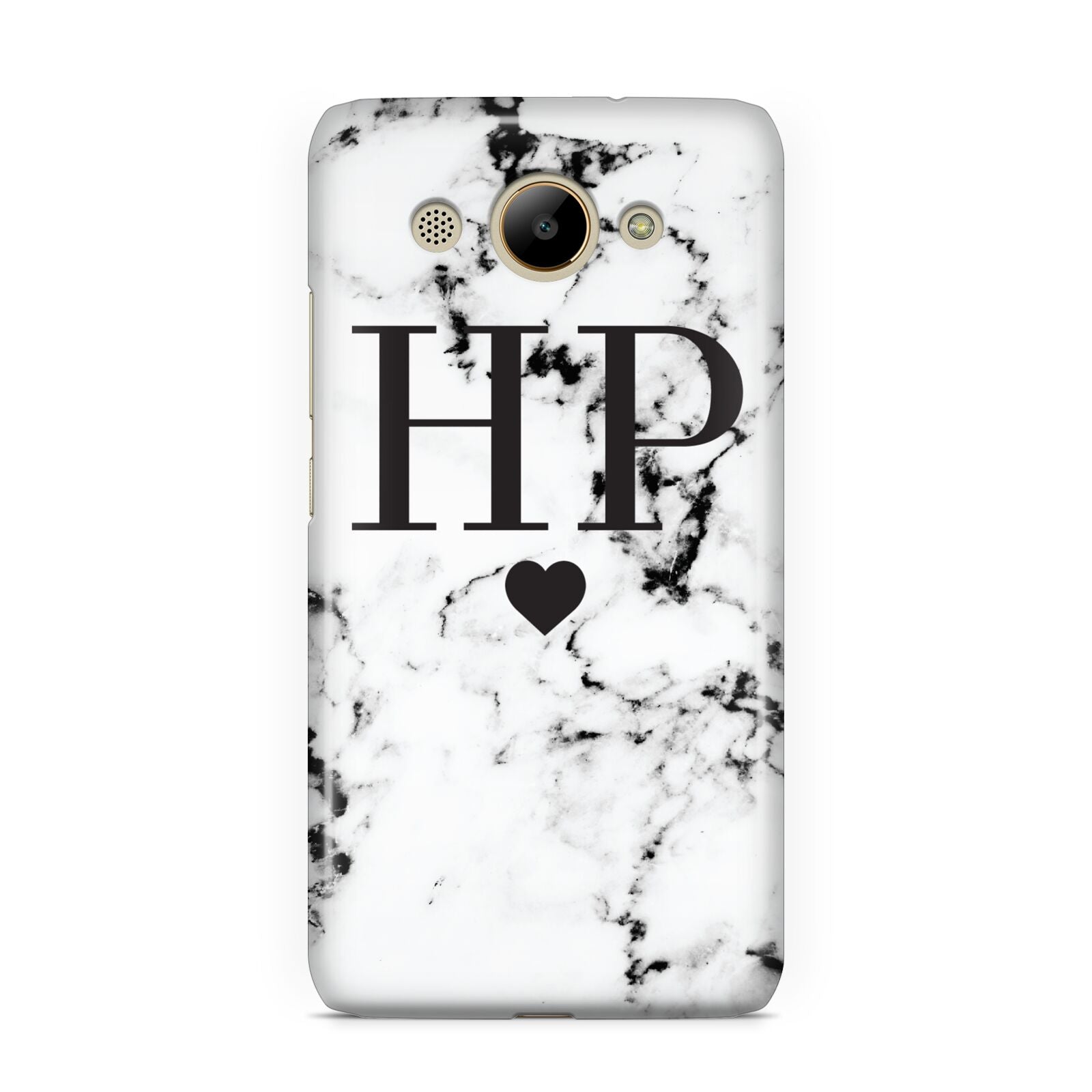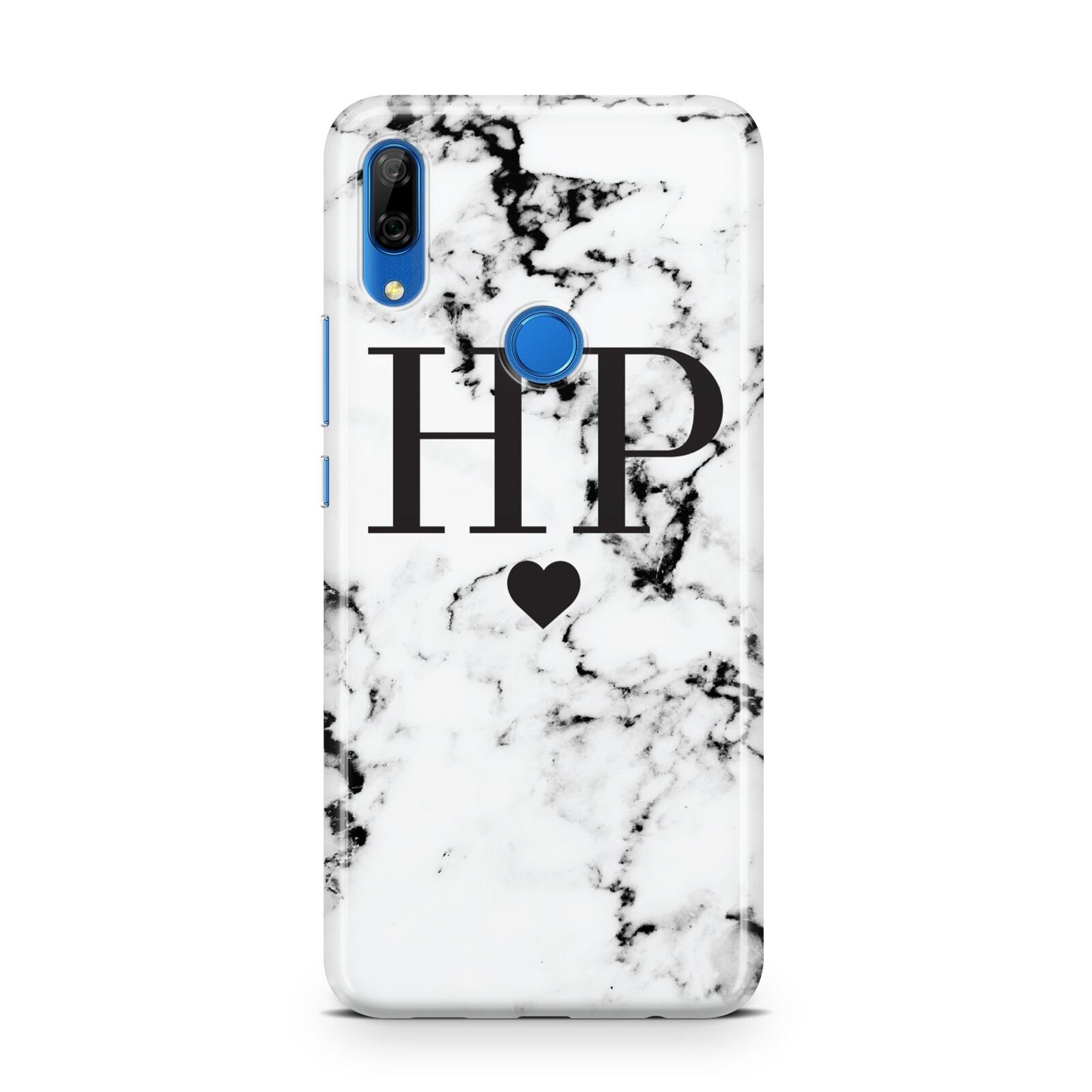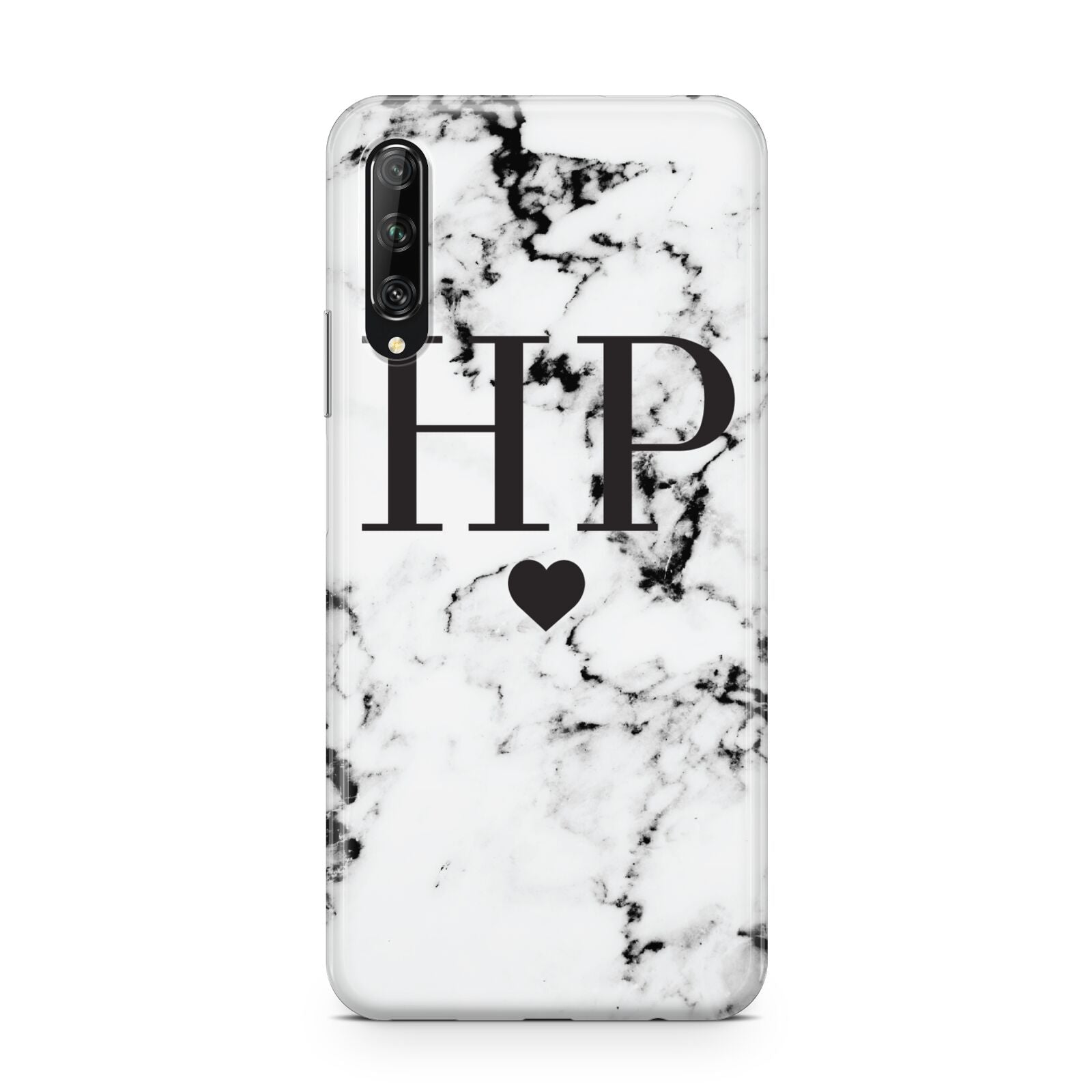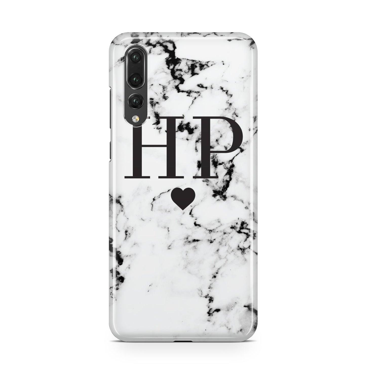 Our Heart Decal Marble Initials Personalised Huawei Case is a white and black veined marble design, with two large black initials and love heart. The large initials sit above the love heart, and are positioned above the middle of the design. Add your own initials to make a custom personalised phone case.