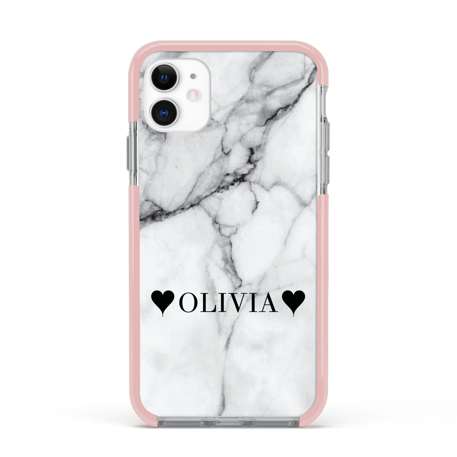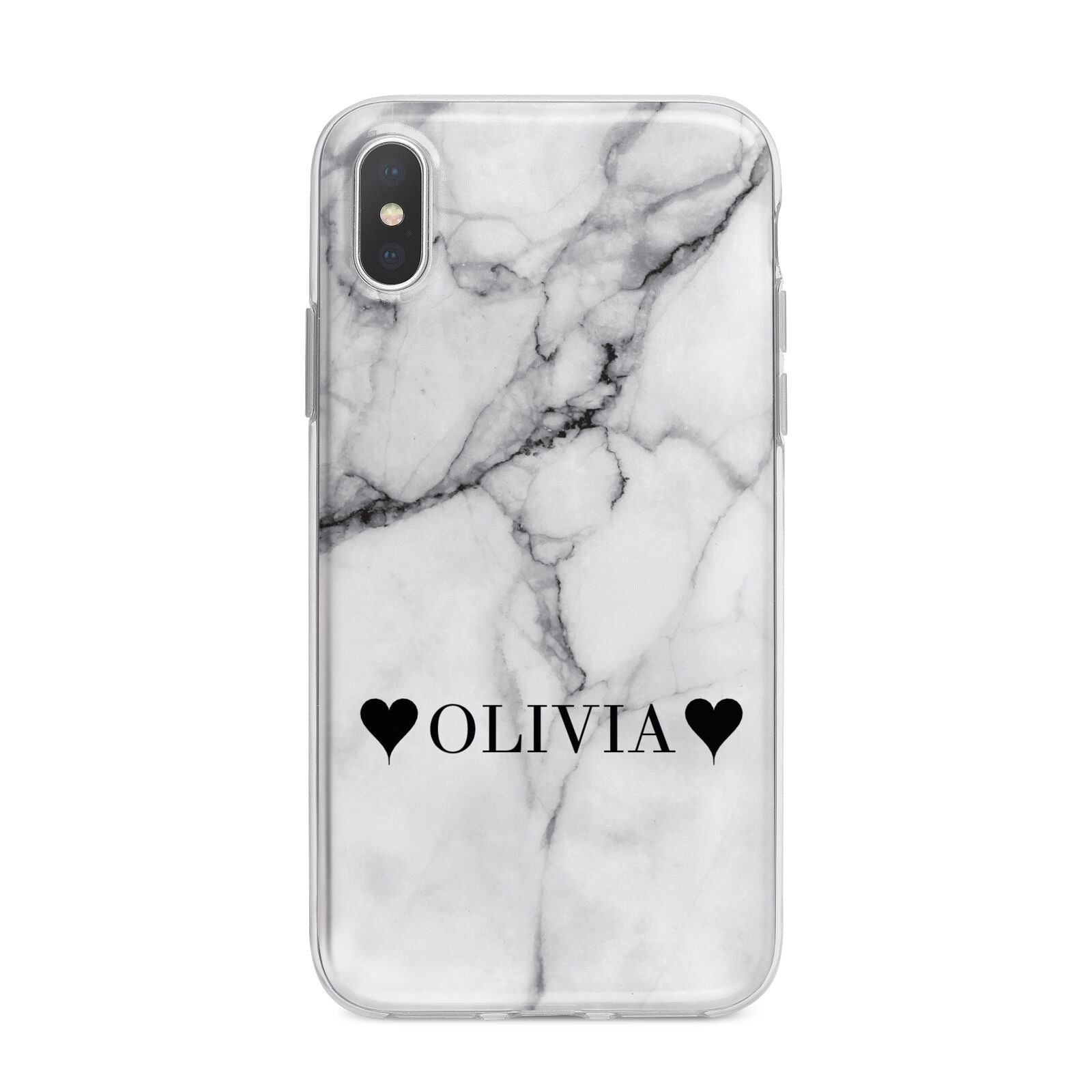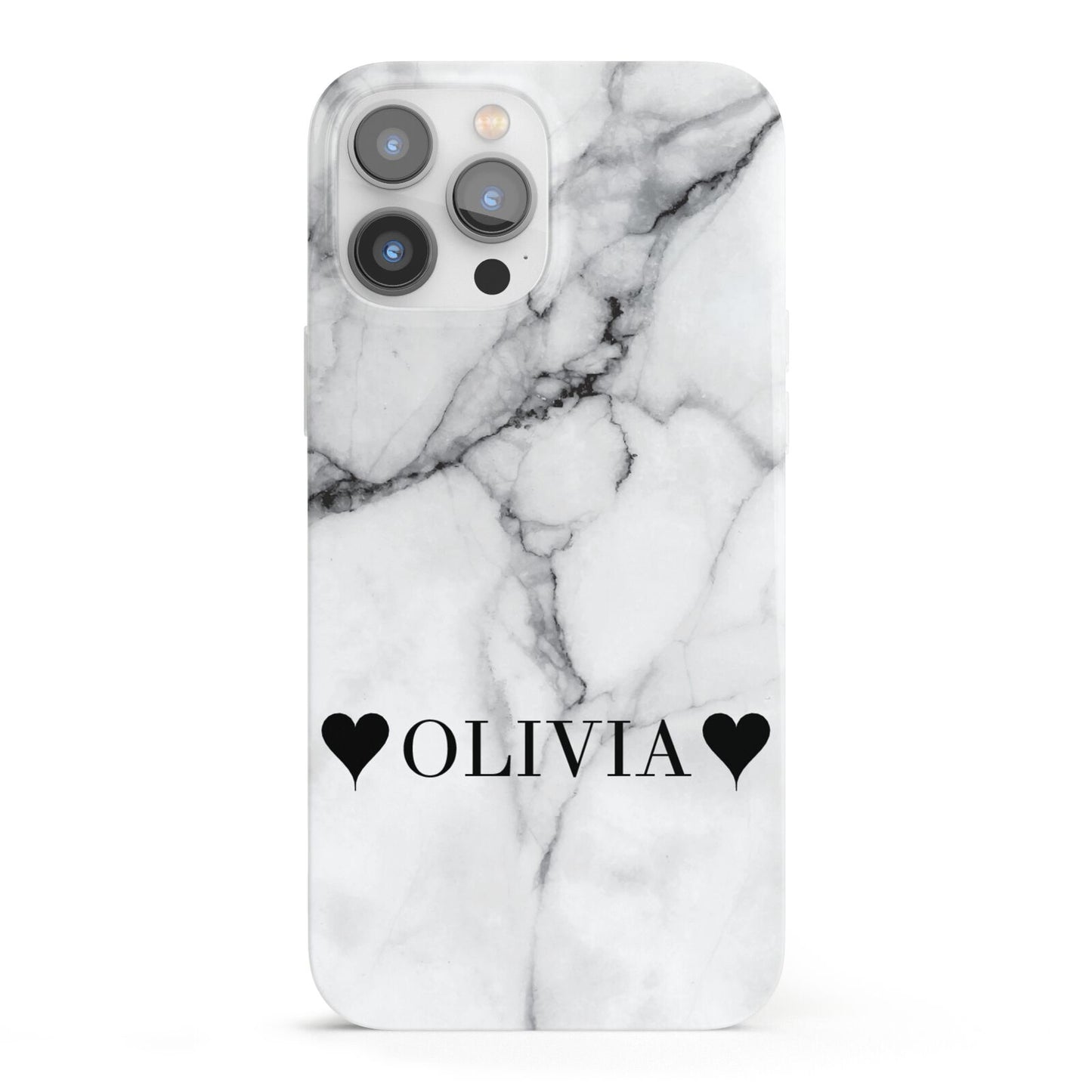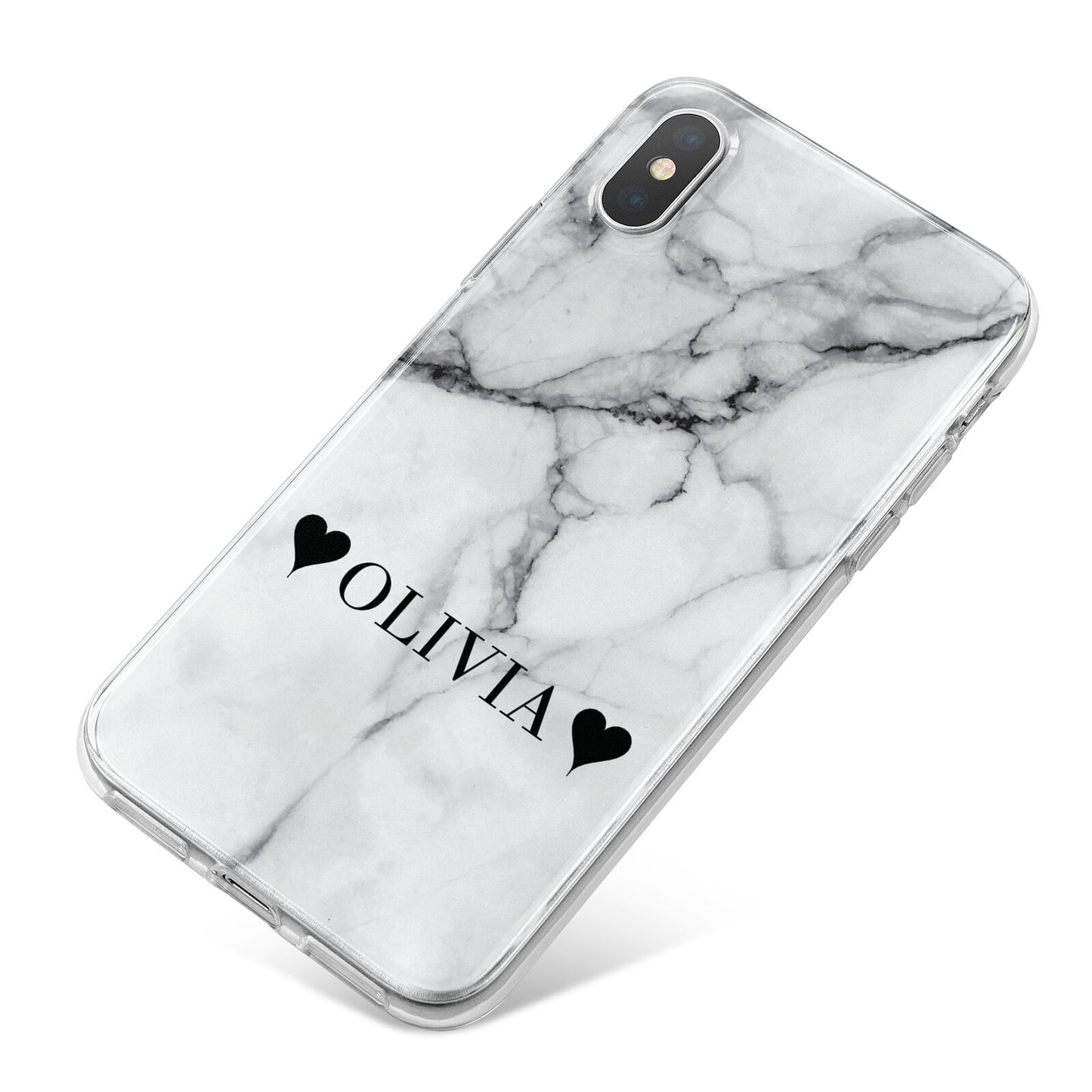 Personalised Love Hearts Marble Name Apple iPhone Case