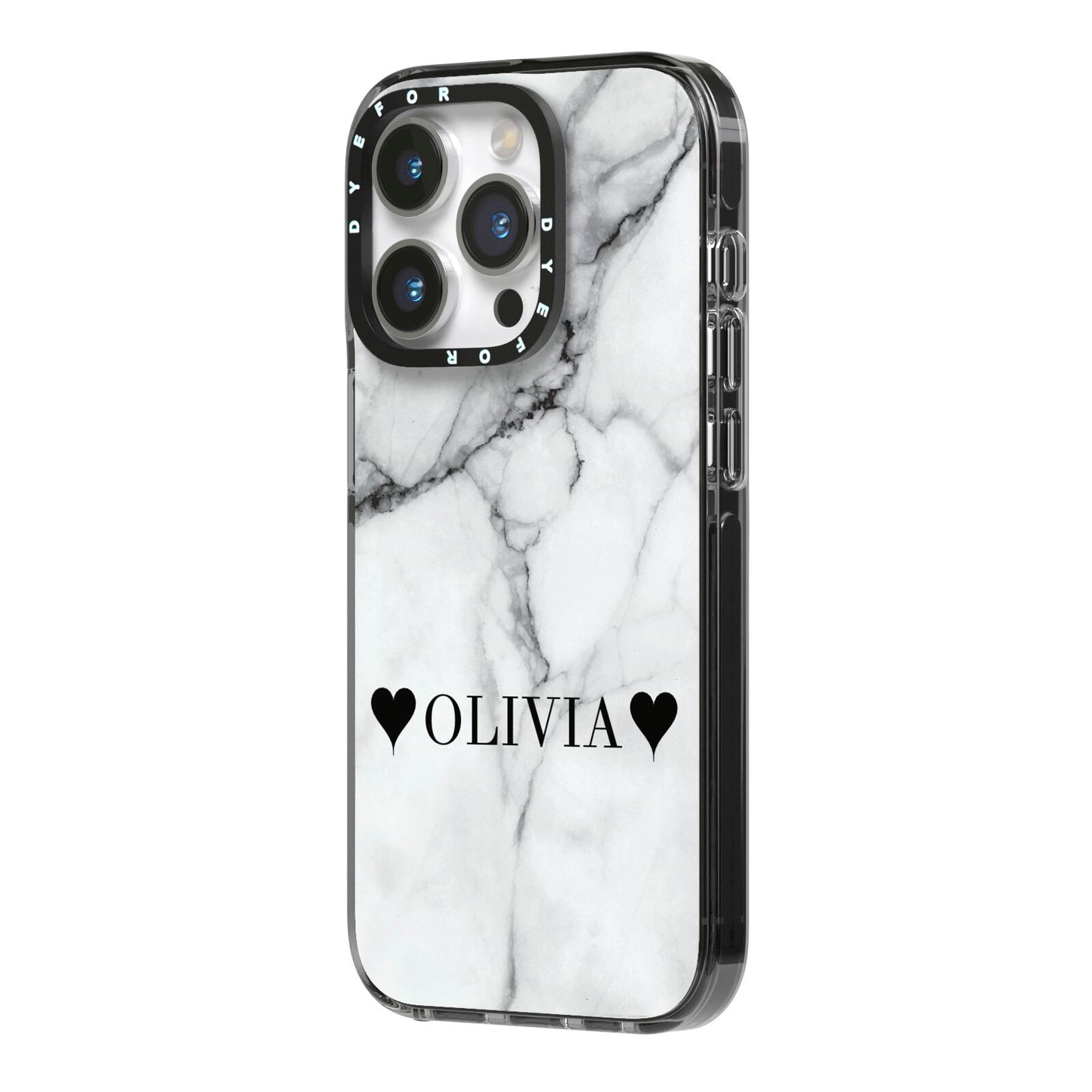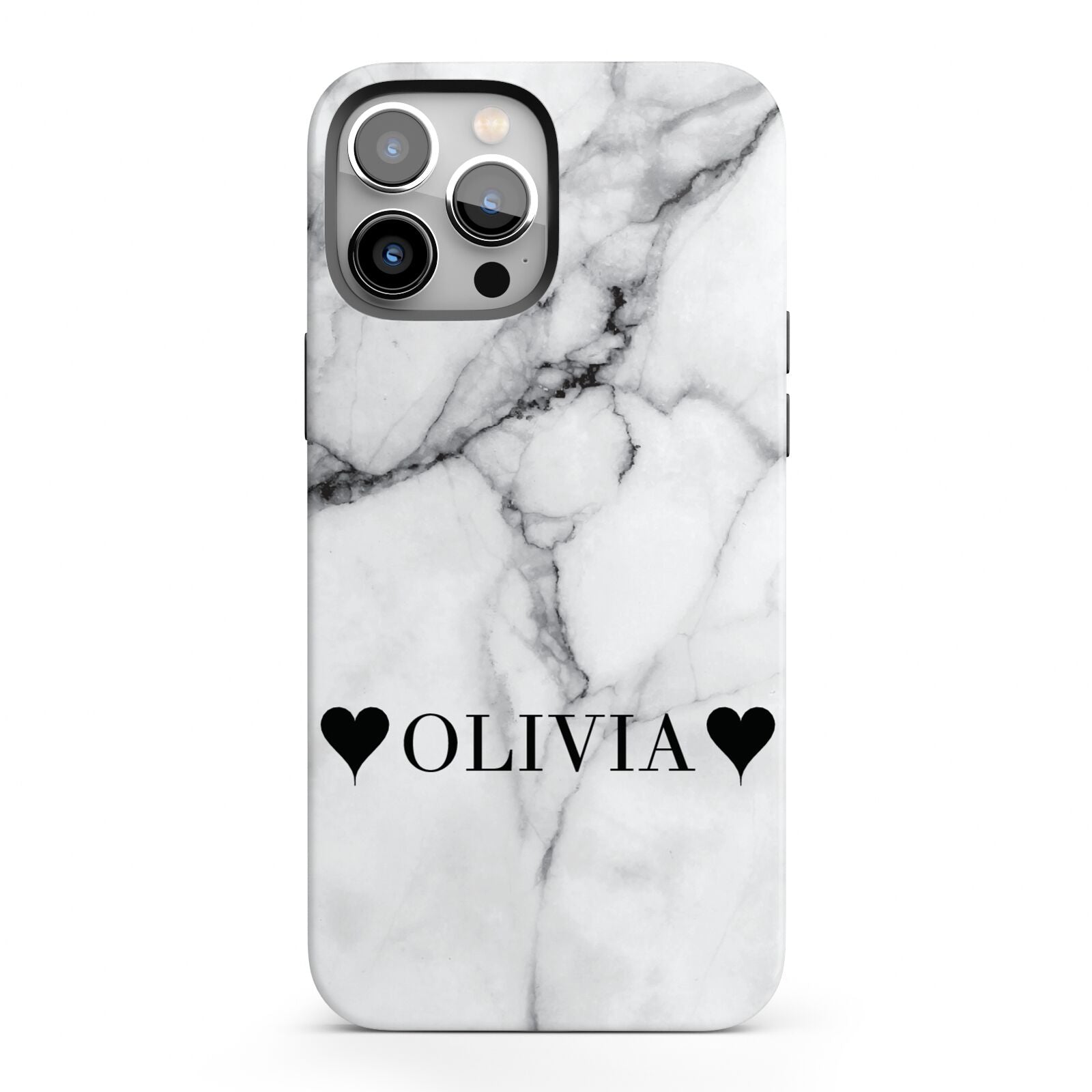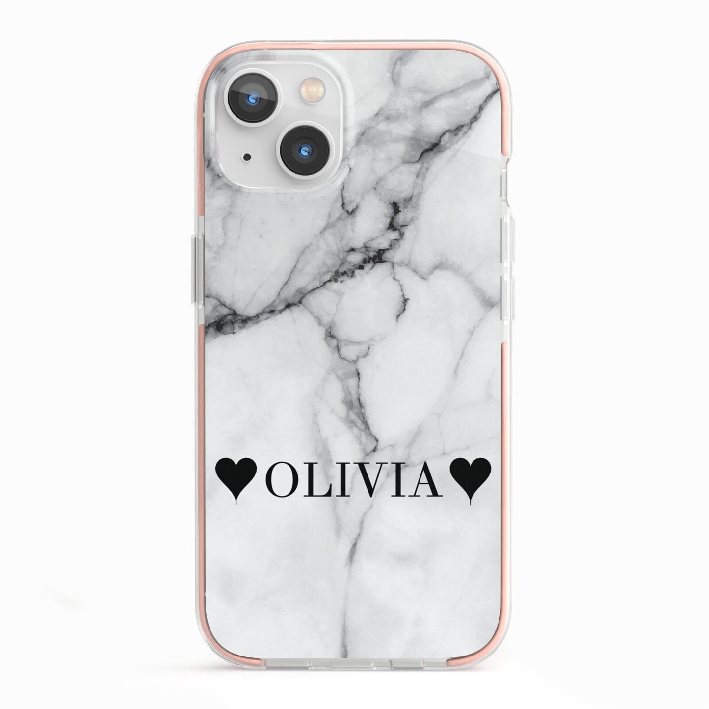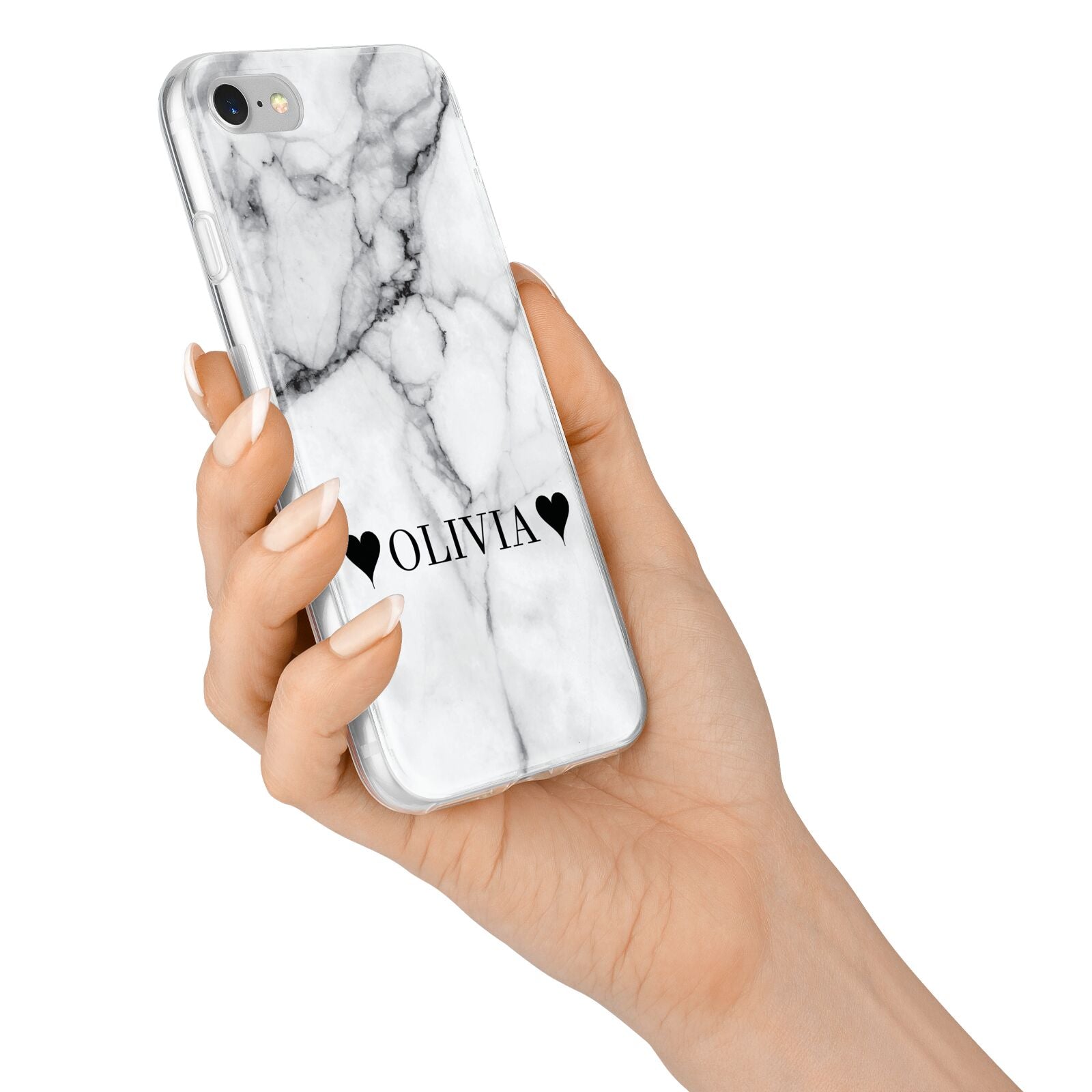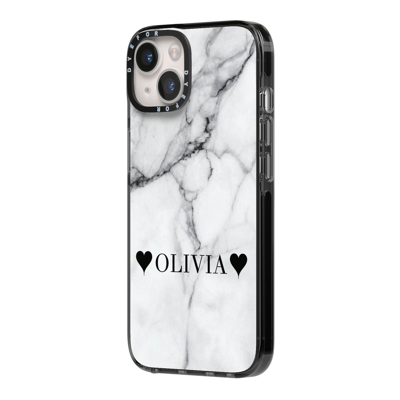 Personalised Love Hearts Marble Name Apple iPhone Case