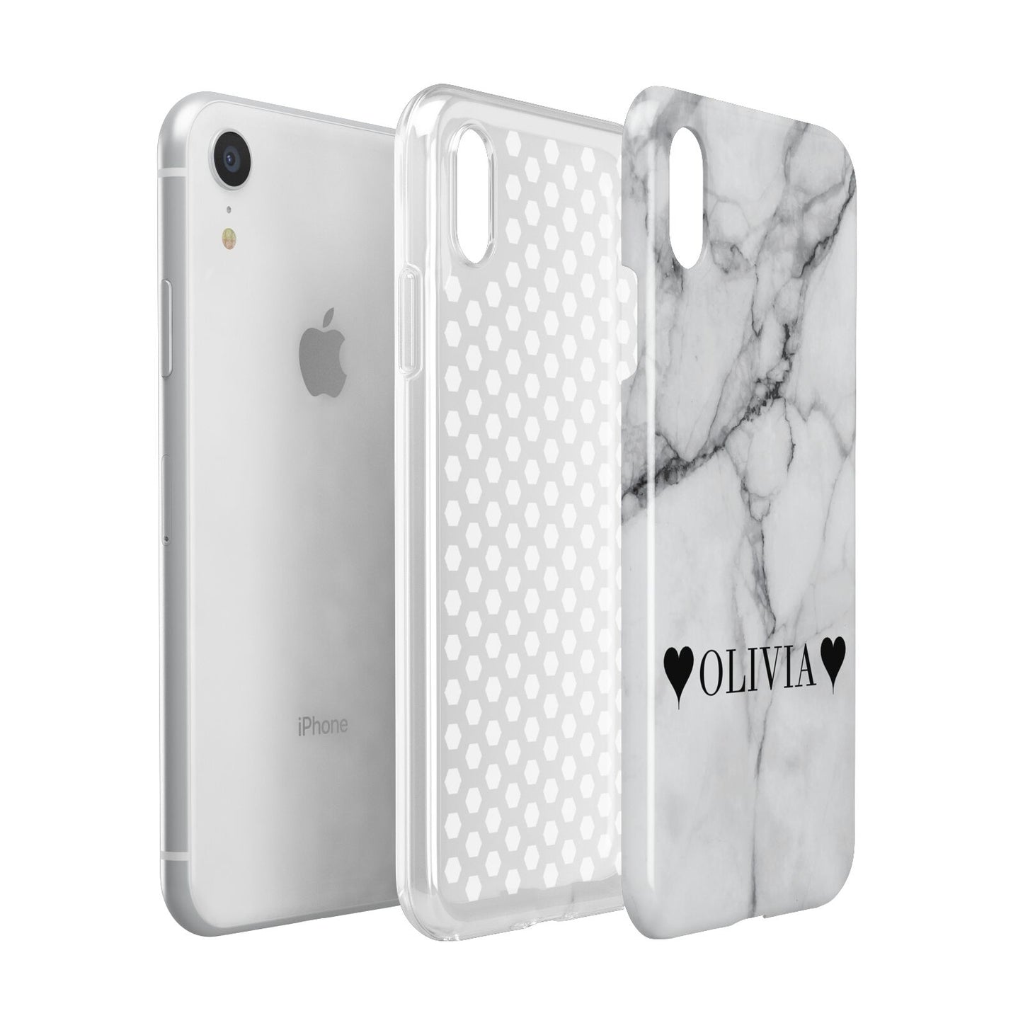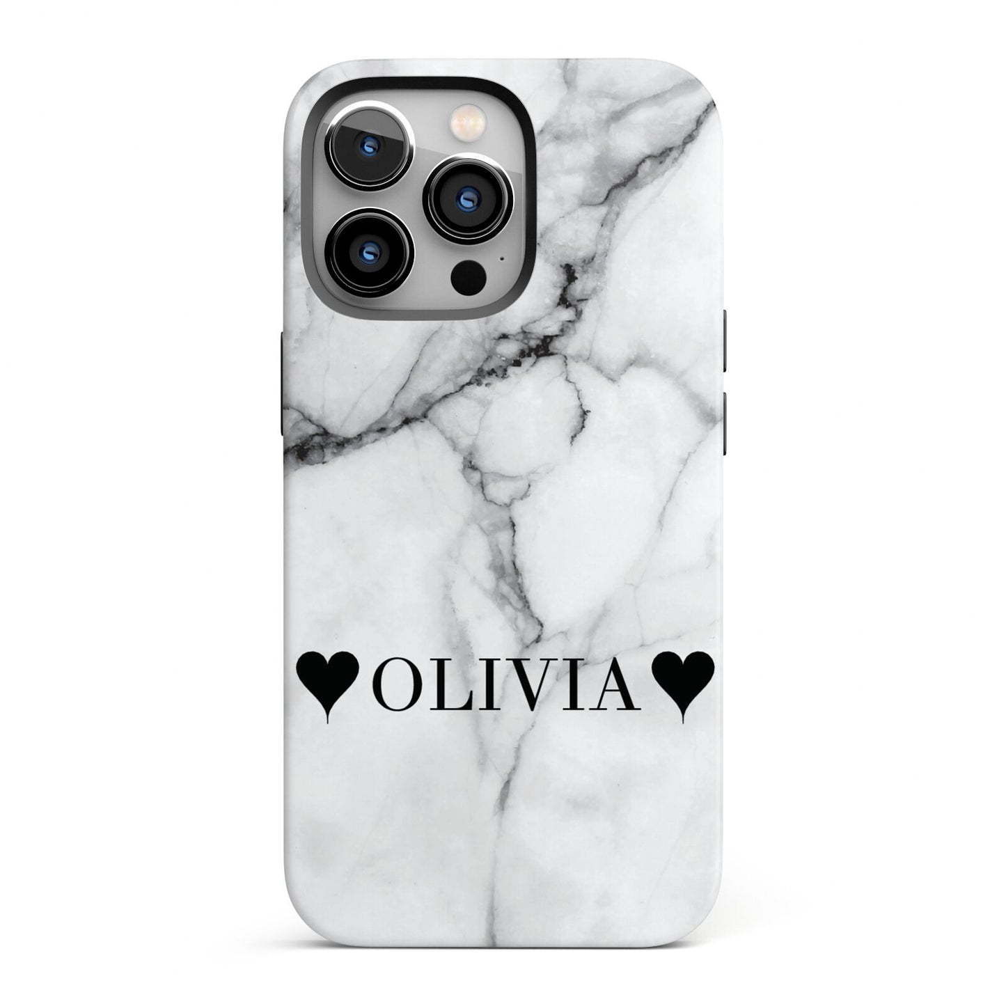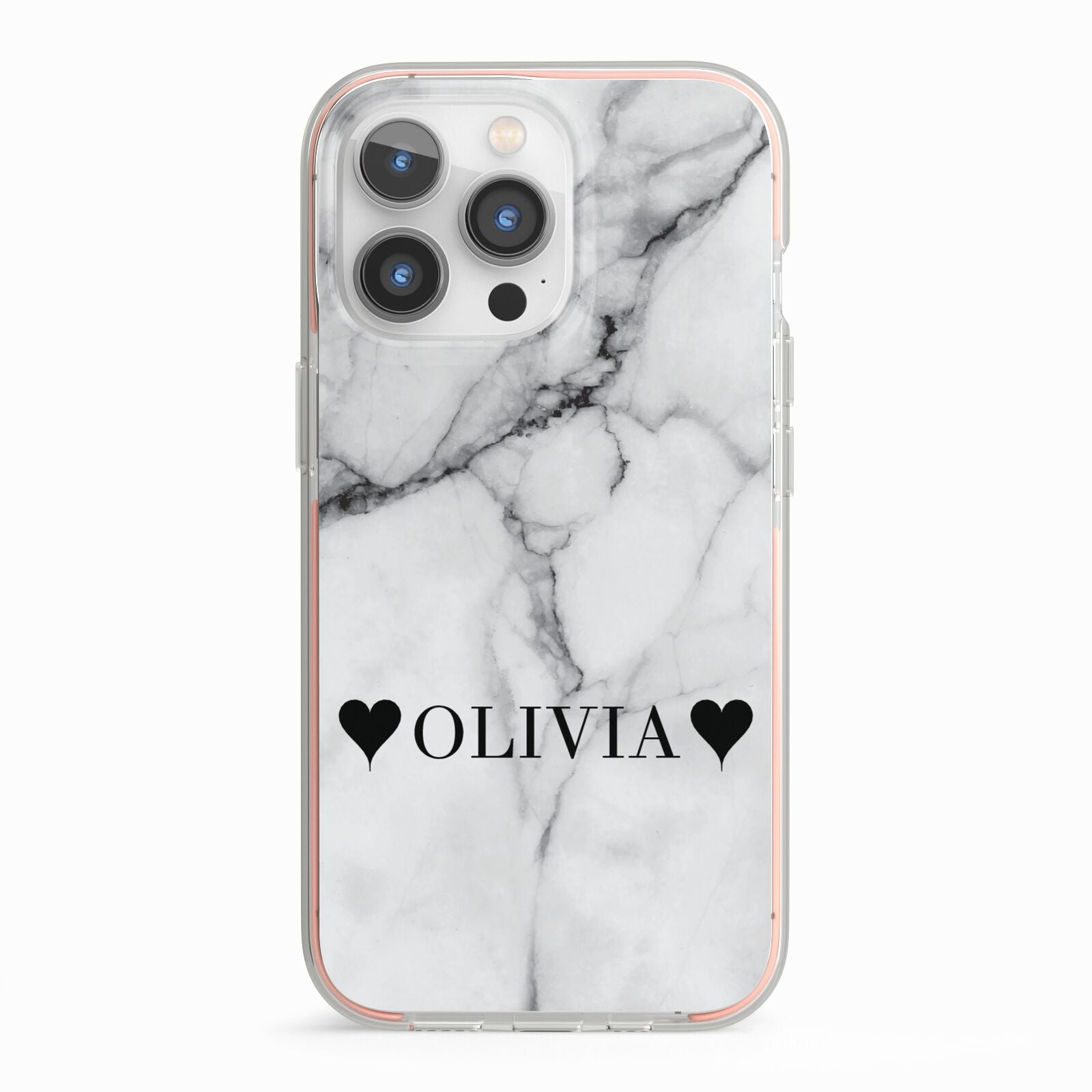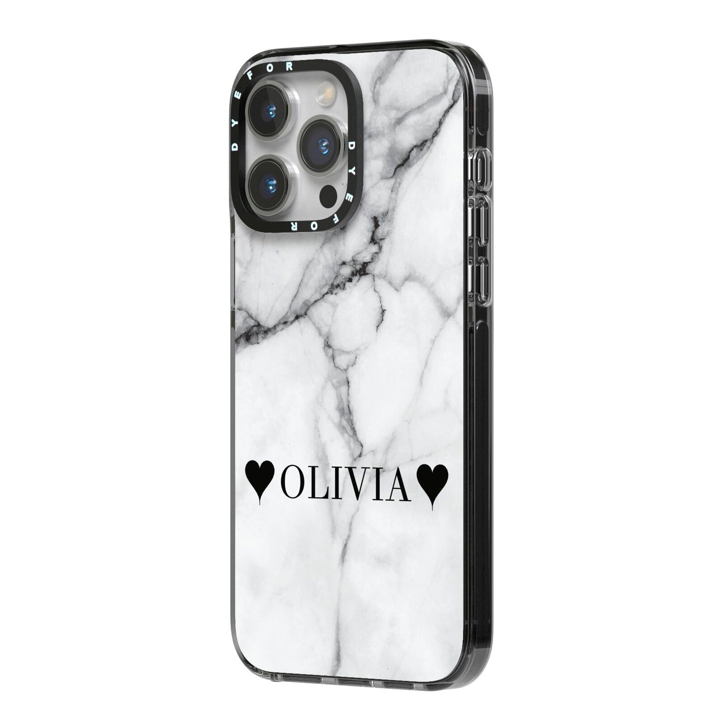 Personalised Love Hearts Marble Name Apple iPhone Case