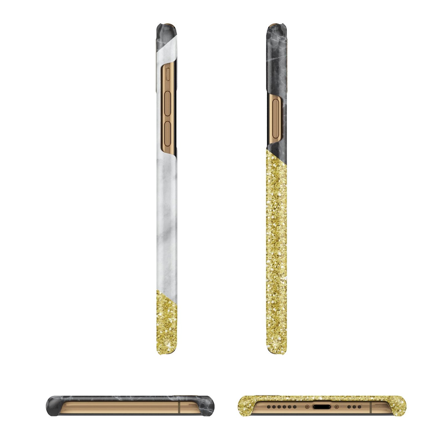 Look super cute with our Marble Black Gold Glitter iPhone Case. Wear it on your phone and get ready to turn heads. Not only can you show off your status with personalised initials on this phone case, but it's also bang on trend. Not only will this keep your case game in check, it will protect against knocks and bumps too. You go girl! This guy is available for all iPhone phones.