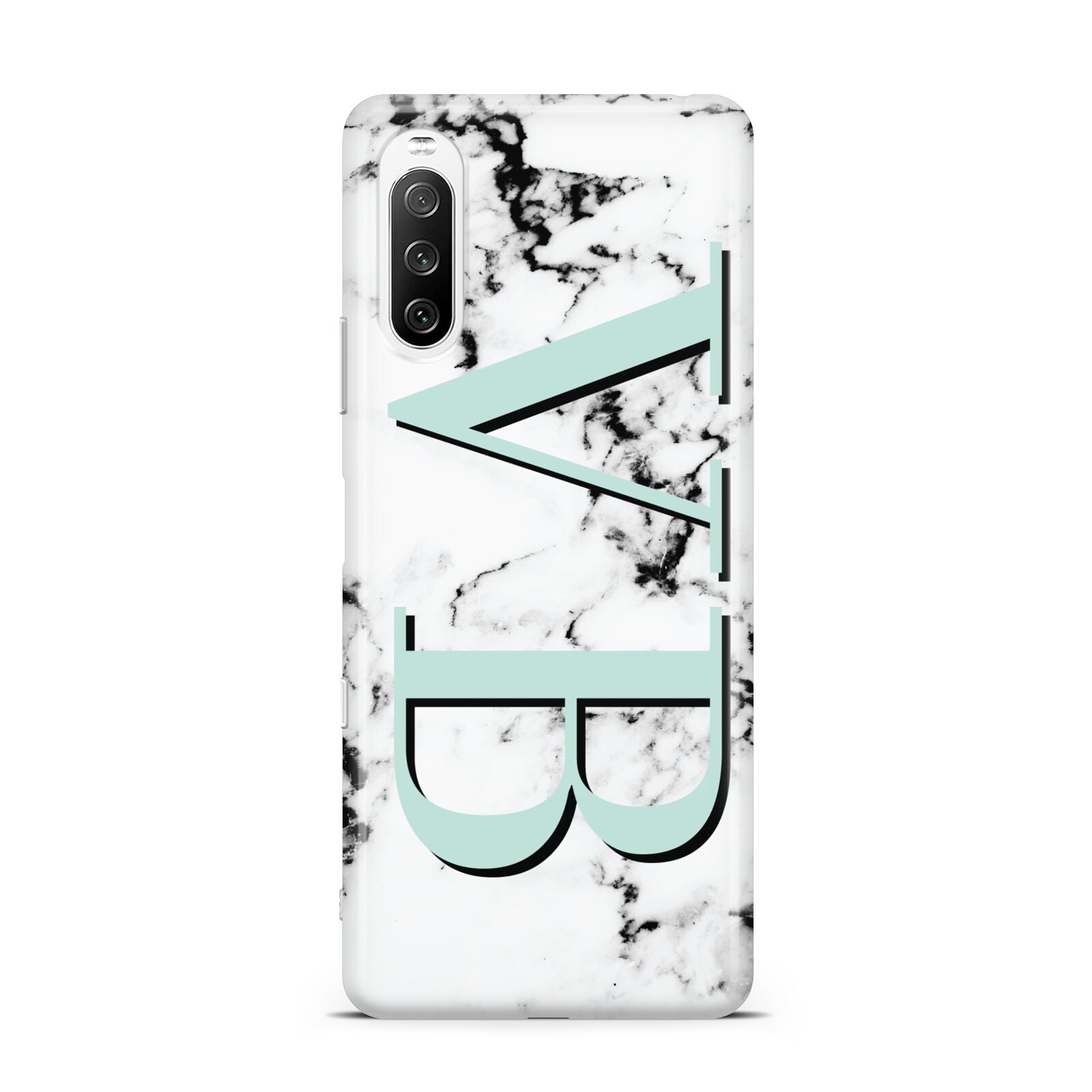 Personalised Mint Big Initials Marble Sony Xperia Case