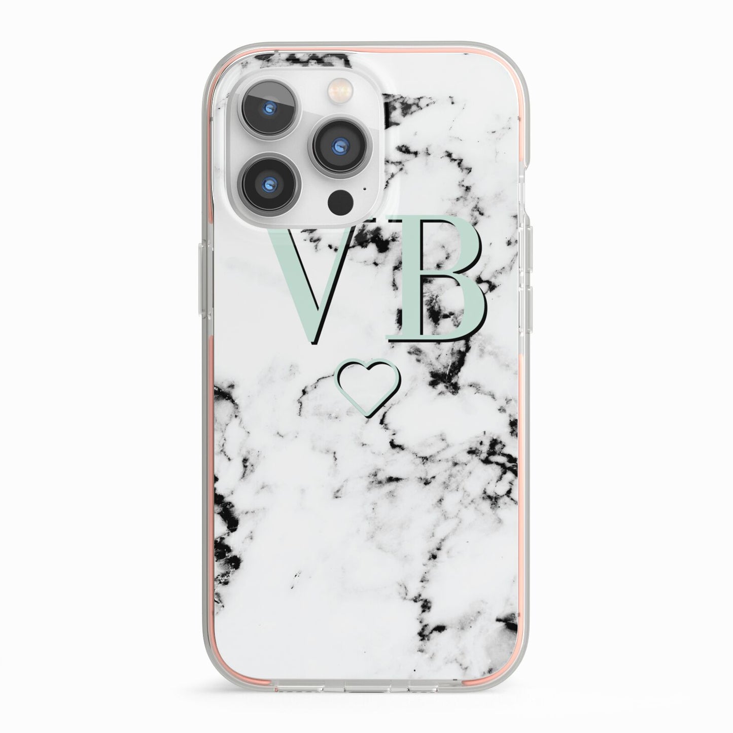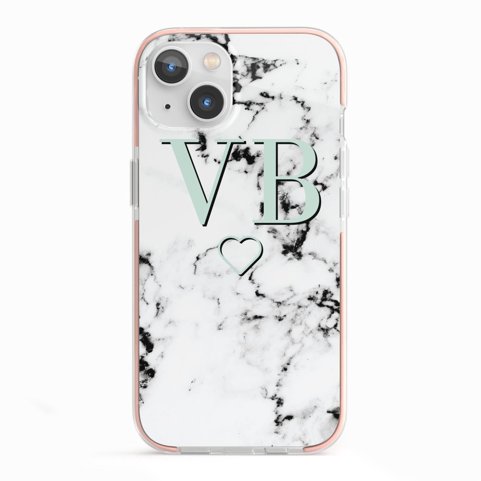 Personalised Mint Monogrammed Heart Marble Apple iPhone Case