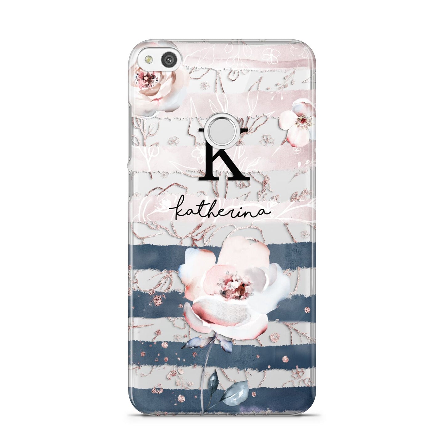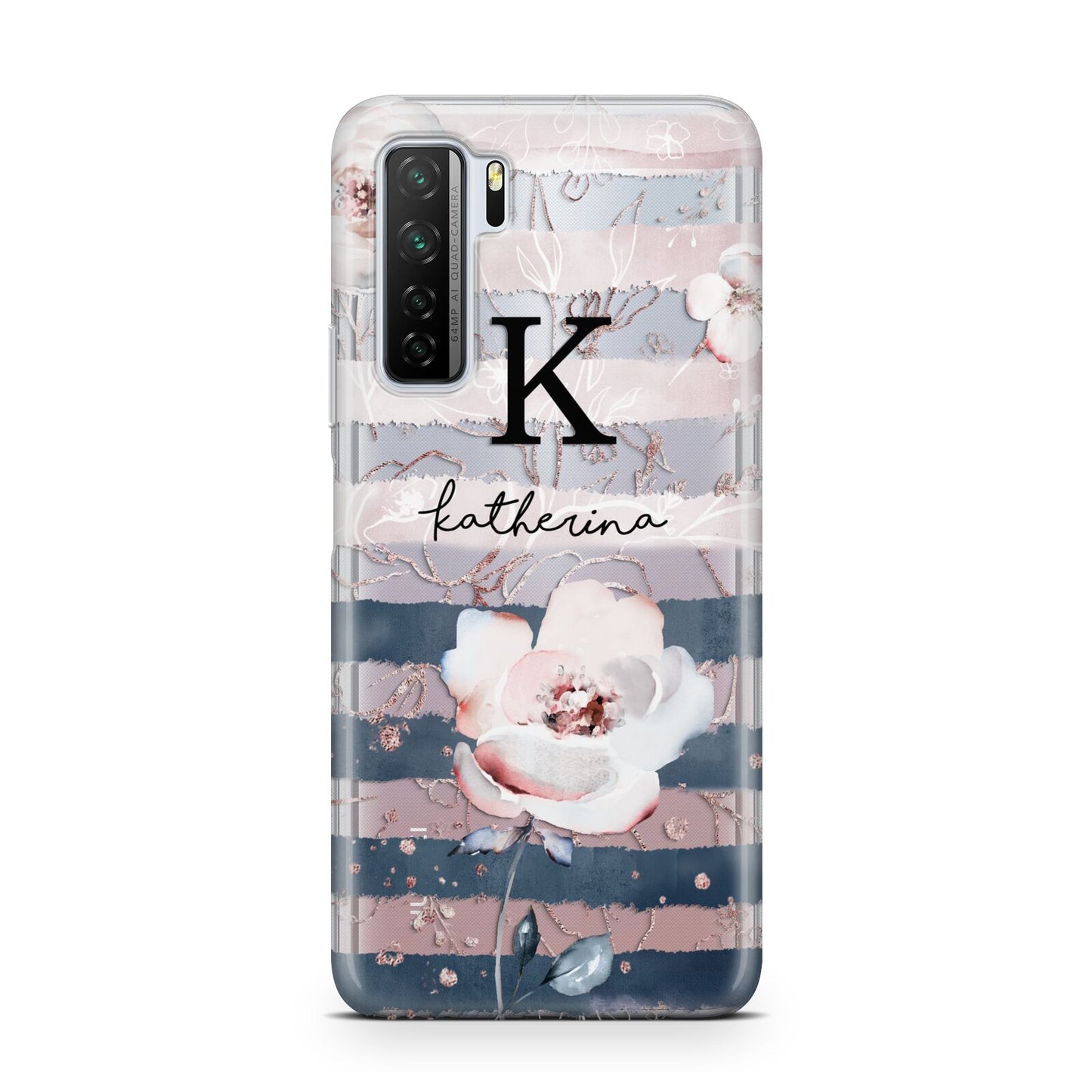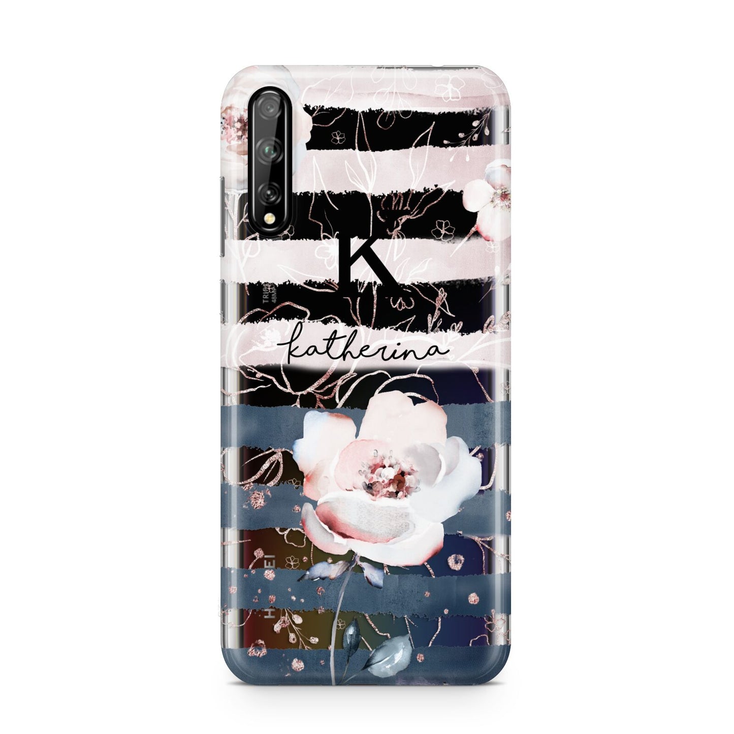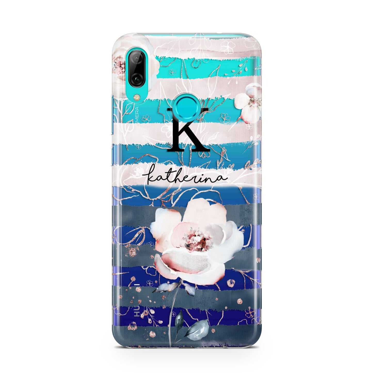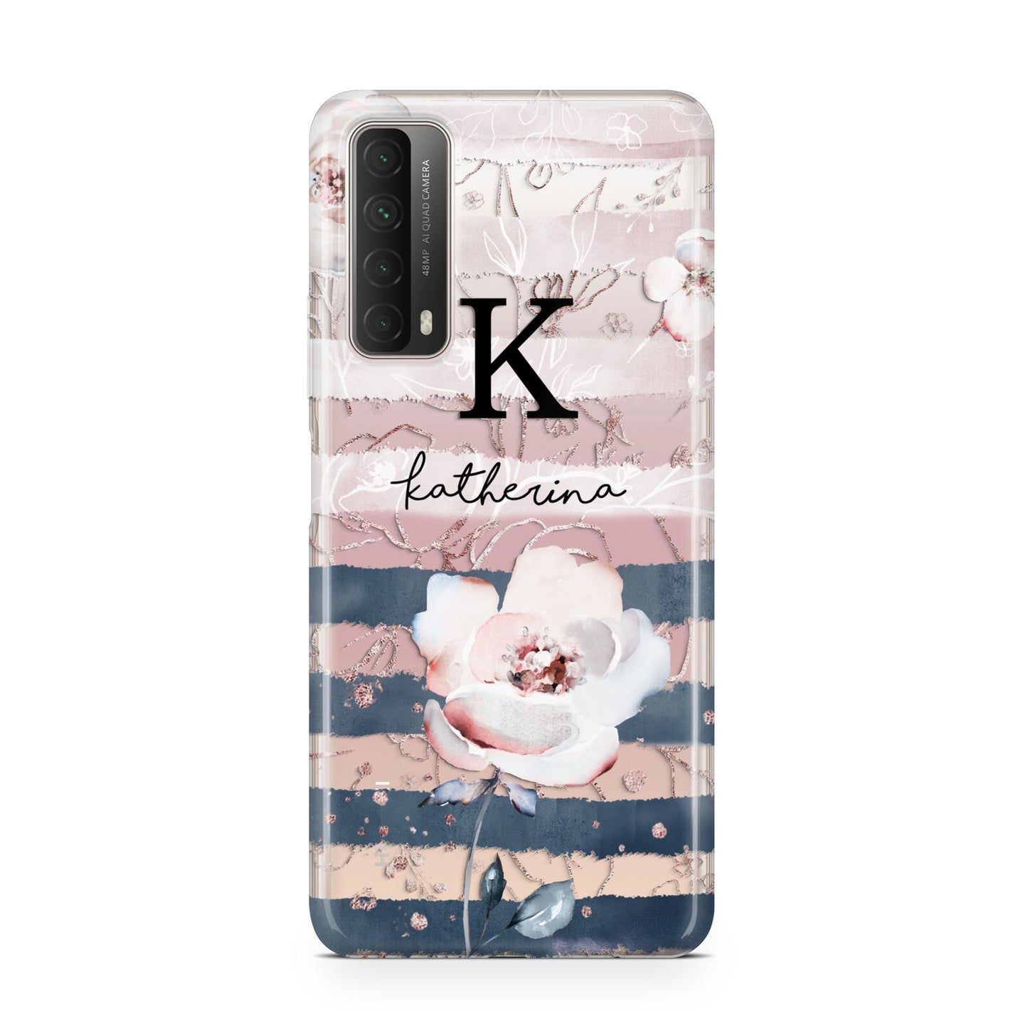 Monogram Pink Blue Striped Watercolour Huawei Case