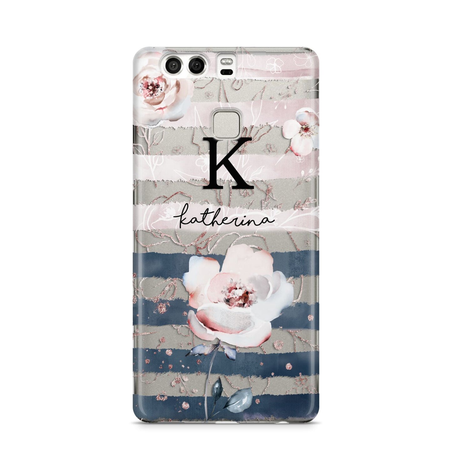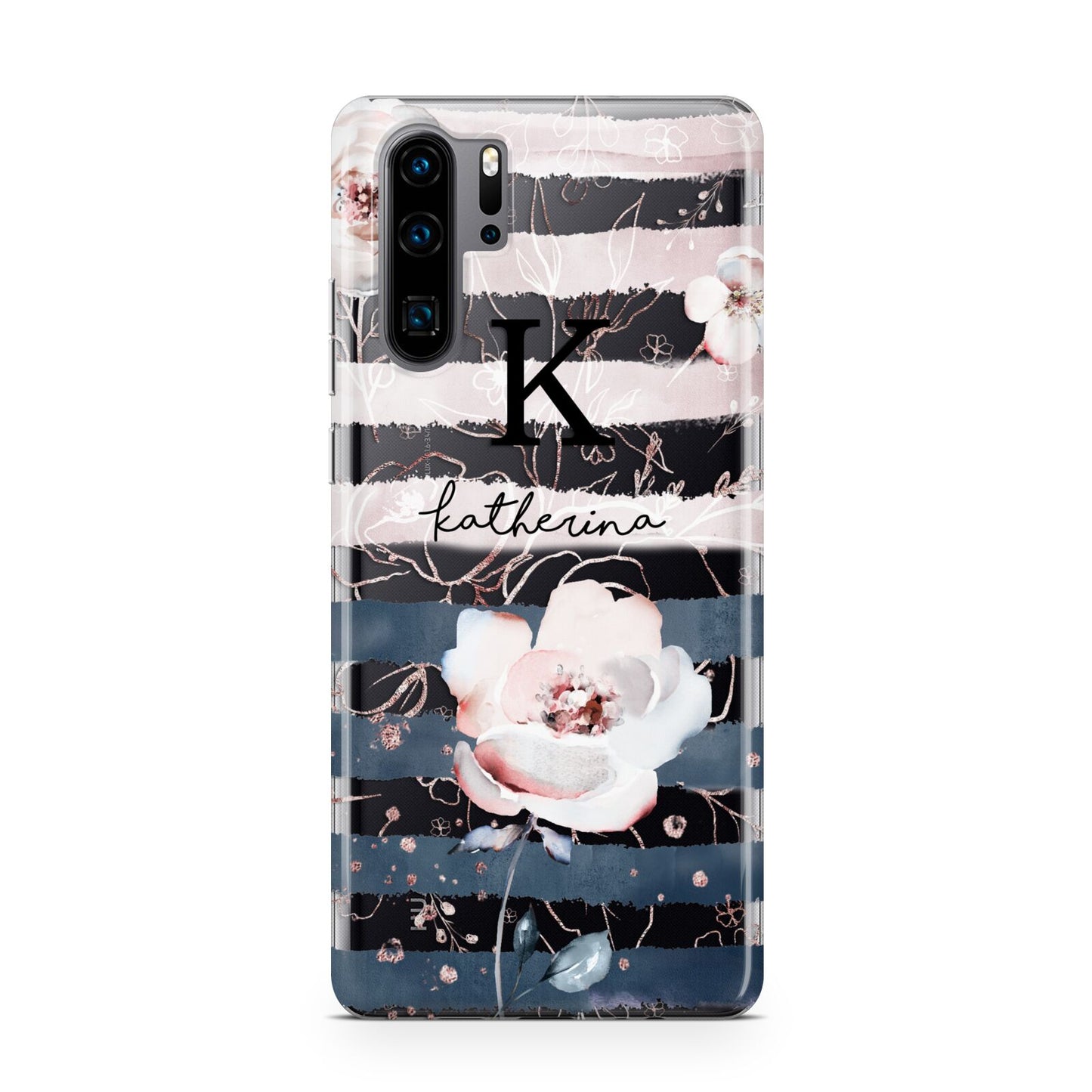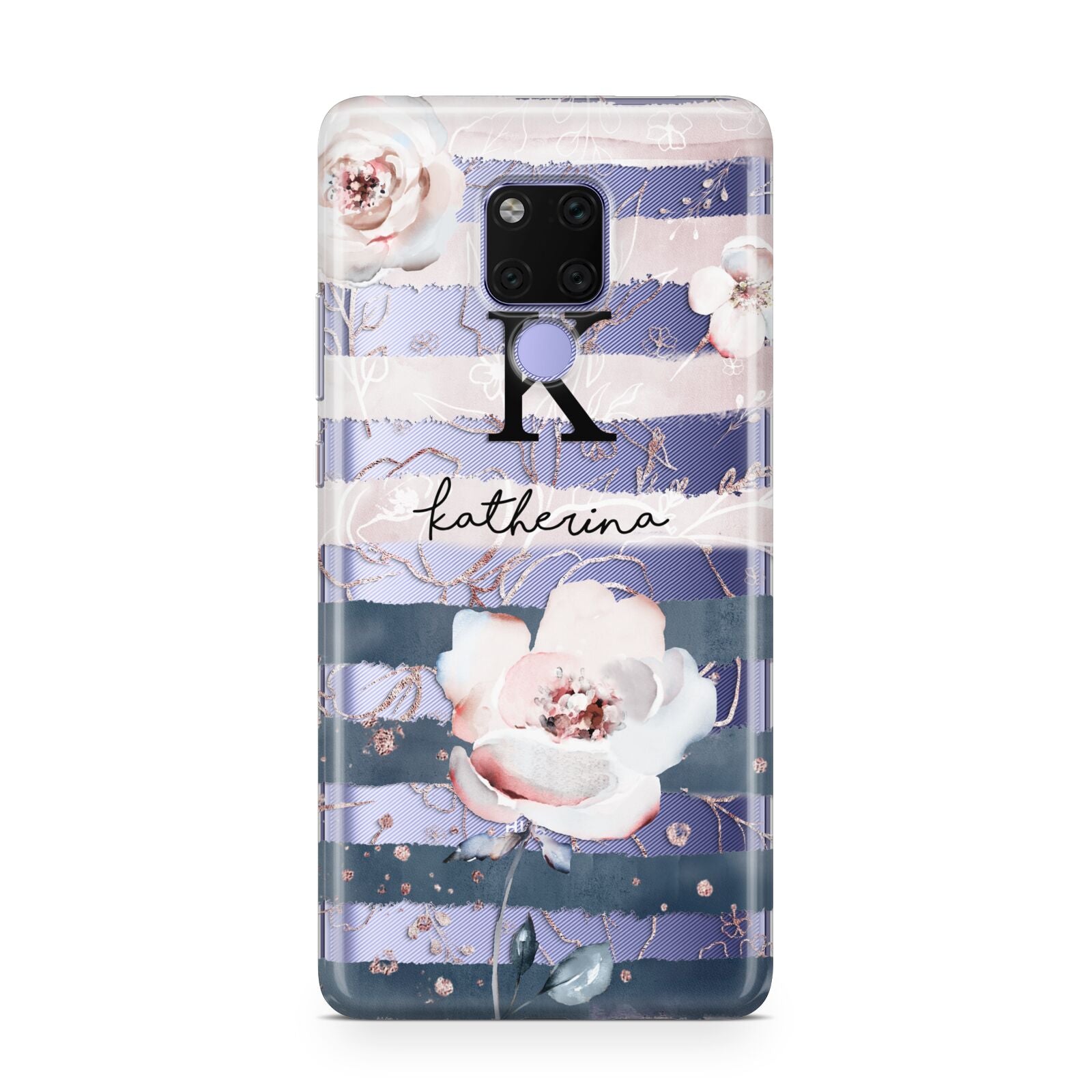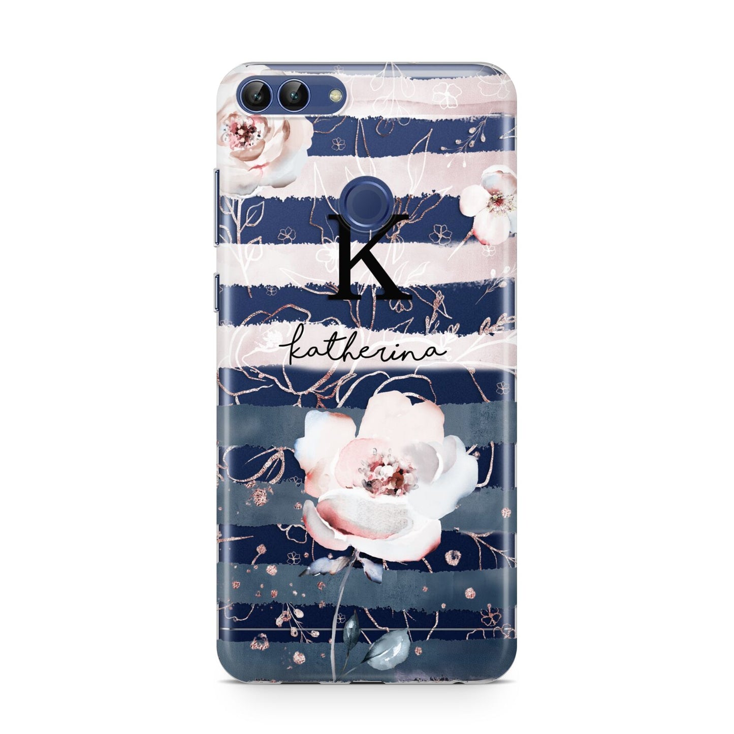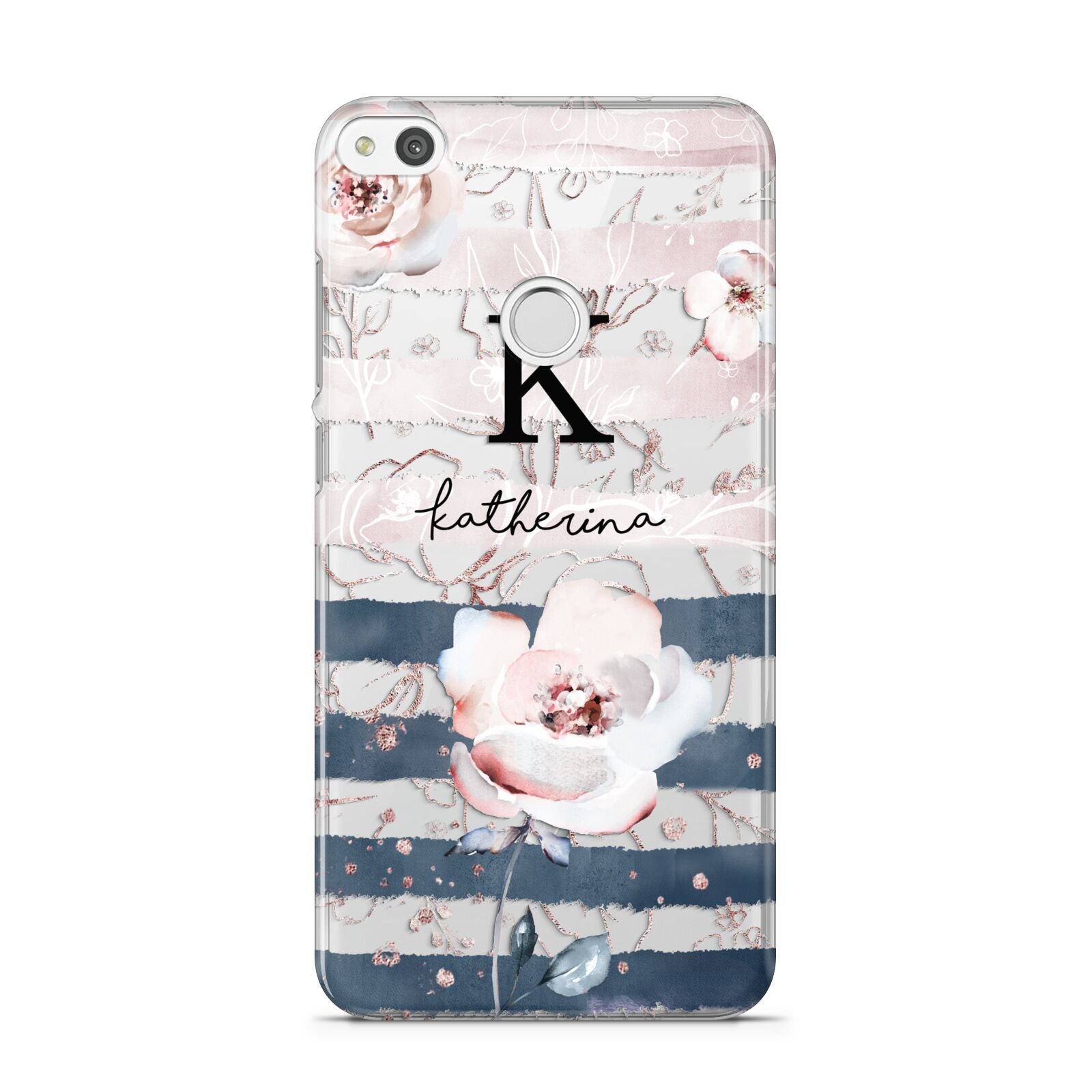 Monogram Pink Blue Striped Watercolour Huawei Case