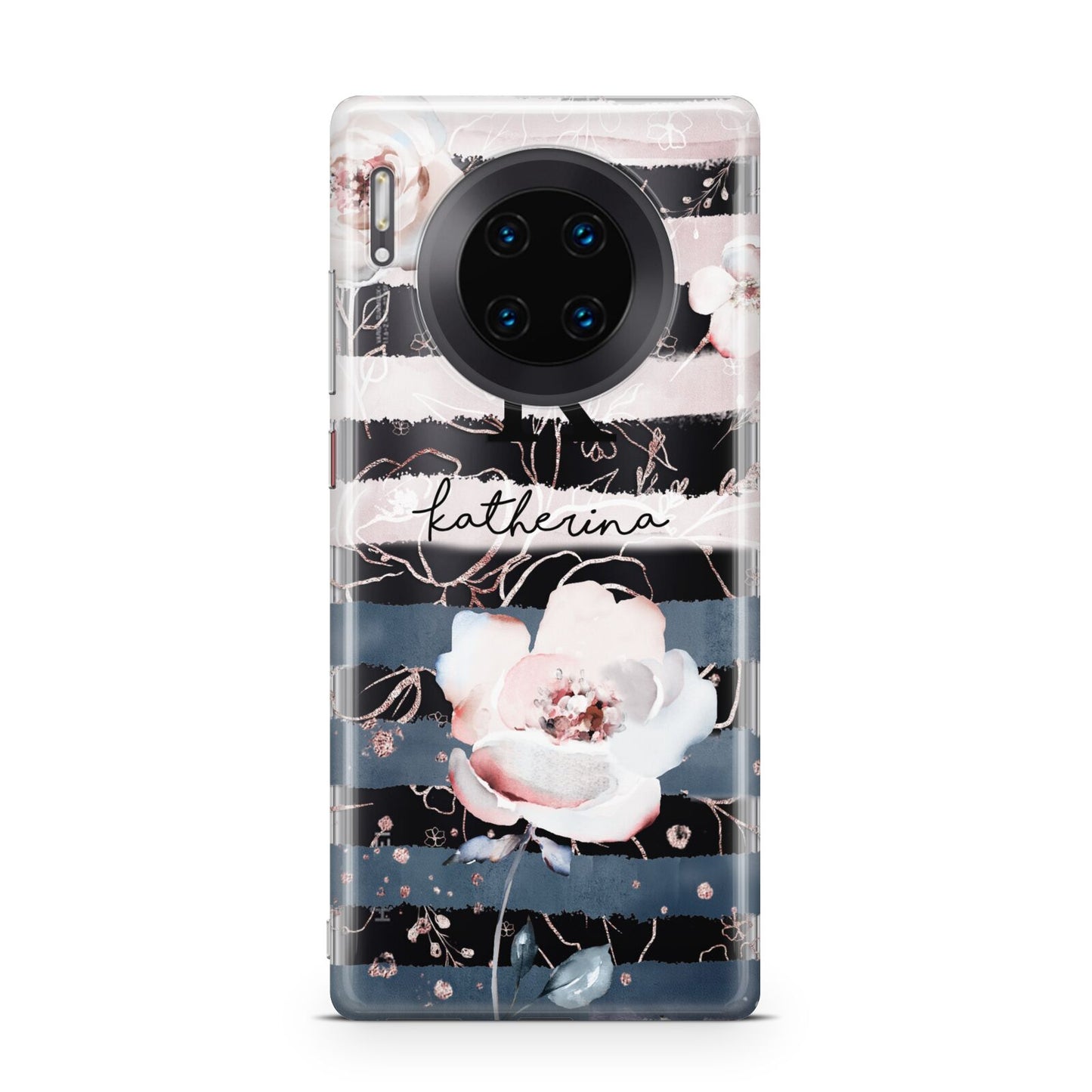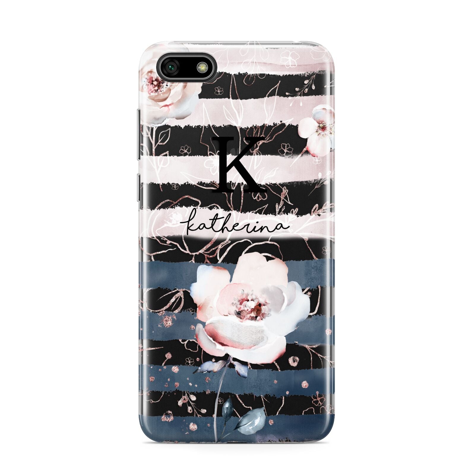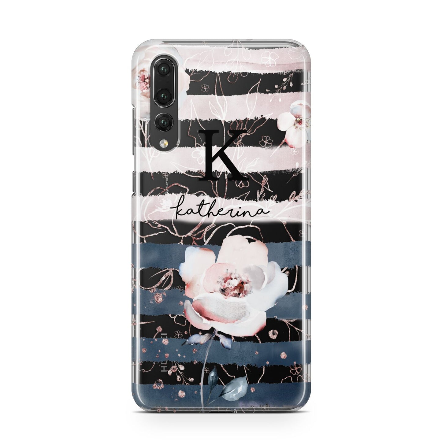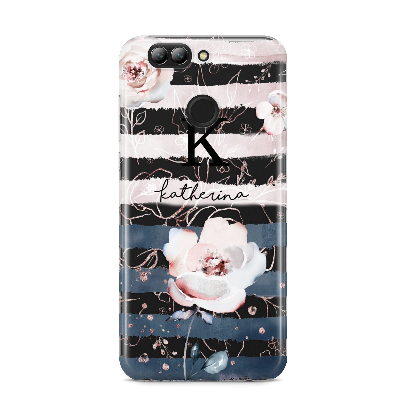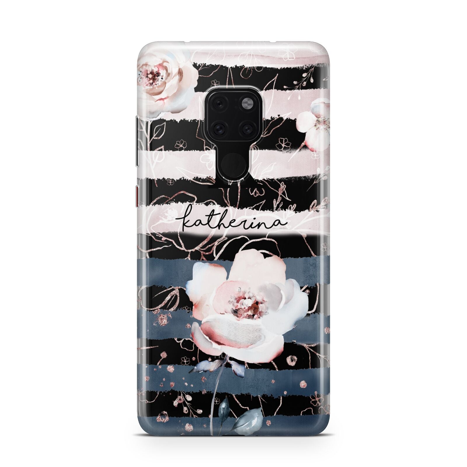 Monogram Pink Blue Striped Watercolour Huawei Case