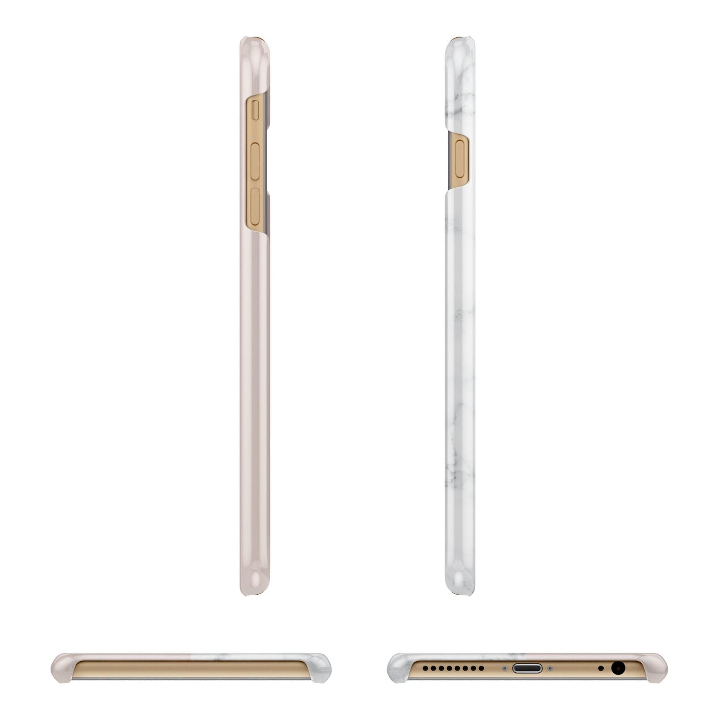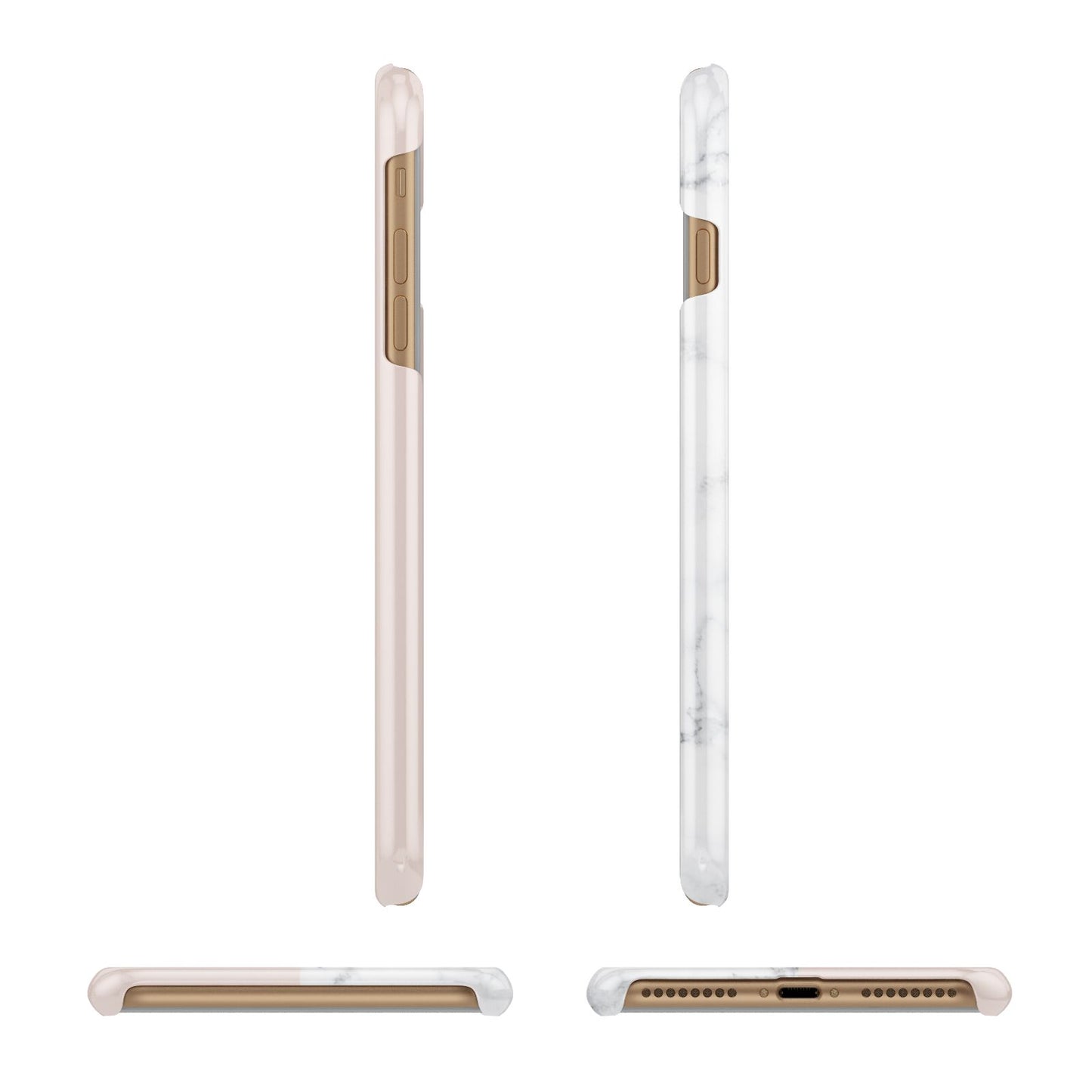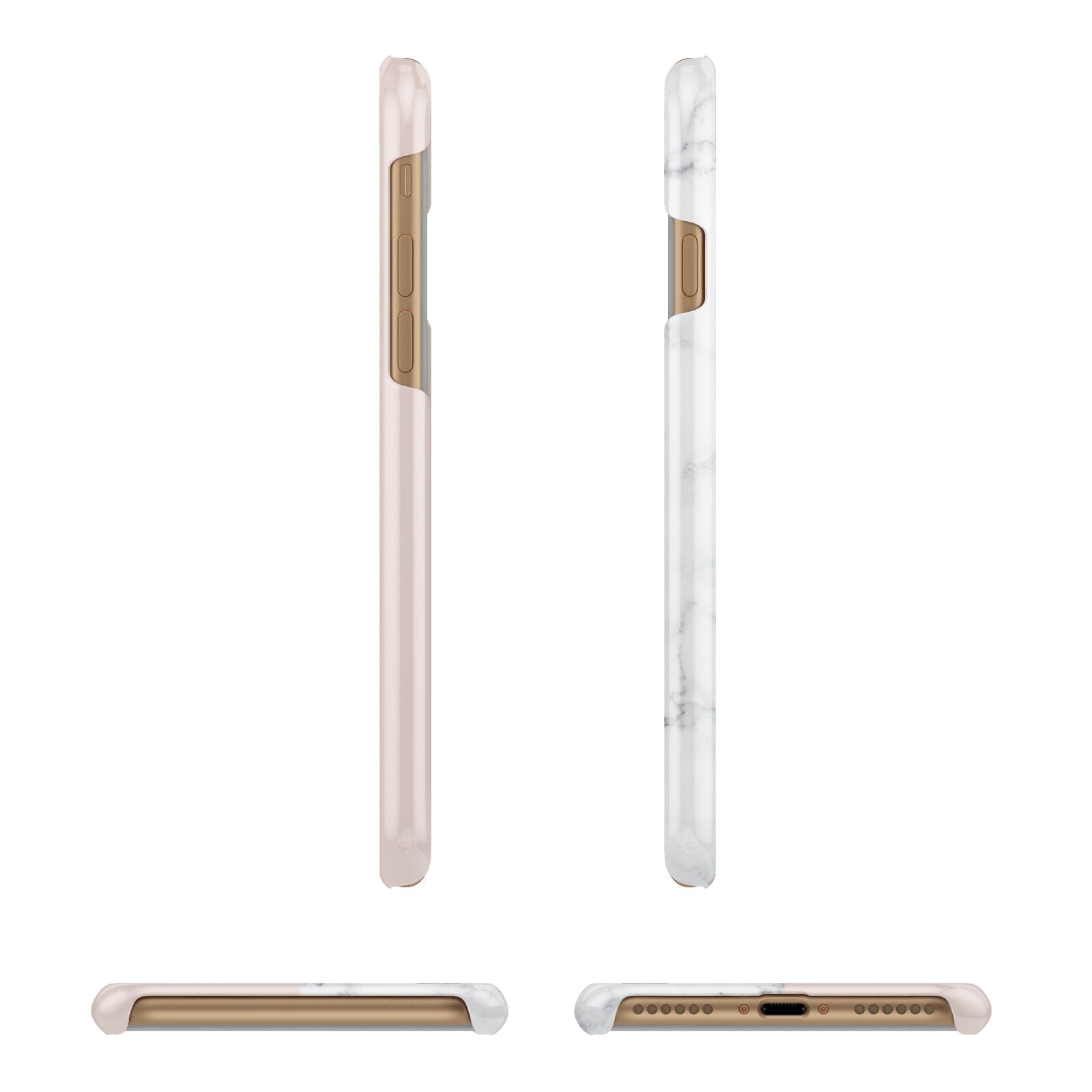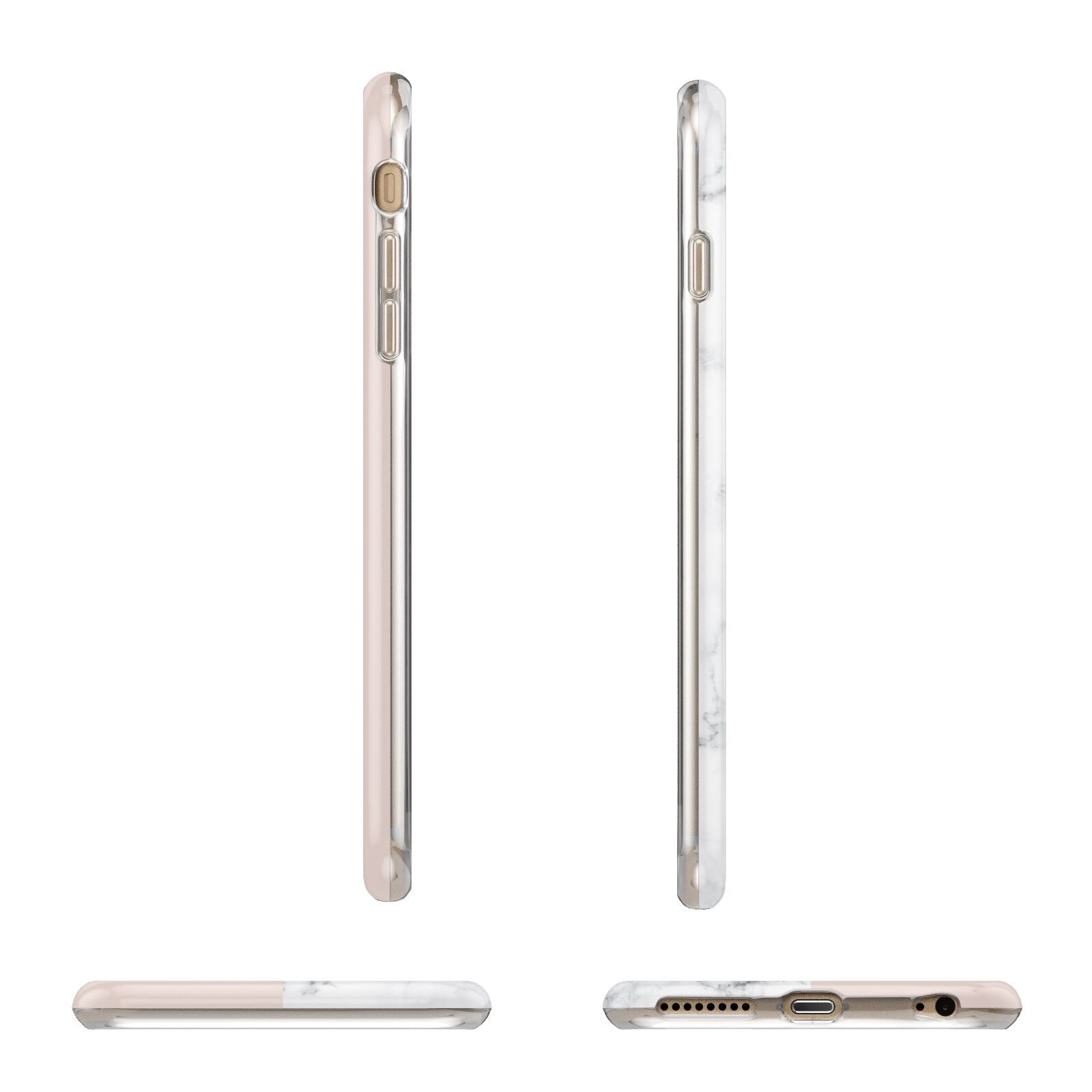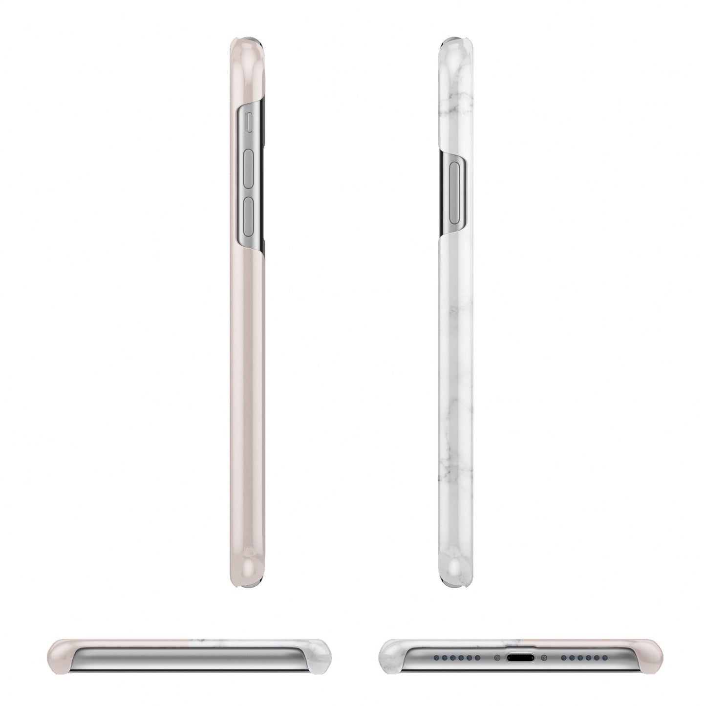 This Monogrammed Rose Gold Marble Apple iPhone Case is a natural white marble design to the left of the pattern, with a nude pink plain block to the right. In the center we have a large rose gold effect initial, along with a black signature font name.