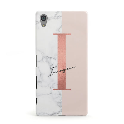 Monogrammed Rose Gold Marble Sony Case