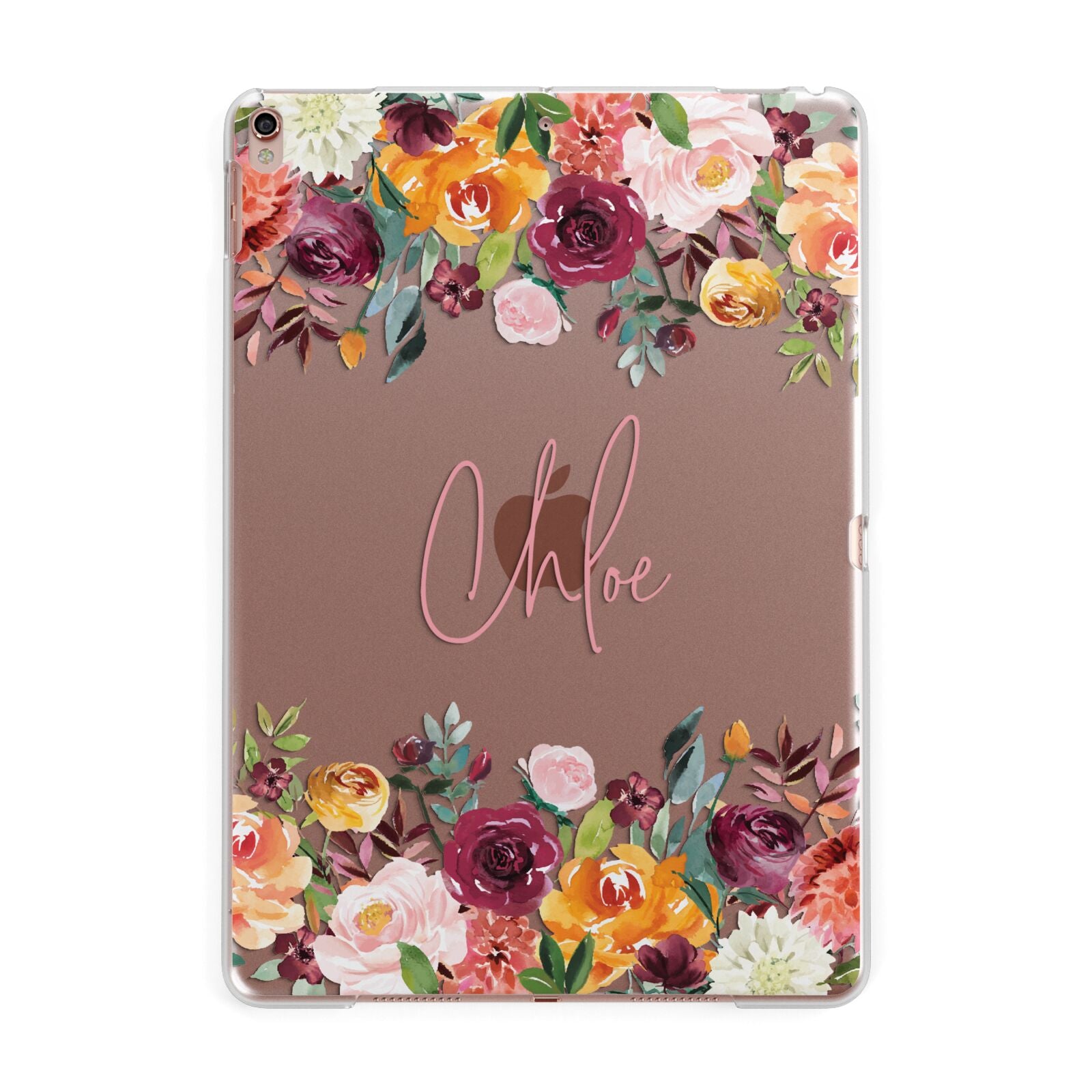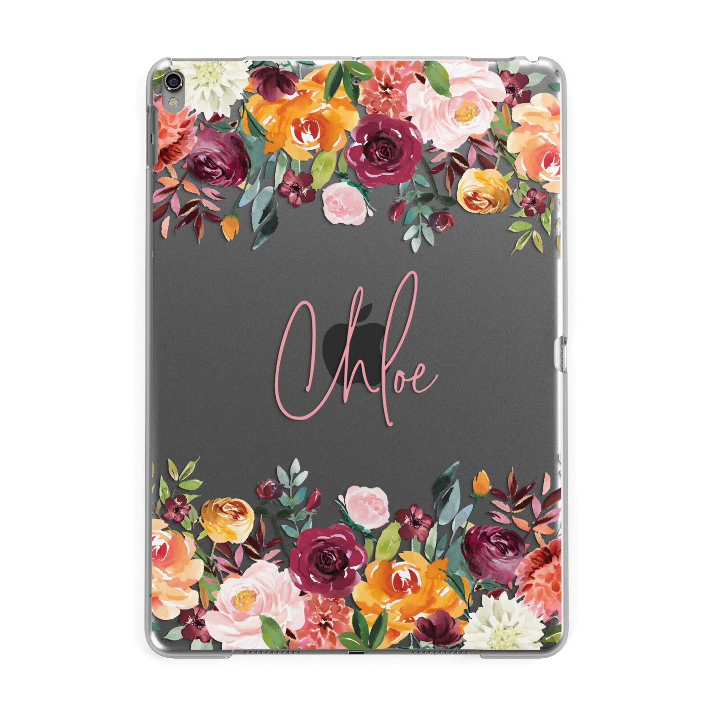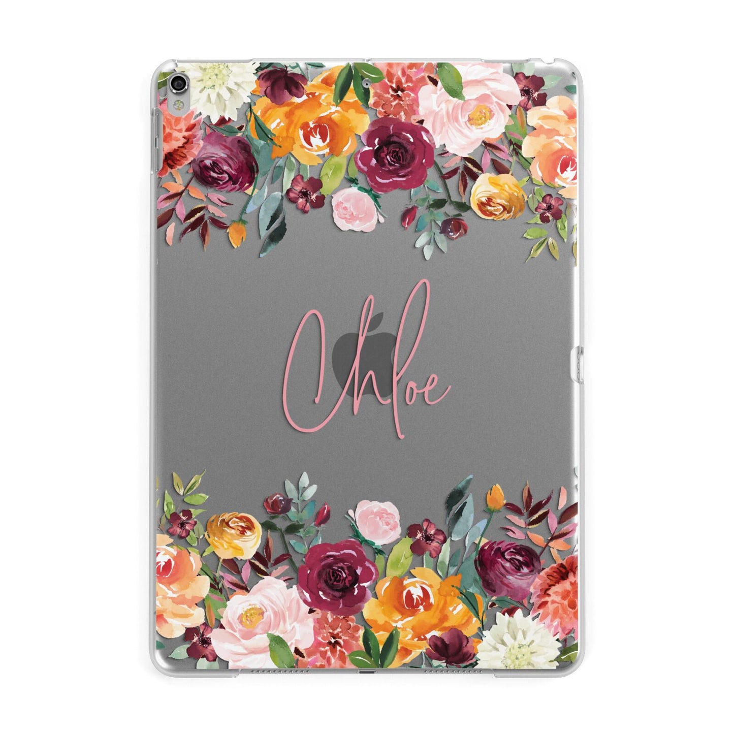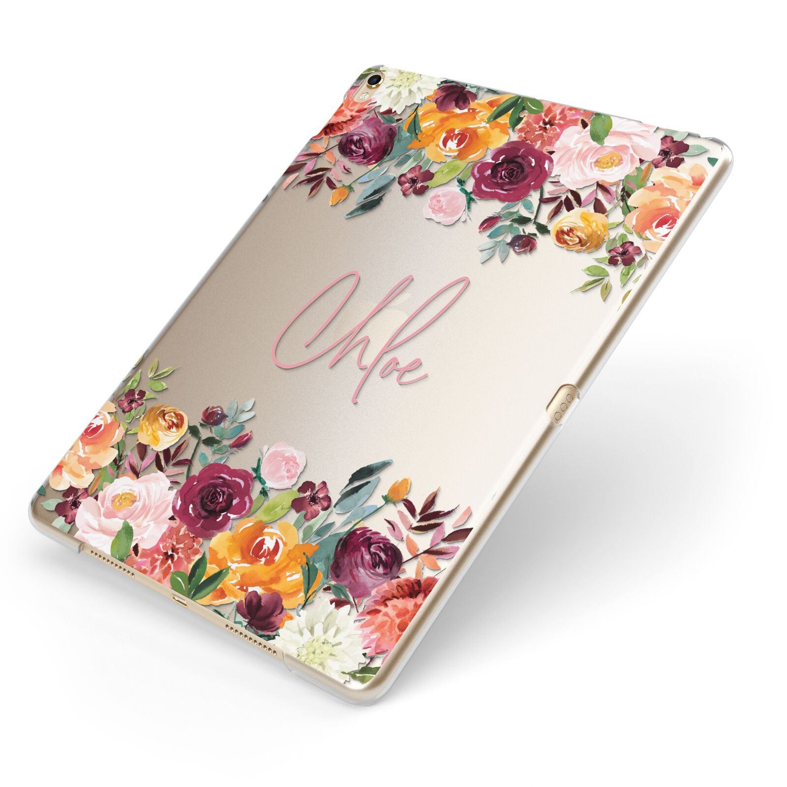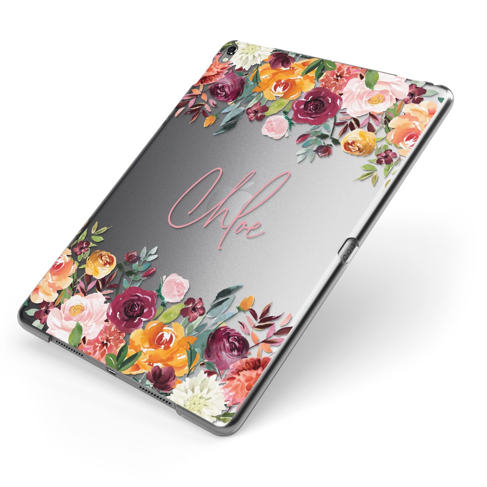 Personalised Name Transparent Flowers Apple iPad Case