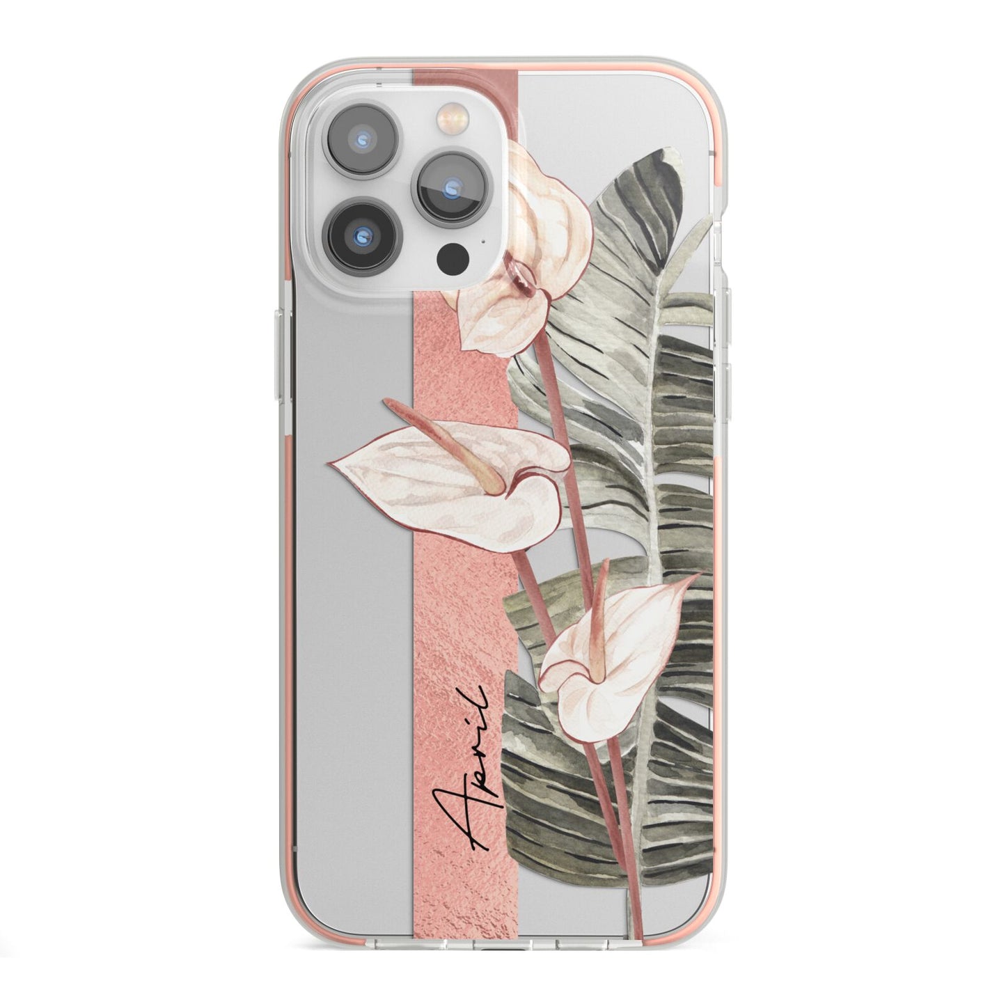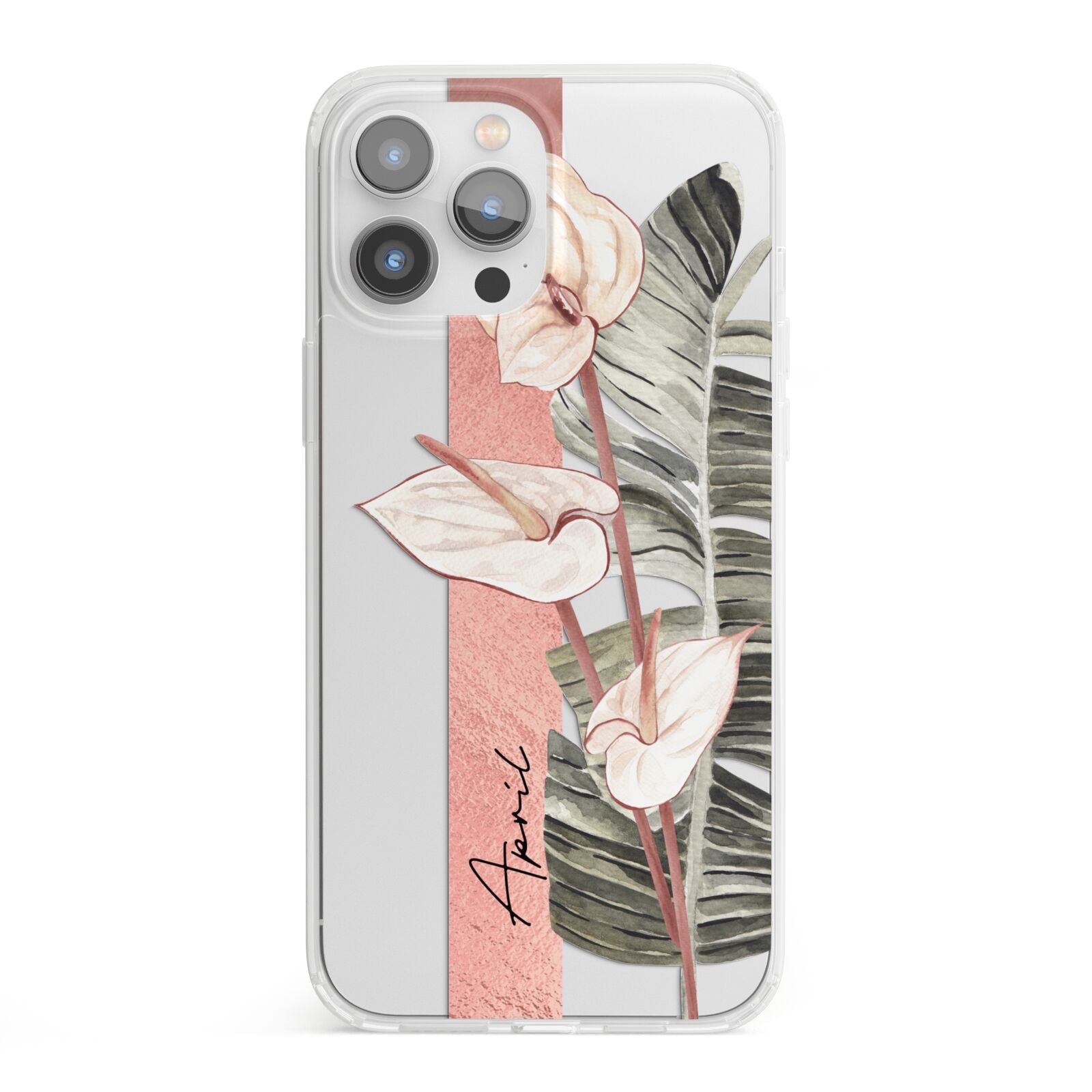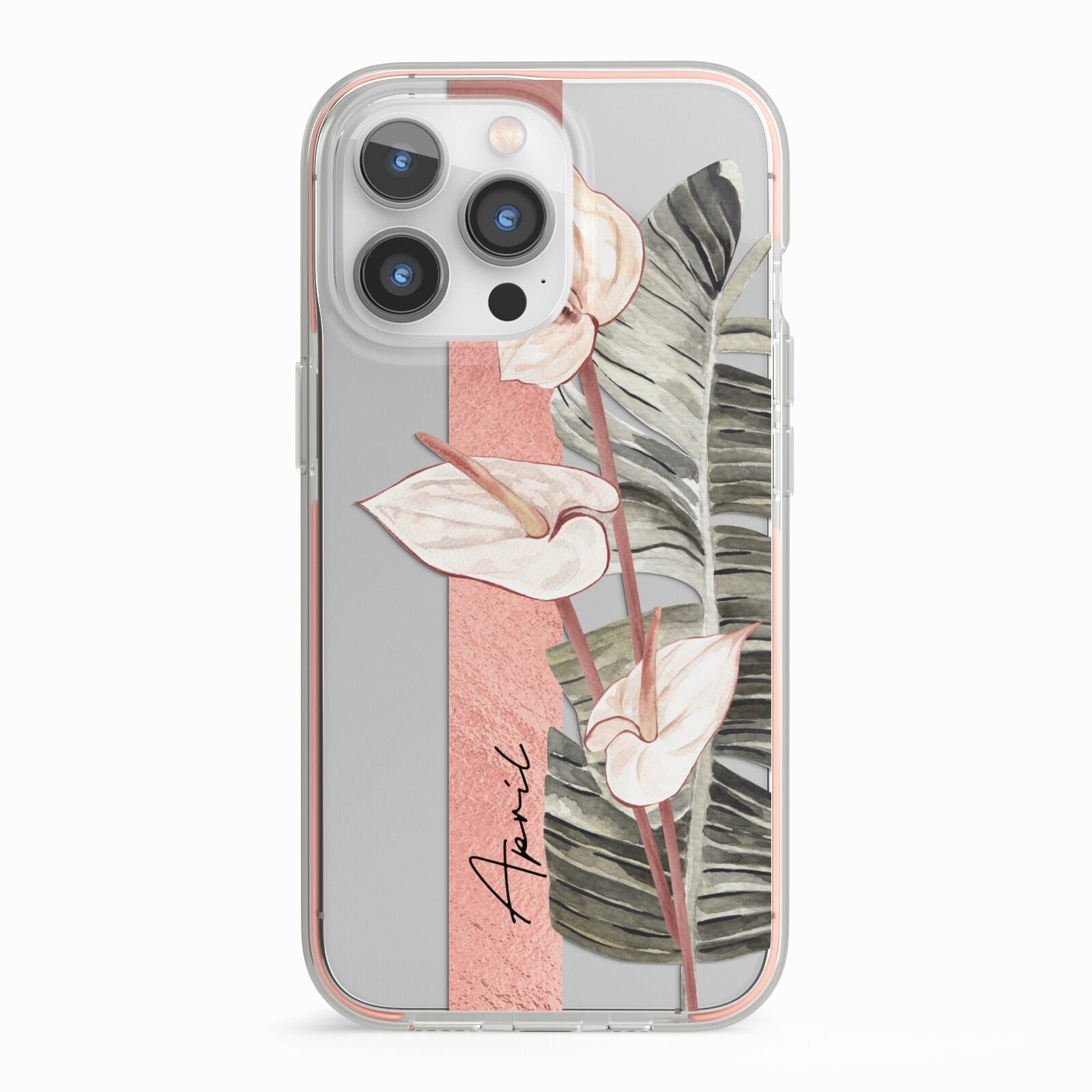 This great looking Personalised Anthurium Apple iPhone Case is a watercolour design containing a dried anthurium, which looks striking due to the more saturated effect. Also in the design is a palm leaf set against a copper border, with a black personalised name in our handwritten font. The design is on a clear background, which looks fab when on our transparent products, as elements of the pattern become see through. Treat yourself to this personalised tropical pattern today.