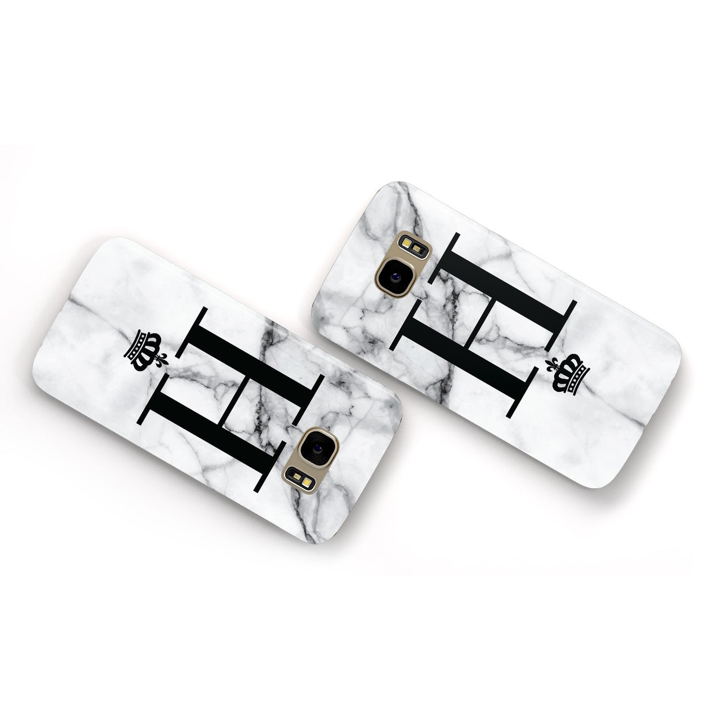Personalised Big Initials Crown Marble Samsung Galaxy Case