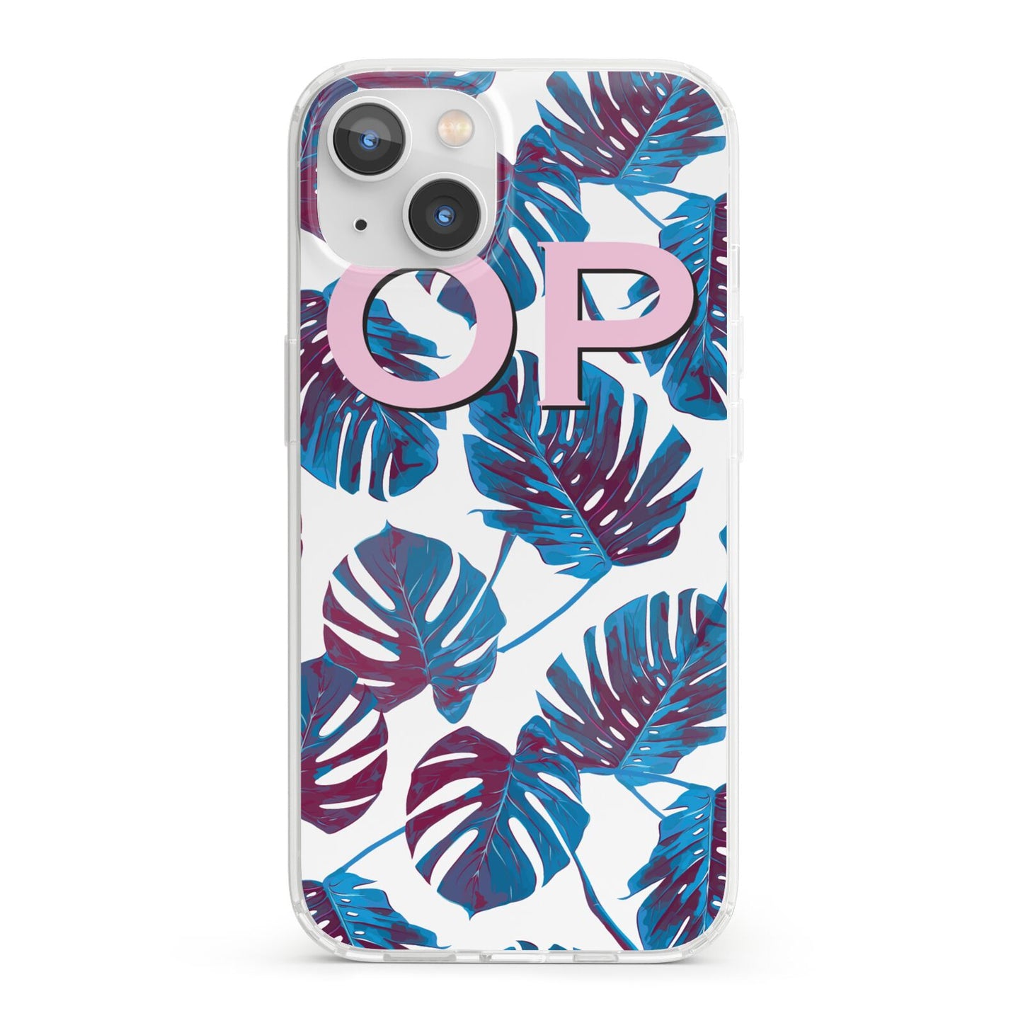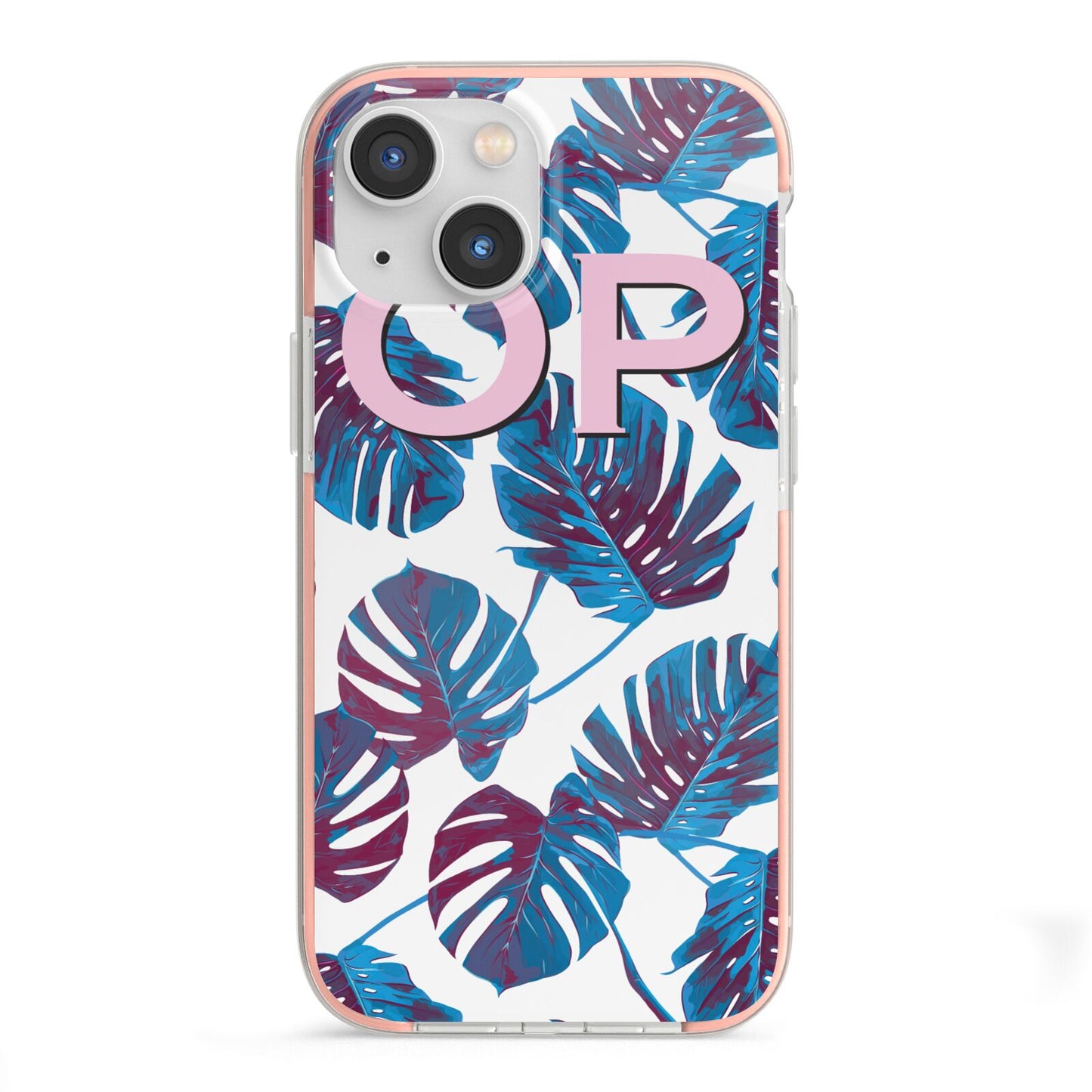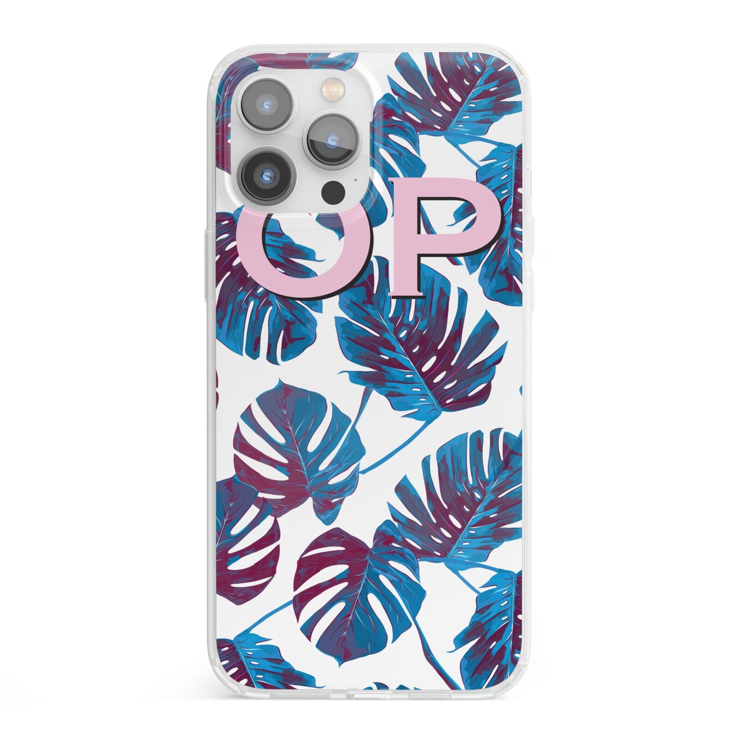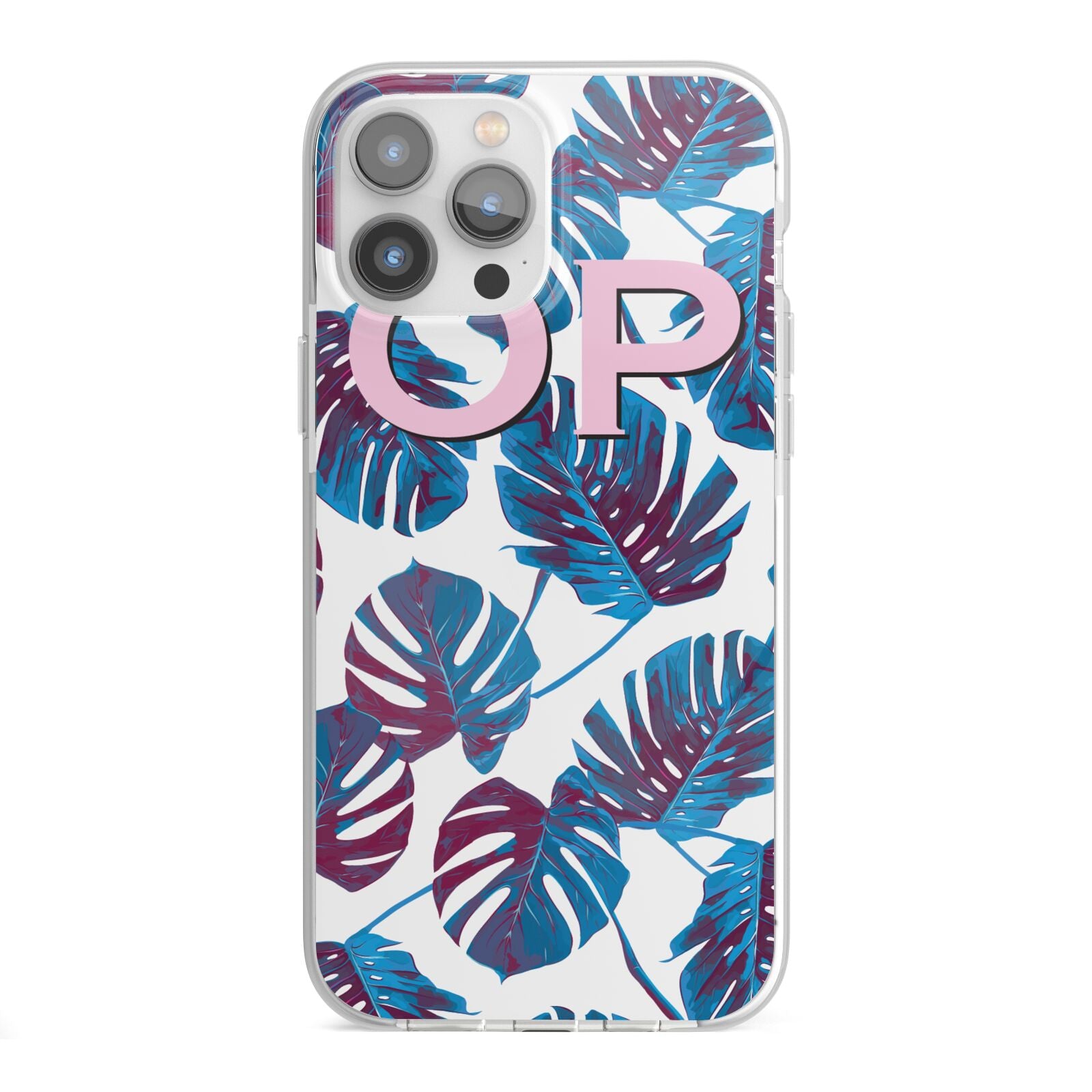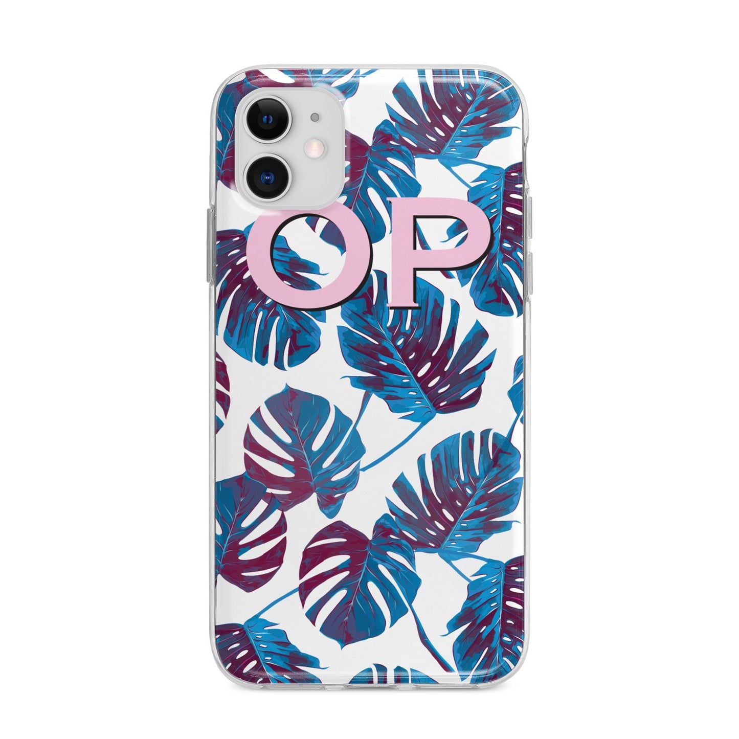 Personalised Blue Monstera Leaves Apple iPhone Case